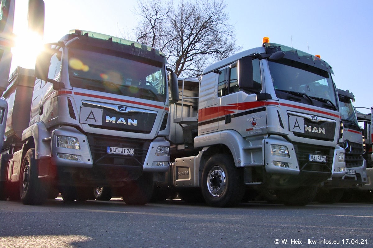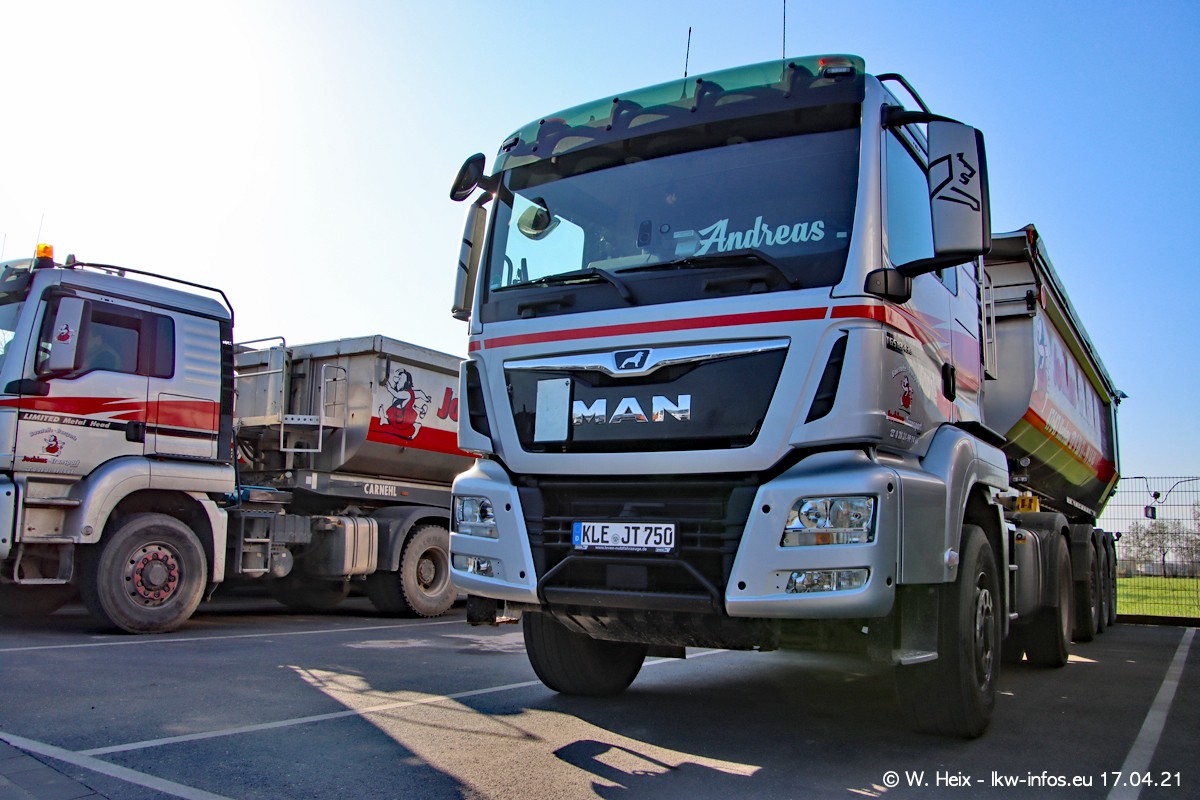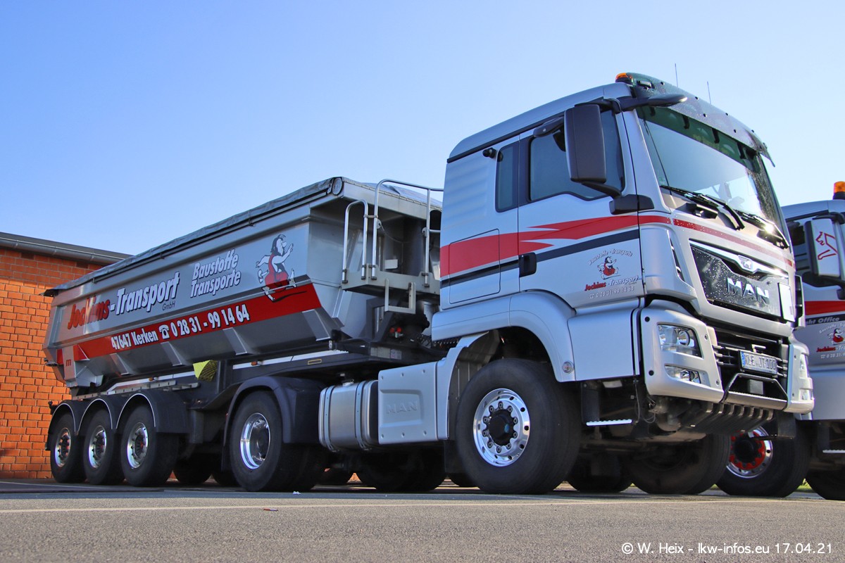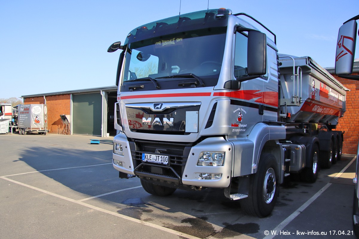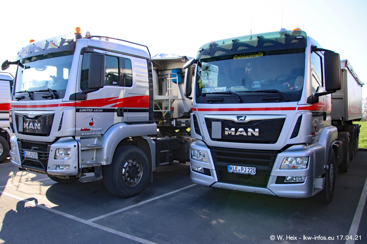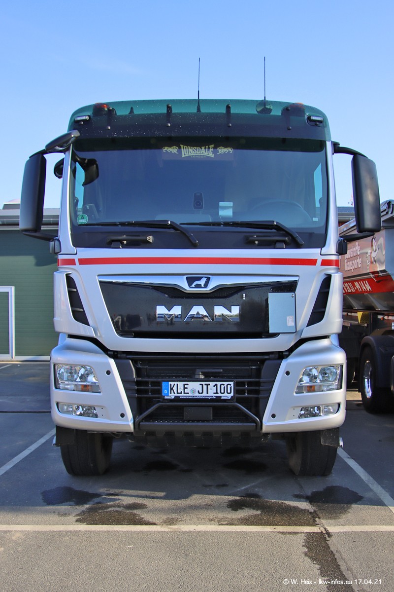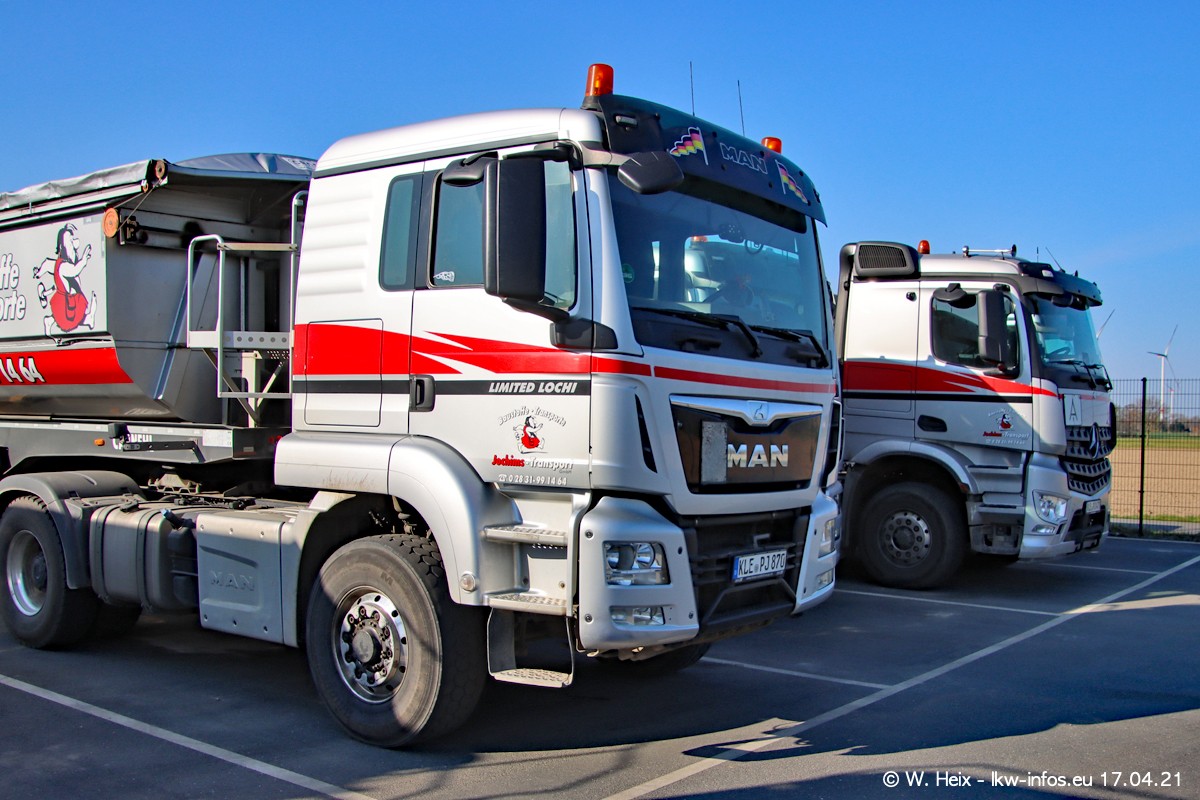 Es sind schon wieder fast 1,5 Jahre vergangen, seit ich zuletzt bei Jochims zu Besuch war. Entsprechend gibt es viele neue LKW. Das sind meines Wissens alles Zugmaschinen von MAN, zu erkennen an den jetzt geänderten Kennzeichen mit der Kombination "KLE JT" und nicht mehr "KLE PJ". Jochims hat in der letzten Zeit noch viele MAN TGS der jetzt alten Baureihe gekauft, aber jetzt ist auch seit einigen Wochen der erste neue MAN TGS im Fuhrpark. Wir haben ein kleines Fotoshooting auf den Gelände gemacht und den alten und den neuen MAN nebeneinander gestellt. Im Sommer kommen voraussichtlich weitere neue LKW. Alle Bilder sind vom Hauptsitz in Kerken, wo ungefähr die Hälfe der Fahrzeuge steht.