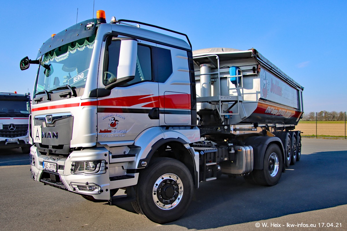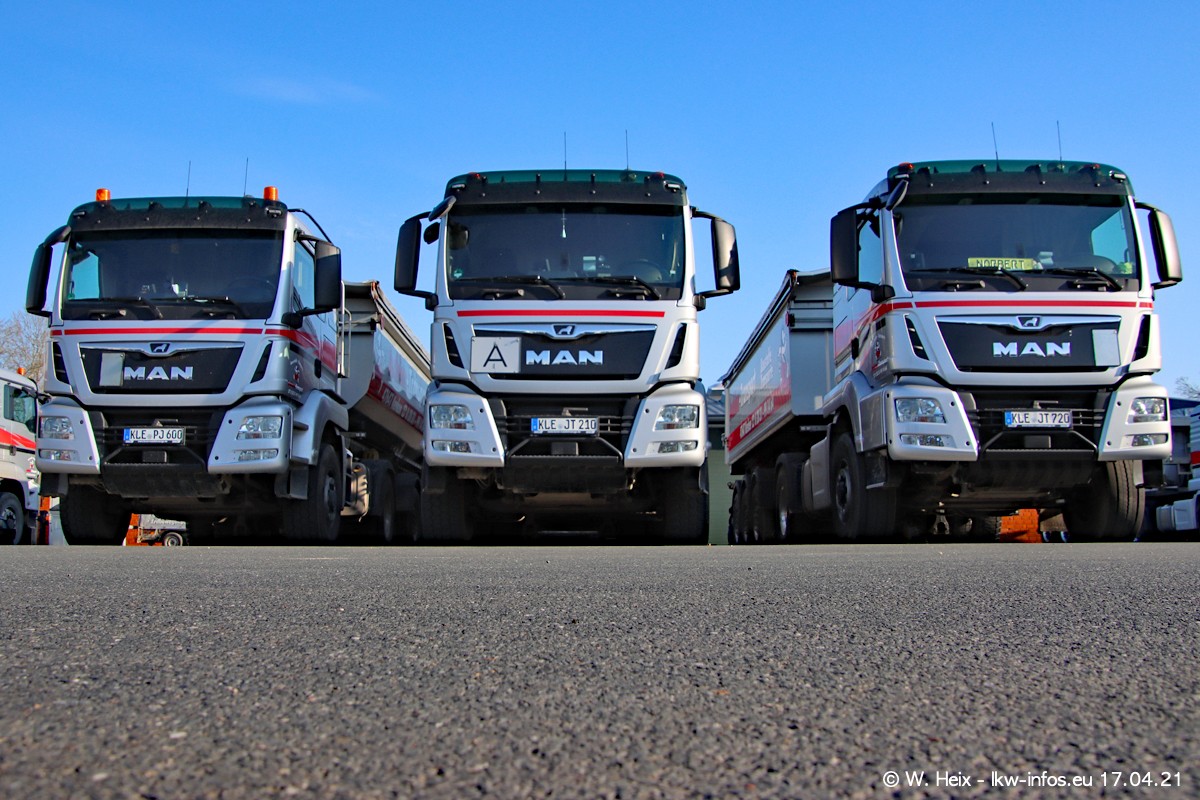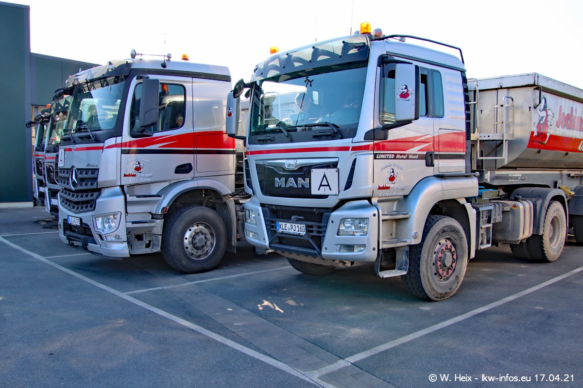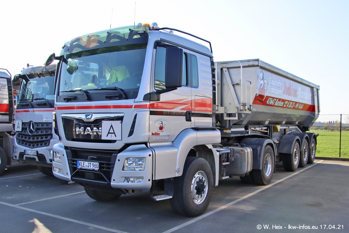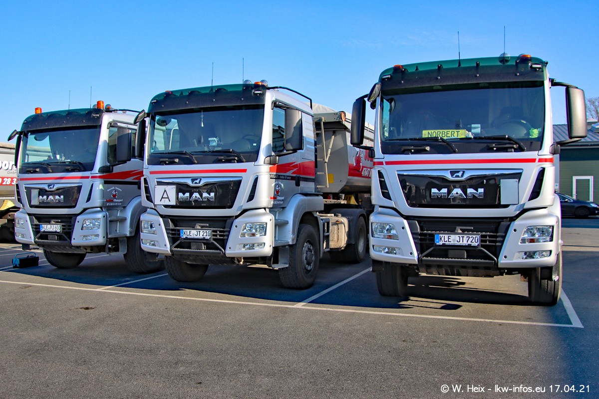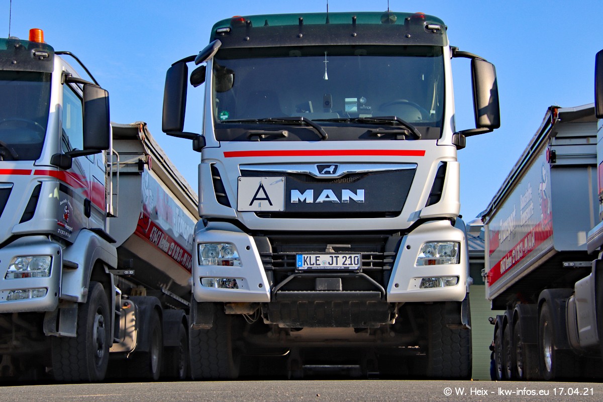 Es sind schon wieder fast 1,5 Jahre vergangen, seit ich zuletzt bei Jochims zu Besuch war. Entsprechend gibt es viele neue LKW. Das sind meines Wissens alles Zugmaschinen von MAN, zu erkennen an den jetzt geänderten Kennzeichen mit der Kombination "KLE JT" und nicht mehr "KLE PJ". Jochims hat in der letzten Zeit noch viele MAN TGS der jetzt alten Baureihe gekauft, aber jetzt ist auch seit einigen Wochen der erste neue MAN TGS im Fuhrpark. Wir haben ein kleines Fotoshooting auf den Gelände gemacht und den alten und den neuen MAN nebeneinander gestellt. Im Sommer kommen voraussichtlich weitere neue LKW. Alle Bilder sind vom Hauptsitz in Kerken, wo ungefähr die Hälfe der Fahrzeuge steht.