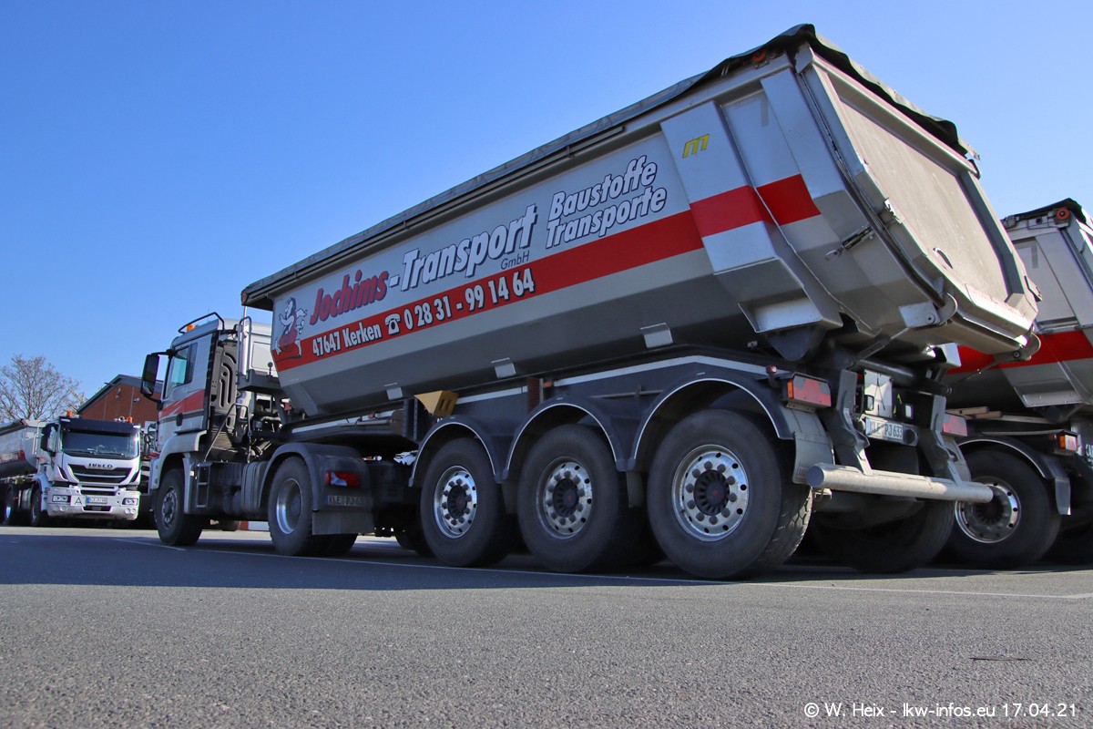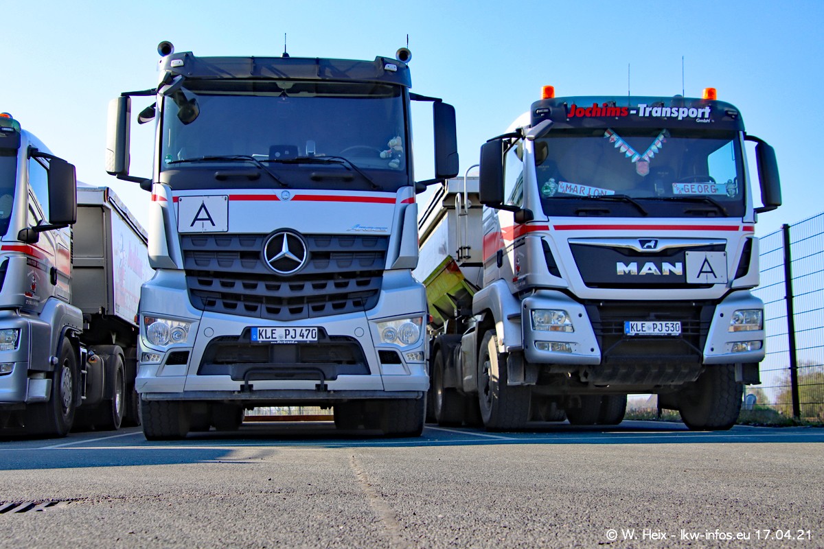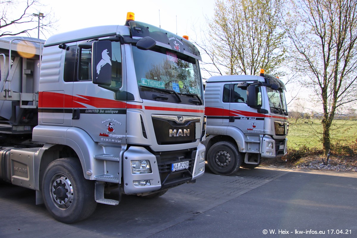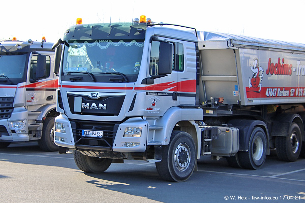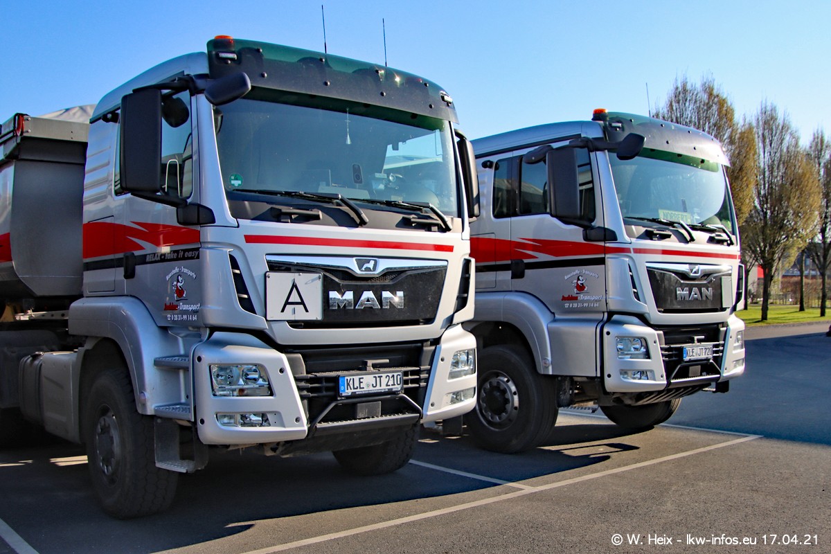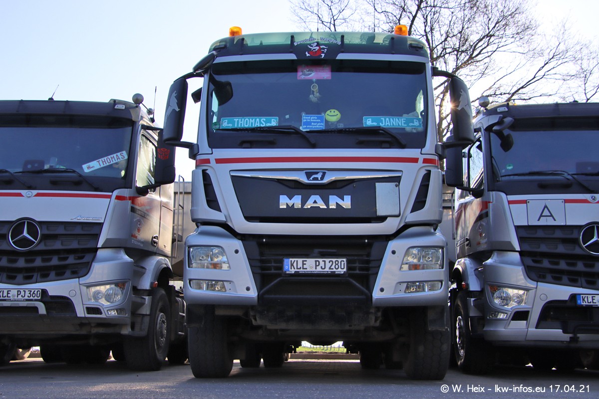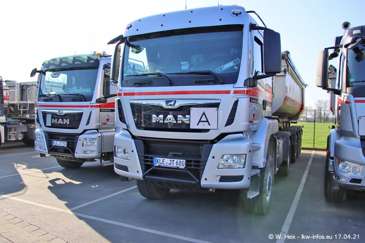 Es sind schon wieder fast 1,5 Jahre vergangen, seit ich zuletzt bei Jochims zu Besuch war. Entsprechend gibt es viele neue LKW. Das sind meines Wissens alles Zugmaschinen von MAN, zu erkennen an den jetzt geänderten Kennzeichen mit der Kombination "KLE JT" und nicht mehr "KLE PJ". Jochims hat in der letzten Zeit noch viele MAN TGS der jetzt alten Baureihe gekauft, aber jetzt ist auch seit einigen Wochen der erste neue MAN TGS im Fuhrpark. Wir haben ein kleines Fotoshooting auf den Gelände gemacht und den alten und den neuen MAN nebeneinander gestellt. Im Sommer kommen voraussichtlich weitere neue LKW. Alle Bilder sind vom Hauptsitz in Kerken, wo ungefähr die Hälfe der Fahrzeuge steht.