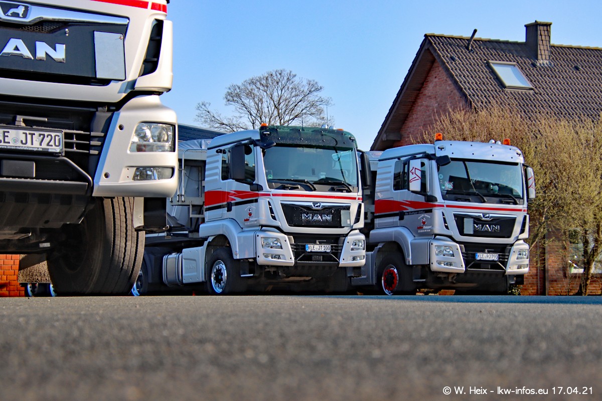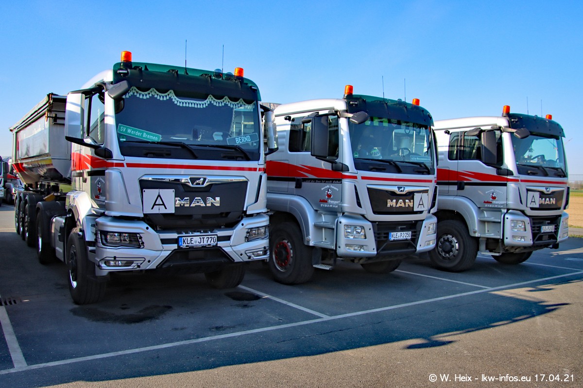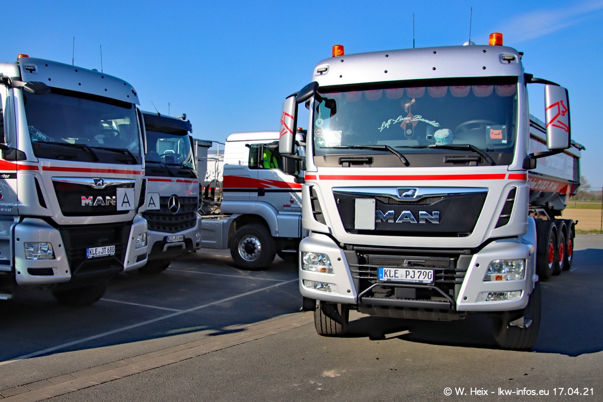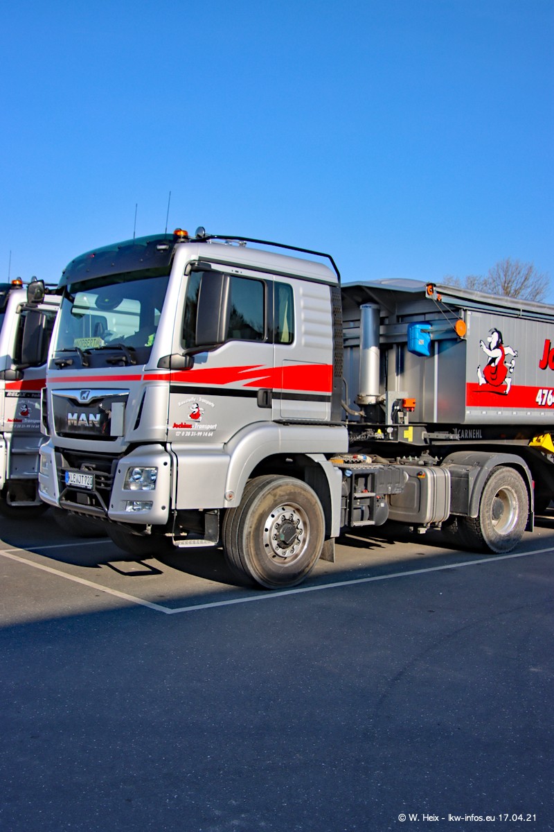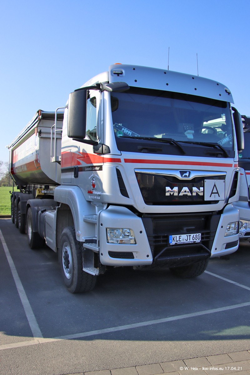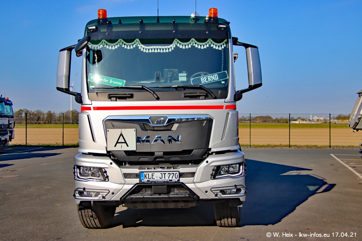 Es sind schon wieder fast 1,5 Jahre vergangen, seit ich zuletzt bei Jochims zu Besuch war. Entsprechend gibt es viele neue LKW. Das sind meines Wissens alles Zugmaschinen von MAN, zu erkennen an den jetzt geänderten Kennzeichen mit der Kombination "KLE JT" und nicht mehr "KLE PJ". Jochims hat in der letzten Zeit noch viele MAN TGS der jetzt alten Baureihe gekauft, aber jetzt ist auch seit einigen Wochen der erste neue MAN TGS im Fuhrpark. Wir haben ein kleines Fotoshooting auf den Gelände gemacht und den alten und den neuen MAN nebeneinander gestellt. Im Sommer kommen voraussichtlich weitere neue LKW. Alle Bilder sind vom Hauptsitz in Kerken, wo ungefähr die Hälfe der Fahrzeuge steht.