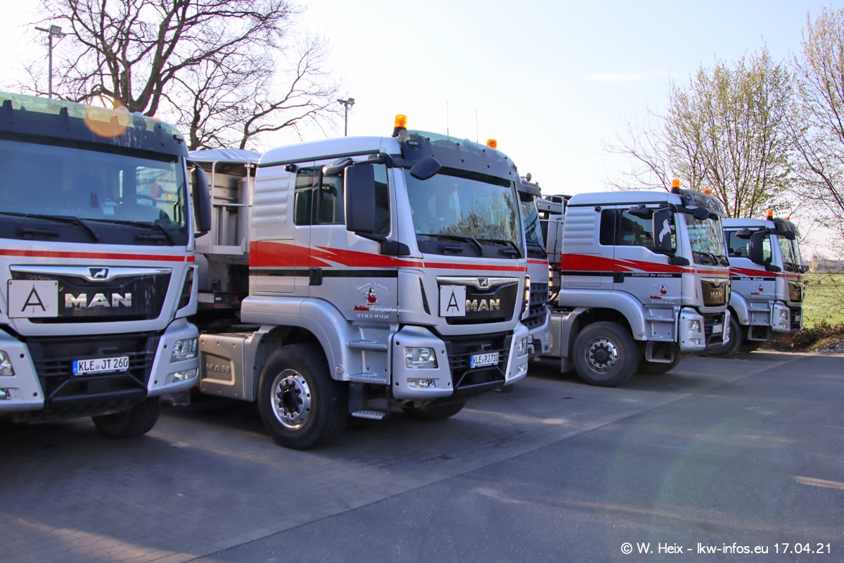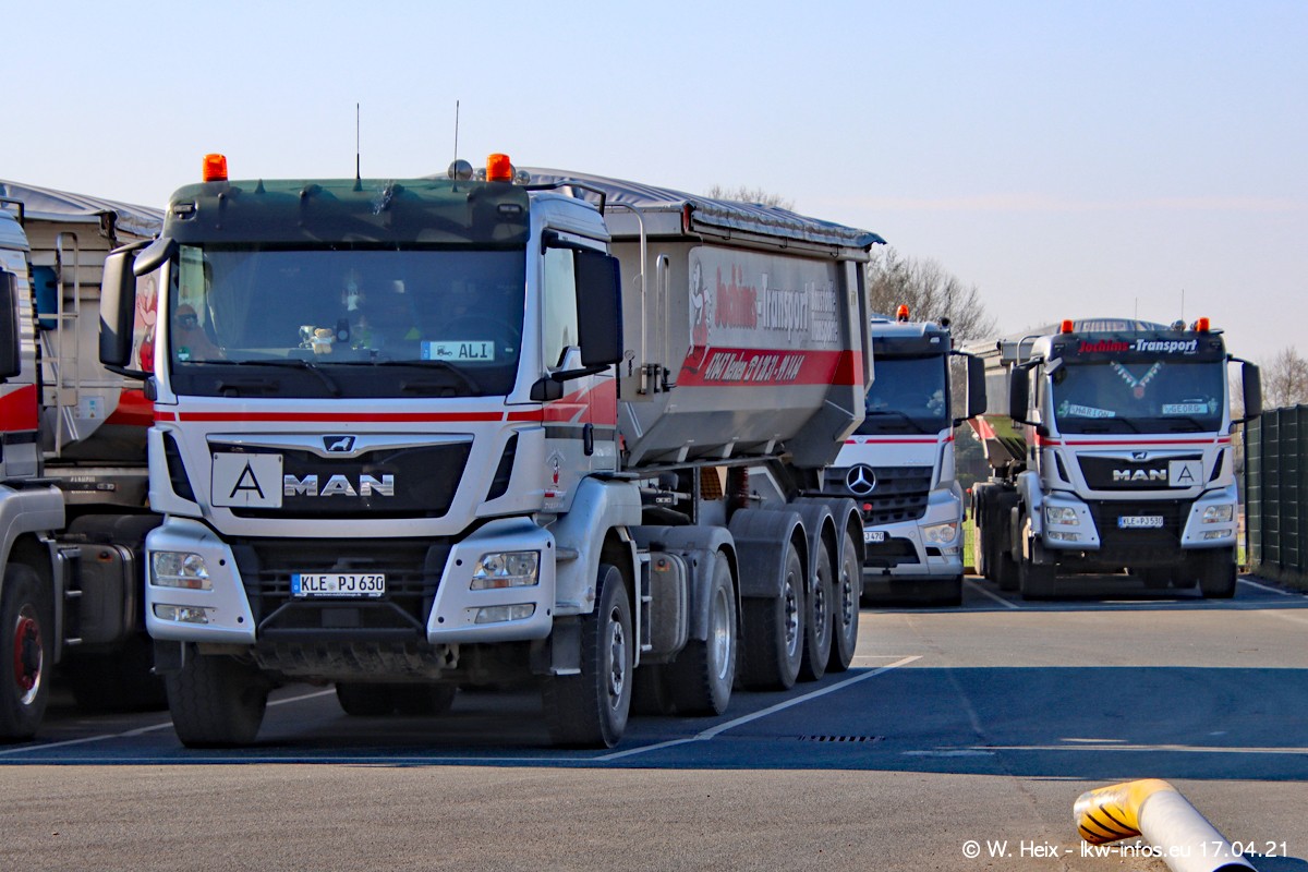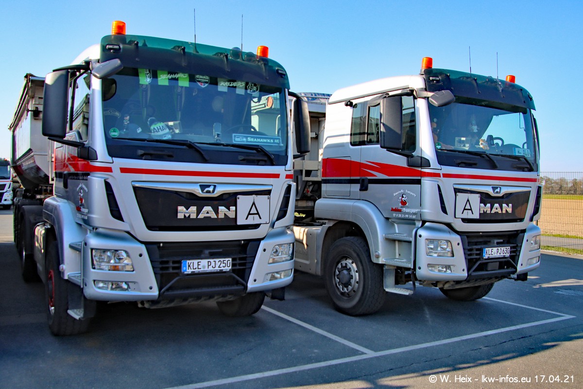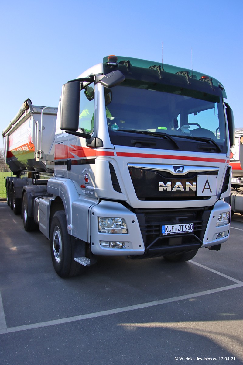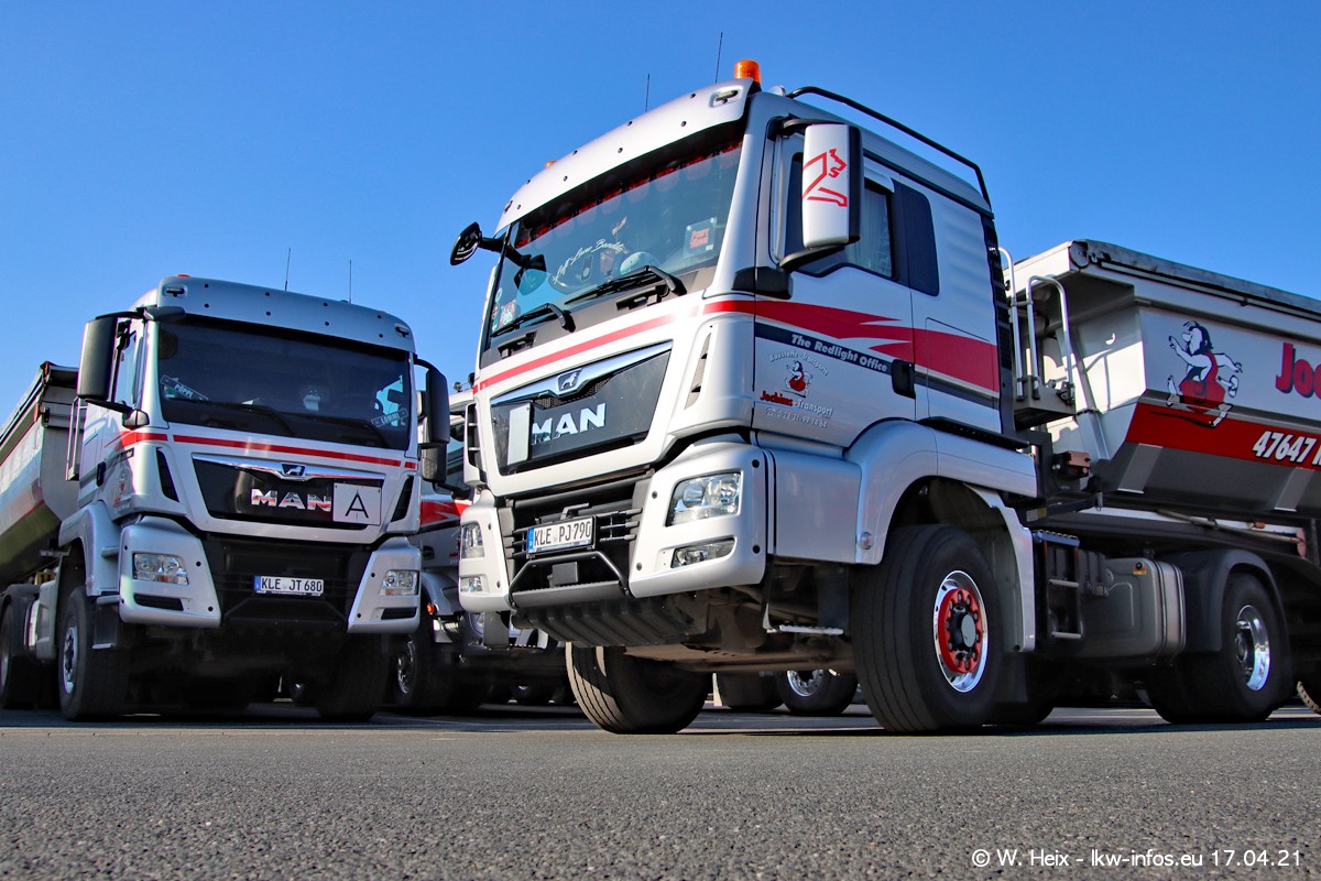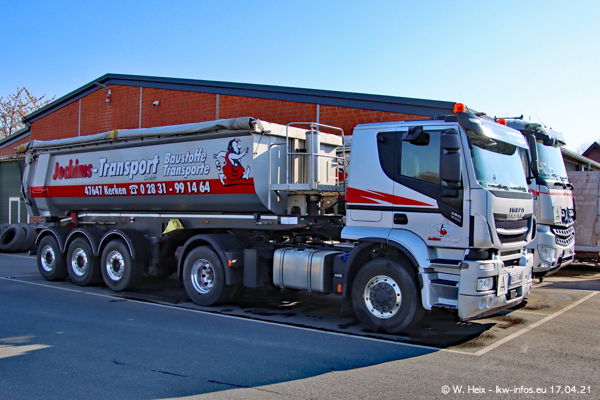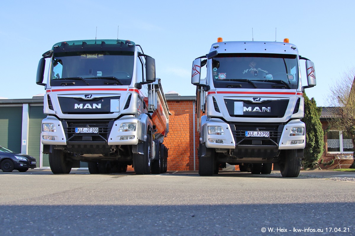 Es sind schon wieder fast 1,5 Jahre vergangen, seit ich zuletzt bei Jochims zu Besuch war. Entsprechend gibt es viele neue LKW. Das sind meines Wissens alles Zugmaschinen von MAN, zu erkennen an den jetzt geänderten Kennzeichen mit der Kombination "KLE JT" und nicht mehr "KLE PJ". Jochims hat in der letzten Zeit noch viele MAN TGS der jetzt alten Baureihe gekauft, aber jetzt ist auch seit einigen Wochen der erste neue MAN TGS im Fuhrpark. Wir haben ein kleines Fotoshooting auf den Gelände gemacht und den alten und den neuen MAN nebeneinander gestellt. Im Sommer kommen voraussichtlich weitere neue LKW. Alle Bilder sind vom Hauptsitz in Kerken, wo ungefähr die Hälfe der Fahrzeuge steht.