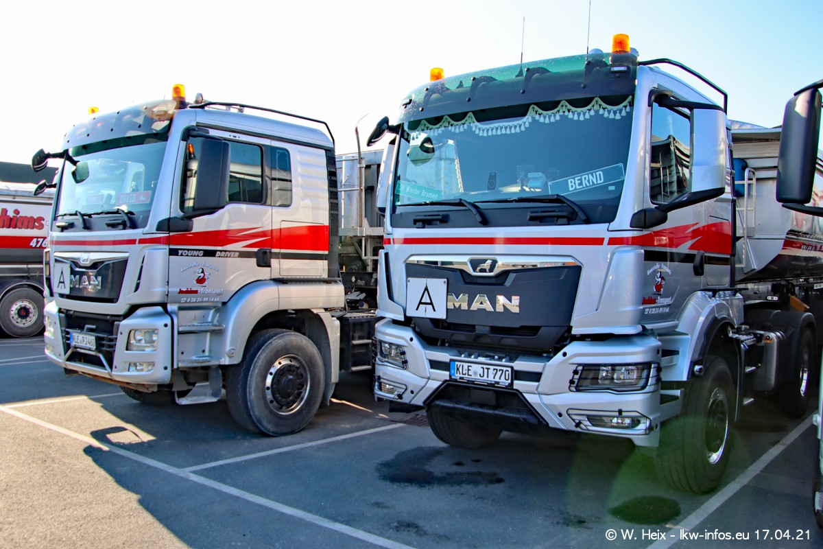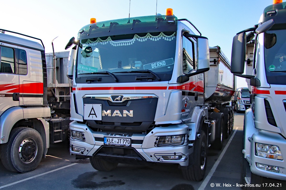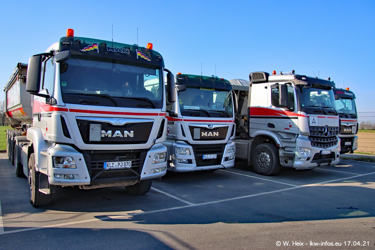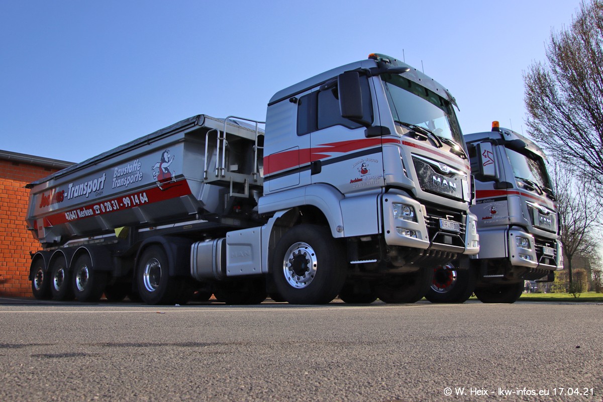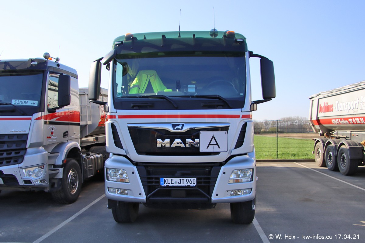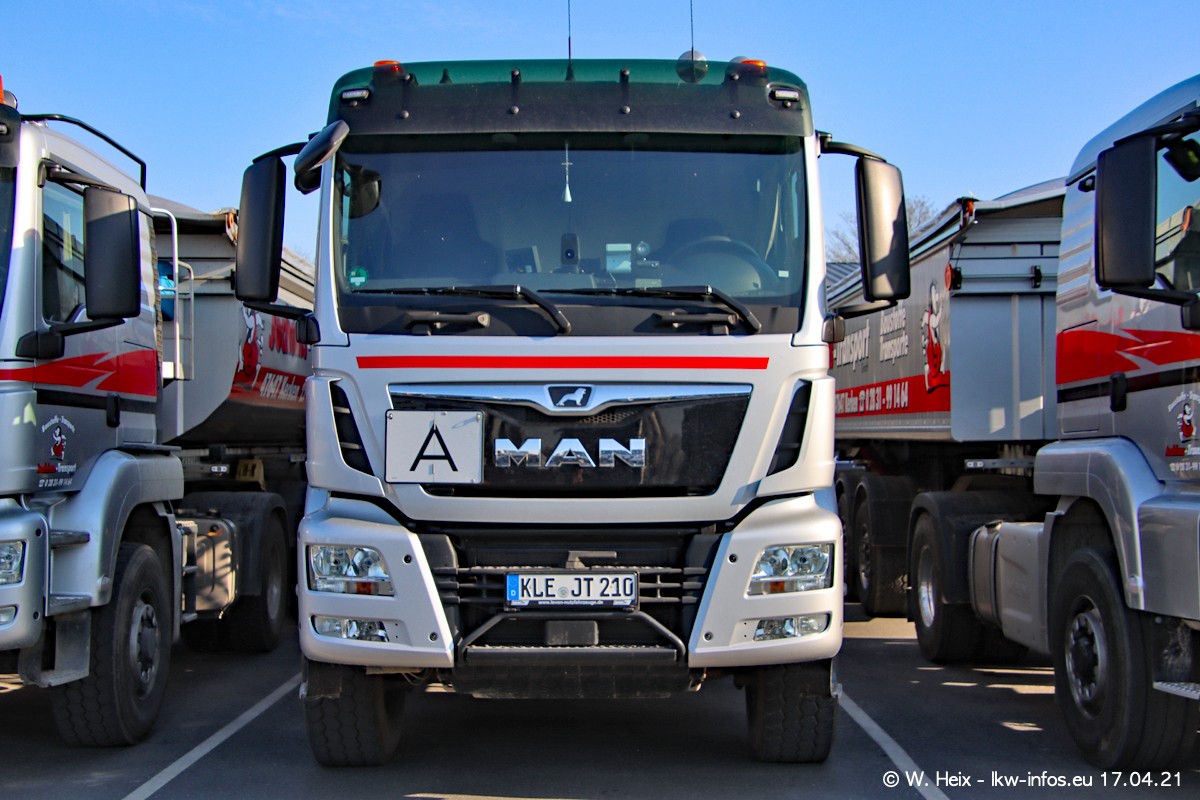Es sind schon wieder fast 1,5 Jahre vergangen, seit ich zuletzt bei Jochims zu Besuch war. Entsprechend gibt es viele neue LKW. Das sind meines Wissens alles Zugmaschinen von MAN, zu erkennen an den jetzt geänderten Kennzeichen mit der Kombination "KLE JT" und nicht mehr "KLE PJ". Jochims hat in der letzten Zeit noch viele MAN TGS der jetzt alten Baureihe gekauft, aber jetzt ist auch seit einigen Wochen der erste neue MAN TGS im Fuhrpark. Wir haben ein kleines Fotoshooting auf den Gelände gemacht und den alten und den neuen MAN nebeneinander gestellt. Im Sommer kommen voraussichtlich weitere neue LKW. Alle Bilder sind vom Hauptsitz in Kerken, wo ungefähr die Hälfe der Fahrzeuge steht.