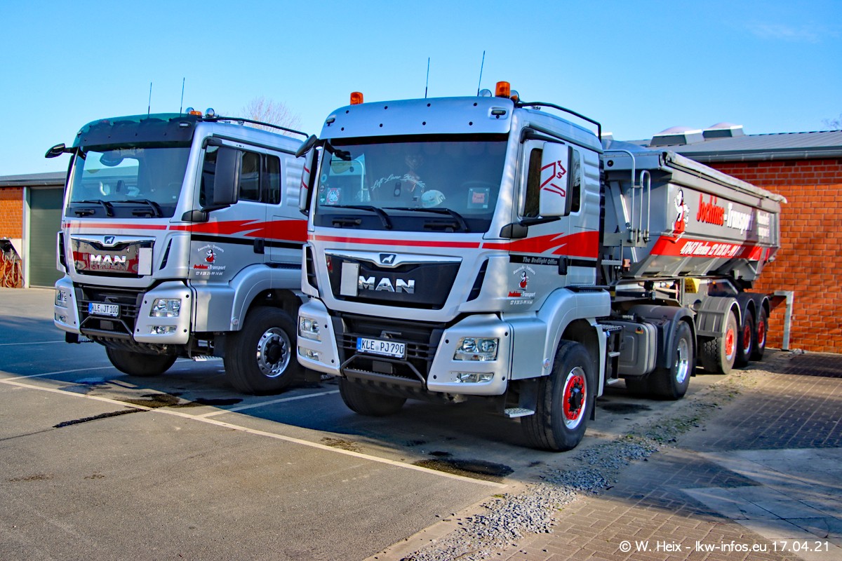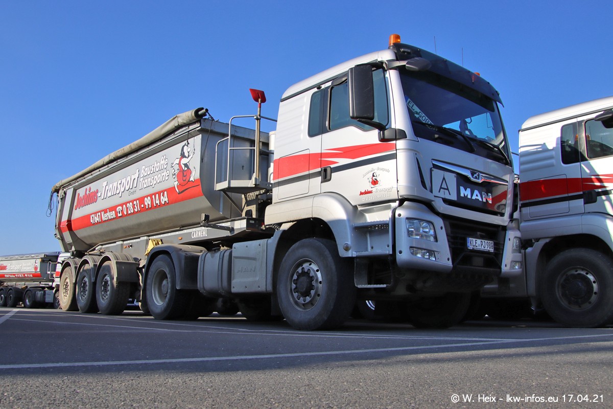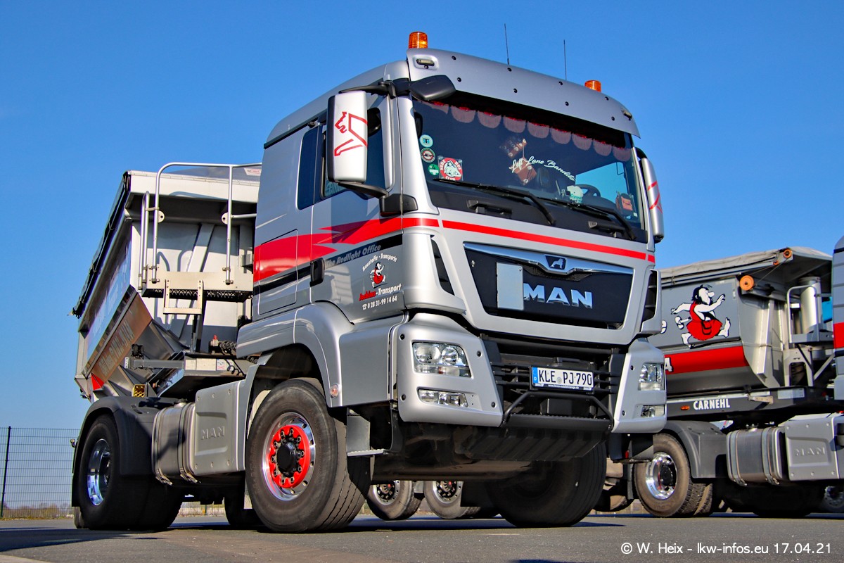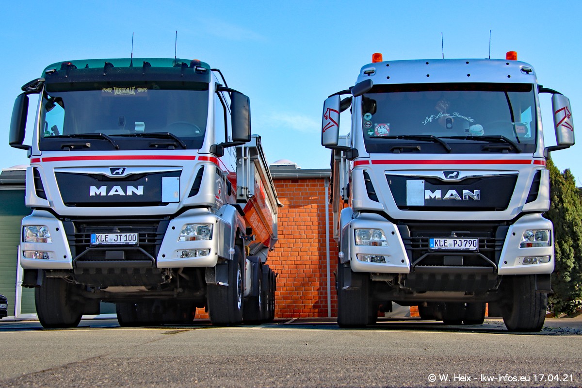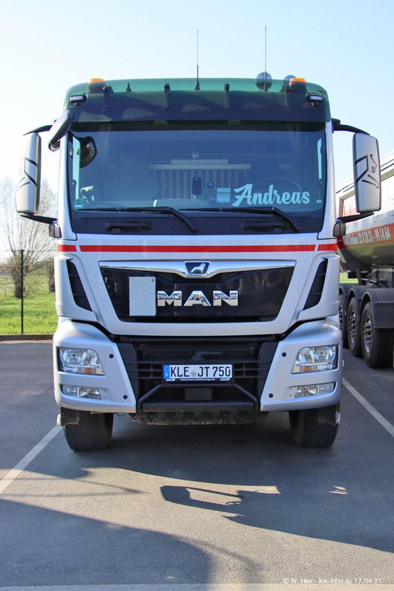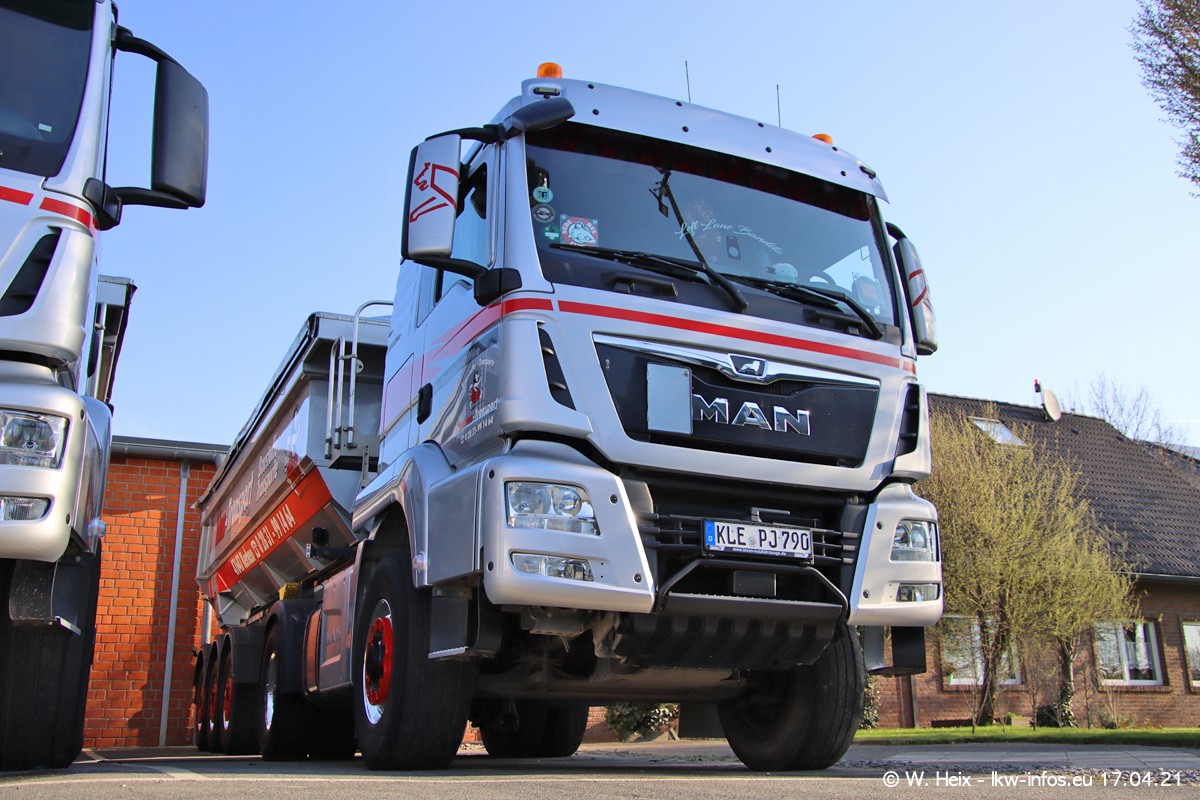 Es sind schon wieder fast 1,5 Jahre vergangen, seit ich zuletzt bei Jochims zu Besuch war. Entsprechend gibt es viele neue LKW. Das sind meines Wissens alles Zugmaschinen von MAN, zu erkennen an den jetzt geänderten Kennzeichen mit der Kombination "KLE JT" und nicht mehr "KLE PJ". Jochims hat in der letzten Zeit noch viele MAN TGS der jetzt alten Baureihe gekauft, aber jetzt ist auch seit einigen Wochen der erste neue MAN TGS im Fuhrpark. Wir haben ein kleines Fotoshooting auf den Gelände gemacht und den alten und den neuen MAN nebeneinander gestellt. Im Sommer kommen voraussichtlich weitere neue LKW. Alle Bilder sind vom Hauptsitz in Kerken, wo ungefähr die Hälfe der Fahrzeuge steht.