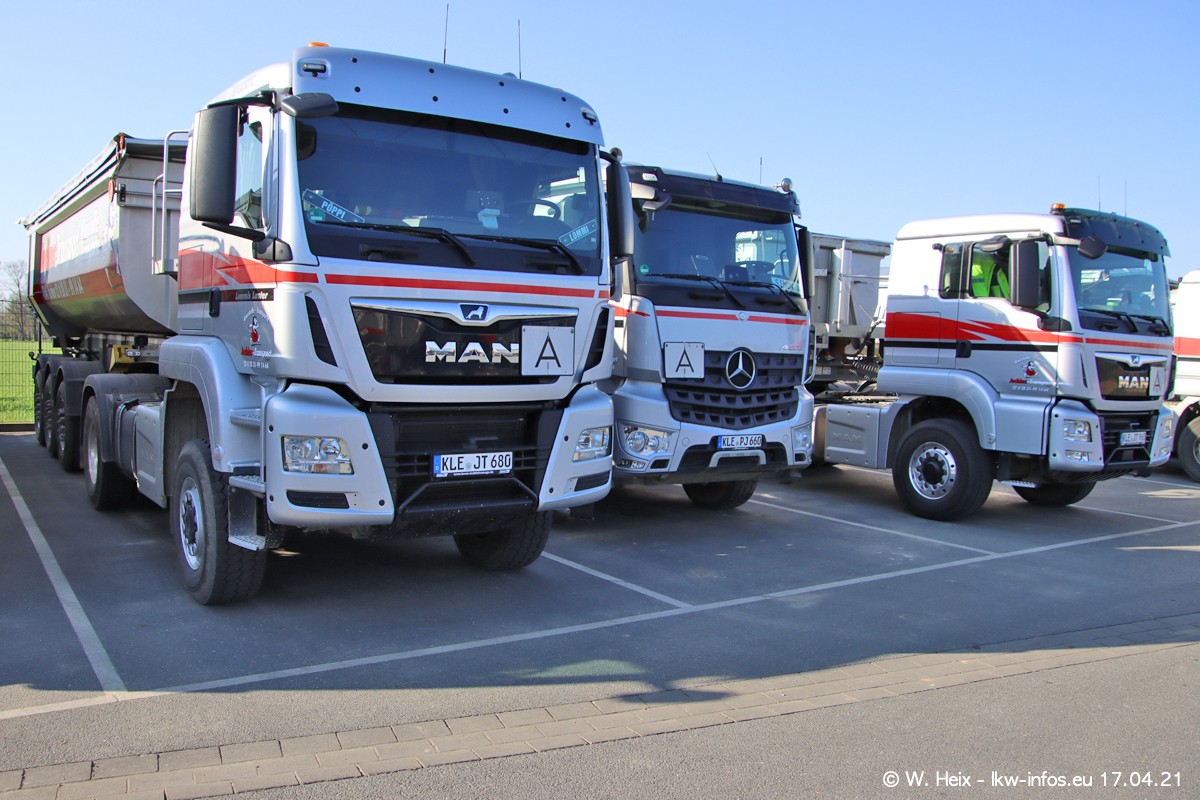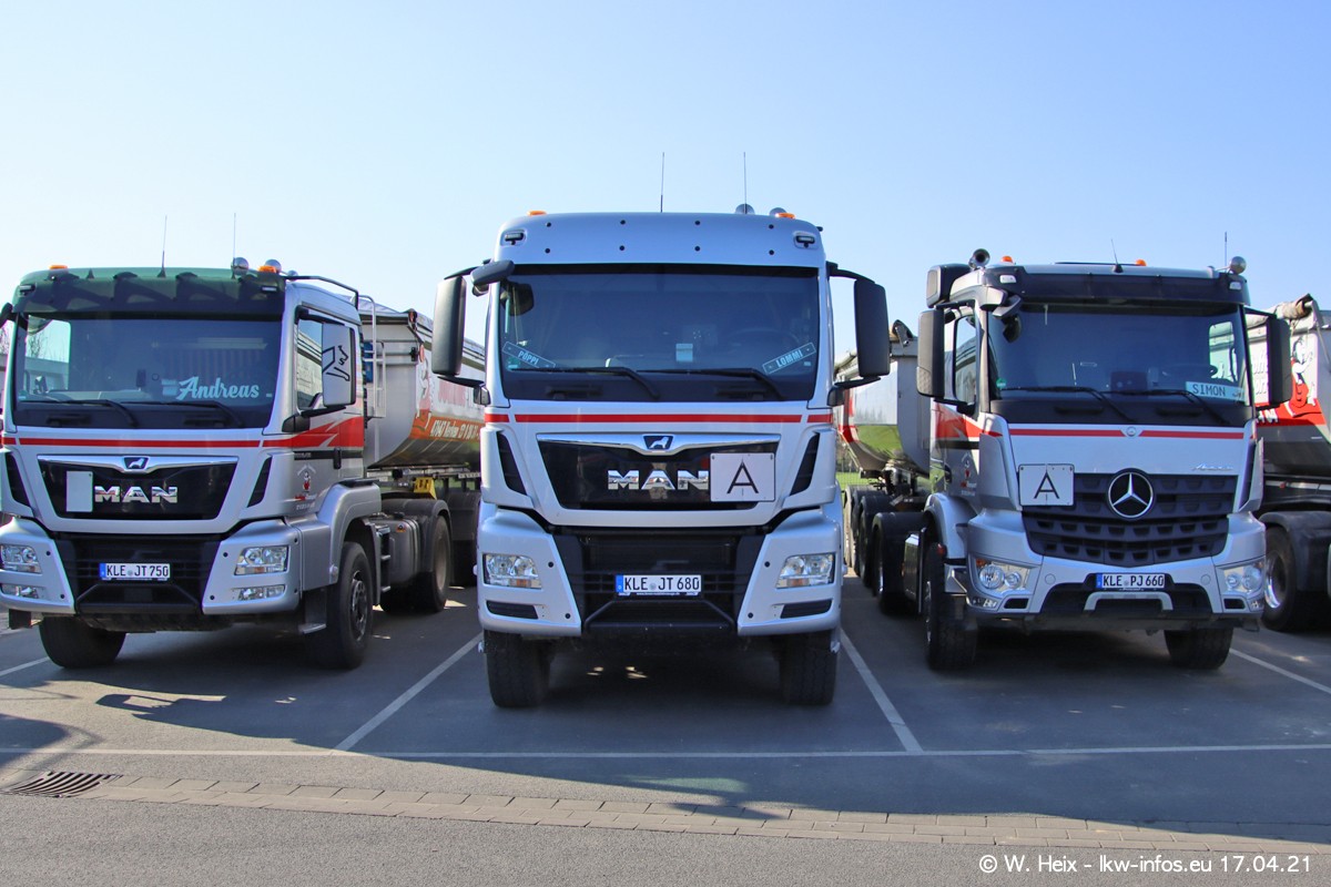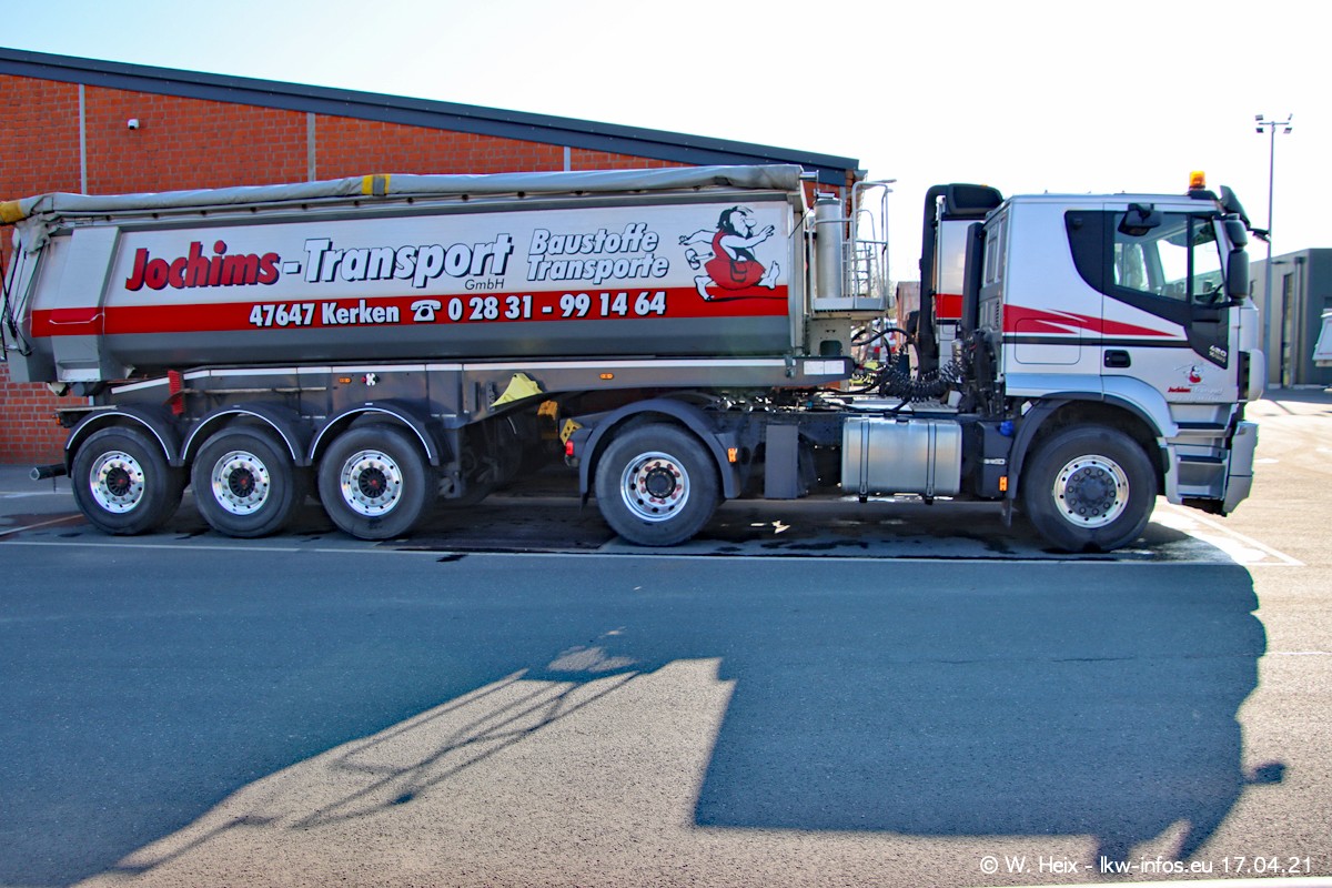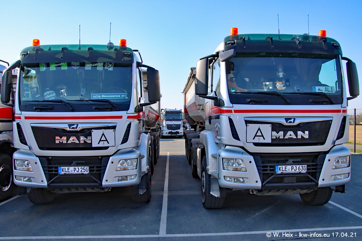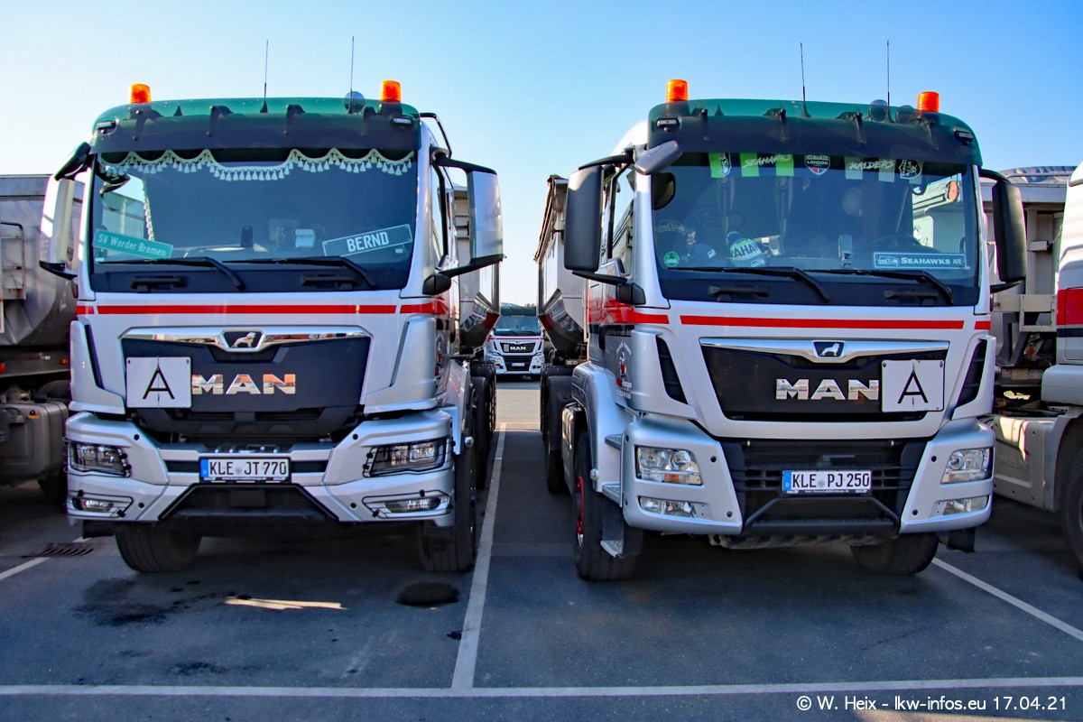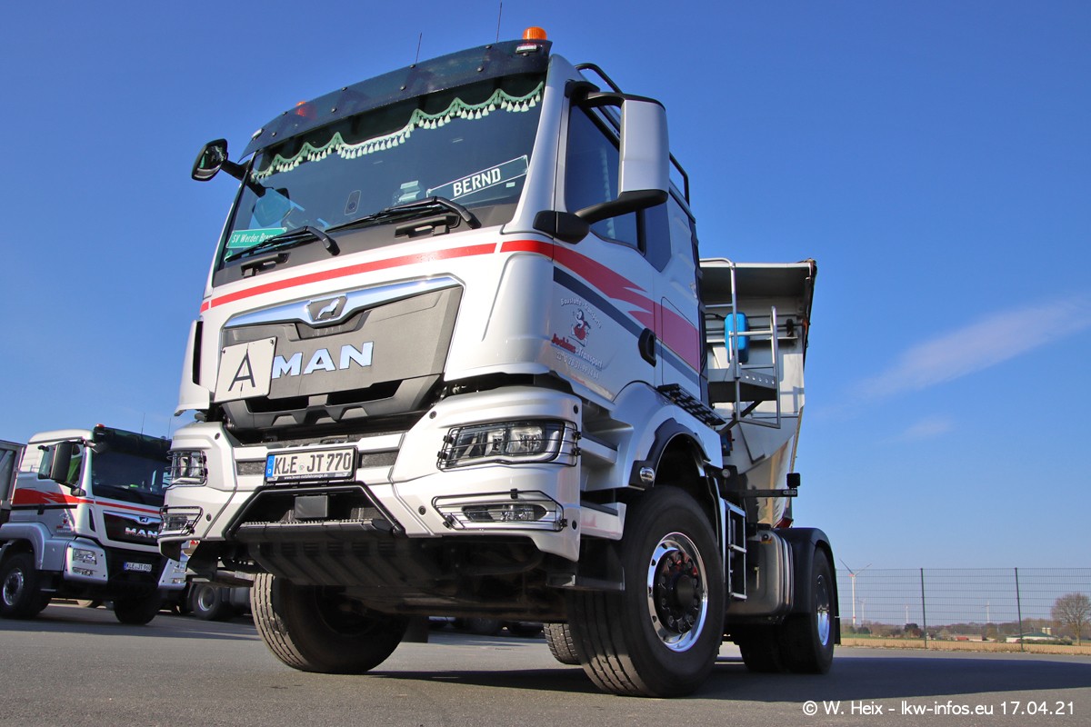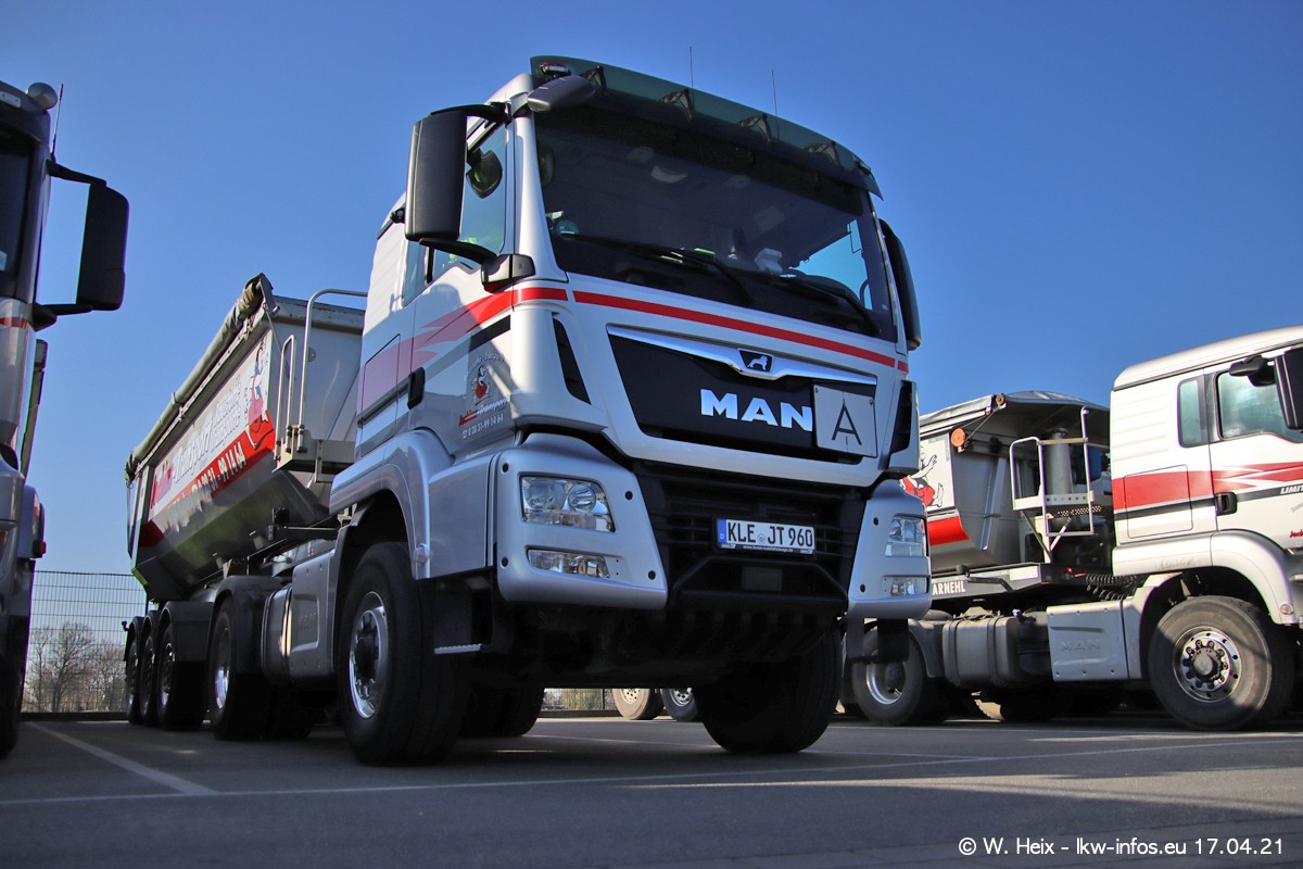 Es sind schon wieder fast 1,5 Jahre vergangen, seit ich zuletzt bei Jochims zu Besuch war. Entsprechend gibt es viele neue LKW. Das sind meines Wissens alles Zugmaschinen von MAN, zu erkennen an den jetzt geänderten Kennzeichen mit der Kombination "KLE JT" und nicht mehr "KLE PJ". Jochims hat in der letzten Zeit noch viele MAN TGS der jetzt alten Baureihe gekauft, aber jetzt ist auch seit einigen Wochen der erste neue MAN TGS im Fuhrpark. Wir haben ein kleines Fotoshooting auf den Gelände gemacht und den alten und den neuen MAN nebeneinander gestellt. Im Sommer kommen voraussichtlich weitere neue LKW. Alle Bilder sind vom Hauptsitz in Kerken, wo ungefähr die Hälfe der Fahrzeuge steht.