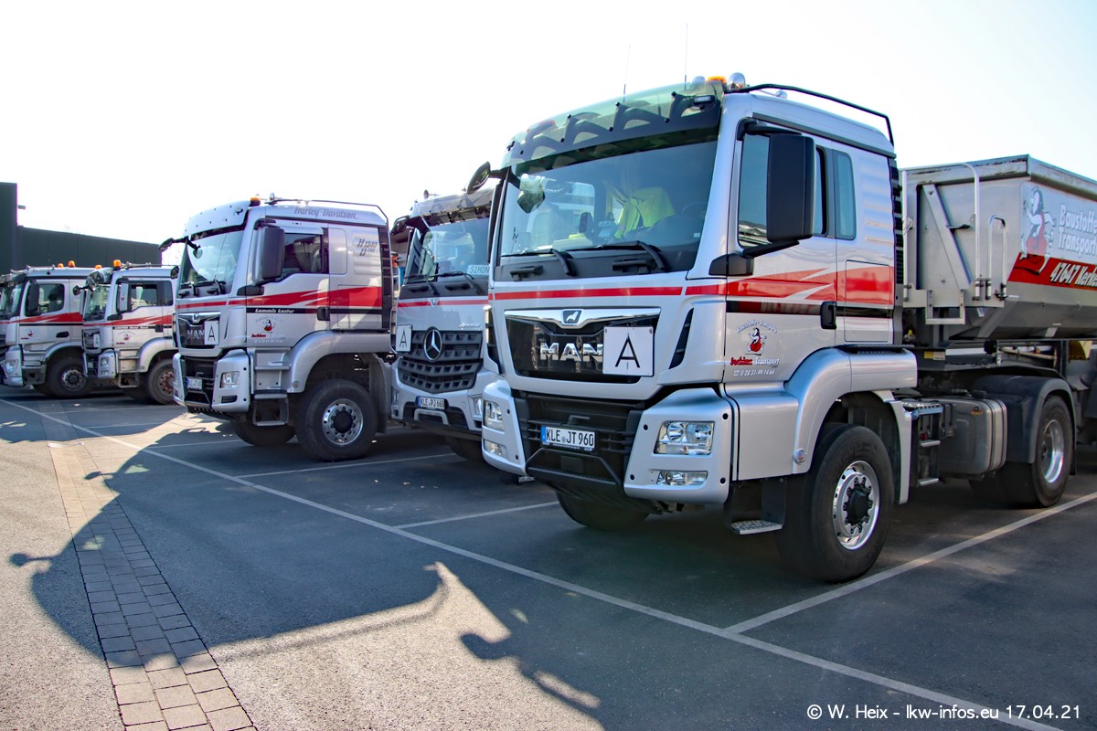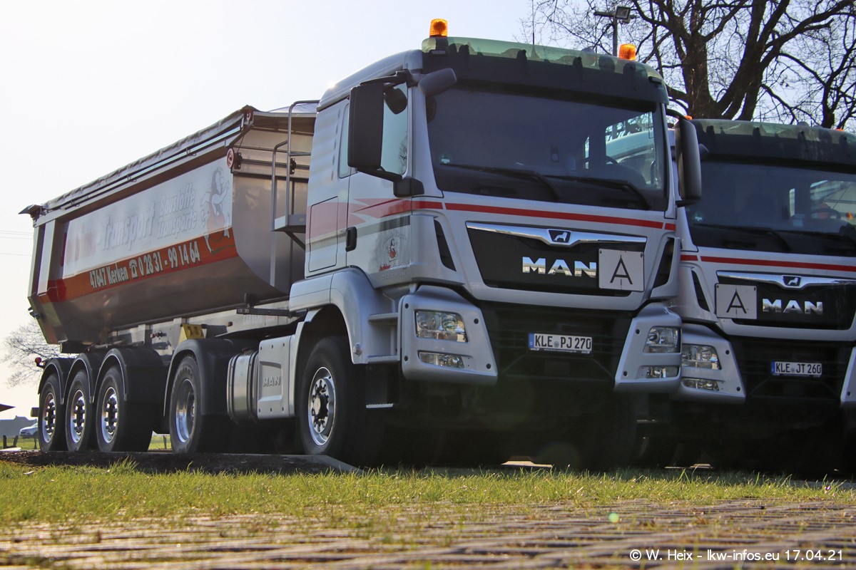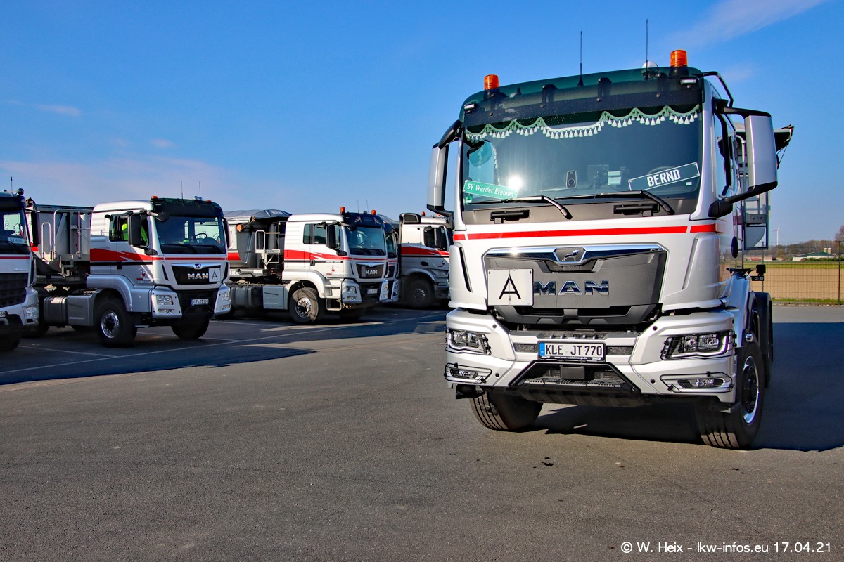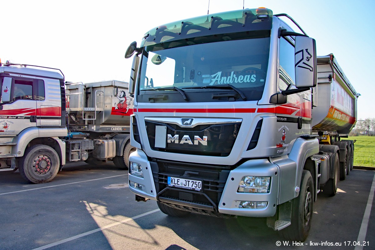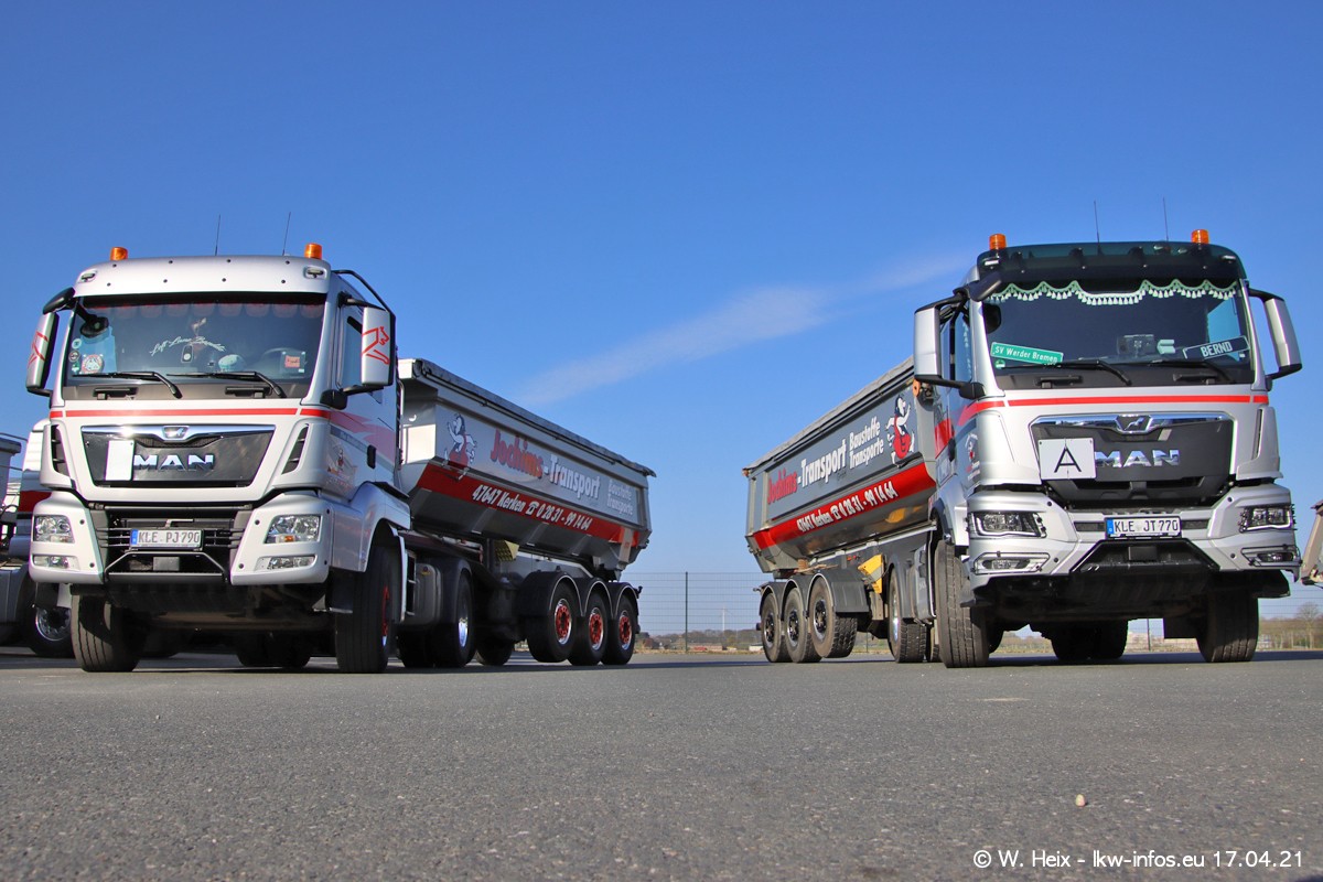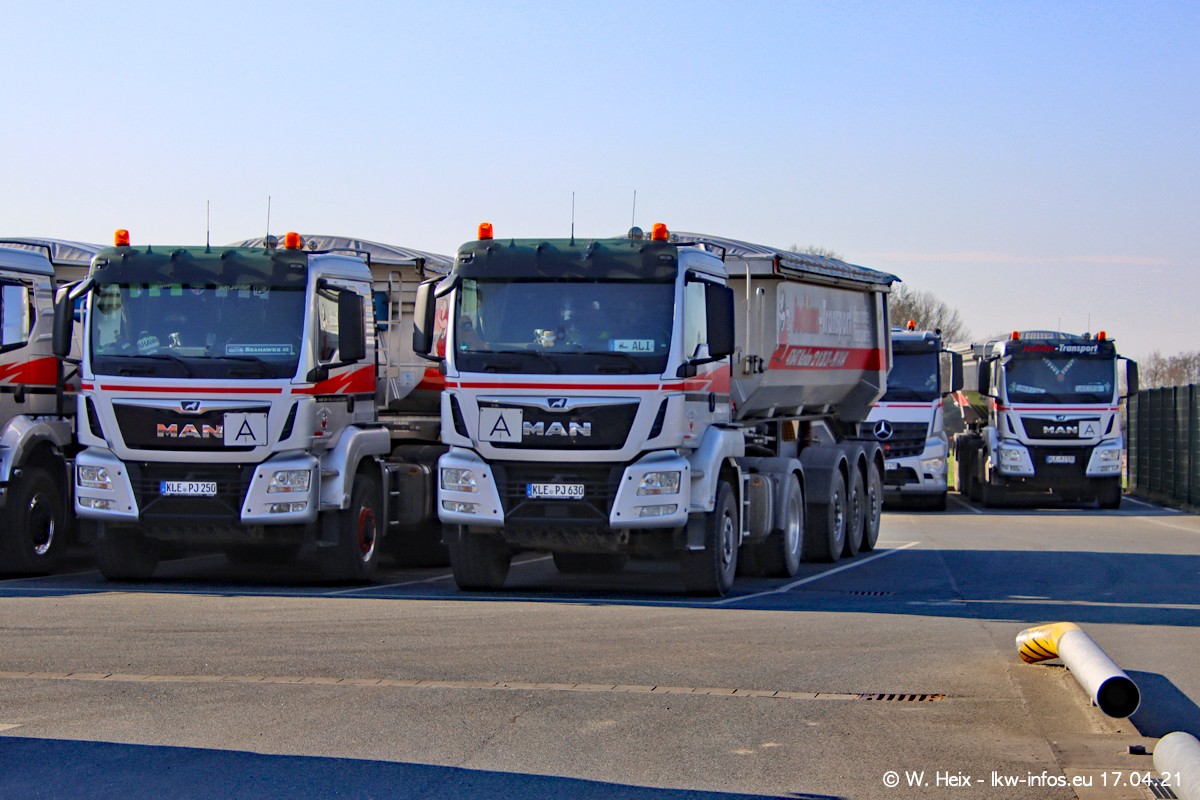 Es sind schon wieder fast 1,5 Jahre vergangen, seit ich zuletzt bei Jochims zu Besuch war. Entsprechend gibt es viele neue LKW. Das sind meines Wissens alles Zugmaschinen von MAN, zu erkennen an den jetzt geänderten Kennzeichen mit der Kombination "KLE JT" und nicht mehr "KLE PJ". Jochims hat in der letzten Zeit noch viele MAN TGS der jetzt alten Baureihe gekauft, aber jetzt ist auch seit einigen Wochen der erste neue MAN TGS im Fuhrpark. Wir haben ein kleines Fotoshooting auf den Gelände gemacht und den alten und den neuen MAN nebeneinander gestellt. Im Sommer kommen voraussichtlich weitere neue LKW. Alle Bilder sind vom Hauptsitz in Kerken, wo ungefähr die Hälfe der Fahrzeuge steht.