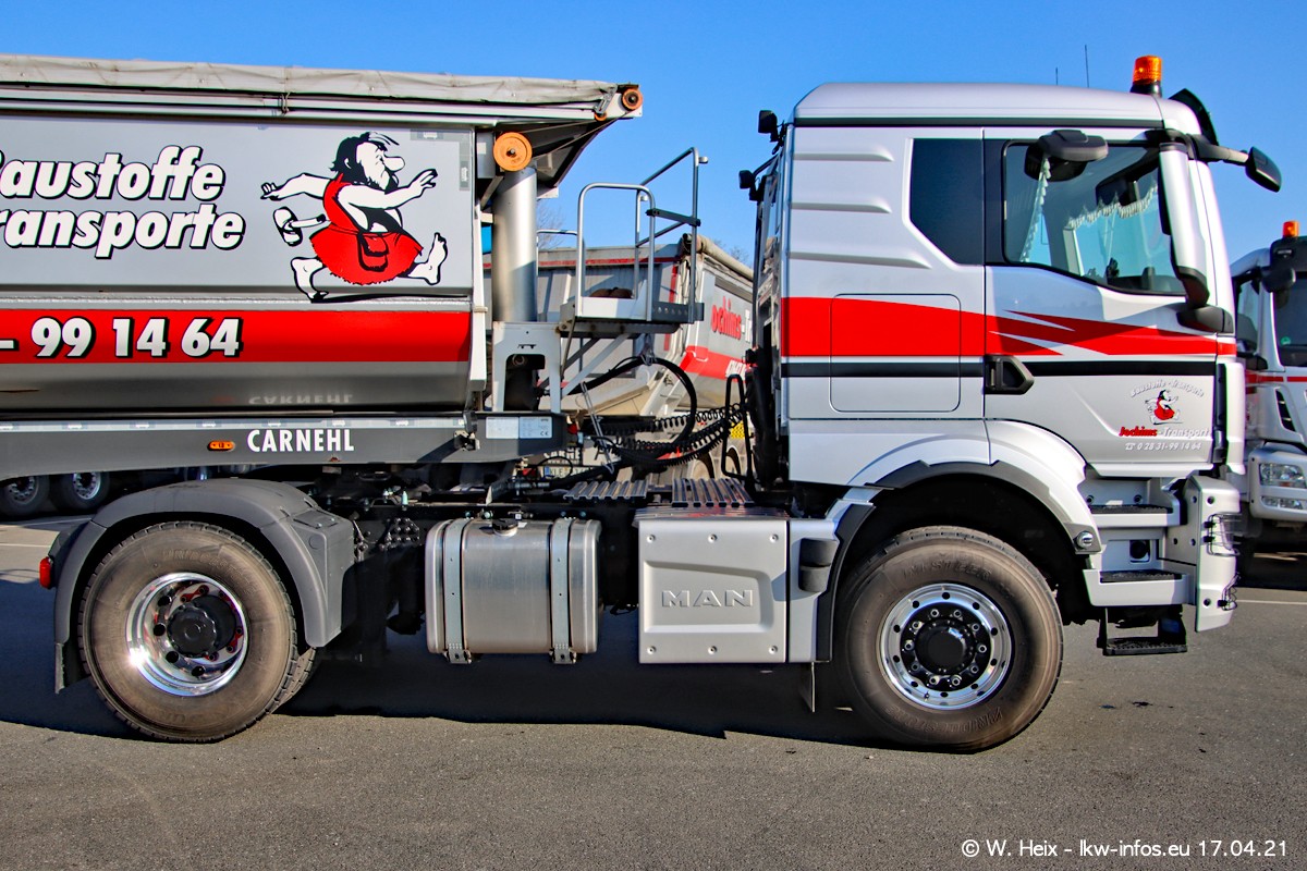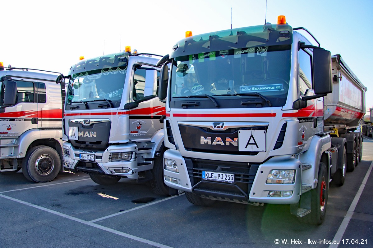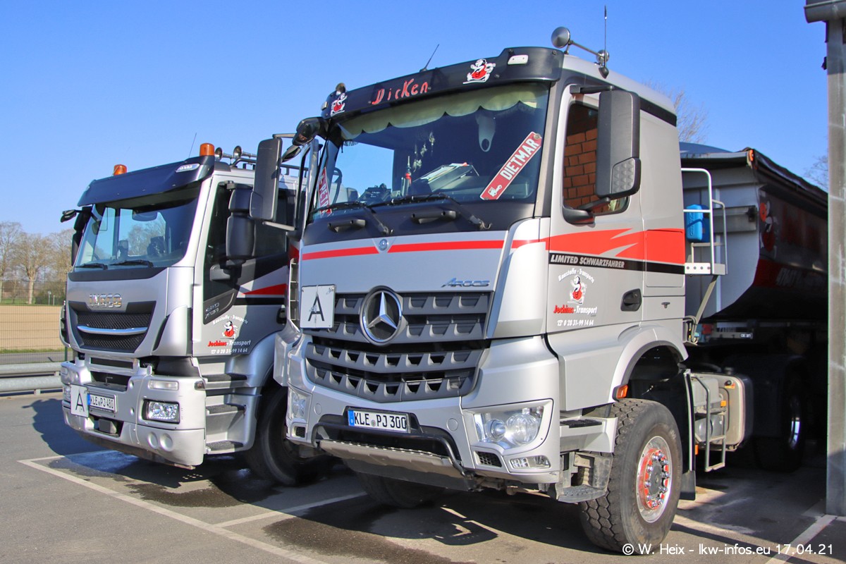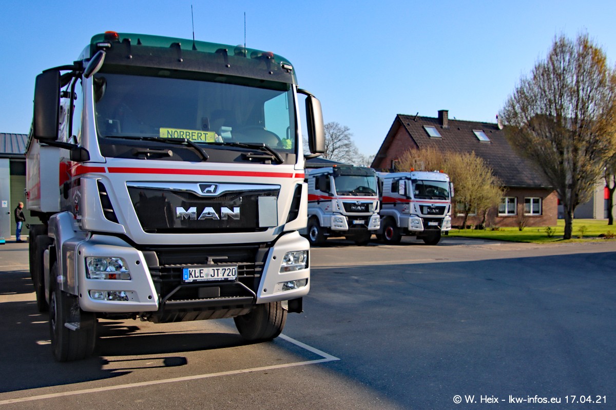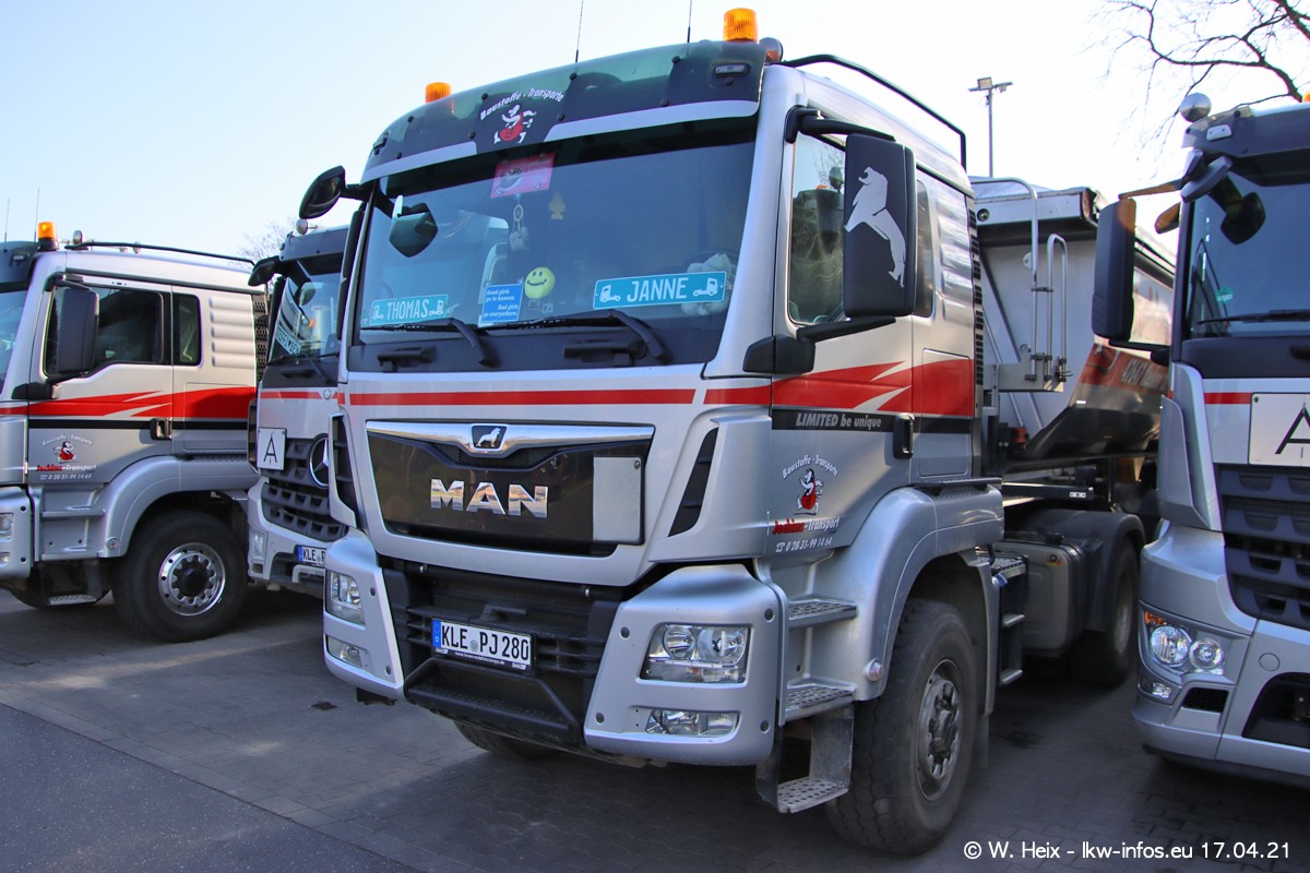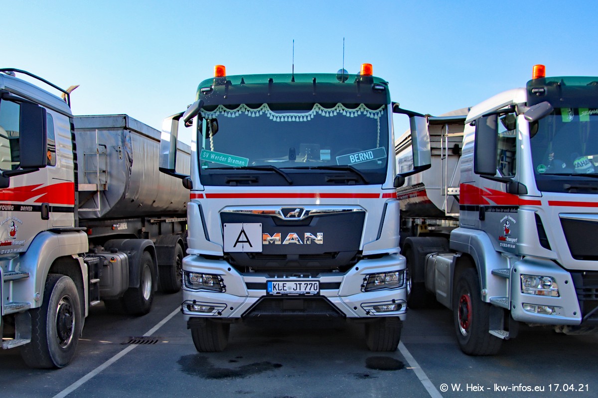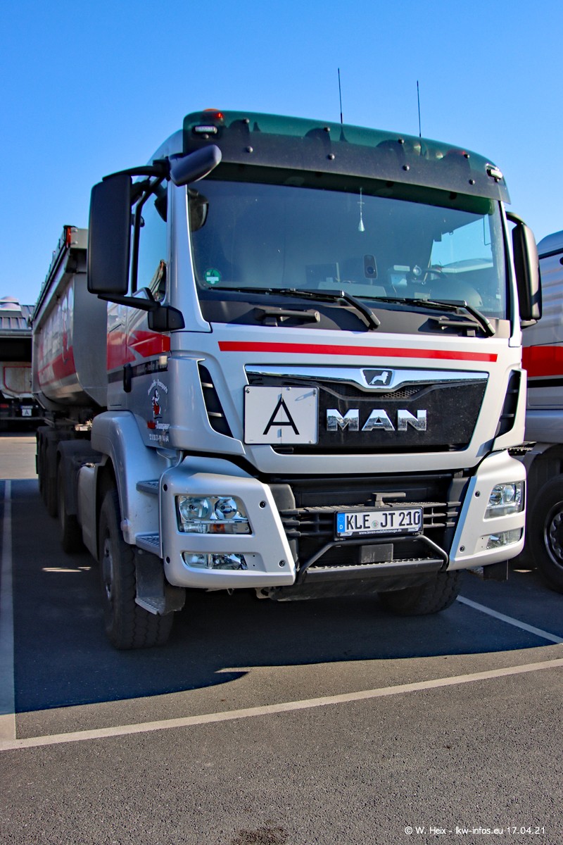 Es sind schon wieder fast 1,5 Jahre vergangen, seit ich zuletzt bei Jochims zu Besuch war. Entsprechend gibt es viele neue LKW. Das sind meines Wissens alles Zugmaschinen von MAN, zu erkennen an den jetzt geänderten Kennzeichen mit der Kombination "KLE JT" und nicht mehr "KLE PJ". Jochims hat in der letzten Zeit noch viele MAN TGS der jetzt alten Baureihe gekauft, aber jetzt ist auch seit einigen Wochen der erste neue MAN TGS im Fuhrpark. Wir haben ein kleines Fotoshooting auf den Gelände gemacht und den alten und den neuen MAN nebeneinander gestellt. Im Sommer kommen voraussichtlich weitere neue LKW. Alle Bilder sind vom Hauptsitz in Kerken, wo ungefähr die Hälfe der Fahrzeuge steht.