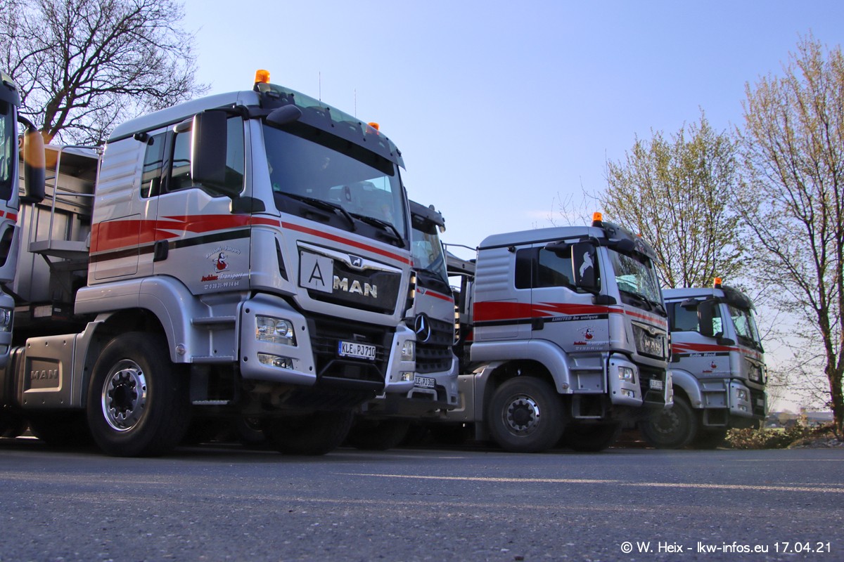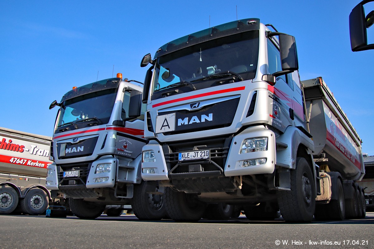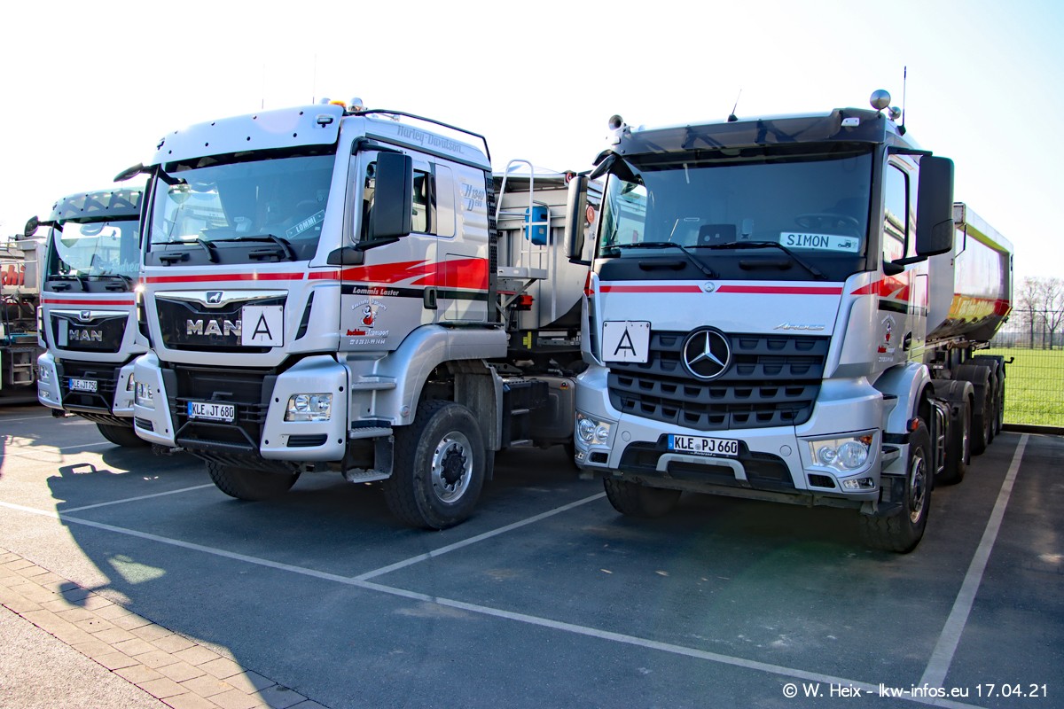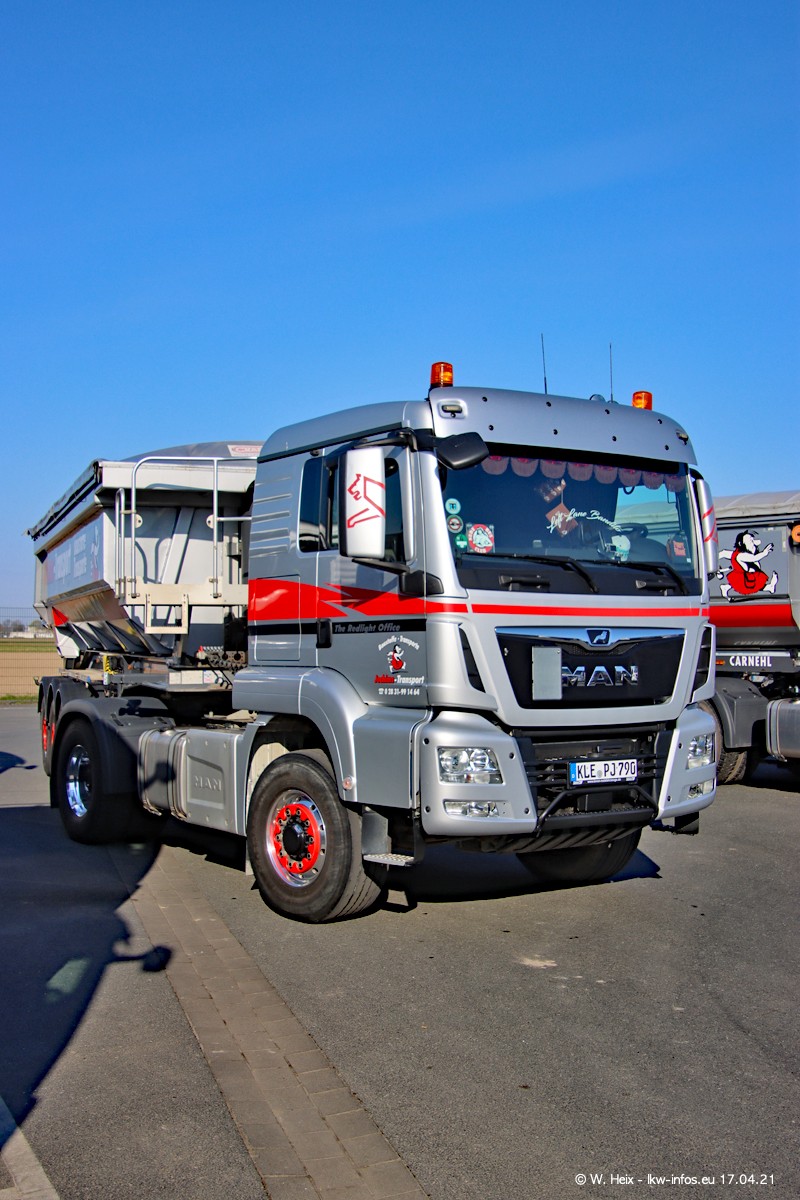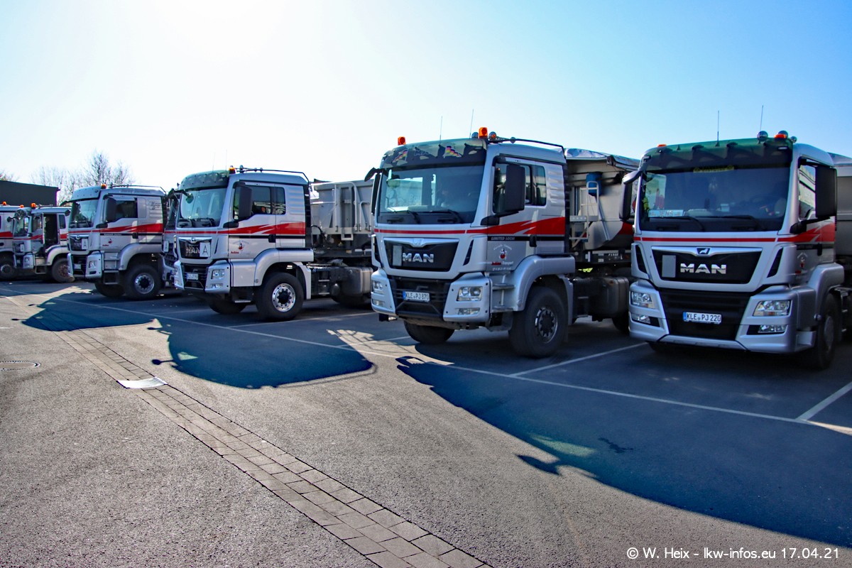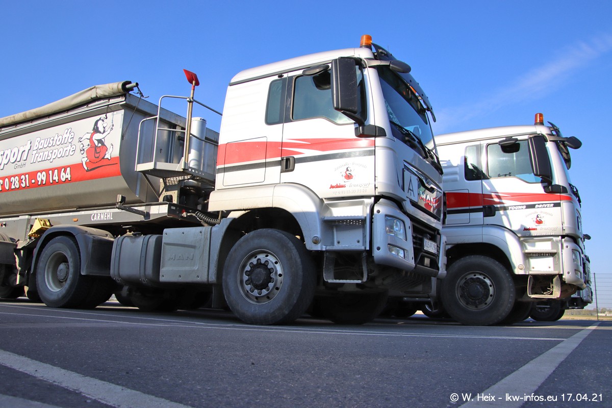 Es sind schon wieder fast 1,5 Jahre vergangen, seit ich zuletzt bei Jochims zu Besuch war. Entsprechend gibt es viele neue LKW. Das sind meines Wissens alles Zugmaschinen von MAN, zu erkennen an den jetzt geänderten Kennzeichen mit der Kombination "KLE JT" und nicht mehr "KLE PJ". Jochims hat in der letzten Zeit noch viele MAN TGS der jetzt alten Baureihe gekauft, aber jetzt ist auch seit einigen Wochen der erste neue MAN TGS im Fuhrpark. Wir haben ein kleines Fotoshooting auf den Gelände gemacht und den alten und den neuen MAN nebeneinander gestellt. Im Sommer kommen voraussichtlich weitere neue LKW. Alle Bilder sind vom Hauptsitz in Kerken, wo ungefähr die Hälfe der Fahrzeuge steht.