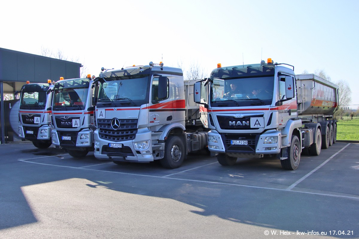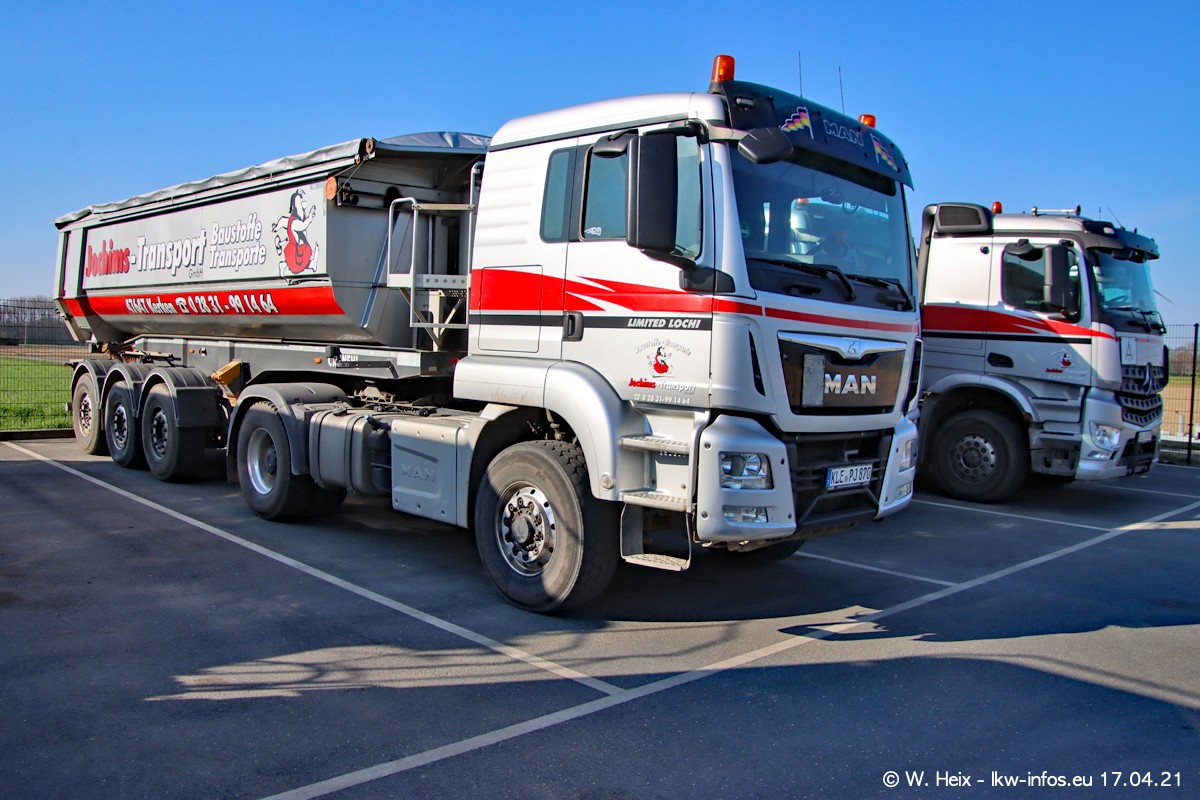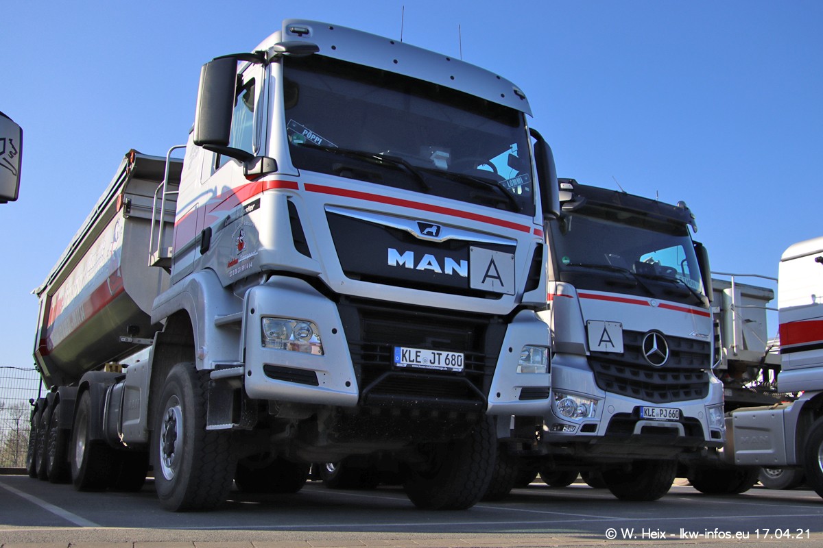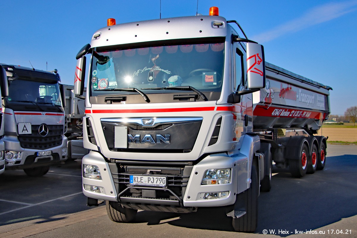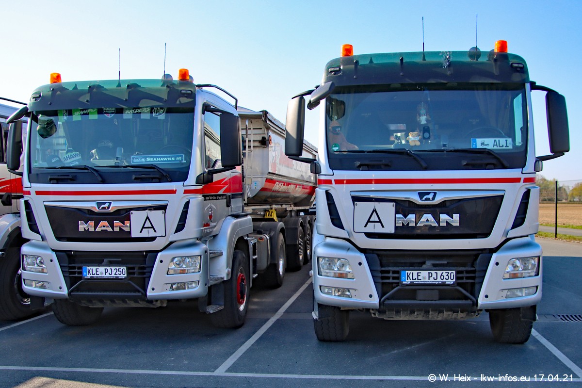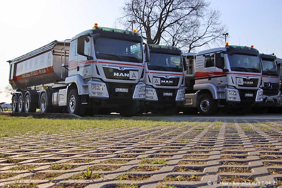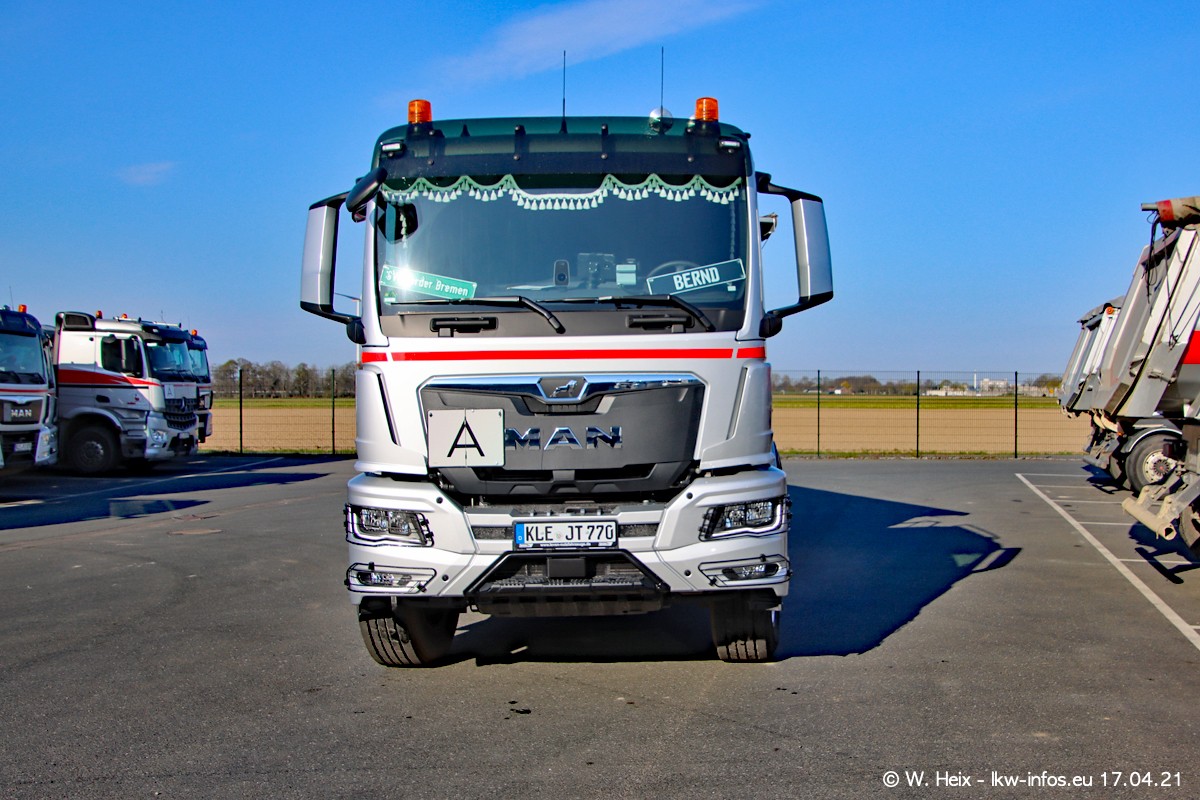 Es sind schon wieder fast 1,5 Jahre vergangen, seit ich zuletzt bei Jochims zu Besuch war. Entsprechend gibt es viele neue LKW. Das sind meines Wissens alles Zugmaschinen von MAN, zu erkennen an den jetzt geänderten Kennzeichen mit der Kombination "KLE JT" und nicht mehr "KLE PJ". Jochims hat in der letzten Zeit noch viele MAN TGS der jetzt alten Baureihe gekauft, aber jetzt ist auch seit einigen Wochen der erste neue MAN TGS im Fuhrpark. Wir haben ein kleines Fotoshooting auf den Gelände gemacht und den alten und den neuen MAN nebeneinander gestellt. Im Sommer kommen voraussichtlich weitere neue LKW. Alle Bilder sind vom Hauptsitz in Kerken, wo ungefähr die Hälfe der Fahrzeuge steht.