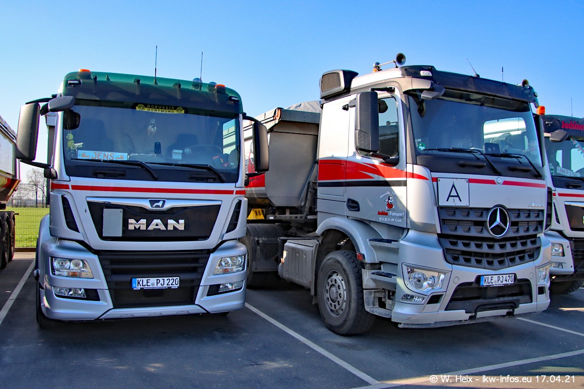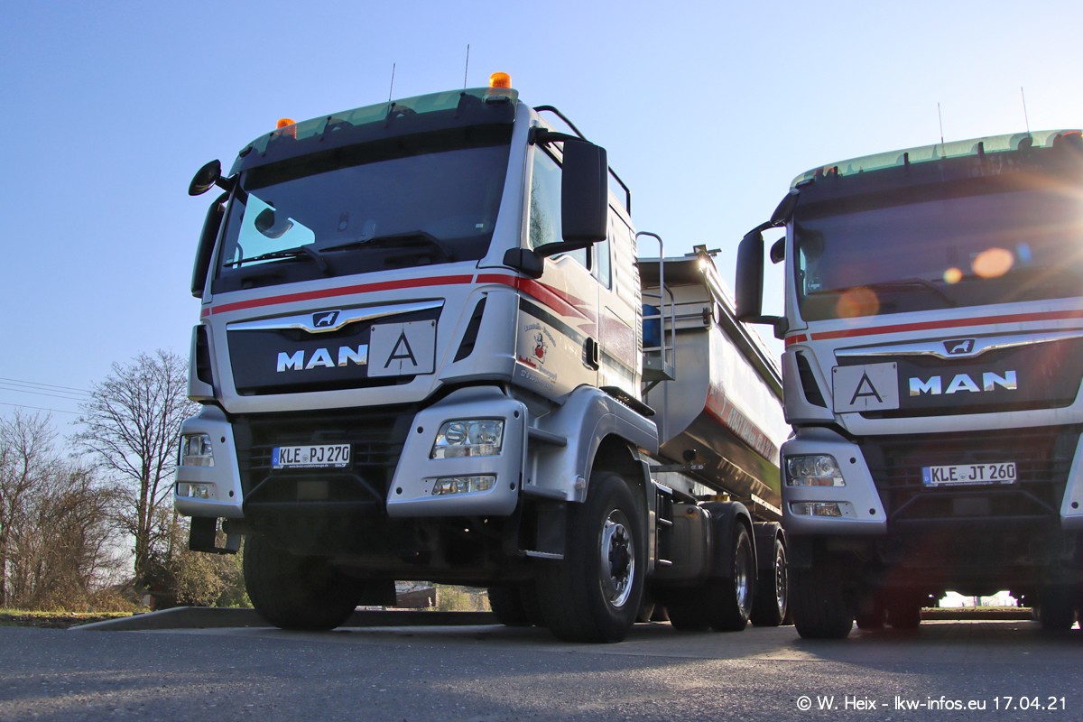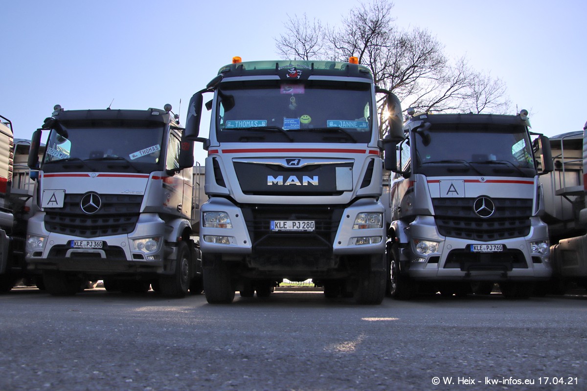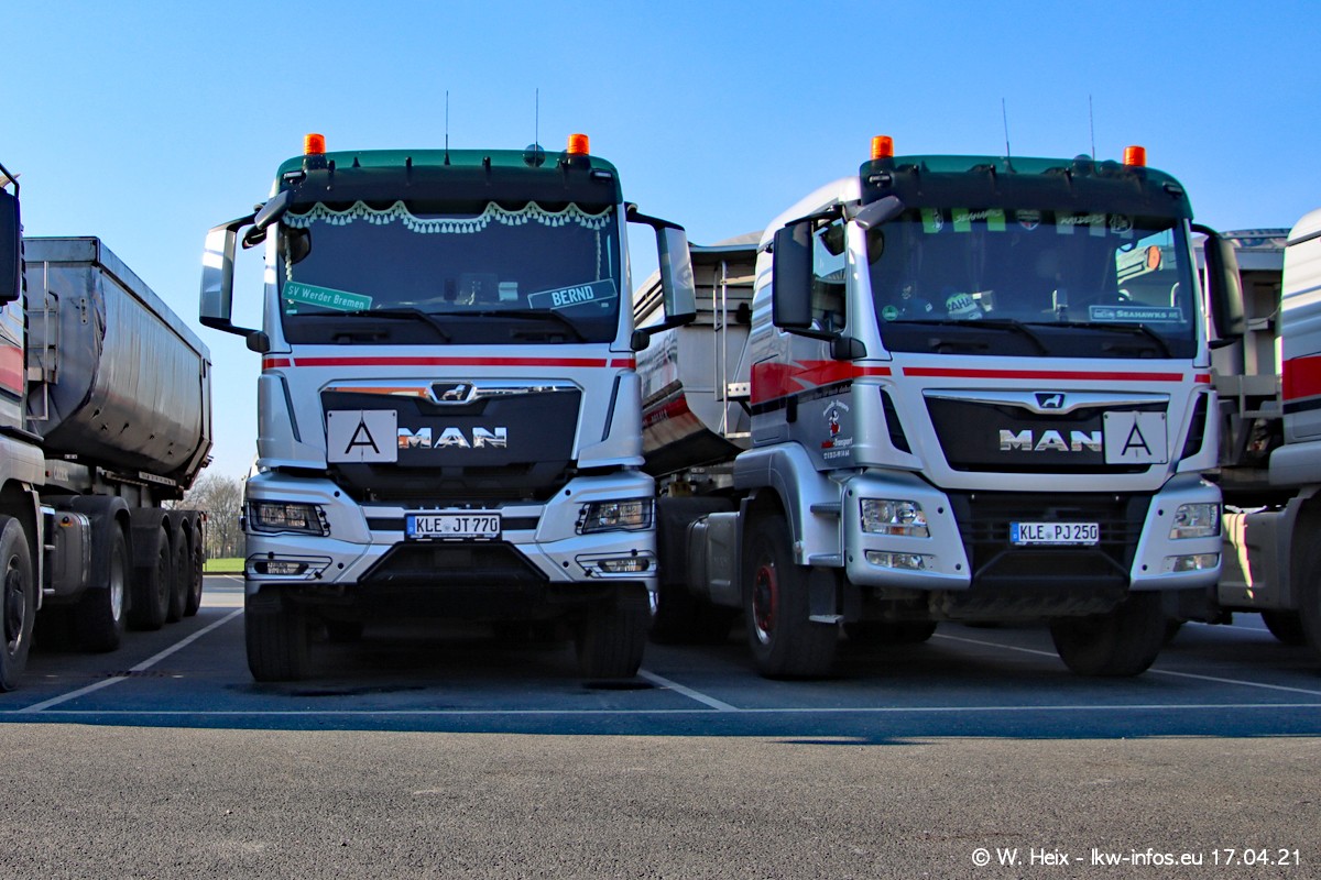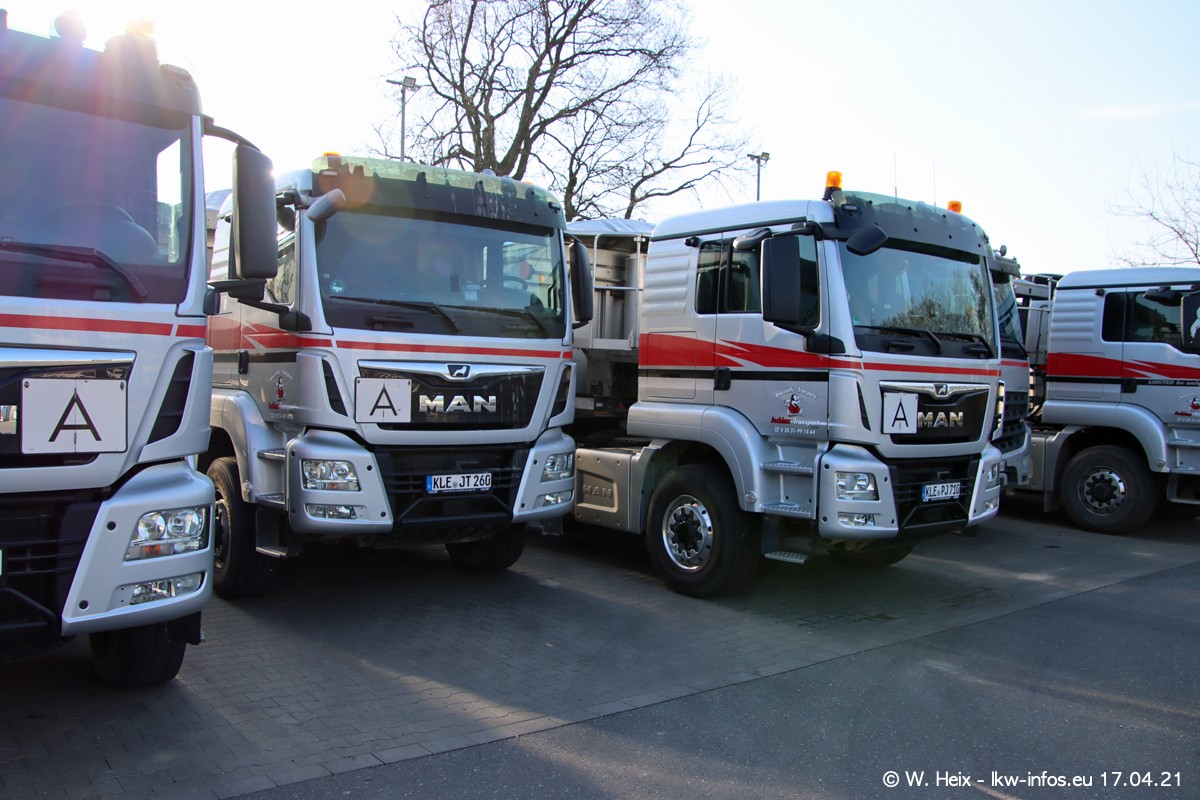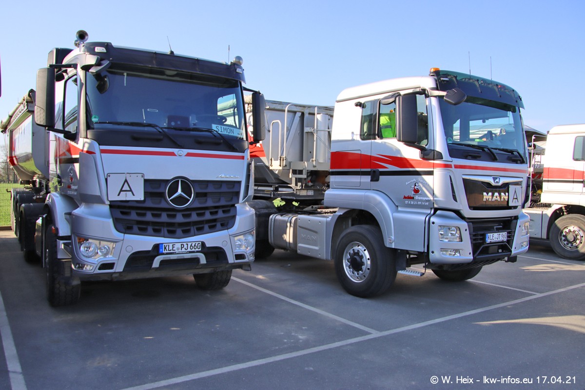 Es sind schon wieder fast 1,5 Jahre vergangen, seit ich zuletzt bei Jochims zu Besuch war. Entsprechend gibt es viele neue LKW. Das sind meines Wissens alles Zugmaschinen von MAN, zu erkennen an den jetzt geänderten Kennzeichen mit der Kombination "KLE JT" und nicht mehr "KLE PJ". Jochims hat in der letzten Zeit noch viele MAN TGS der jetzt alten Baureihe gekauft, aber jetzt ist auch seit einigen Wochen der erste neue MAN TGS im Fuhrpark. Wir haben ein kleines Fotoshooting auf den Gelände gemacht und den alten und den neuen MAN nebeneinander gestellt. Im Sommer kommen voraussichtlich weitere neue LKW. Alle Bilder sind vom Hauptsitz in Kerken, wo ungefähr die Hälfe der Fahrzeuge steht.
