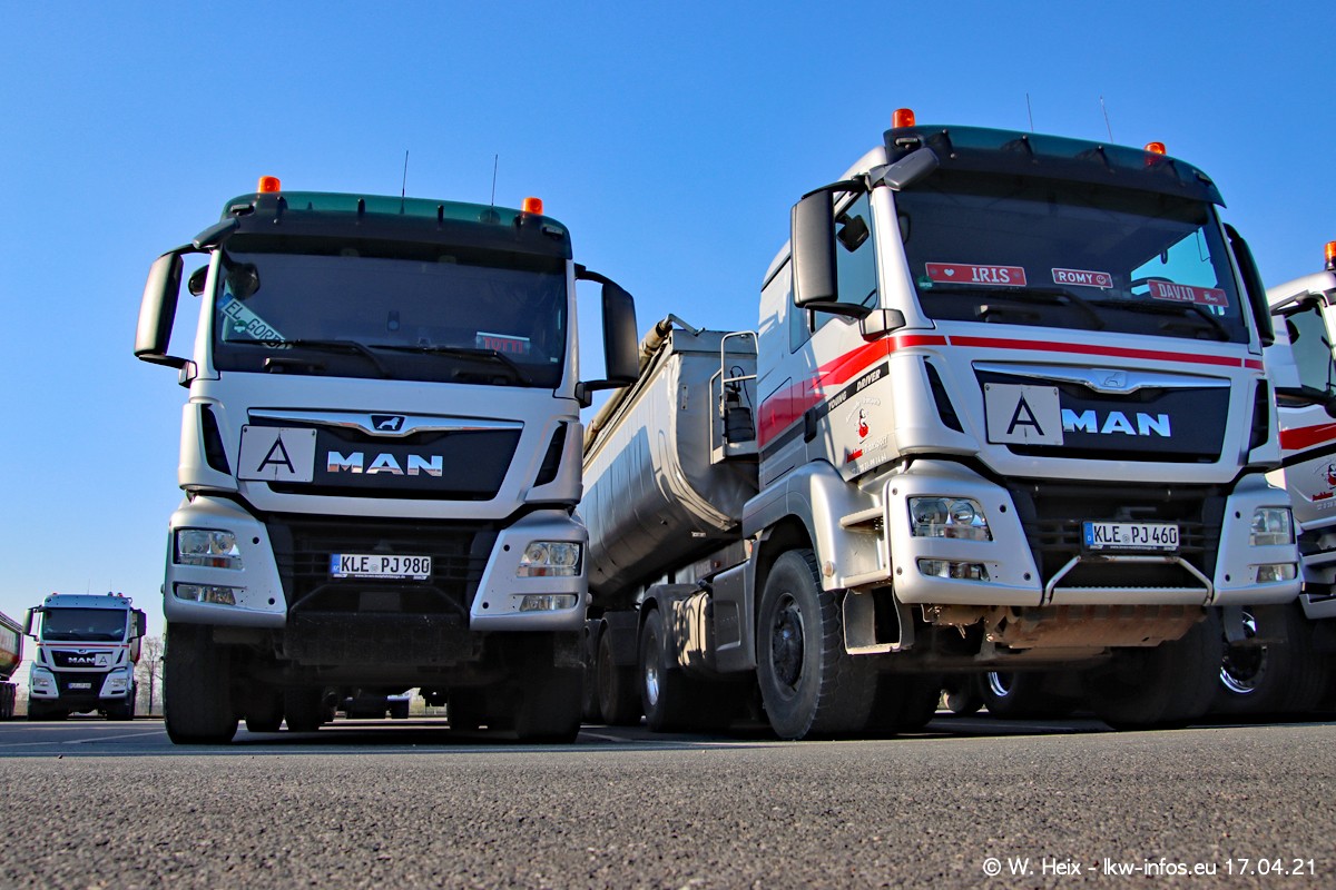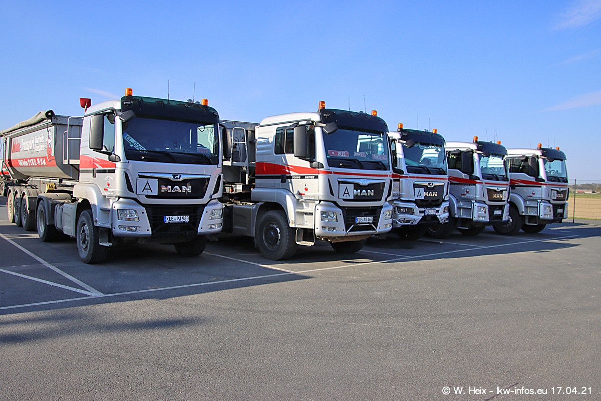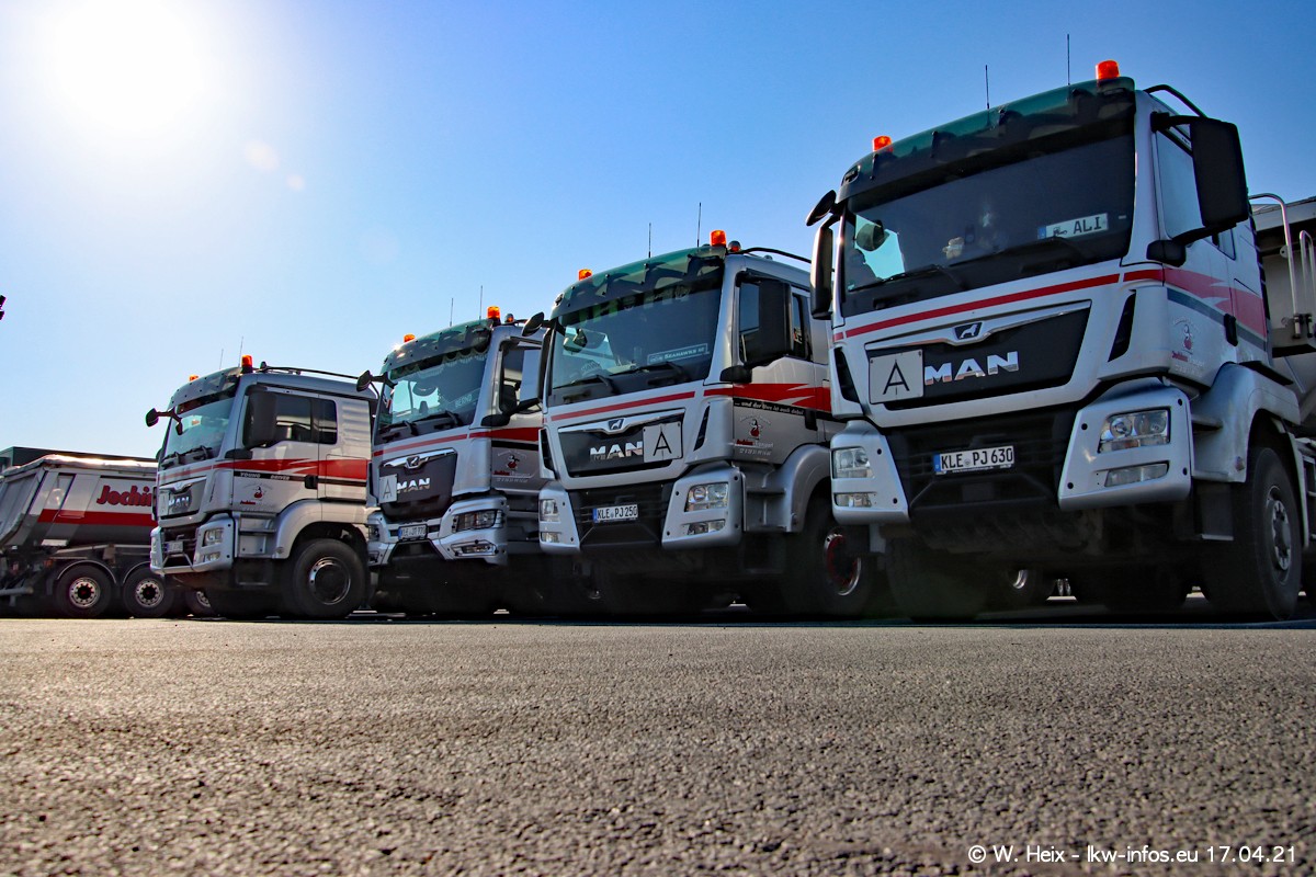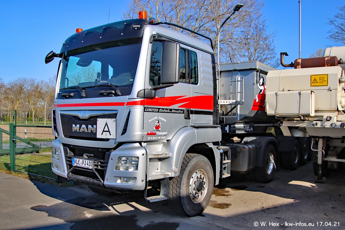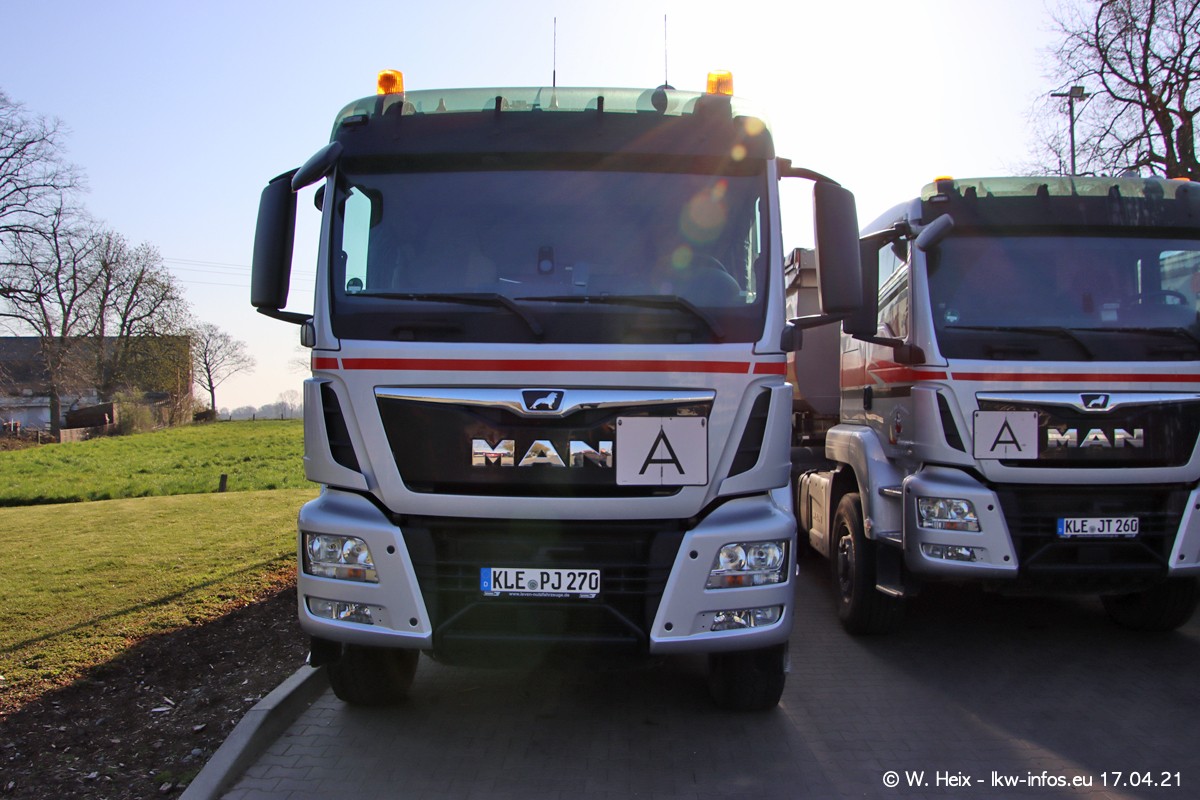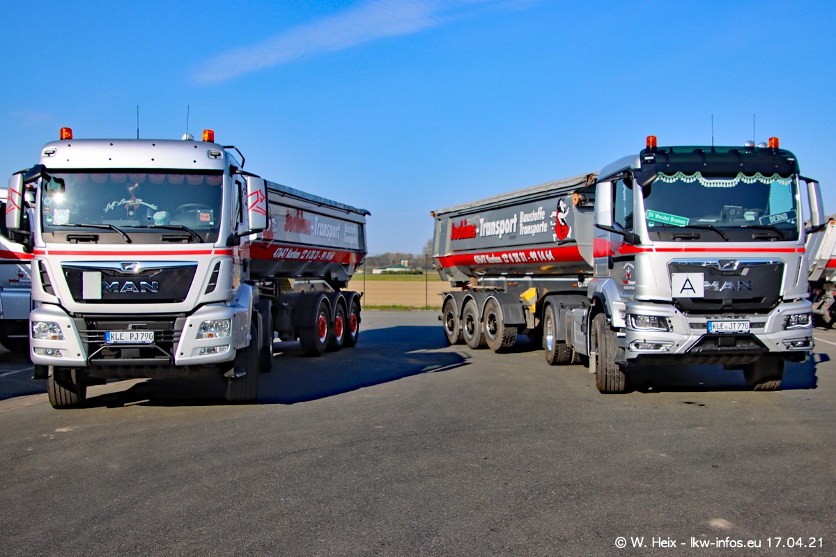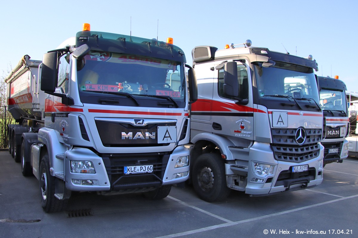 Es sind schon wieder fast 1,5 Jahre vergangen, seit ich zuletzt bei Jochims zu Besuch war. Entsprechend gibt es viele neue LKW. Das sind meines Wissens alles Zugmaschinen von MAN, zu erkennen an den jetzt geänderten Kennzeichen mit der Kombination "KLE JT" und nicht mehr "KLE PJ". Jochims hat in der letzten Zeit noch viele MAN TGS der jetzt alten Baureihe gekauft, aber jetzt ist auch seit einigen Wochen der erste neue MAN TGS im Fuhrpark. Wir haben ein kleines Fotoshooting auf den Gelände gemacht und den alten und den neuen MAN nebeneinander gestellt. Im Sommer kommen voraussichtlich weitere neue LKW. Alle Bilder sind vom Hauptsitz in Kerken, wo ungefähr die Hälfe der Fahrzeuge steht.