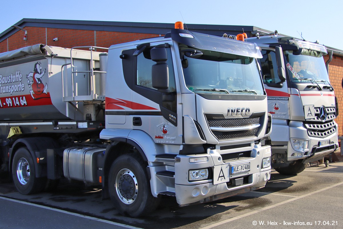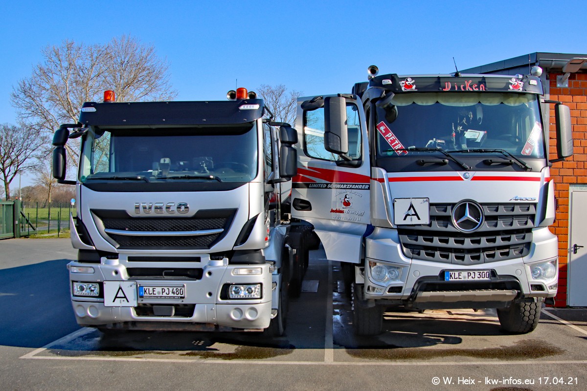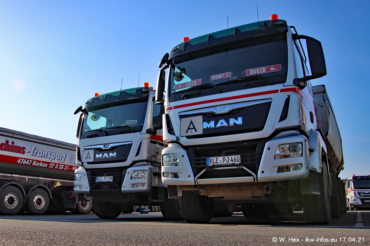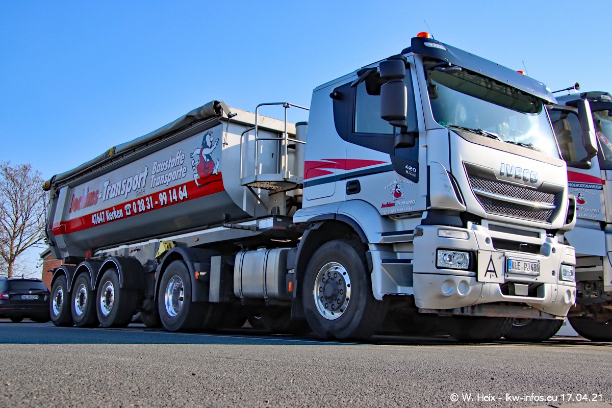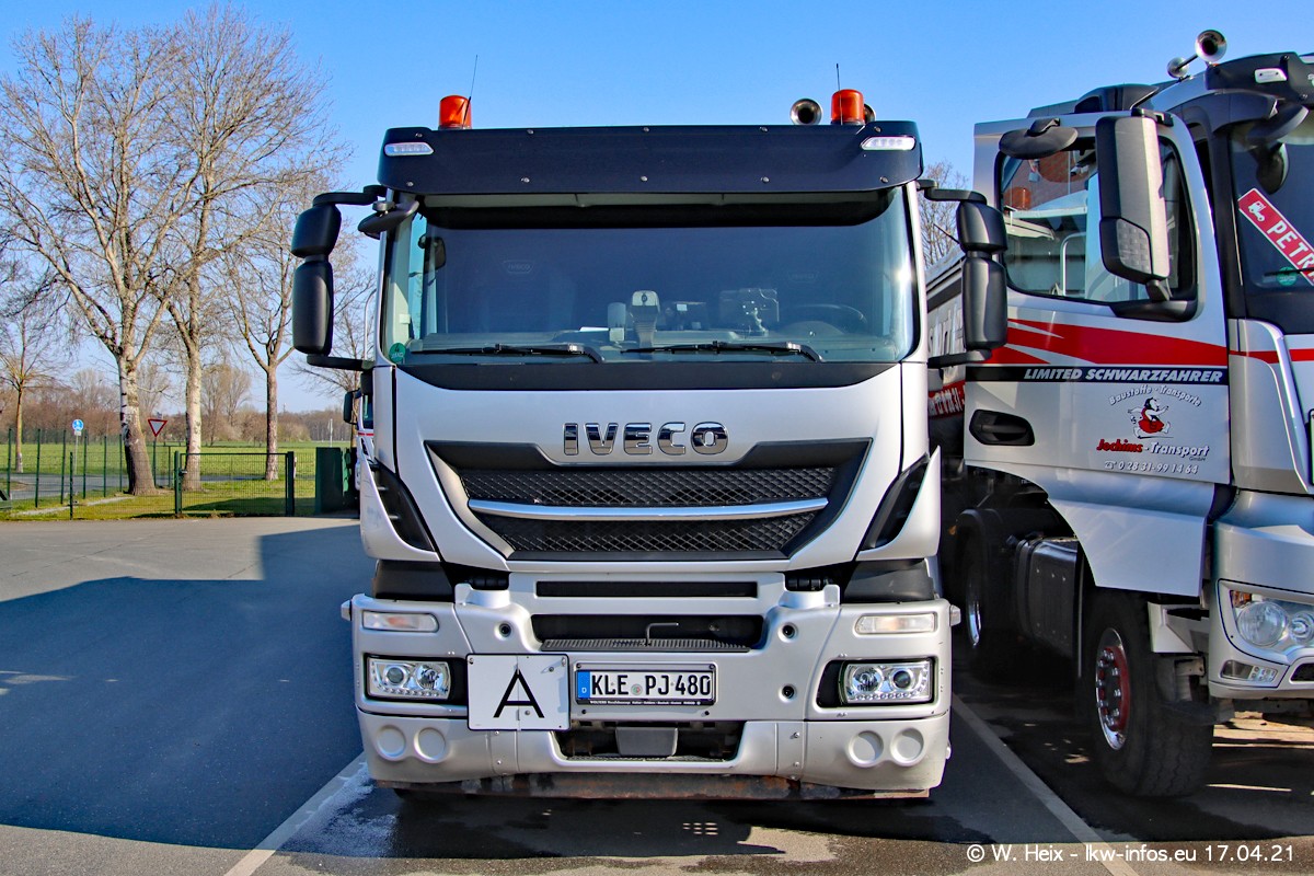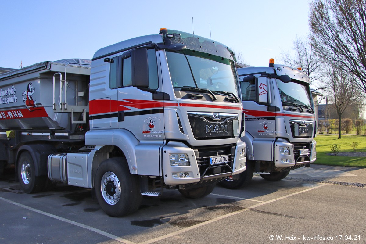 Es sind schon wieder fast 1,5 Jahre vergangen, seit ich zuletzt bei Jochims zu Besuch war. Entsprechend gibt es viele neue LKW. Das sind meines Wissens alles Zugmaschinen von MAN, zu erkennen an den jetzt geänderten Kennzeichen mit der Kombination "KLE JT" und nicht mehr "KLE PJ". Jochims hat in der letzten Zeit noch viele MAN TGS der jetzt alten Baureihe gekauft, aber jetzt ist auch seit einigen Wochen der erste neue MAN TGS im Fuhrpark. Wir haben ein kleines Fotoshooting auf den Gelände gemacht und den alten und den neuen MAN nebeneinander gestellt. Im Sommer kommen voraussichtlich weitere neue LKW. Alle Bilder sind vom Hauptsitz in Kerken, wo ungefähr die Hälfe der Fahrzeuge steht.