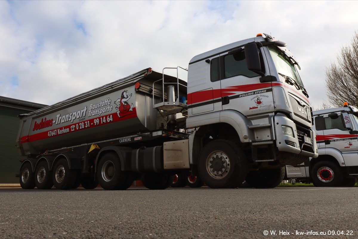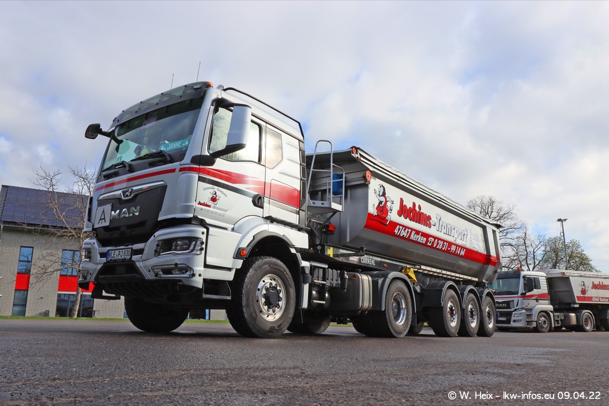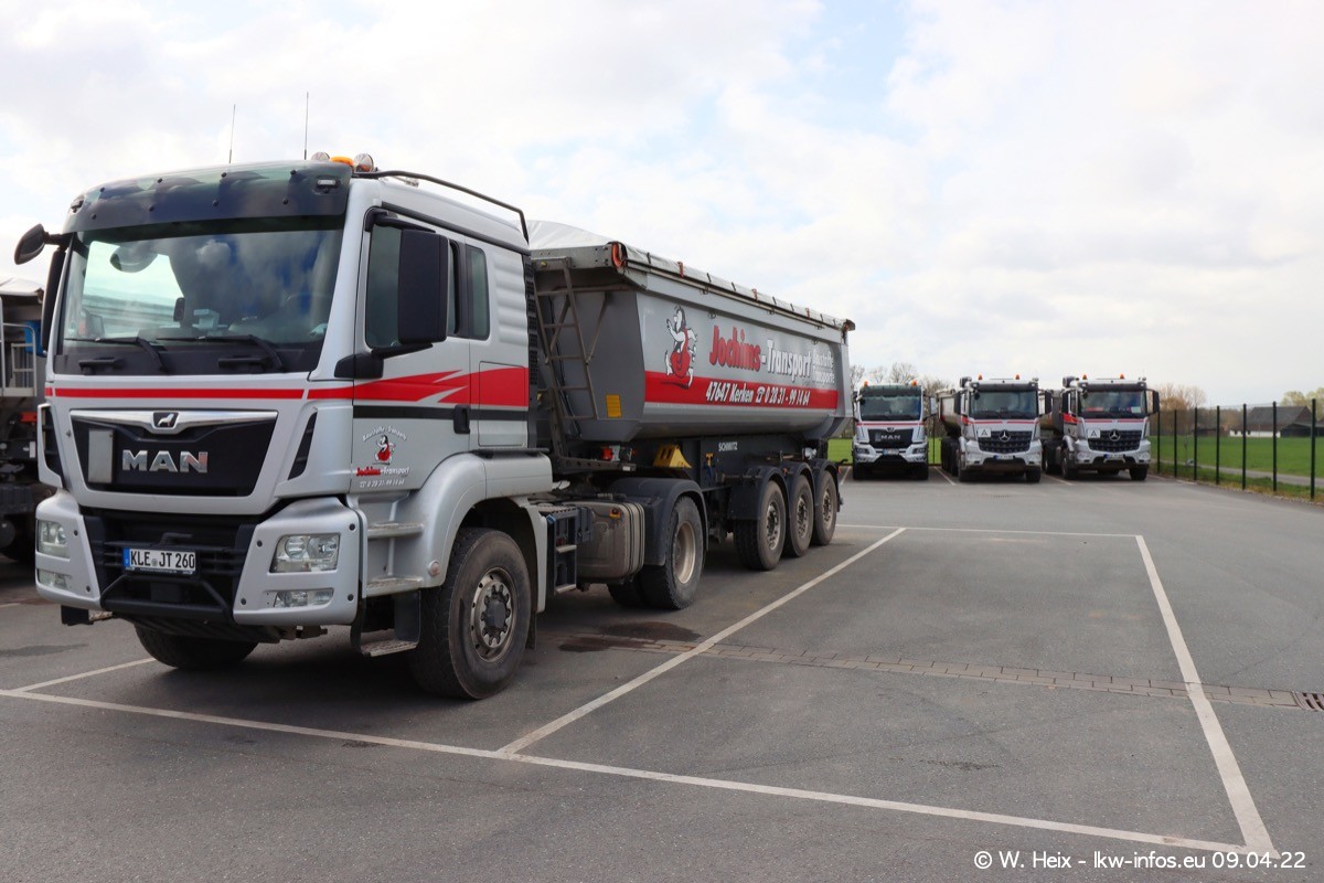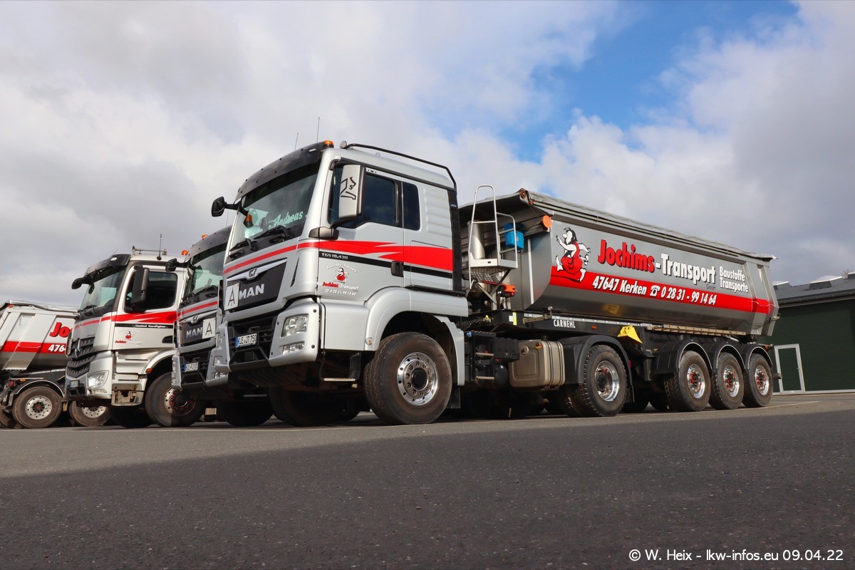 Der letzte Besuch bei Jochims war im Sommer 2021. neu war "damals" der erte MAN TGS der neuen Baureihe. Inzwischen sind weitere MAN TGS dazu gekommen. Vier davon konnte ich fotografieren. Die anderen Fahrzeuge sind bekannt.