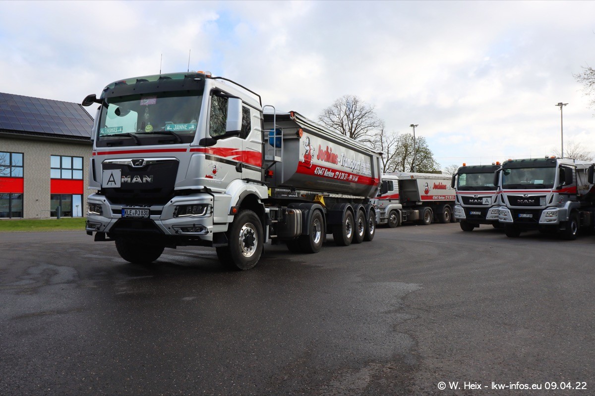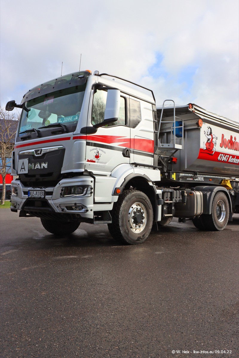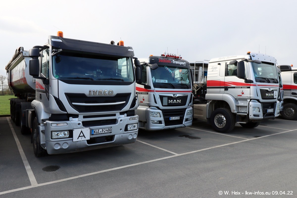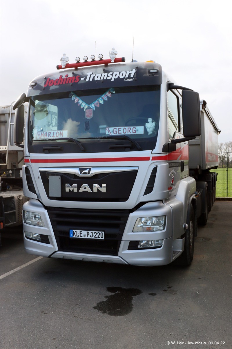 Der letzte Besuch bei Jochims war im Sommer 2021. neu war "damals" der erte MAN TGS der neuen Baureihe. Inzwischen sind weitere MAN TGS dazu gekommen. Vier davon konnte ich fotografieren. Die anderen Fahrzeuge sind bekannt.