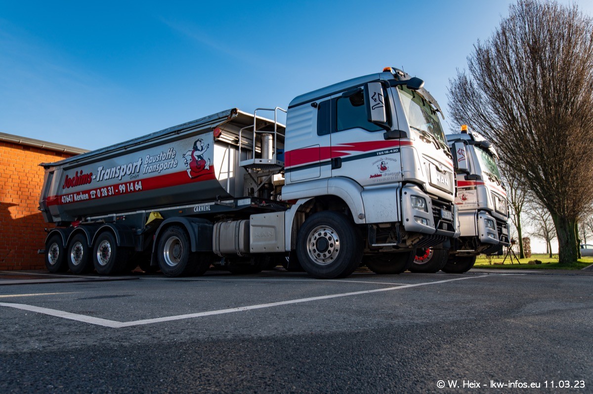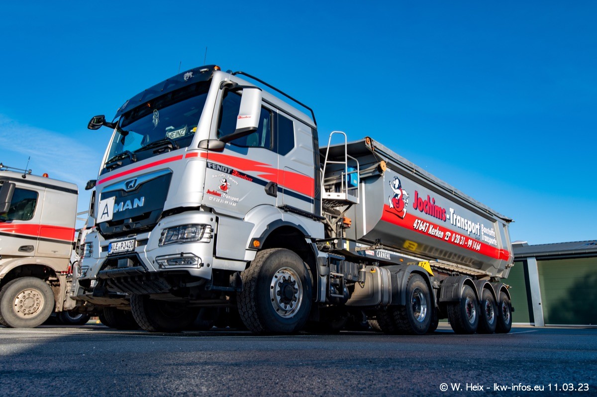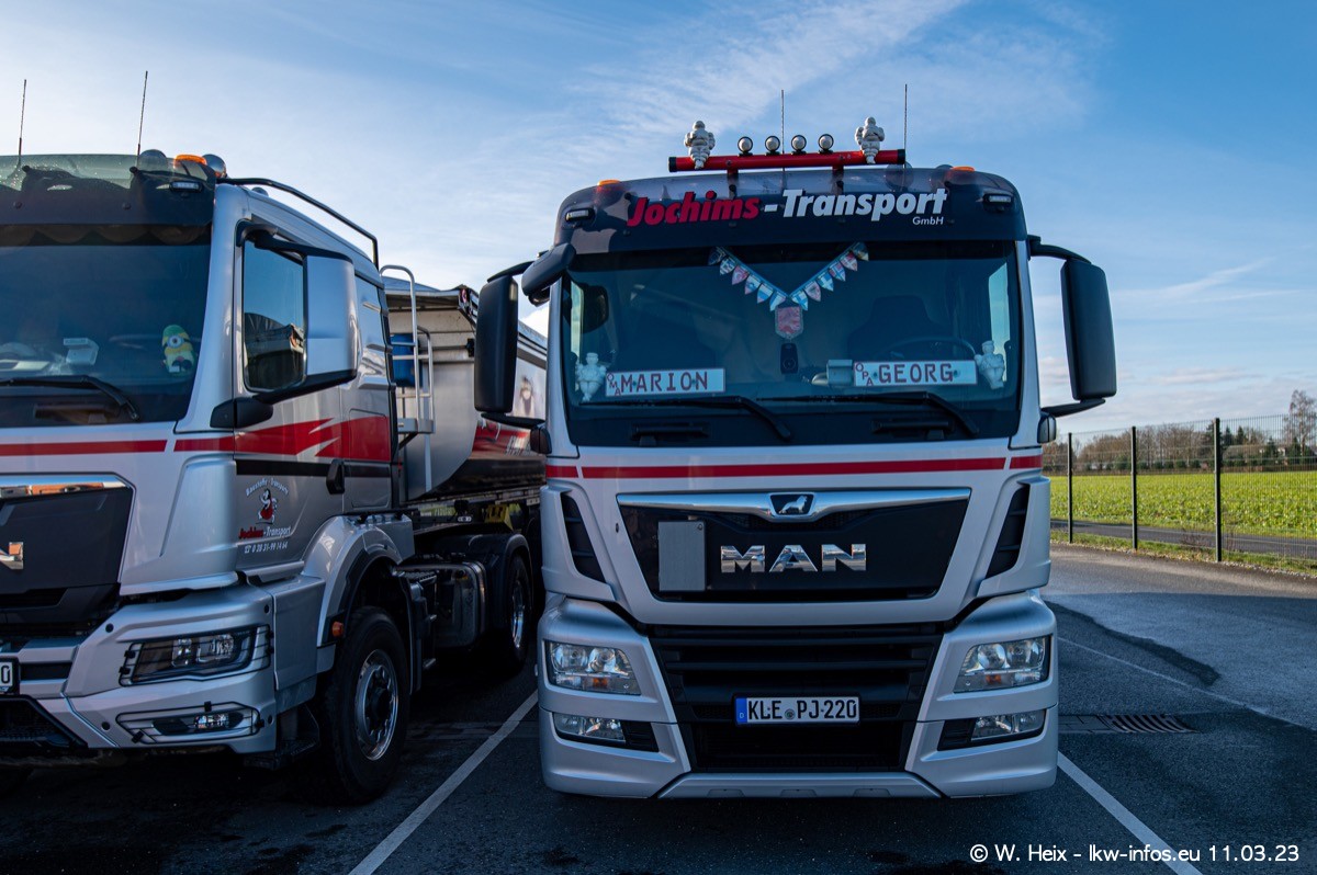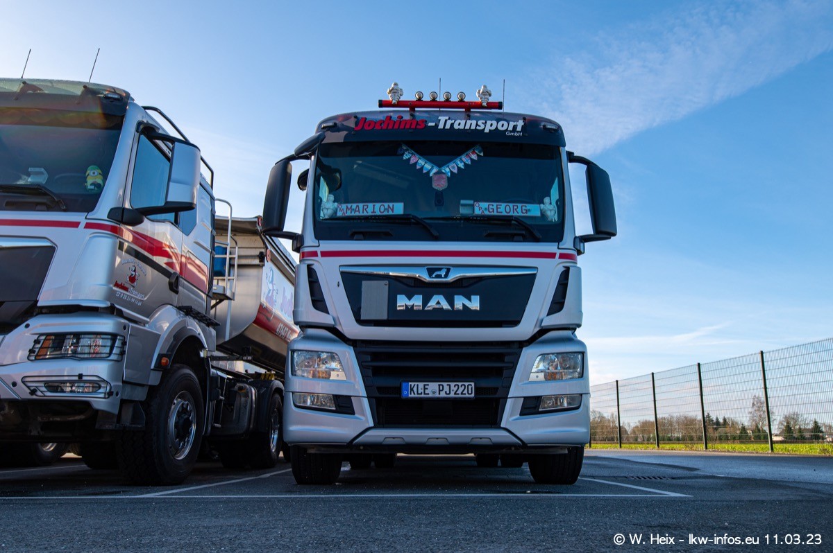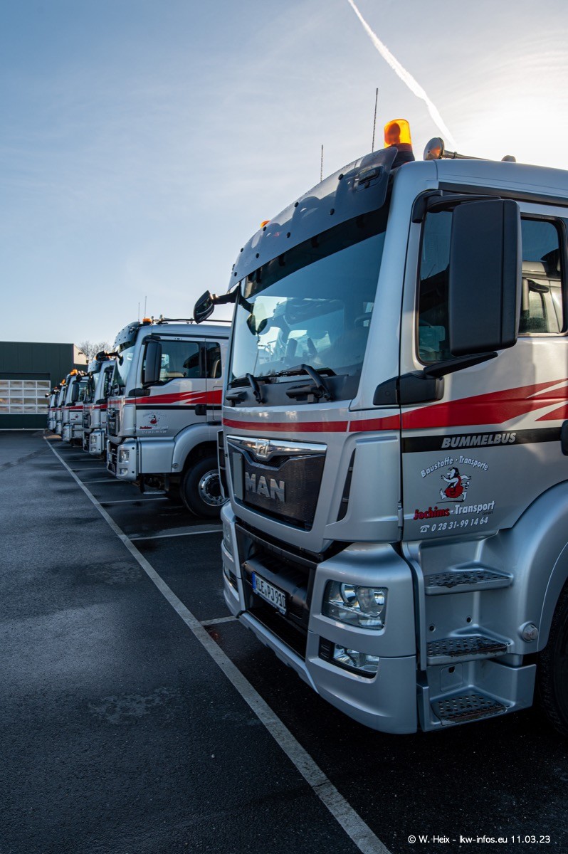 Der letzte Besuch bei Jochims war im April 2022. Inzwischen gibt es mehrere neue MAN TGS im Fuhrpark, die eine sehr lange Lieferzeit hatten, wie es aktuell bei allen Herstellern "normal" ist. Die anderen Fahrzeuge sind bekannt.