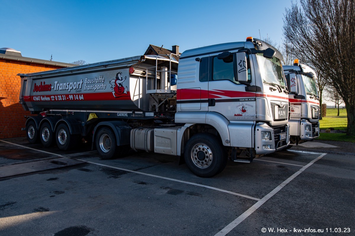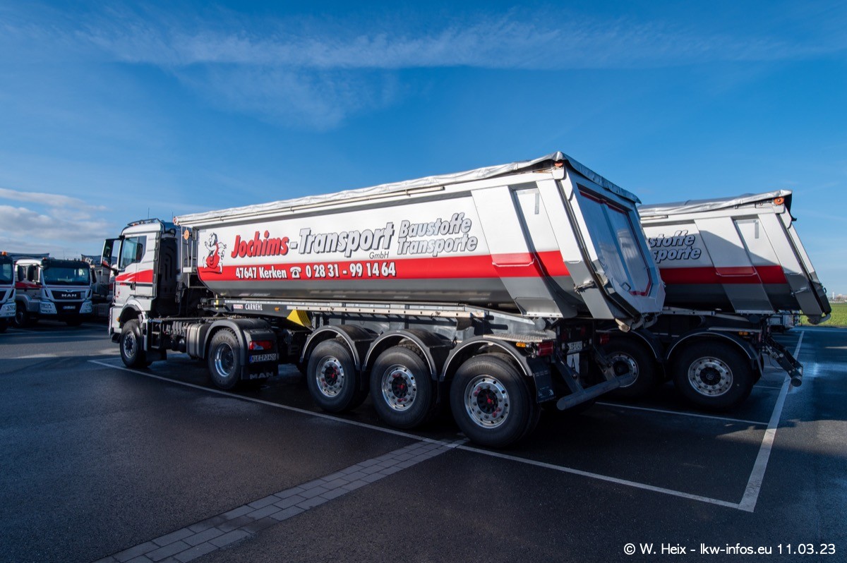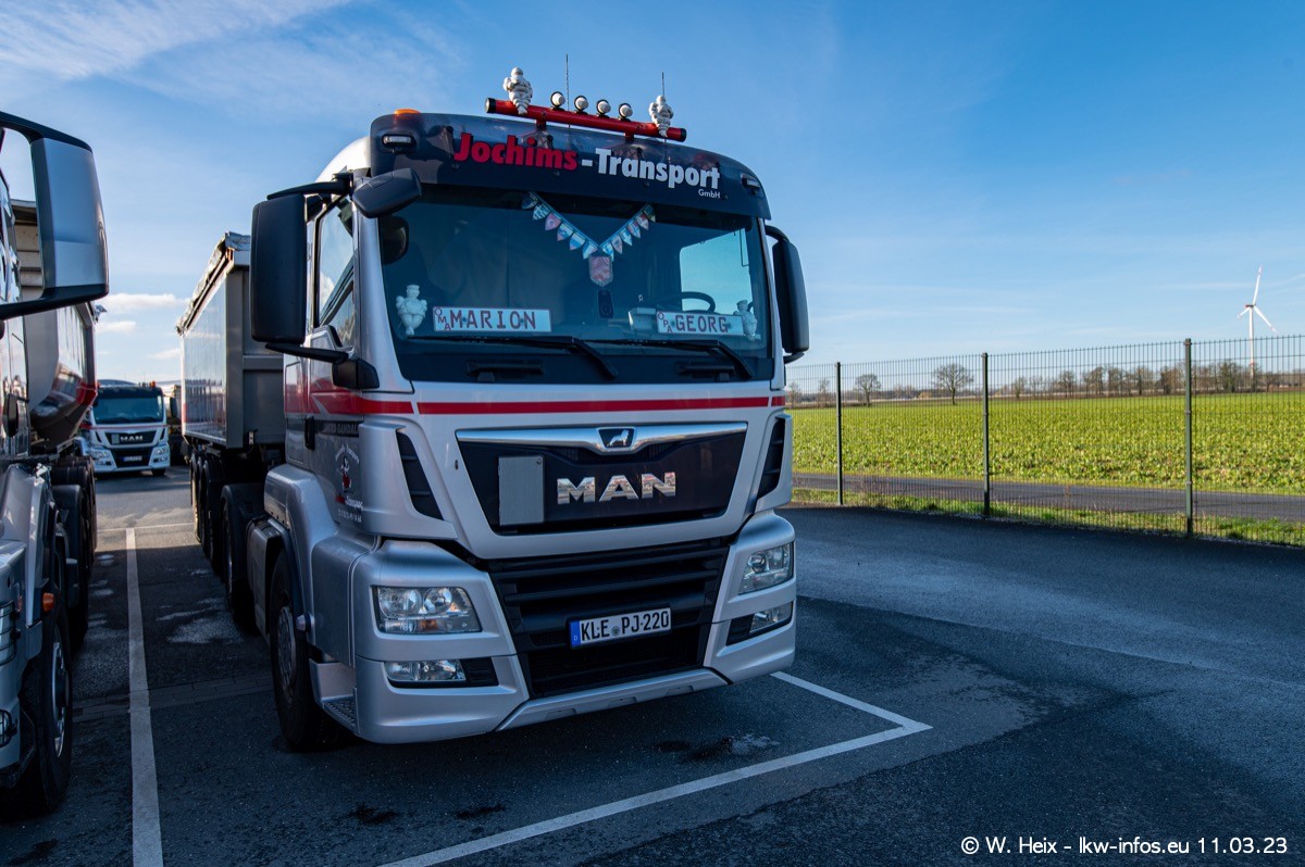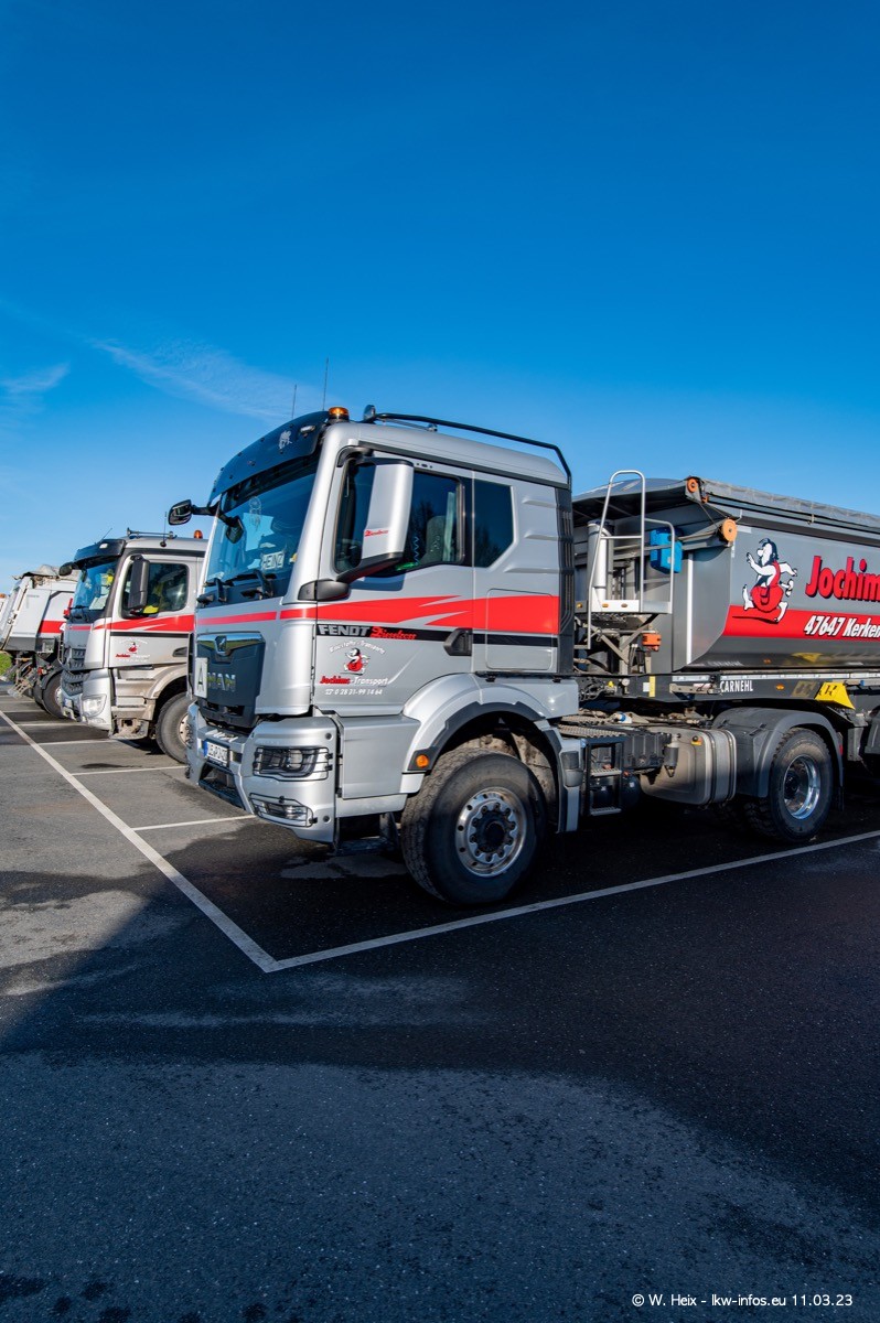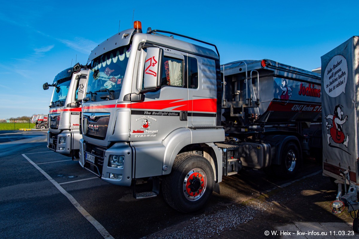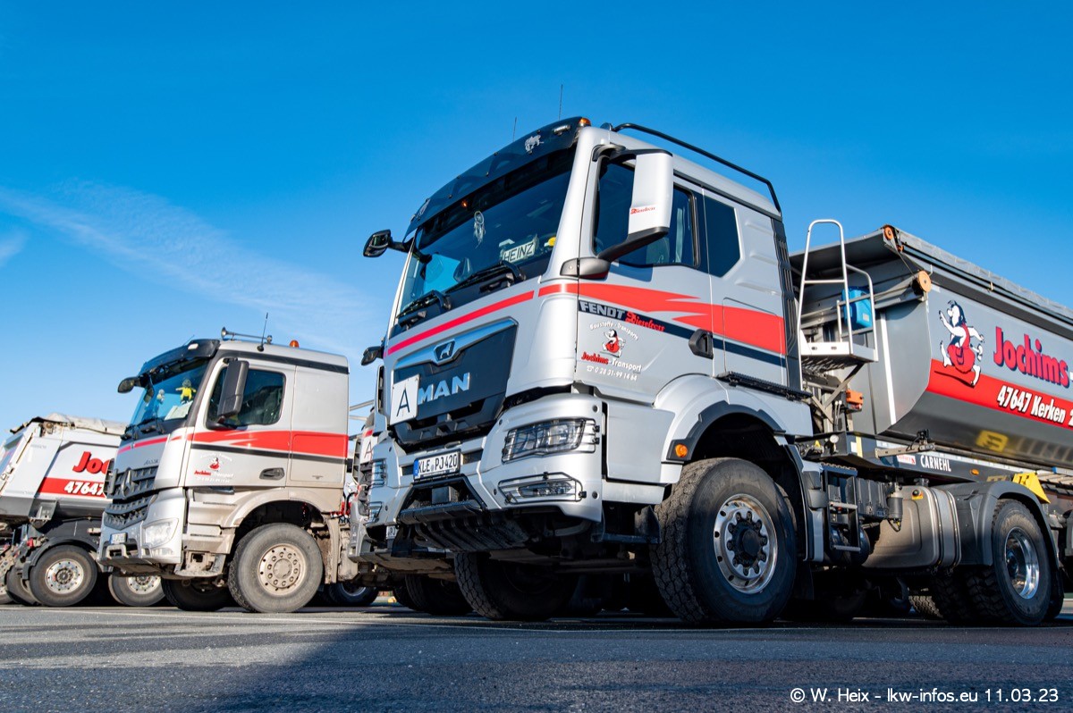 Der letzte Besuch bei Jochims war im April 2022. Inzwischen gibt es mehrere neue MAN TGS im Fuhrpark, die eine sehr lange Lieferzeit hatten, wie es aktuell bei allen Herstellern "normal" ist. Die anderen Fahrzeuge sind bekannt.