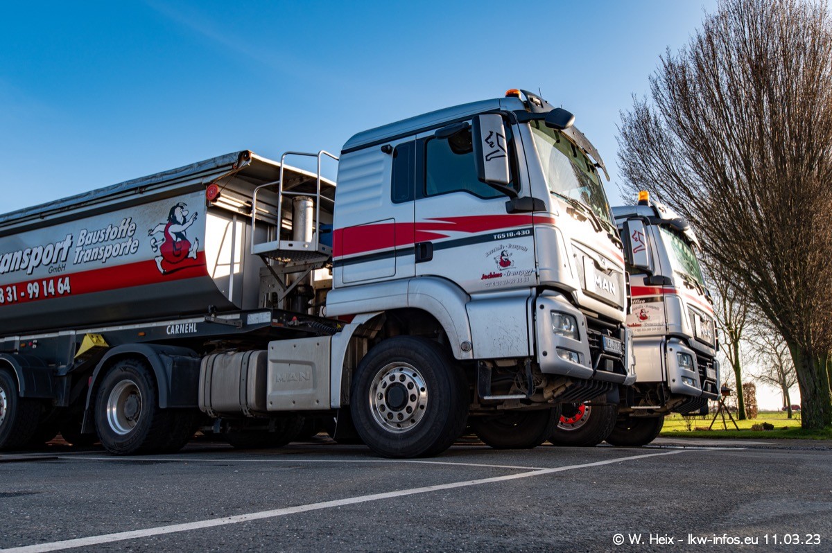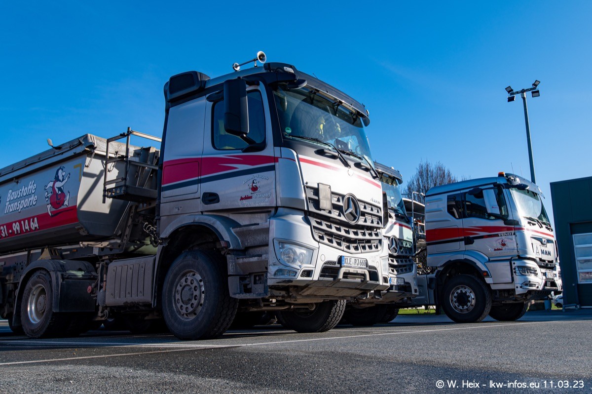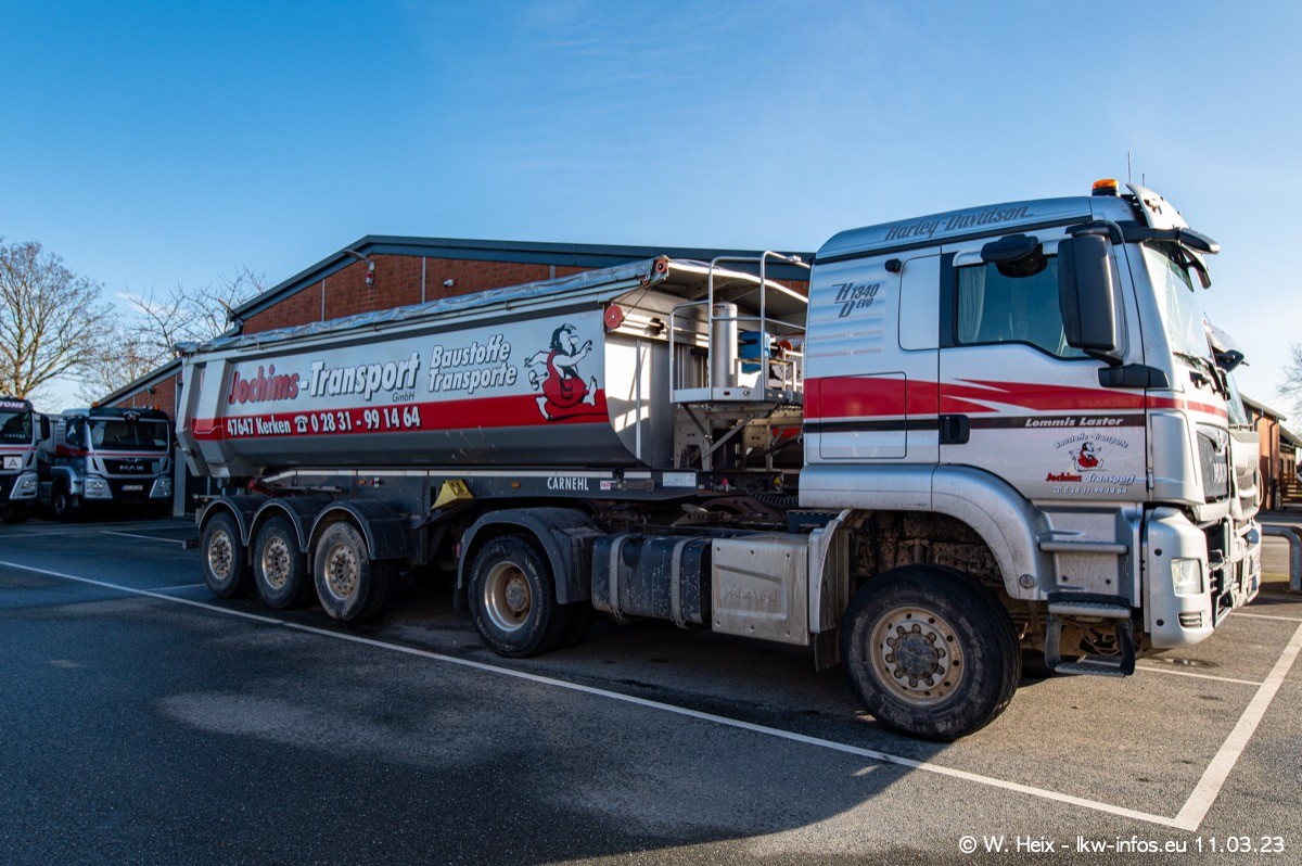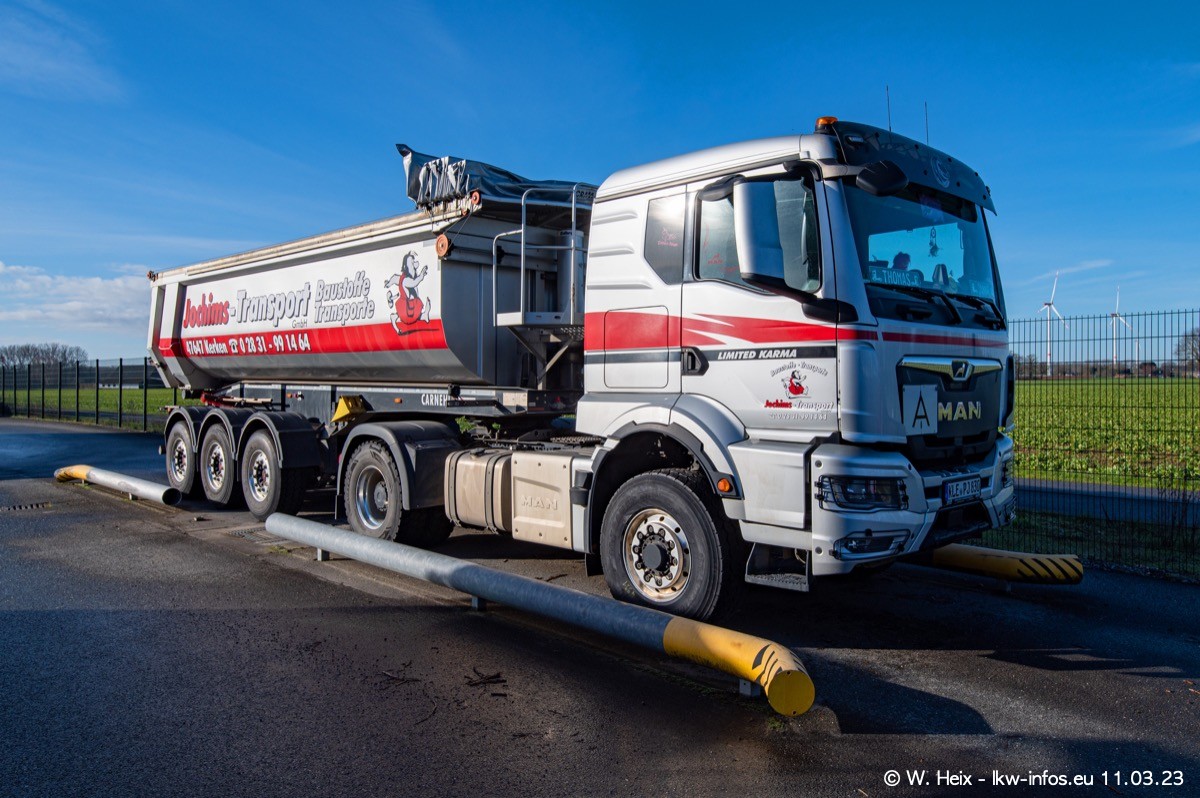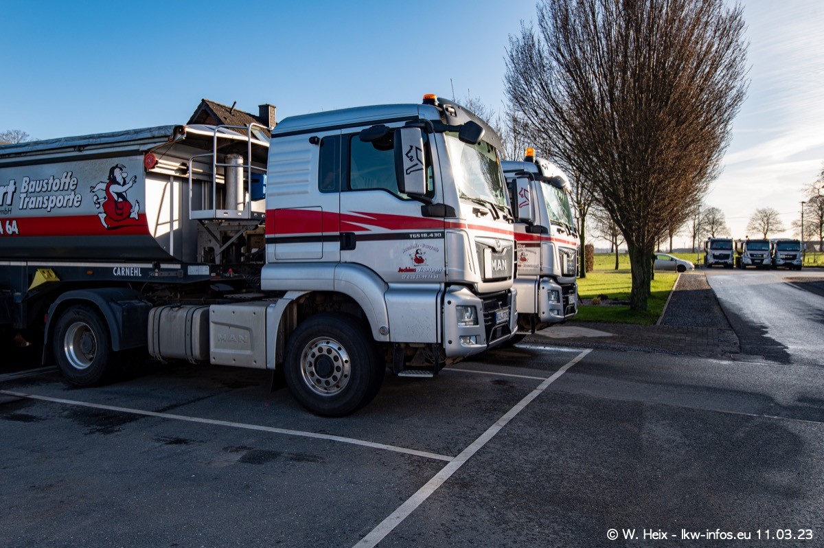 Der letzte Besuch bei Jochims war im April 2022. Inzwischen gibt es mehrere neue MAN TGS im Fuhrpark, die eine sehr lange Lieferzeit hatten, wie es aktuell bei allen Herstellern "normal" ist. Die anderen Fahrzeuge sind bekannt.