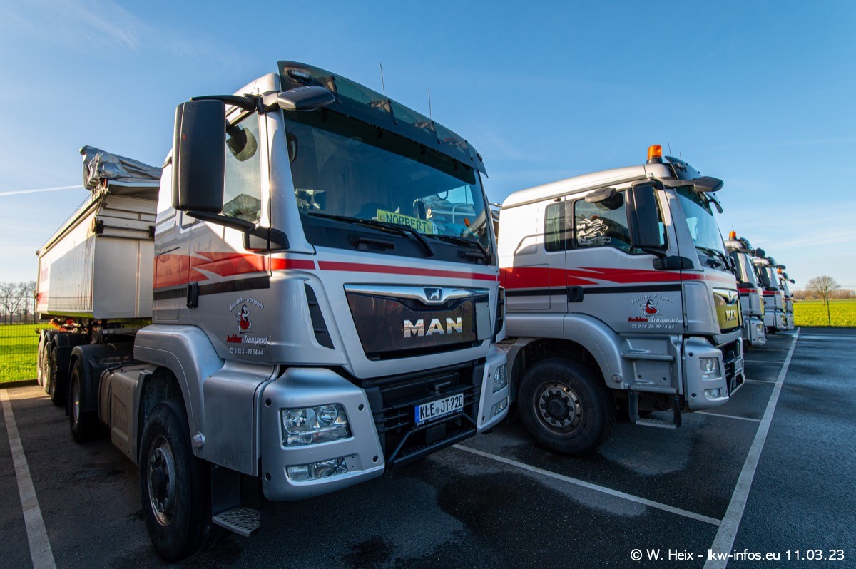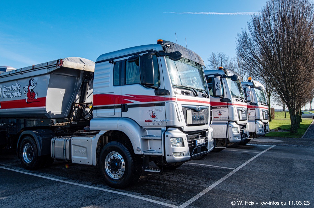 Der letzte Besuch bei Jochims war im April 2022. Inzwischen gibt es mehrere neue MAN TGS im Fuhrpark, die eine sehr lange Lieferzeit hatten, wie es aktuell bei allen Herstellern "normal" ist. Die anderen Fahrzeuge sind bekannt.