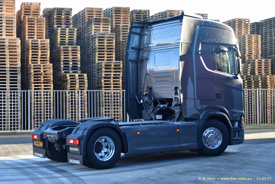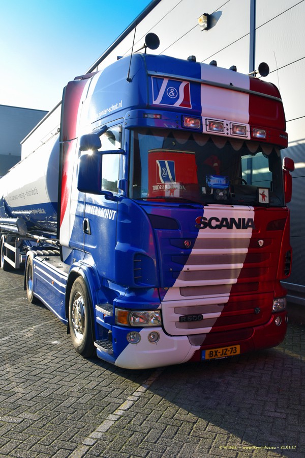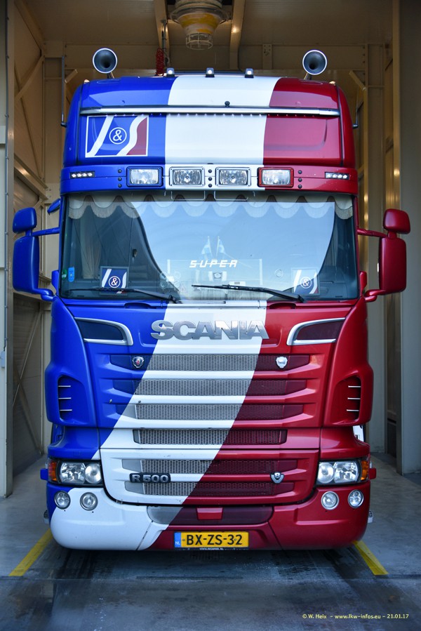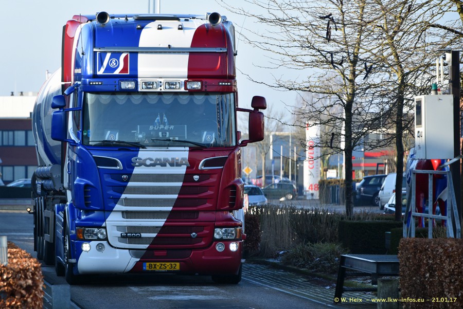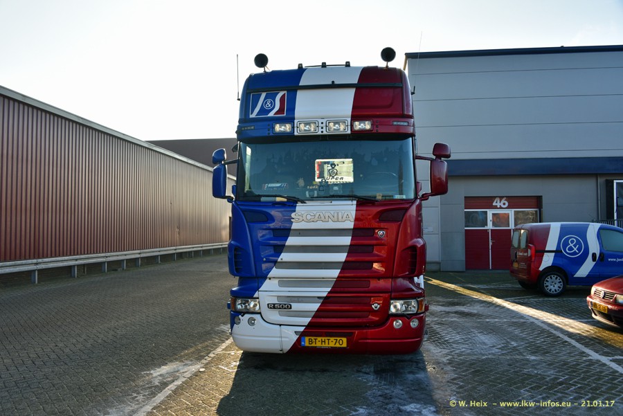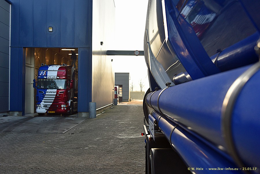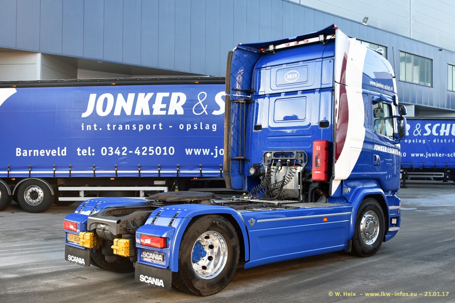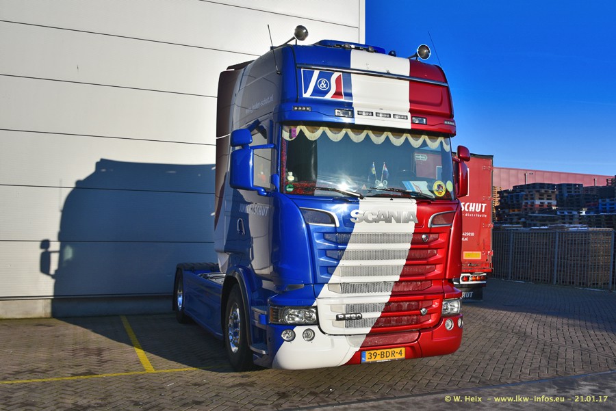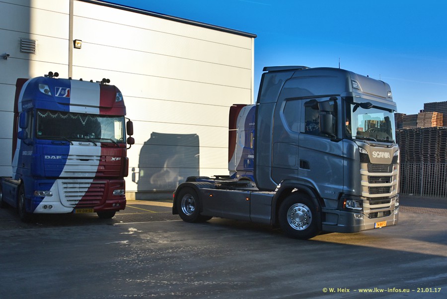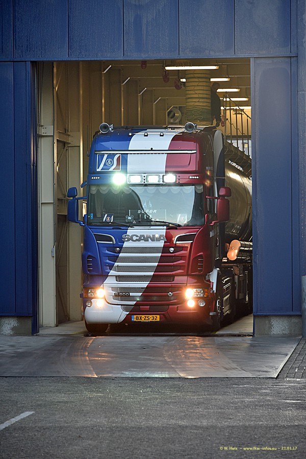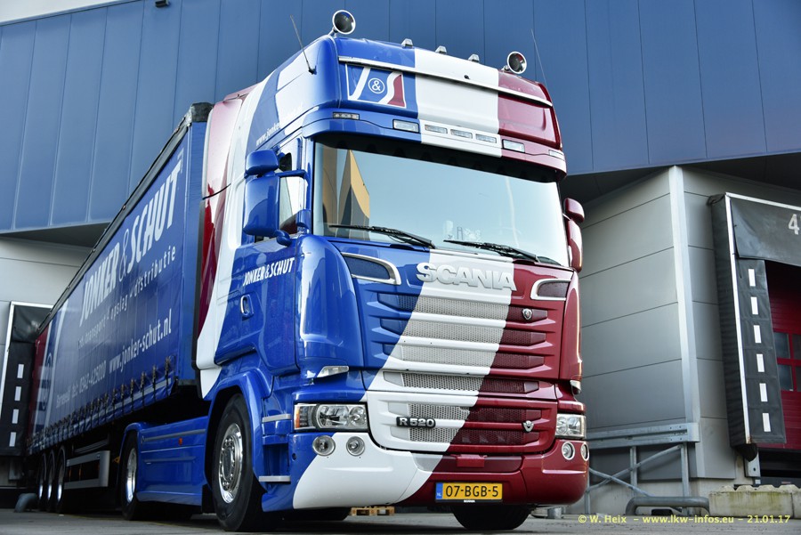 Es gibt wieder neue LKW bei Jonker & Schut: Das sind ein Volvo FM 4 400 mit Siloauflieger und ein DAF XF Euro 6 Planen-Hängerzug. Beides wieder schöne Fahrzeuge. Und auch fast der ganze Fuhrpark war zuhause und konnte fotografiert werden.