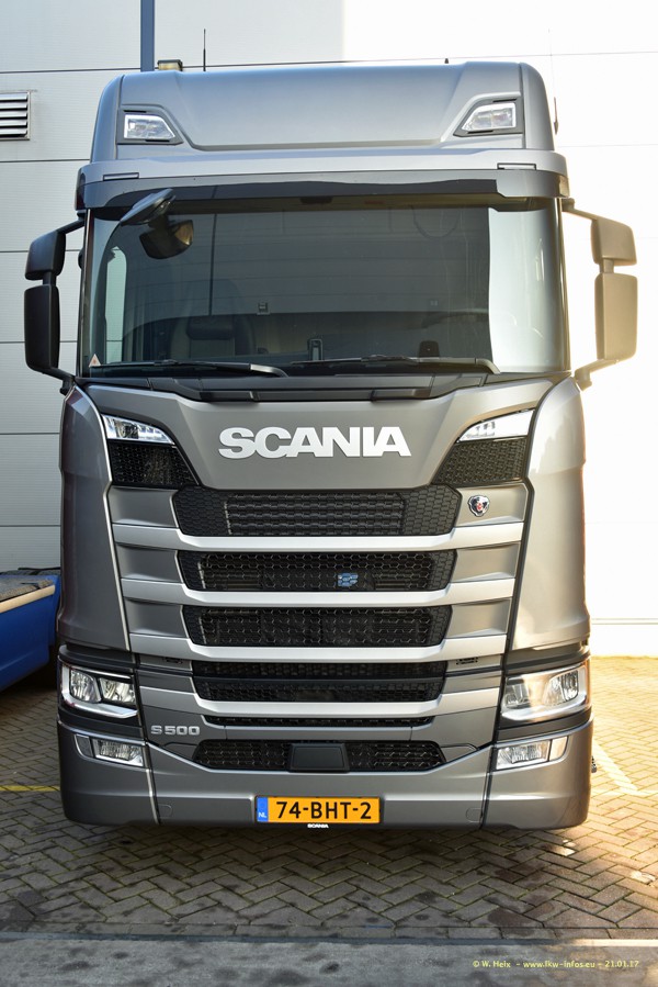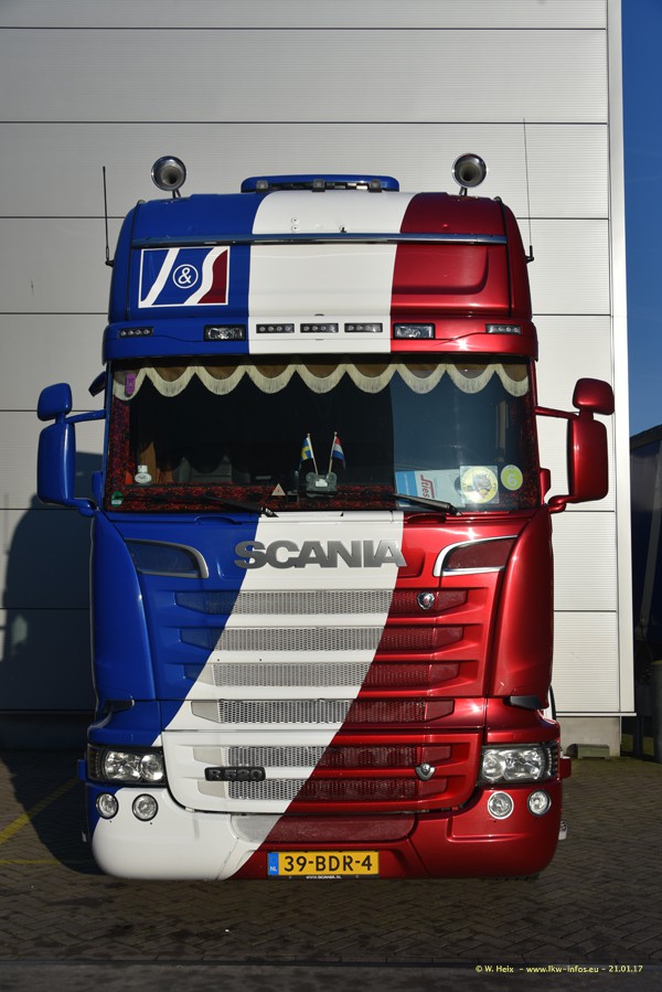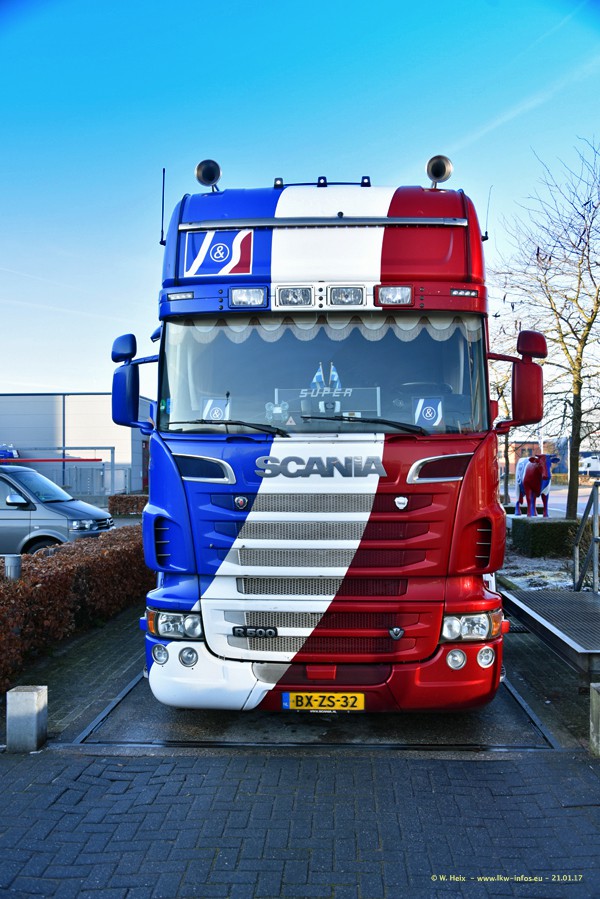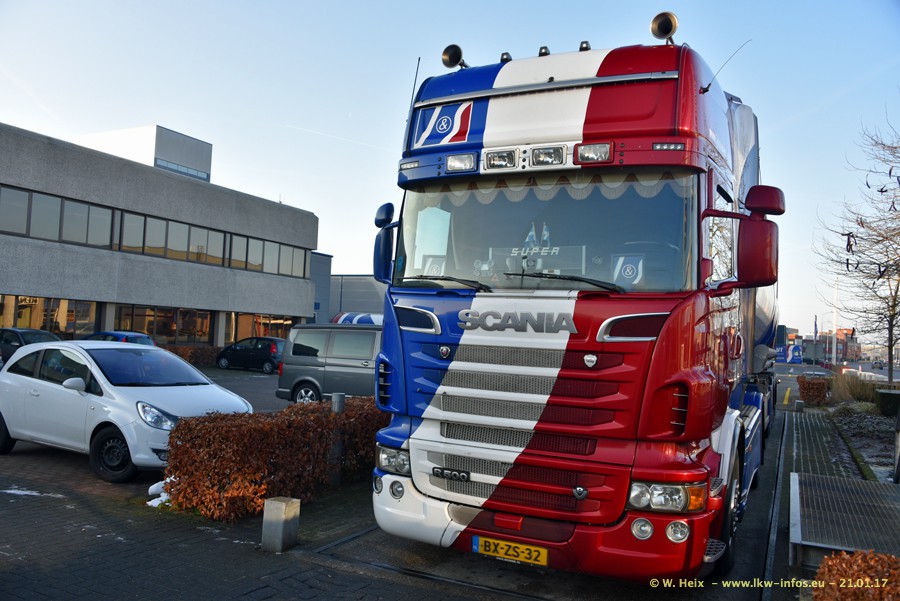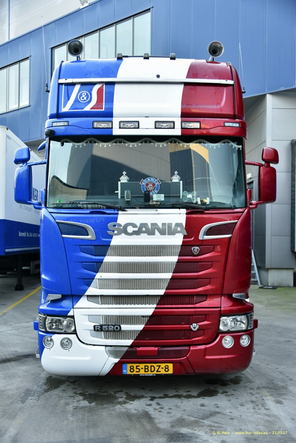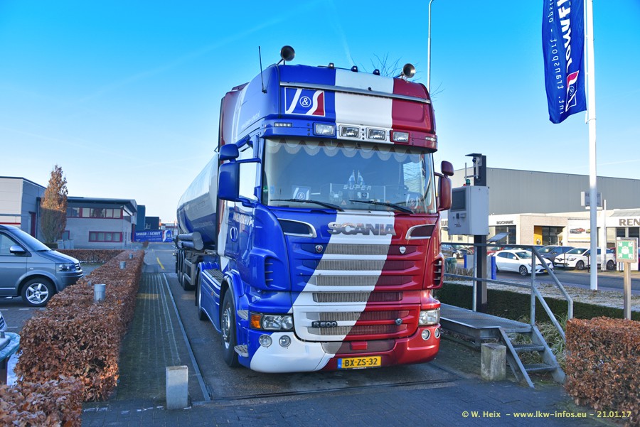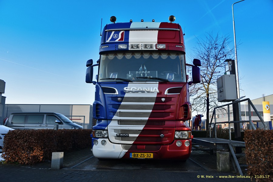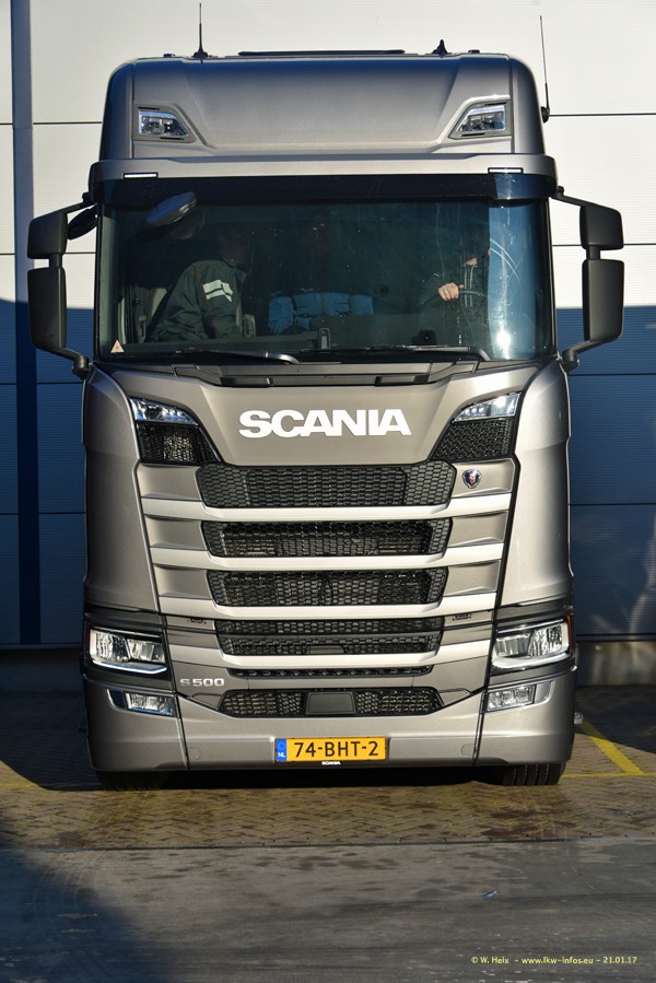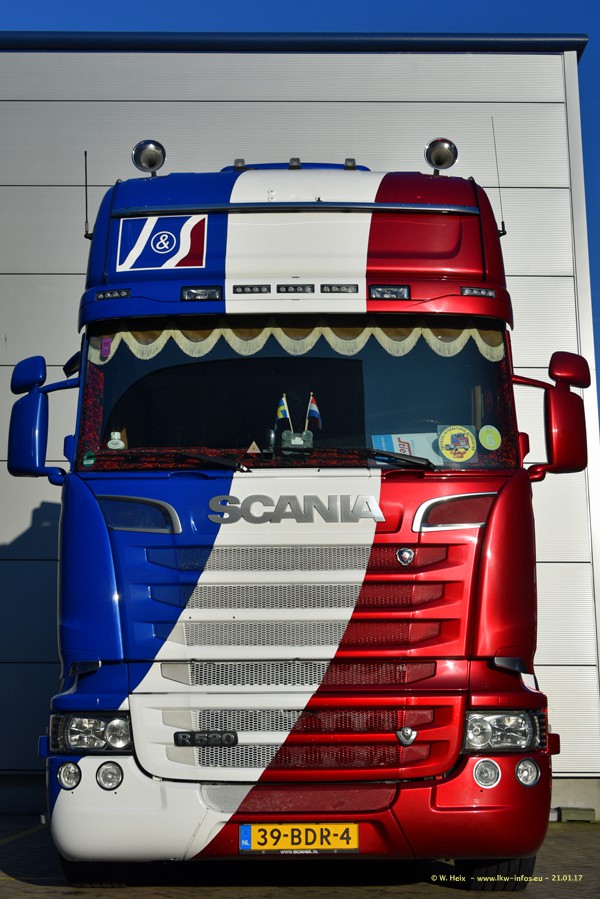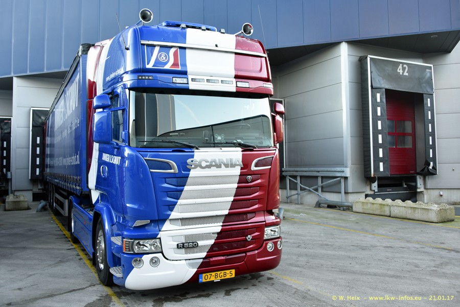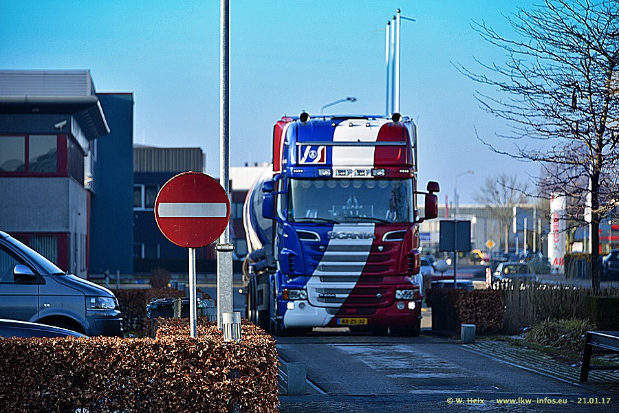 Es gibt wieder neue LKW bei Jonker & Schut: Das sind ein Volvo FM 4 400 mit Siloauflieger und ein DAF XF Euro 6 Planen-Hängerzug. Beides wieder schöne Fahrzeuge. Und auch fast der ganze Fuhrpark war zuhause und konnte fotografiert werden.