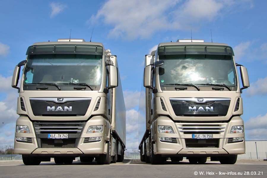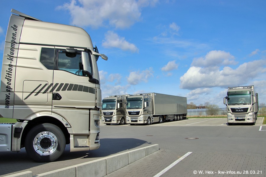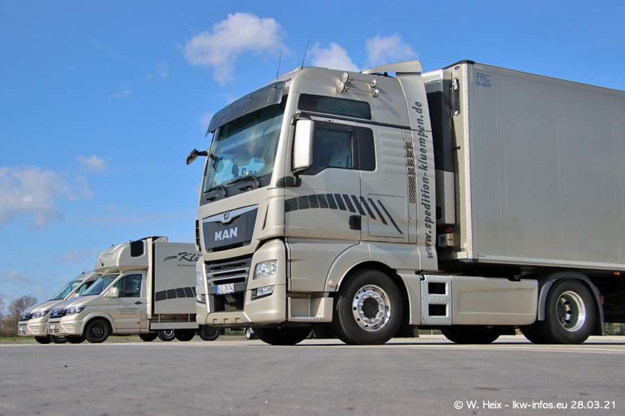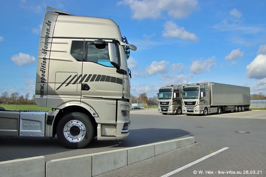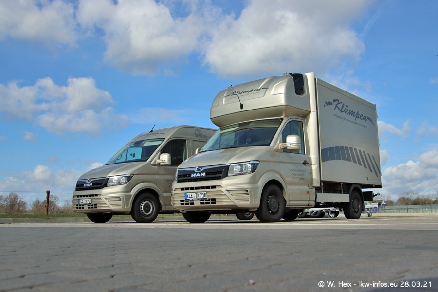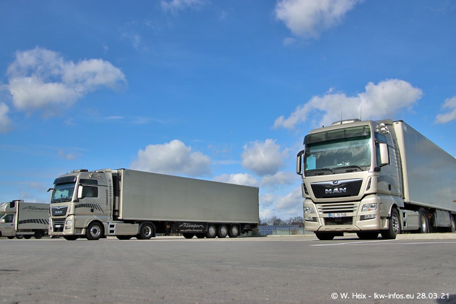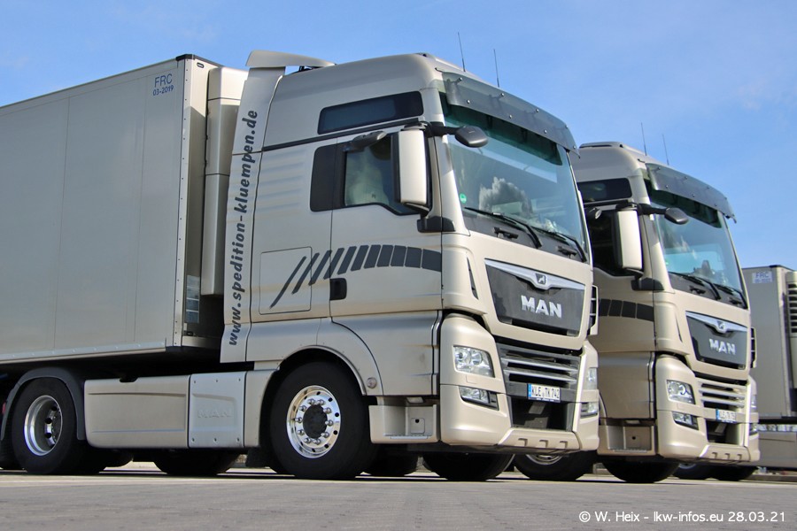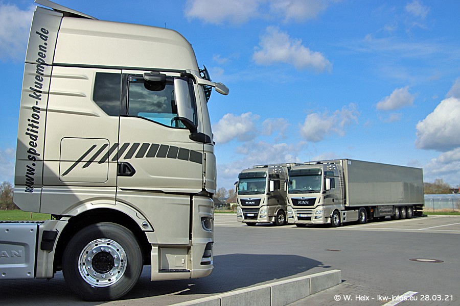 Vor einigen Tagen hat die Spedition Klümpen die ersten beiden neuen MAN TGX GX bekommen. Ab kommender Woche werden die beiden LKW auf unseren Straßen unterwegs sein. Dazu kommen noch ein paar Bilder von den LKW und MAN TGE, die am Sonntag zuhause auf dem Hof standen. Gefahren wird an sieben Tagen in der Woche, darum sind am Wochenende auch oft die meisten LKW unterwegs.