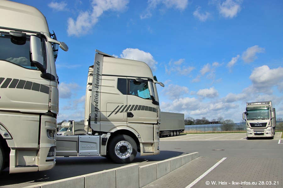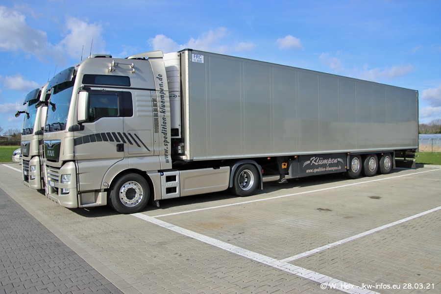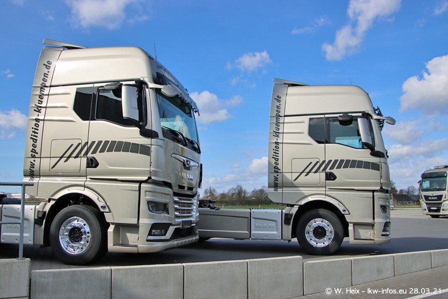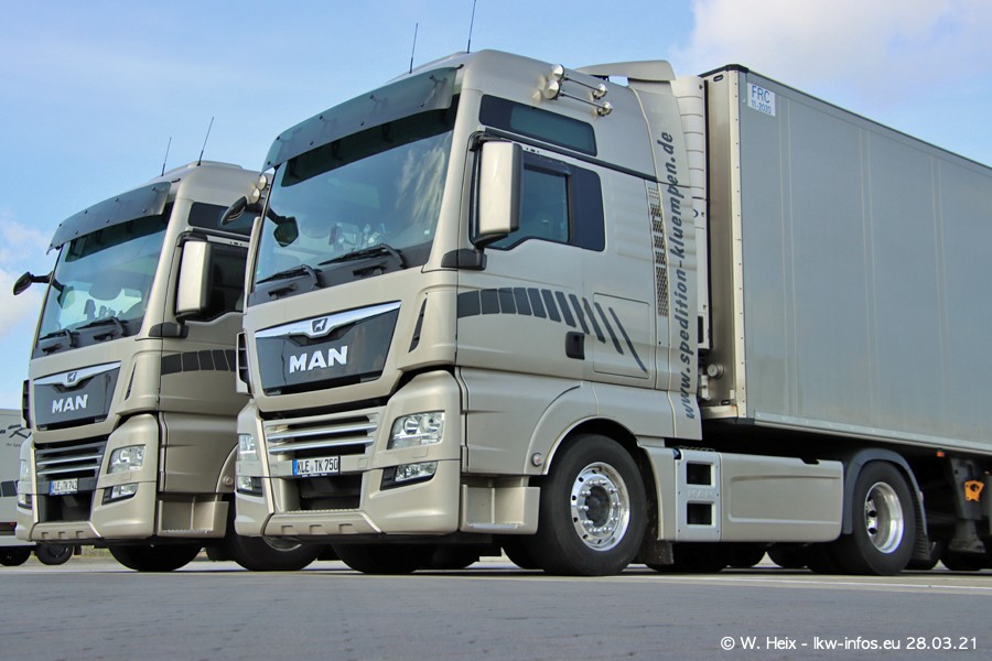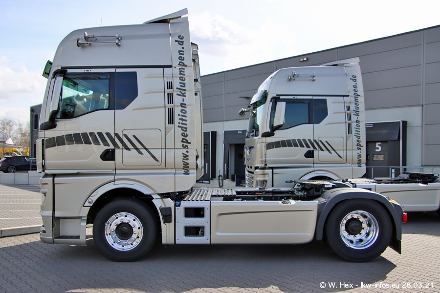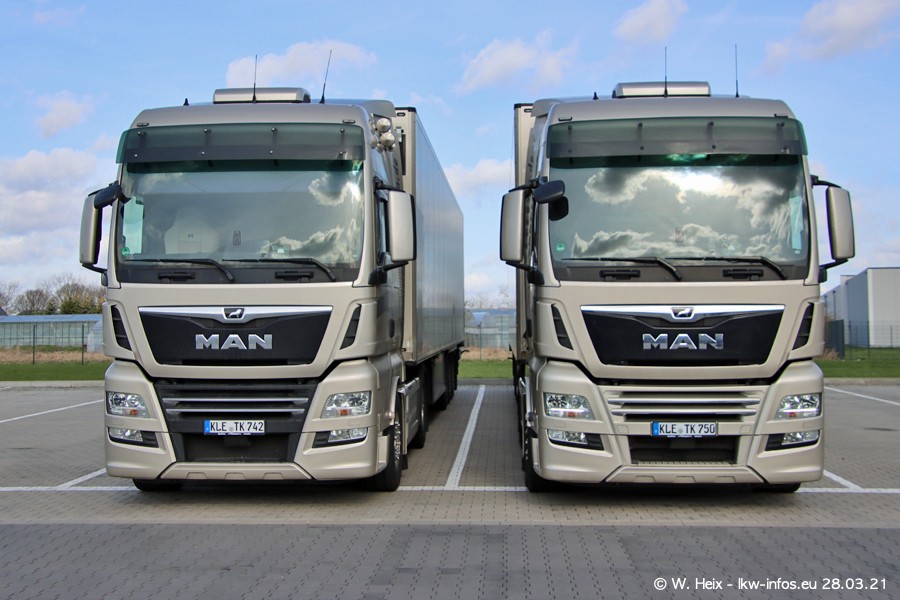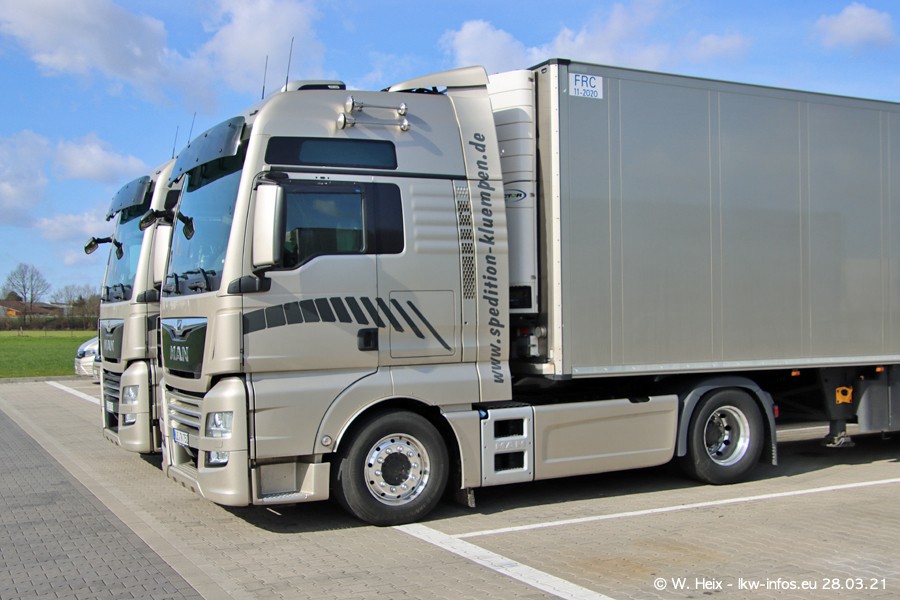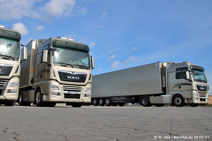 Vor einigen Tagen hat die Spedition Klümpen die ersten beiden neuen MAN TGX GX bekommen. Ab kommender Woche werden die beiden LKW auf unseren Straßen unterwegs sein. Dazu kommen noch ein paar Bilder von den LKW und MAN TGE, die am Sonntag zuhause auf dem Hof standen. Gefahren wird an sieben Tagen in der Woche, darum sind am Wochenende auch oft die meisten LKW unterwegs.