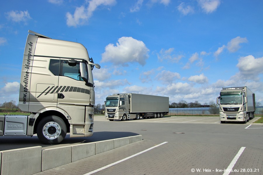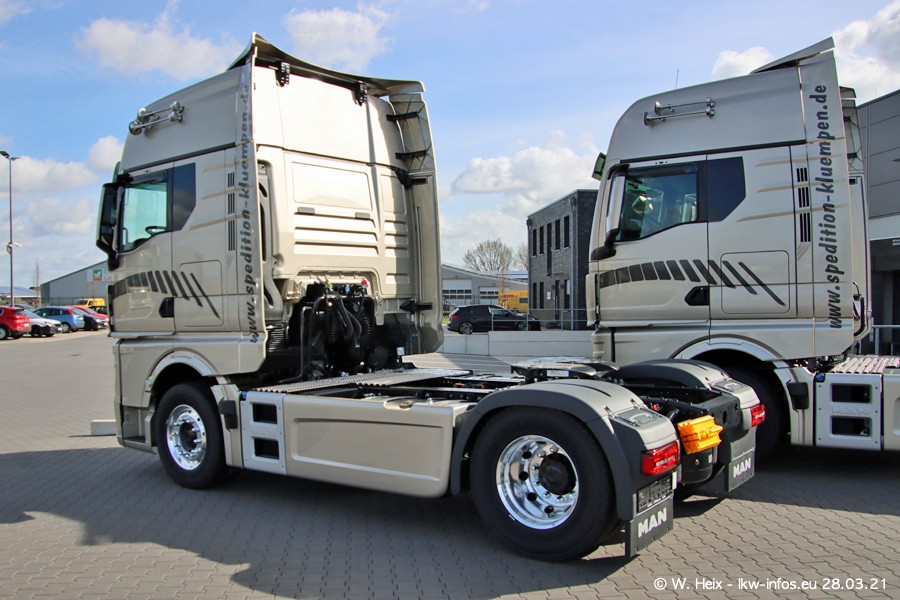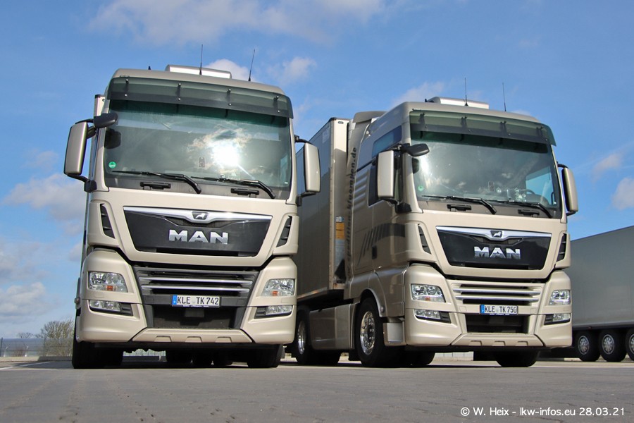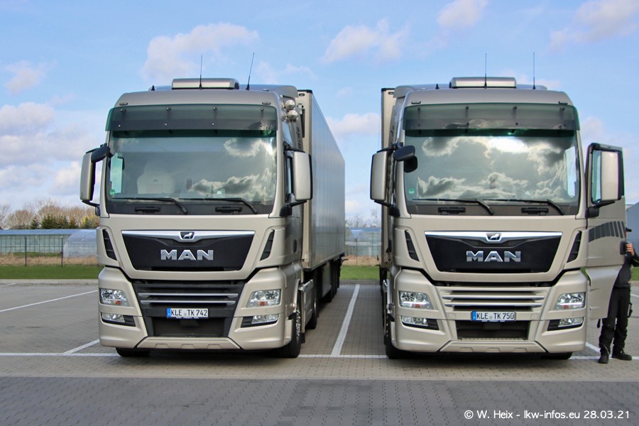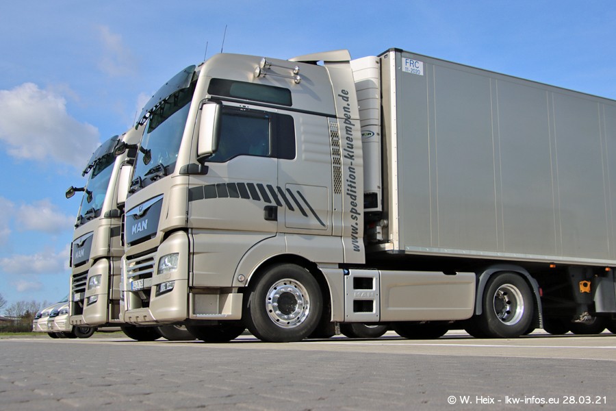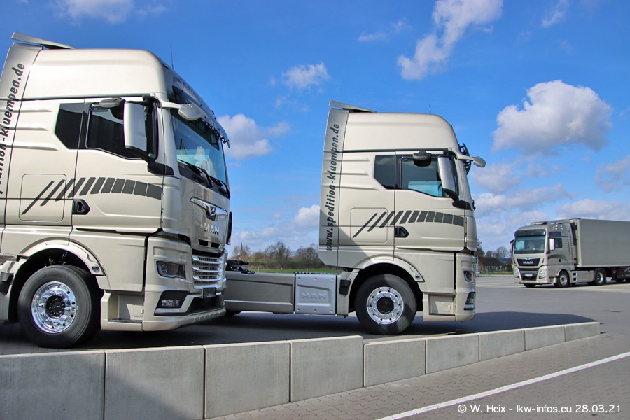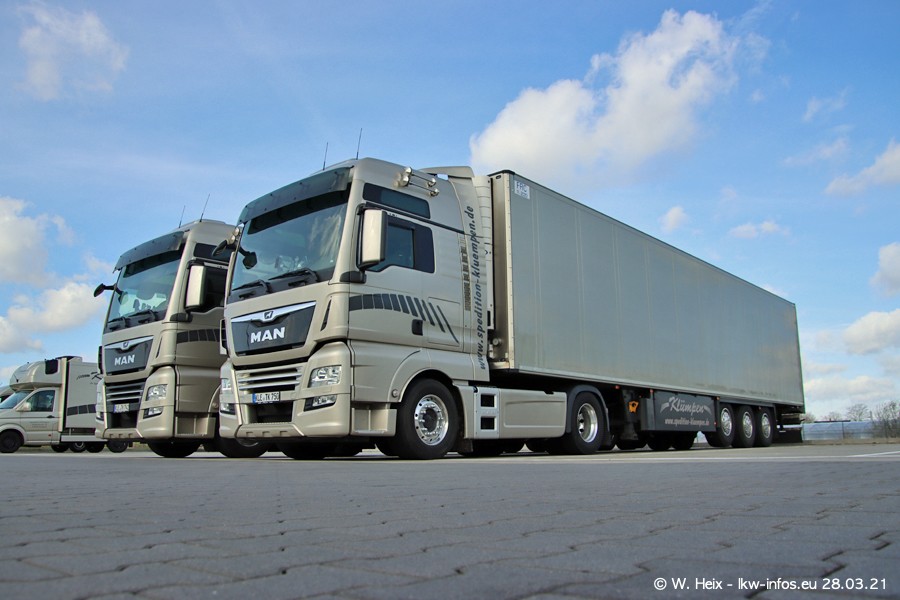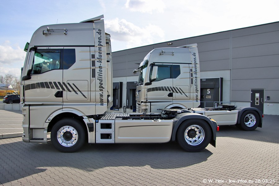 Vor einigen Tagen hat die Spedition Klümpen die ersten beiden neuen MAN TGX GX bekommen. Ab kommender Woche werden die beiden LKW auf unseren Straßen unterwegs sein. Dazu kommen noch ein paar Bilder von den LKW und MAN TGE, die am Sonntag zuhause auf dem Hof standen. Gefahren wird an sieben Tagen in der Woche, darum sind am Wochenende auch oft die meisten LKW unterwegs.
