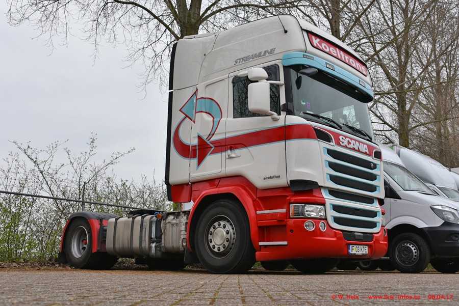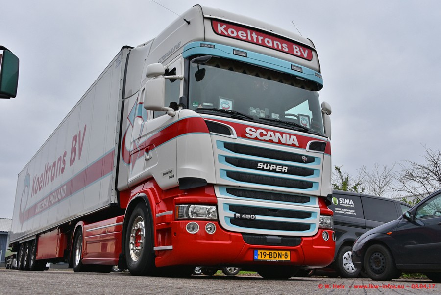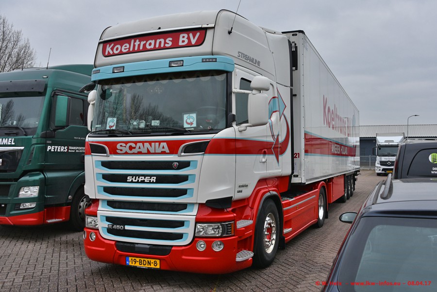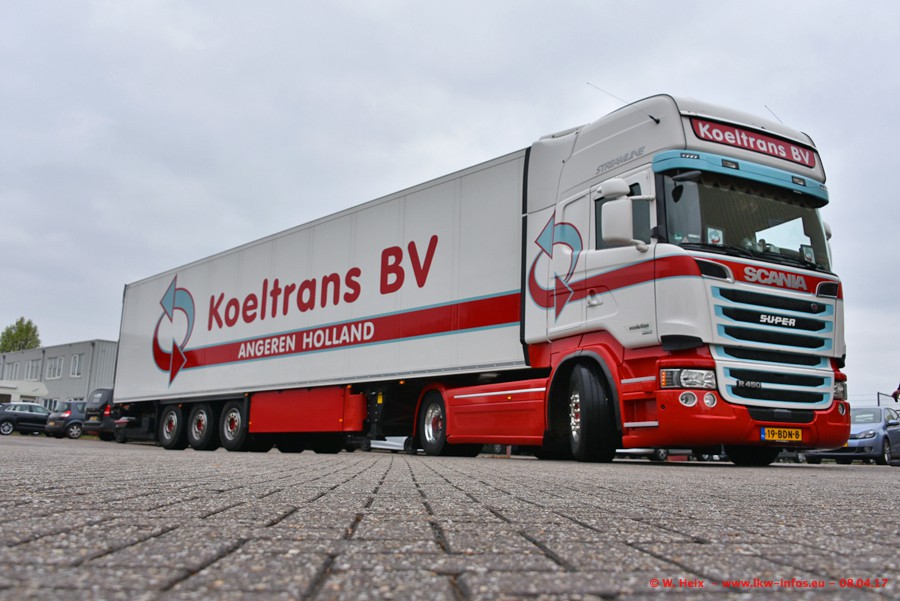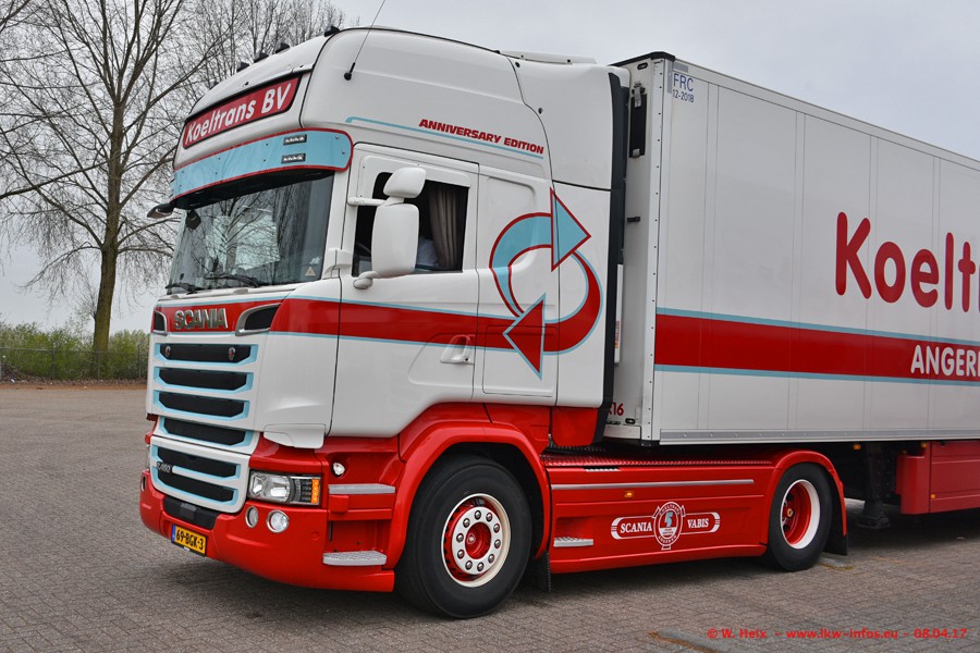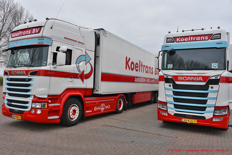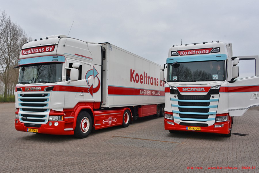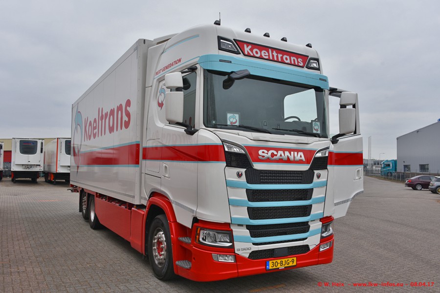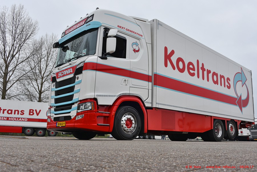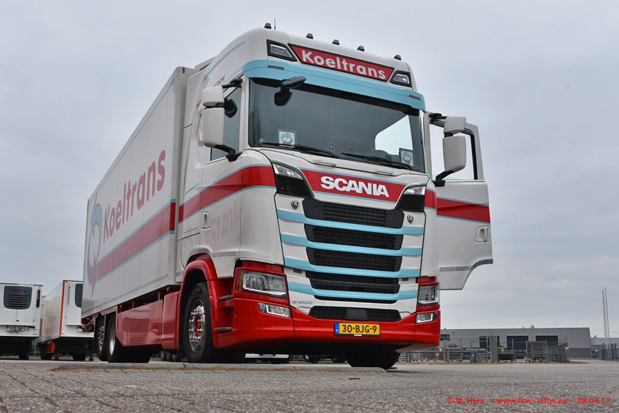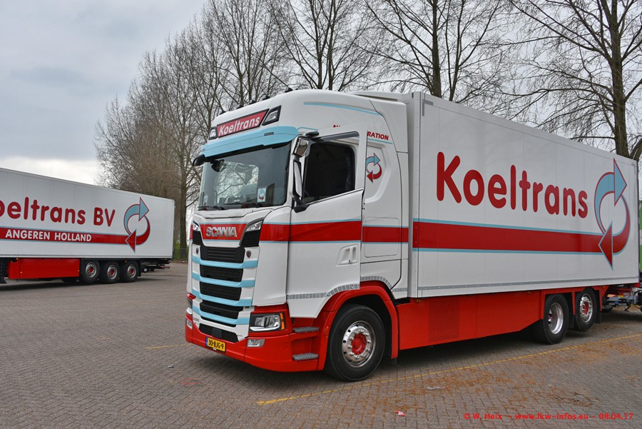 In der vergangenen Woche hat Koeltrans die ersten beiden von insgesamt vier Scania S 500 bekommen. Diese Fahrzeuge sollen überwiegend als LZV (Gigaliner) eingesetzt werden. Einer der beiden S 500 war zuhause. Fotografieren konnte ich den neuen Scania allerdings nur ohne Auflieger/Anhänger. Dazu kommen noch einige weitere Fotos. Der größte Teil der LKW war unterwegs und nicht am Wochenende zuhause.