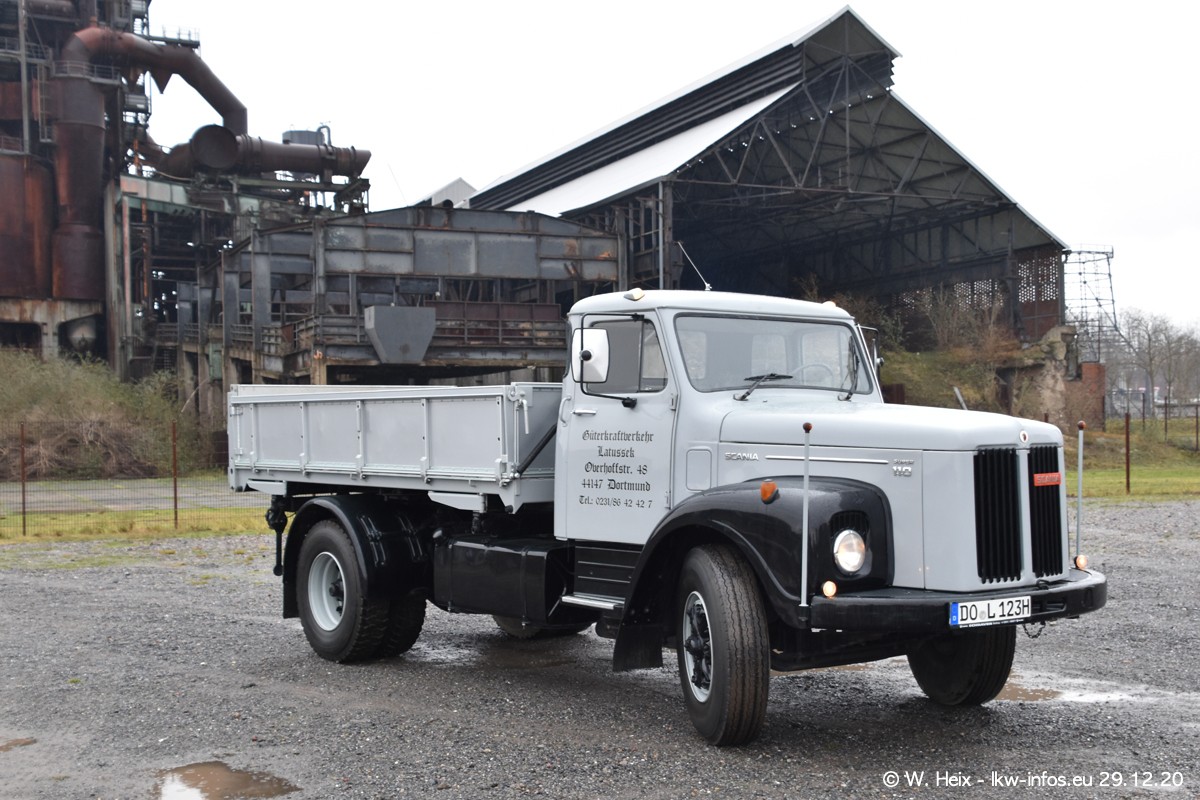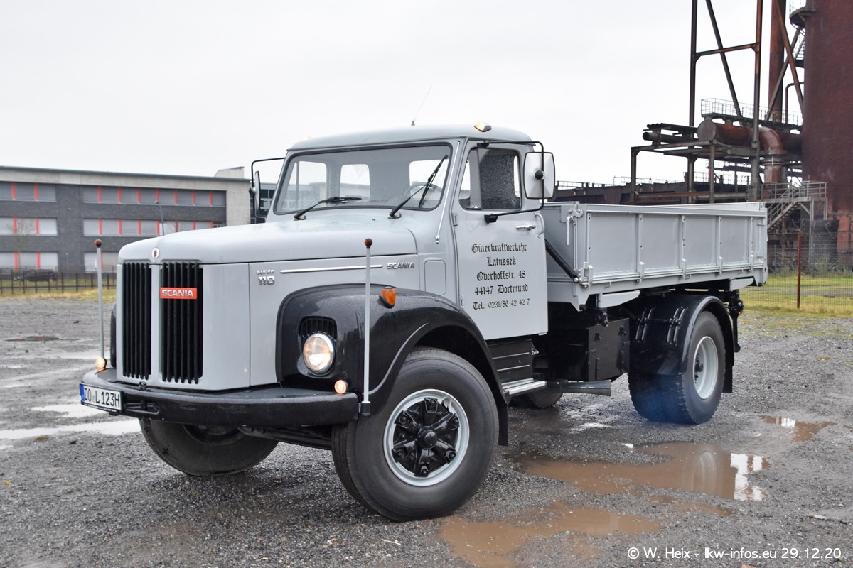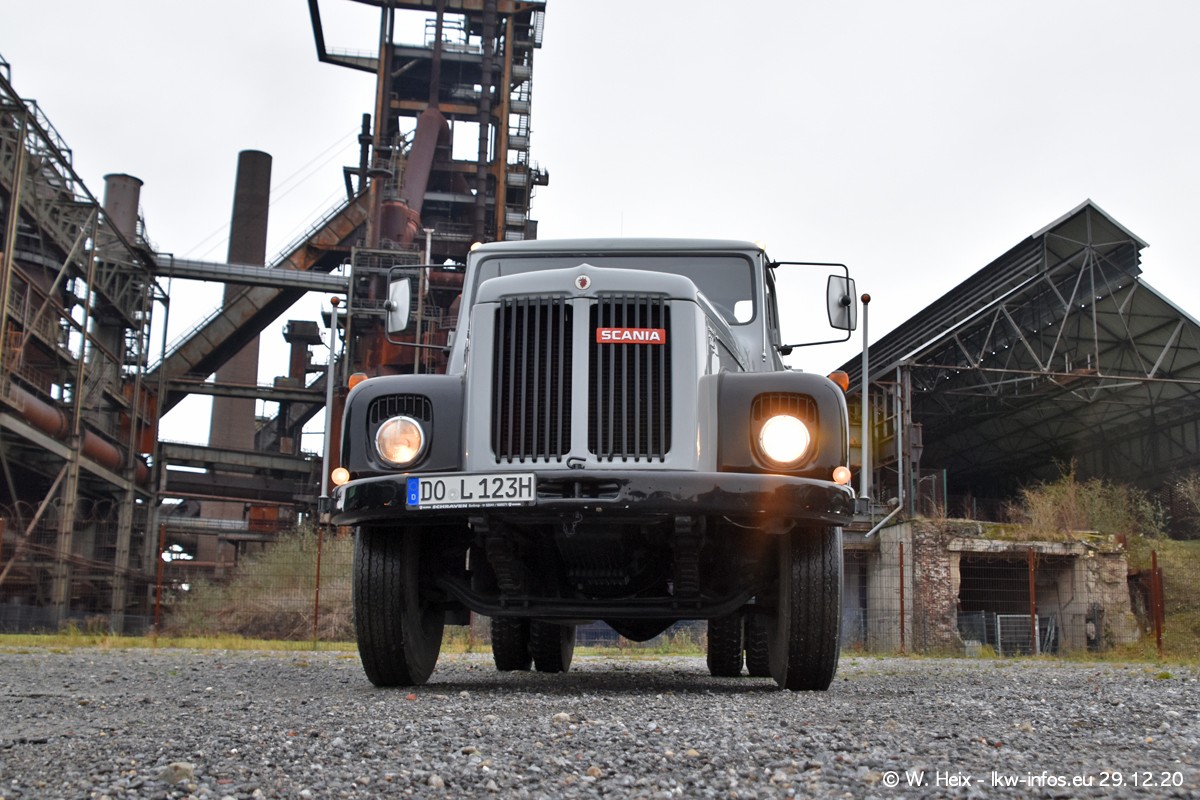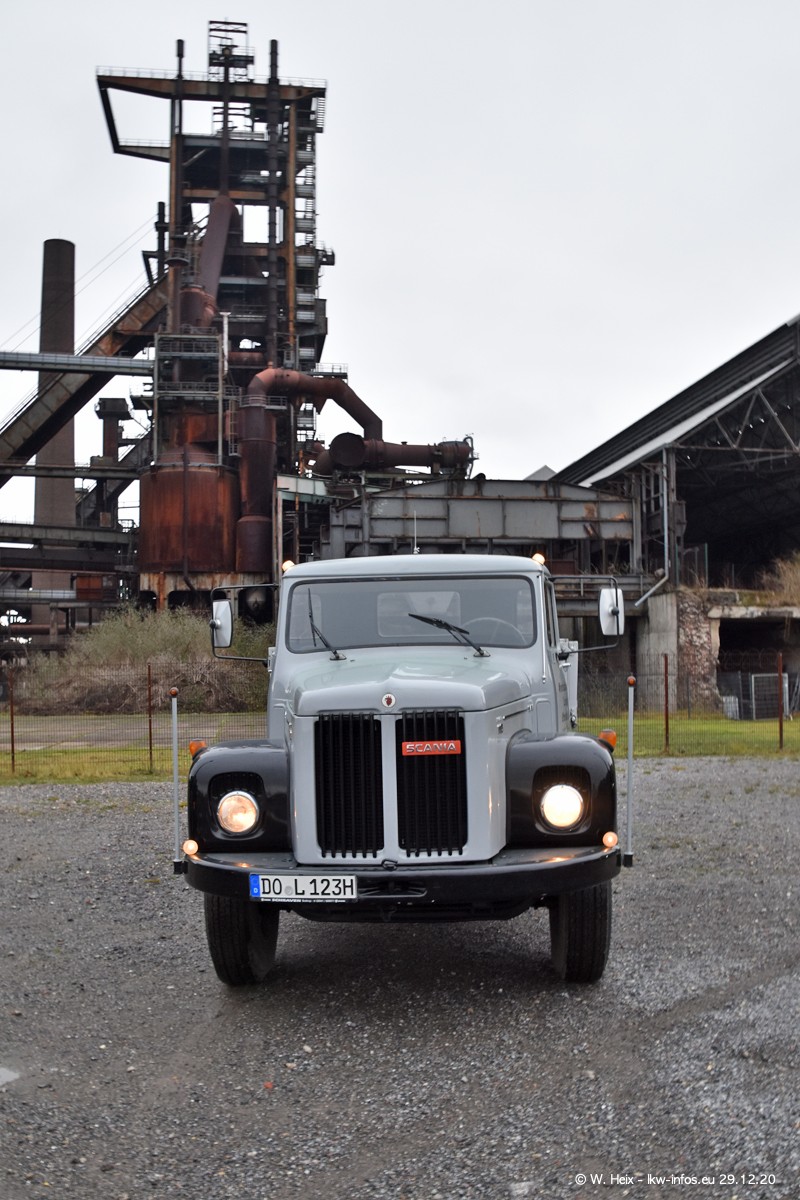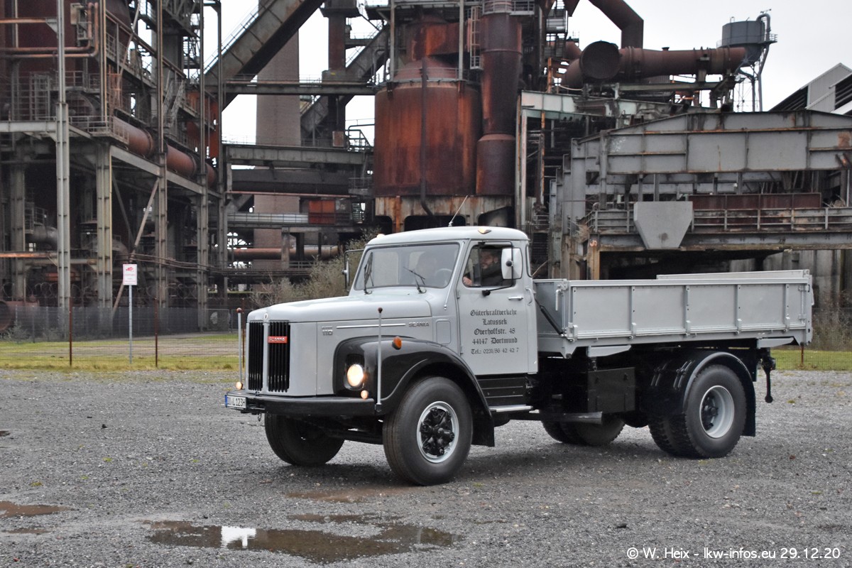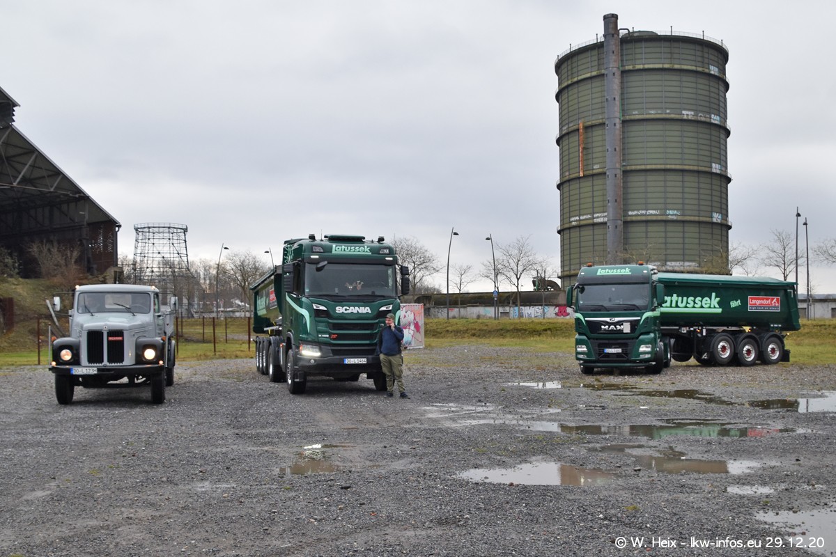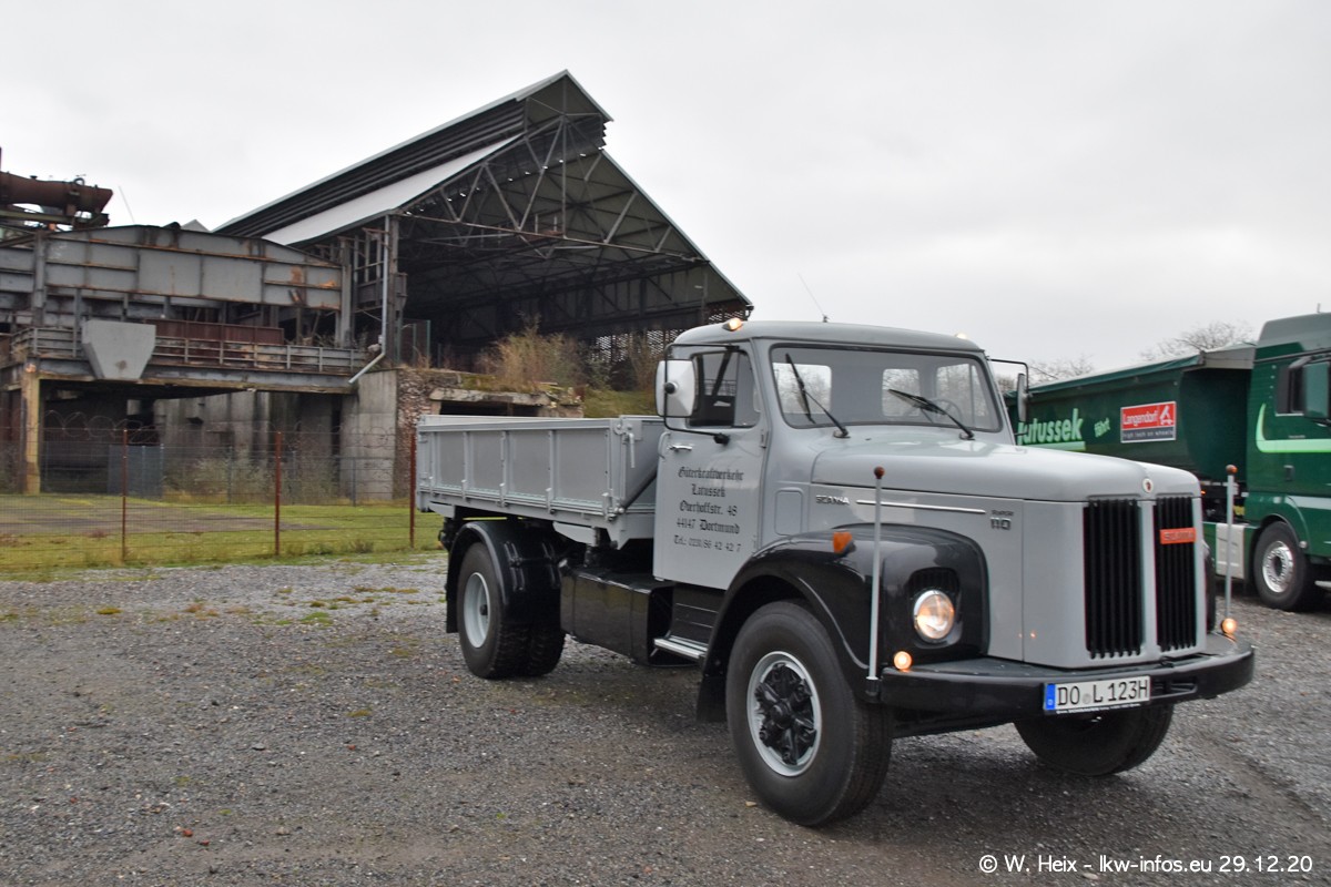 Am 29.12.2020 habe ich erstmals die Firma Latussek in Dortmund besucht. Während des Besuchs ergab sich dann spontan die Idee, im Anschluss an meinen Fotobesuch ein kleines Fotoshooting zu machen. Wir sind dann mit 5 LKW zum ehemaligen Hoesch-Gelände in Dortmund gefahren, das in der Nähe der B54 liegt. Die alte "Industrie-Ruine" ist ein toller Platz für Fotos. Mit dabei waren der graue SCANIA L 110 Kipper (Baujahr 1973, 305 PS), der MAN TGX Euro 6, der blaue SCANIA R 520 V8 Streamline, ein SCANIA R 450 XT NextGen 4x4 und ein SCANIA R 450 NextGen 4x2. Leider begann es während meiner Fotoarbeiten zu regnen sonst wären noch schönere Fotos möglich gewesen. Aber für Anfang 2021 ist schon ein weiteres Fotoshooting geplant, dann mit weiteren neuen LKW aus dem sehenswerten Fuhrpark.