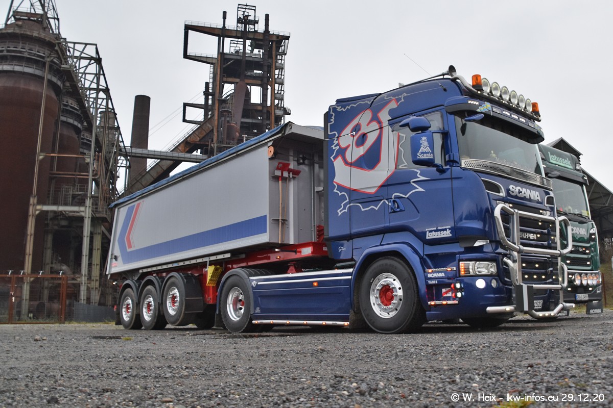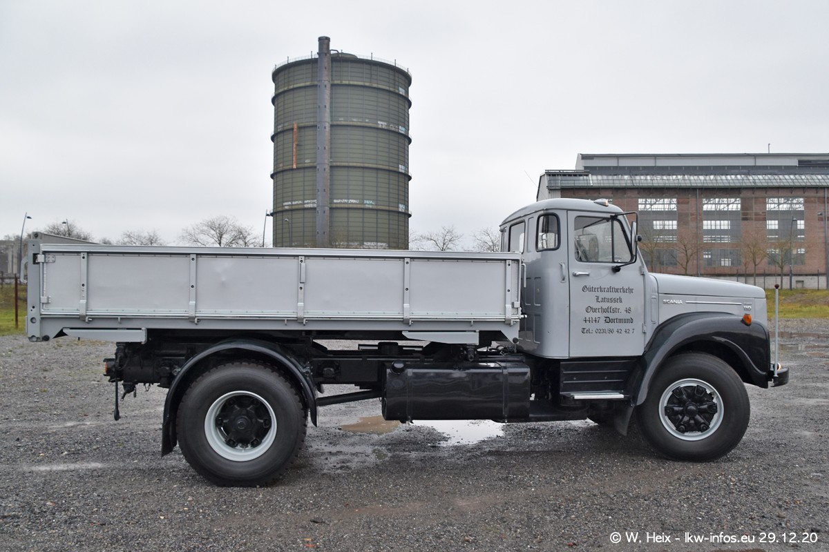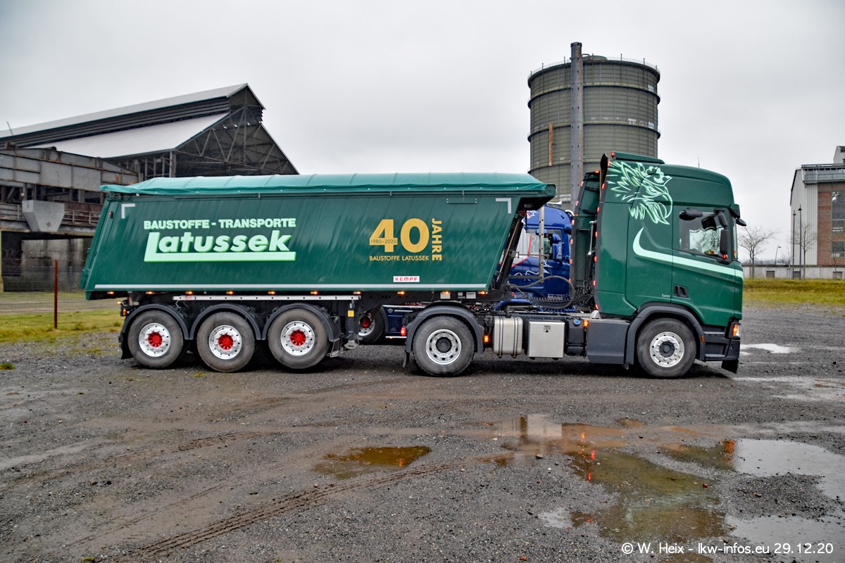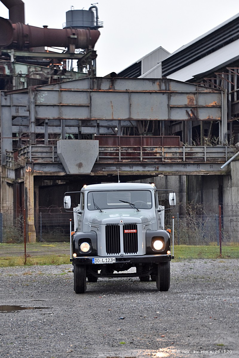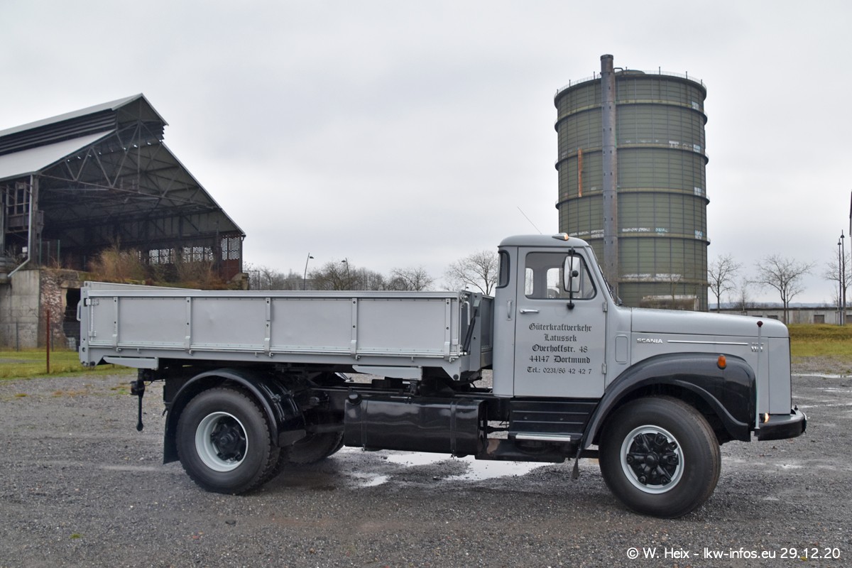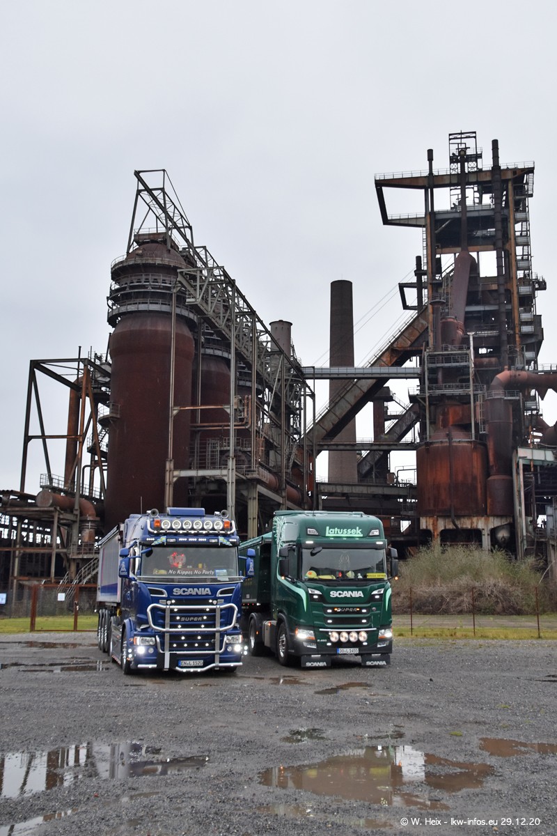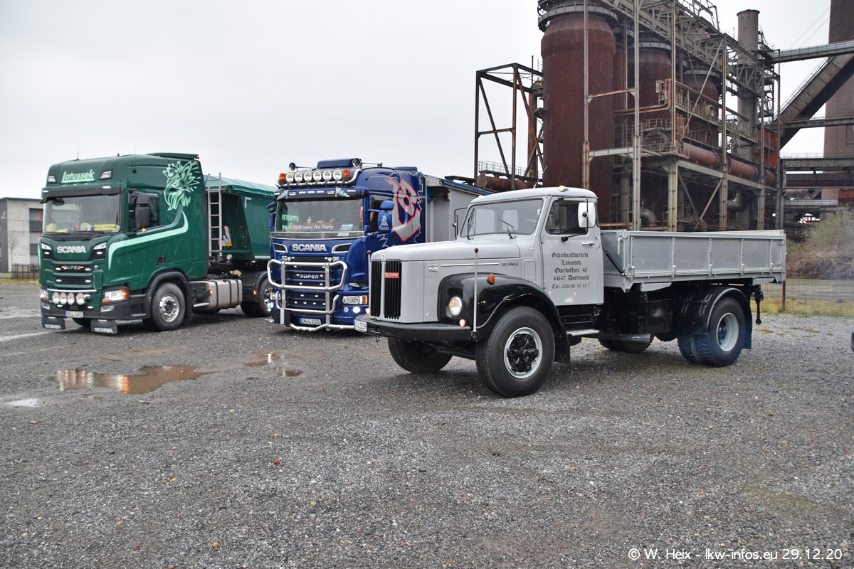 Am 29.12.2020 habe ich erstmals die Firma Latussek in Dortmund besucht. Während des Besuchs ergab sich dann spontan die Idee, im Anschluss an meinen Fotobesuch ein kleines Fotoshooting zu machen. Wir sind dann mit 5 LKW zum ehemaligen Hoesch-Gelände in Dortmund gefahren, das in der Nähe der B54 liegt. Die alte "Industrie-Ruine" ist ein toller Platz für Fotos. Mit dabei waren der graue SCANIA L 110 Kipper (Baujahr 1973, 305 PS), der MAN TGX Euro 6, der blaue SCANIA R 520 V8 Streamline, ein SCANIA R 450 XT NextGen 4x4 und ein SCANIA R 450 NextGen 4x2. Leider begann es während meiner Fotoarbeiten zu regnen sonst wären noch schönere Fotos möglich gewesen. Aber für Anfang 2021 ist schon ein weiteres Fotoshooting geplant, dann mit weiteren neuen LKW aus dem sehenswerten Fuhrpark.