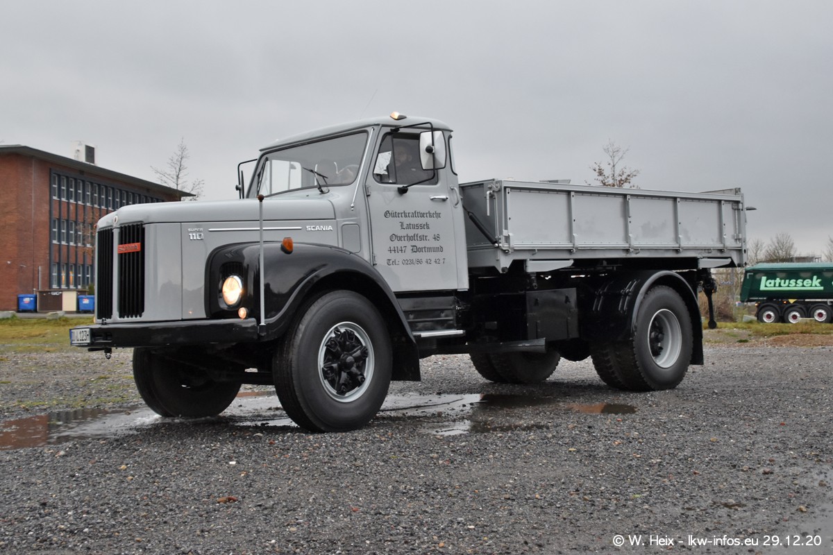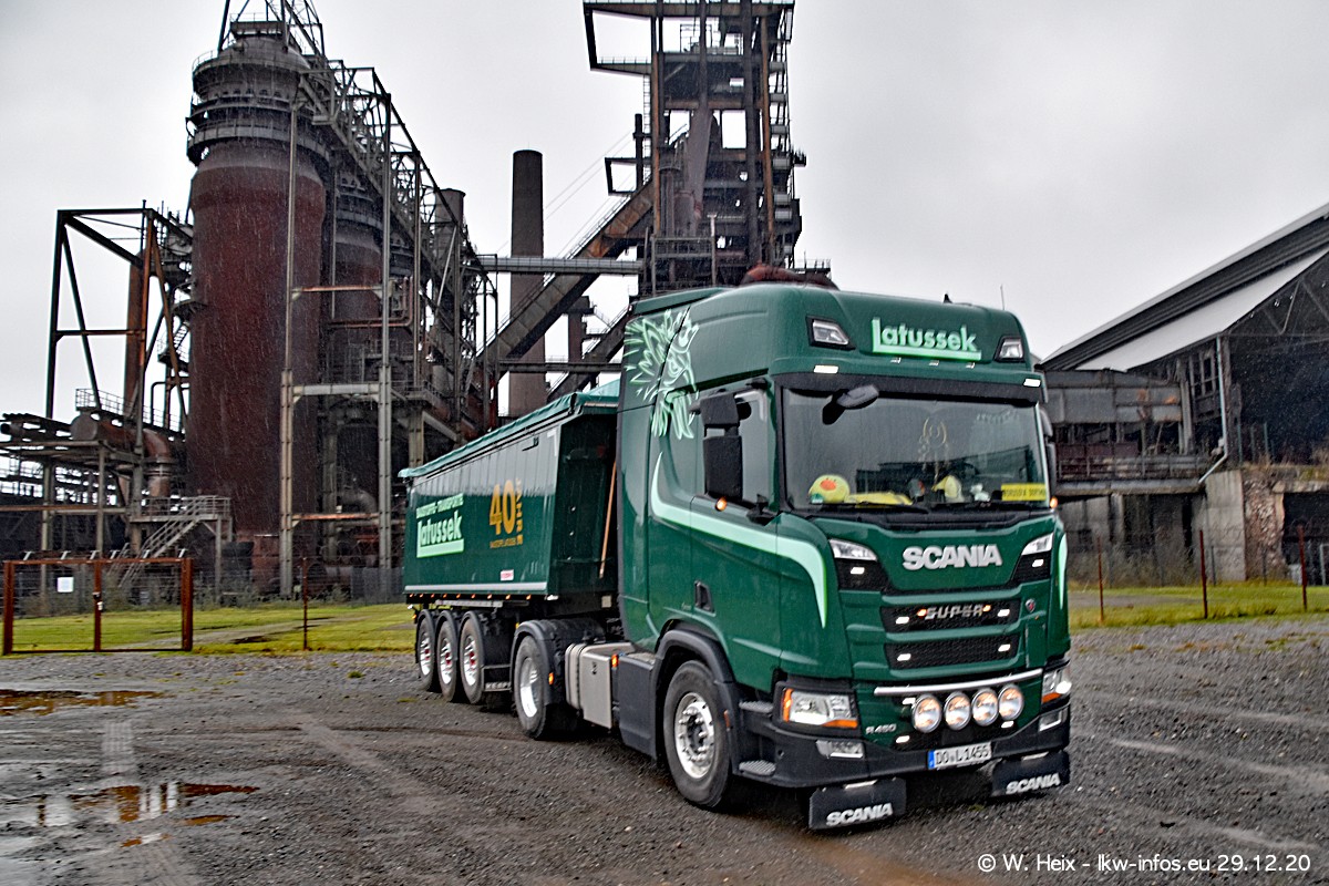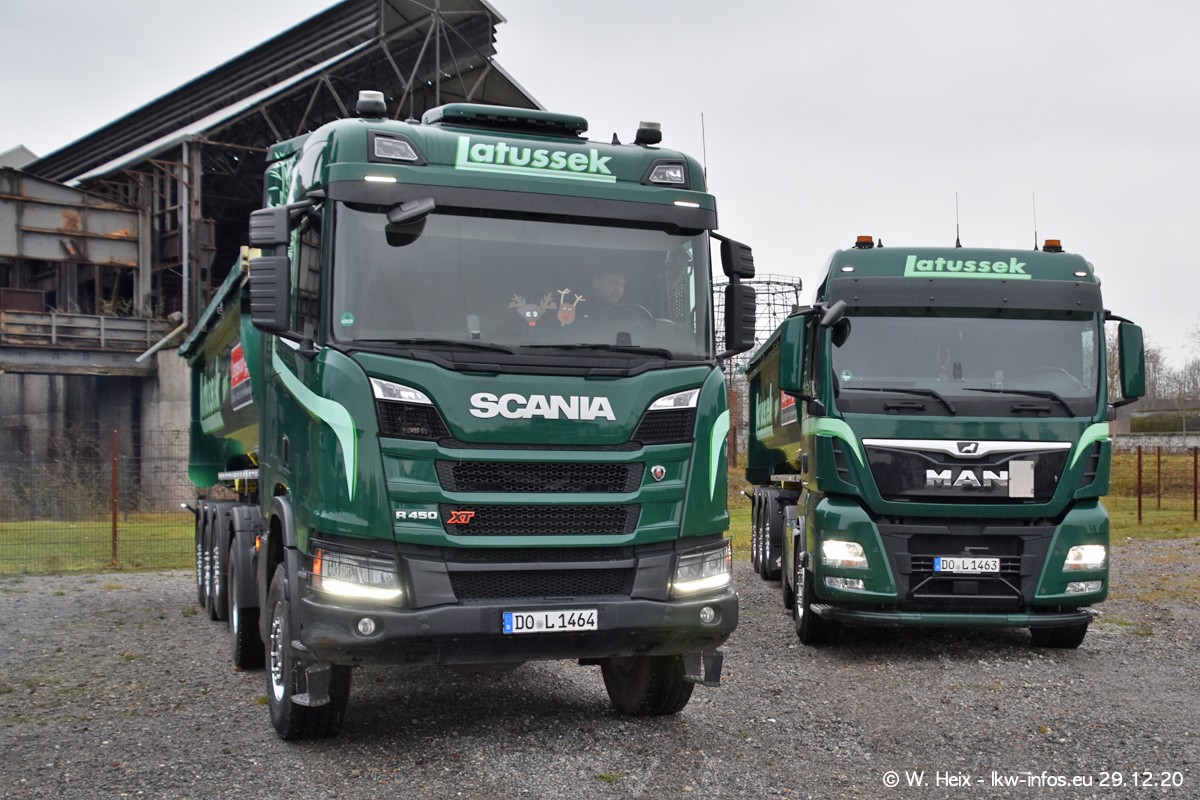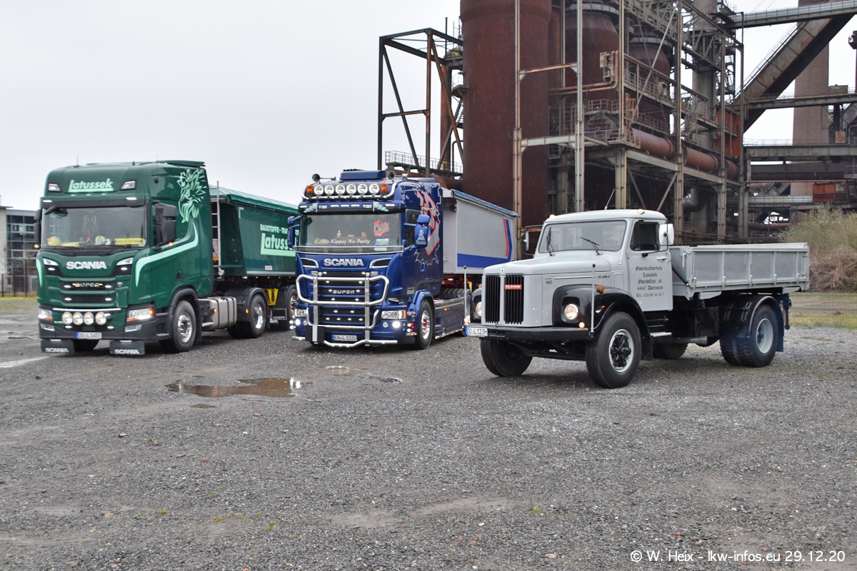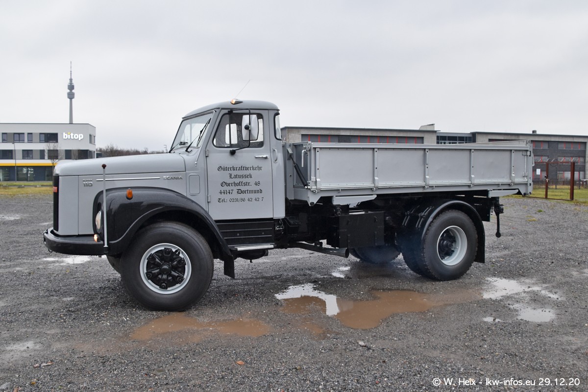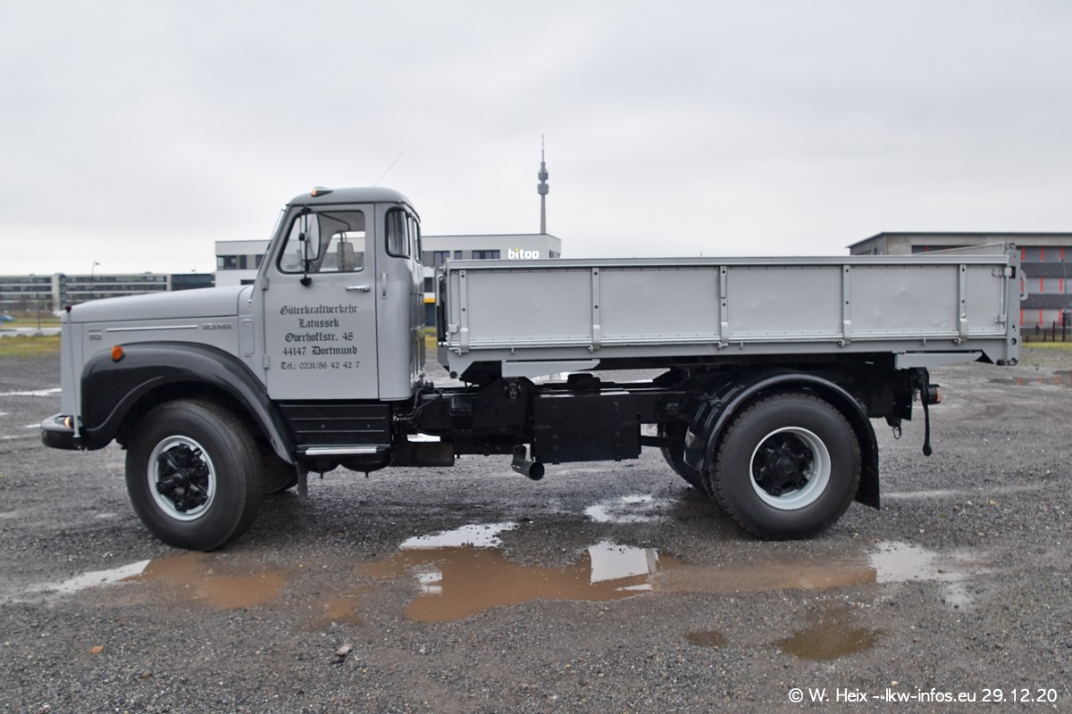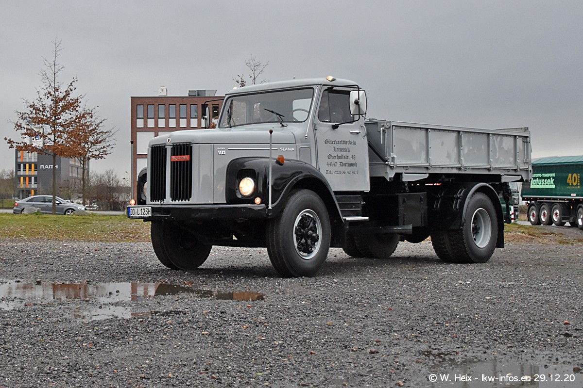 Am 29.12.2020 habe ich erstmals die Firma Latussek in Dortmund besucht. Während des Besuchs ergab sich dann spontan die Idee, im Anschluss an meinen Fotobesuch ein kleines Fotoshooting zu machen. Wir sind dann mit 5 LKW zum ehemaligen Hoesch-Gelände in Dortmund gefahren, das in der Nähe der B54 liegt. Die alte "Industrie-Ruine" ist ein toller Platz für Fotos. Mit dabei waren der graue SCANIA L 110 Kipper (Baujahr 1973, 305 PS), der MAN TGX Euro 6, der blaue SCANIA R 520 V8 Streamline, ein SCANIA R 450 XT NextGen 4x4 und ein SCANIA R 450 NextGen 4x2. Leider begann es während meiner Fotoarbeiten zu regnen sonst wären noch schönere Fotos möglich gewesen. Aber für Anfang 2021 ist schon ein weiteres Fotoshooting geplant, dann mit weiteren neuen LKW aus dem sehenswerten Fuhrpark.