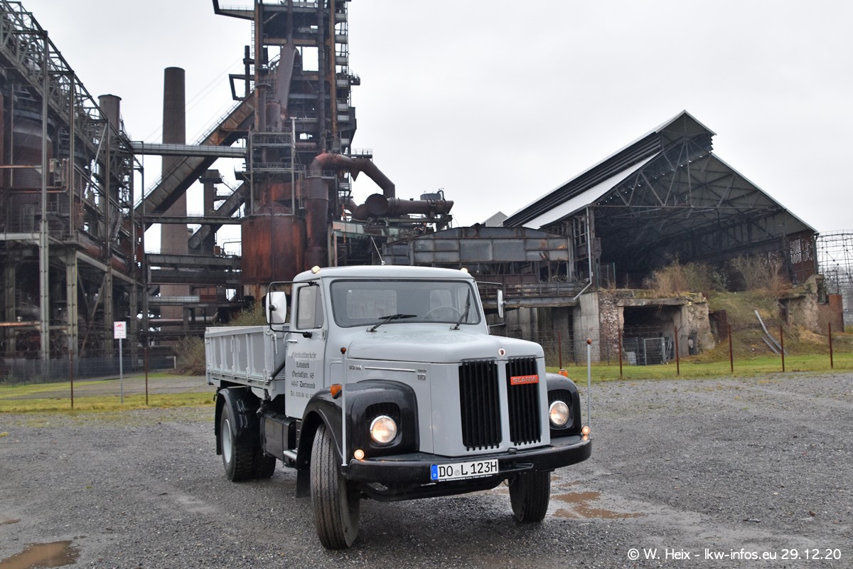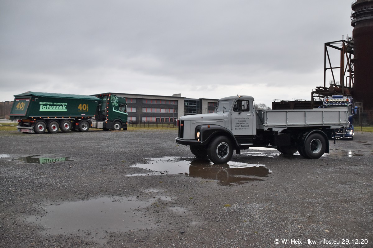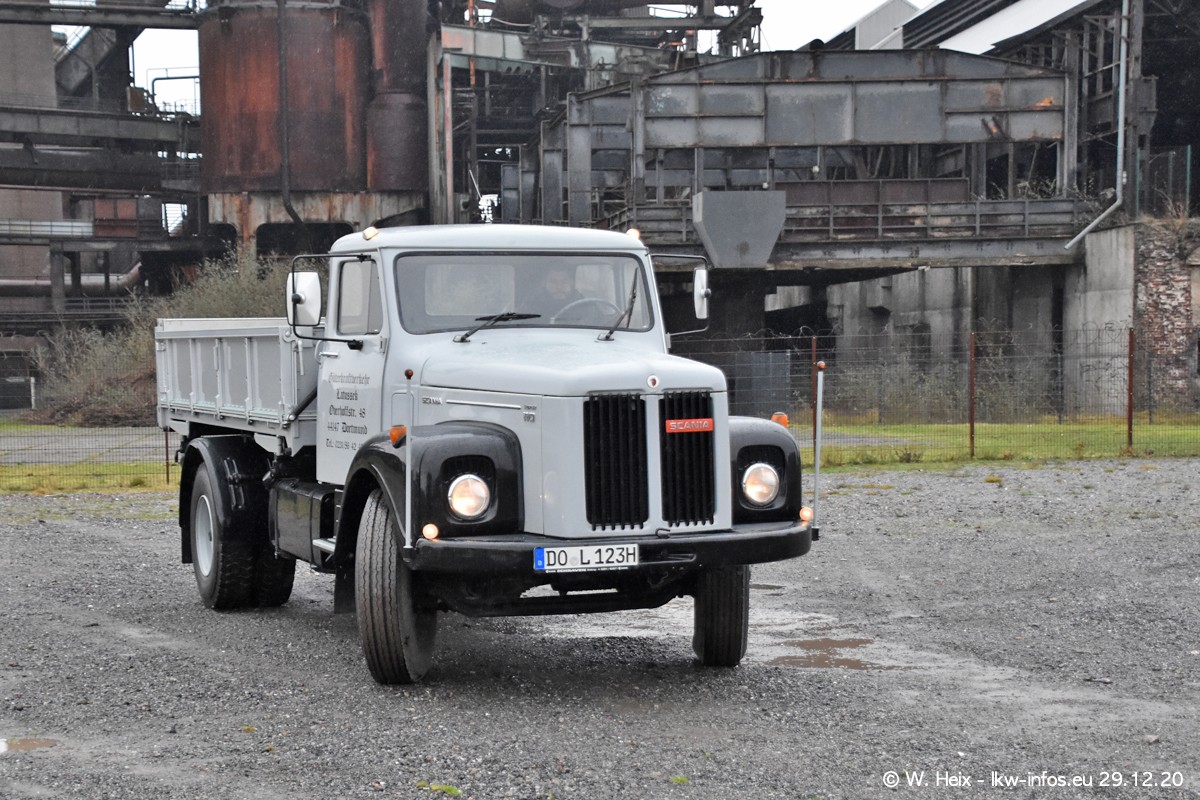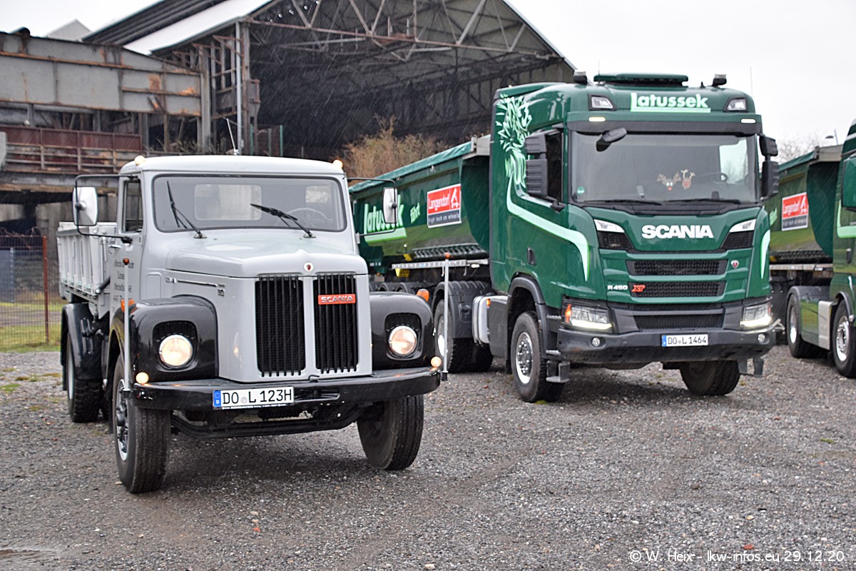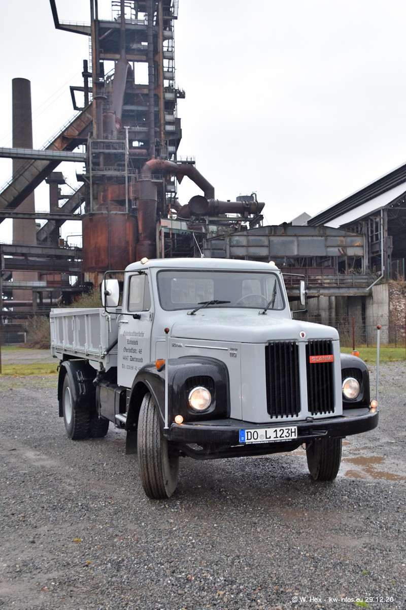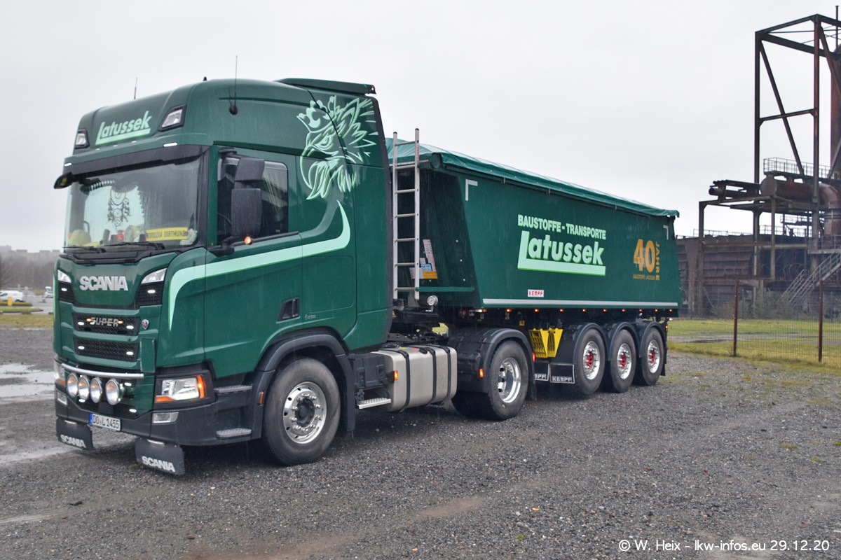 Am 29.12.2020 habe ich erstmals die Firma Latussek in Dortmund besucht. Während des Besuchs ergab sich dann spontan die Idee, im Anschluss an meinen Fotobesuch ein kleines Fotoshooting zu machen. Wir sind dann mit 5 LKW zum ehemaligen Hoesch-Gelände in Dortmund gefahren, das in der Nähe der B54 liegt. Die alte "Industrie-Ruine" ist ein toller Platz für Fotos. Mit dabei waren der graue SCANIA L 110 Kipper (Baujahr 1973, 305 PS), der MAN TGX Euro 6, der blaue SCANIA R 520 V8 Streamline, ein SCANIA R 450 XT NextGen 4x4 und ein SCANIA R 450 NextGen 4x2. Leider begann es während meiner Fotoarbeiten zu regnen sonst wären noch schönere Fotos möglich gewesen. Aber für Anfang 2021 ist schon ein weiteres Fotoshooting geplant, dann mit weiteren neuen LKW aus dem sehenswerten Fuhrpark.