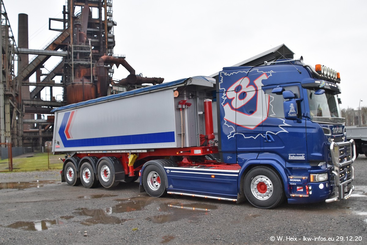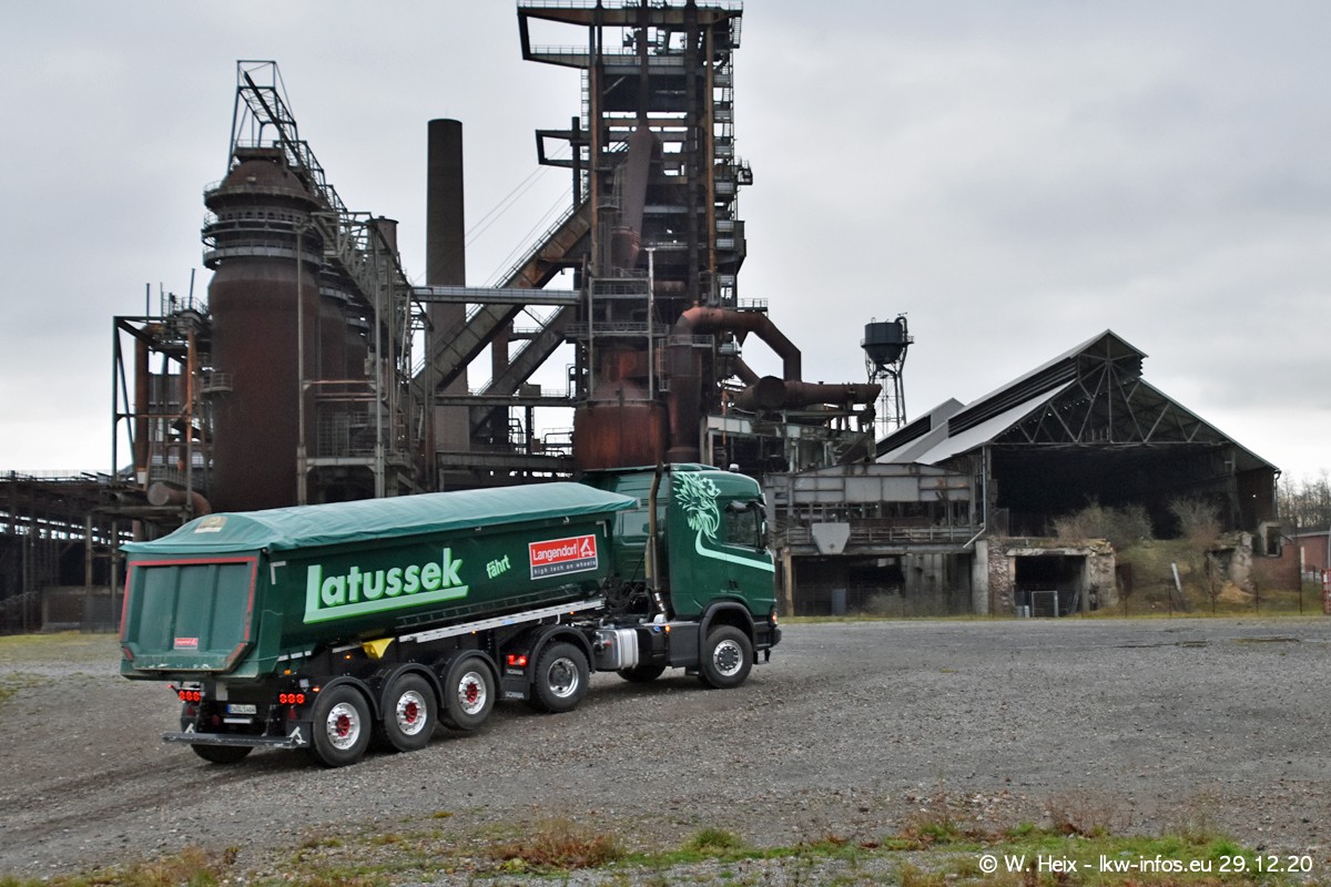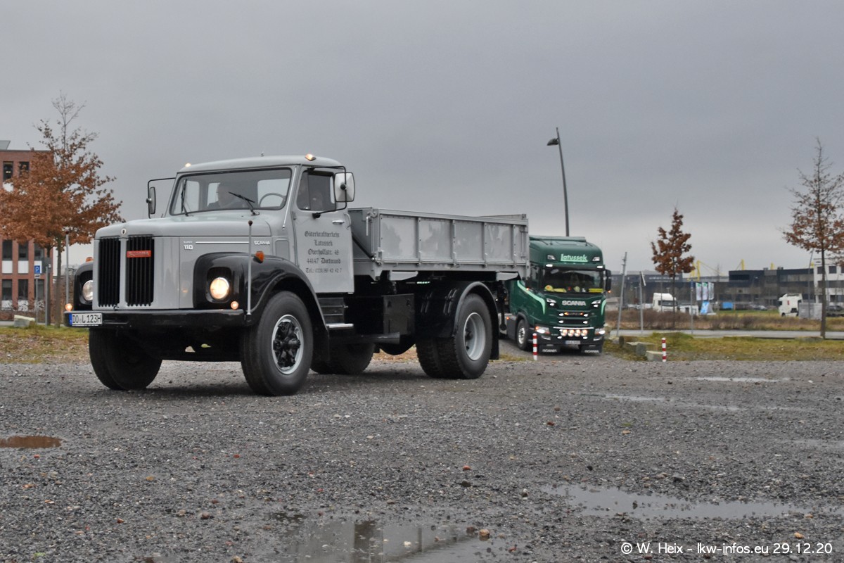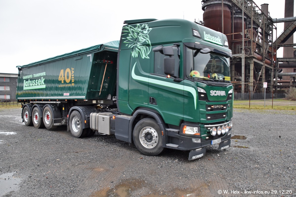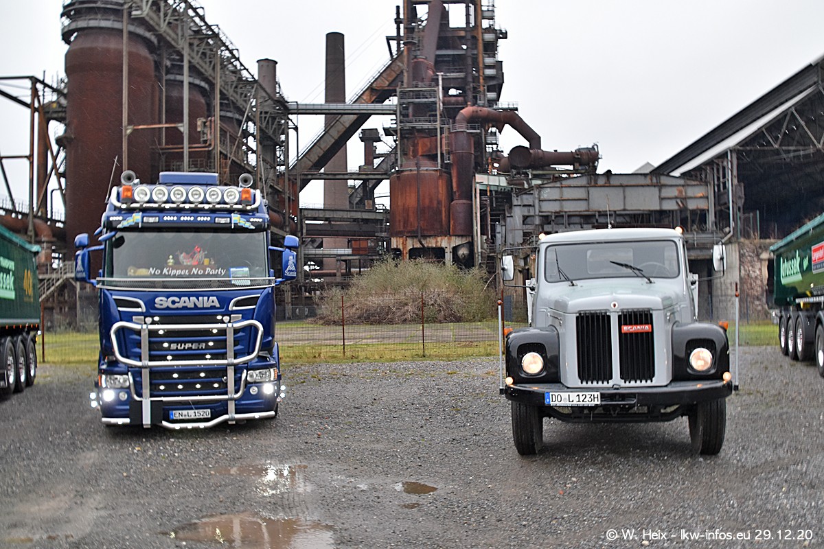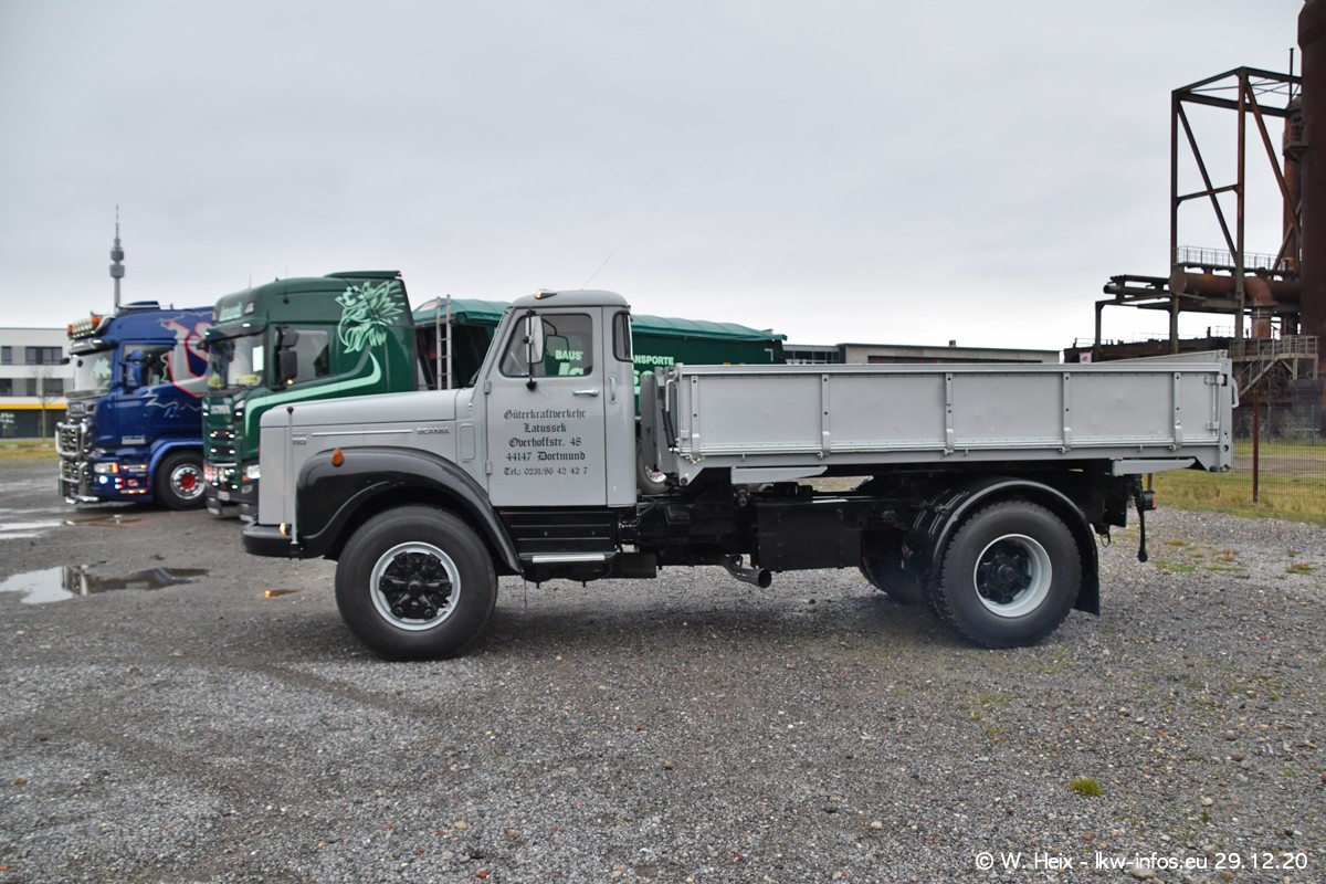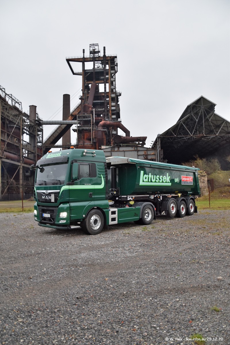 Am 29.12.2020 habe ich erstmals die Firma Latussek in Dortmund besucht. Während des Besuchs ergab sich dann spontan die Idee, im Anschluss an meinen Fotobesuch ein kleines Fotoshooting zu machen. Wir sind dann mit 5 LKW zum ehemaligen Hoesch-Gelände in Dortmund gefahren, das in der Nähe der B54 liegt. Die alte "Industrie-Ruine" ist ein toller Platz für Fotos. Mit dabei waren der graue SCANIA L 110 Kipper (Baujahr 1973, 305 PS), der MAN TGX Euro 6, der blaue SCANIA R 520 V8 Streamline, ein SCANIA R 450 XT NextGen 4x4 und ein SCANIA R 450 NextGen 4x2. Leider begann es während meiner Fotoarbeiten zu regnen sonst wären noch schönere Fotos möglich gewesen. Aber für Anfang 2021 ist schon ein weiteres Fotoshooting geplant, dann mit weiteren neuen LKW aus dem sehenswerten Fuhrpark.