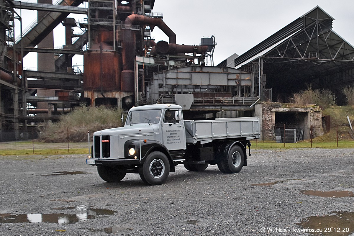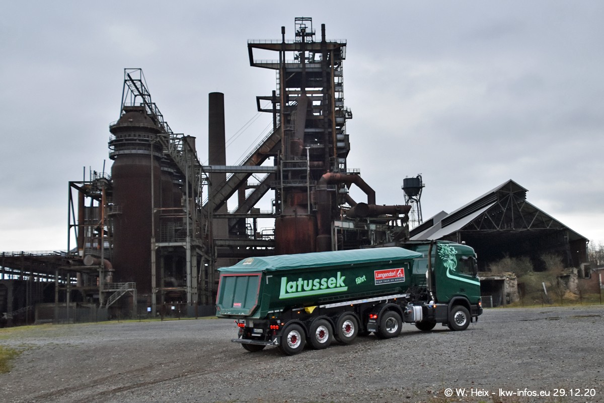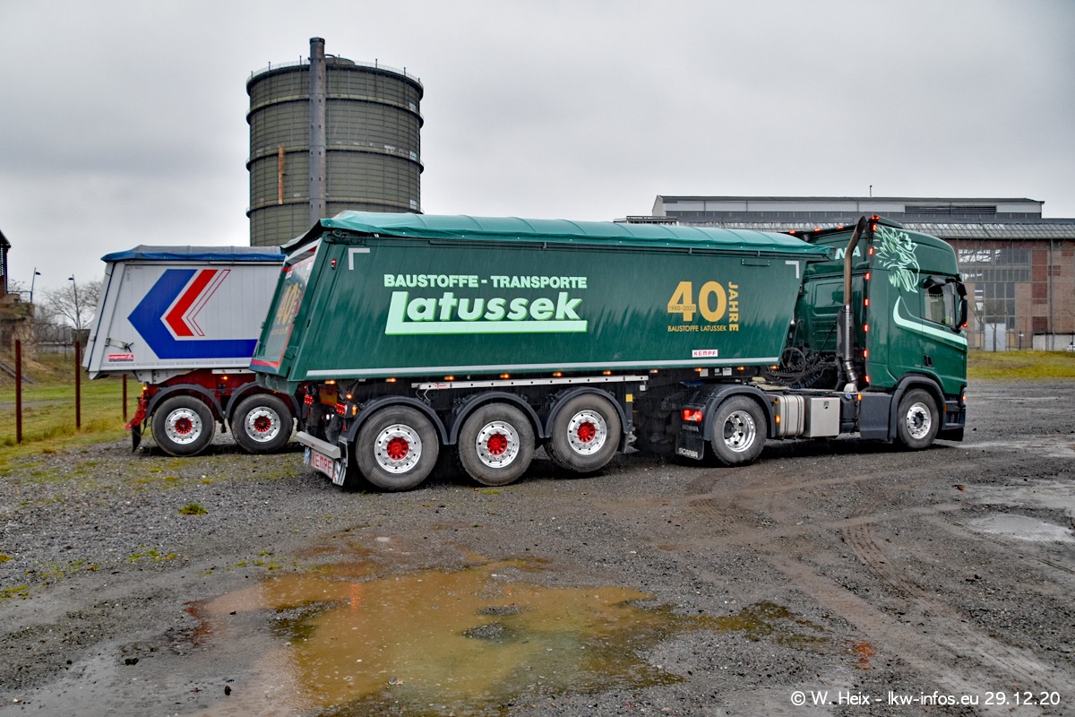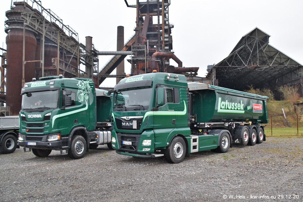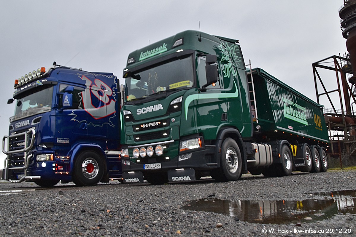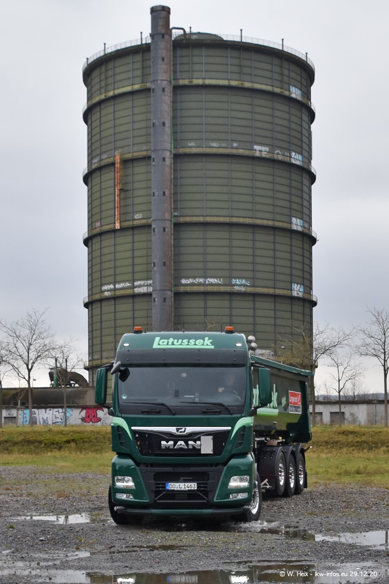 Am 29.12.2020 habe ich erstmals die Firma Latussek in Dortmund besucht. Während des Besuchs ergab sich dann spontan die Idee, im Anschluss an meinen Fotobesuch ein kleines Fotoshooting zu machen. Wir sind dann mit 5 LKW zum ehemaligen Hoesch-Gelände in Dortmund gefahren, das in der Nähe der B54 liegt. Die alte "Industrie-Ruine" ist ein toller Platz für Fotos. Mit dabei waren der graue SCANIA L 110 Kipper (Baujahr 1973, 305 PS), der MAN TGX Euro 6, der blaue SCANIA R 520 V8 Streamline, ein SCANIA R 450 XT NextGen 4x4 und ein SCANIA R 450 NextGen 4x2. Leider begann es während meiner Fotoarbeiten zu regnen sonst wären noch schönere Fotos möglich gewesen. Aber für Anfang 2021 ist schon ein weiteres Fotoshooting geplant, dann mit weiteren neuen LKW aus dem sehenswerten Fuhrpark.