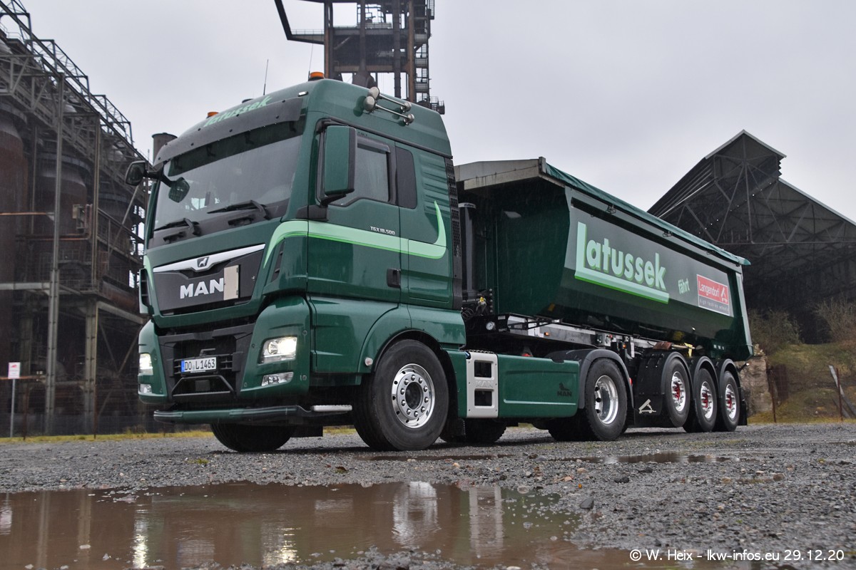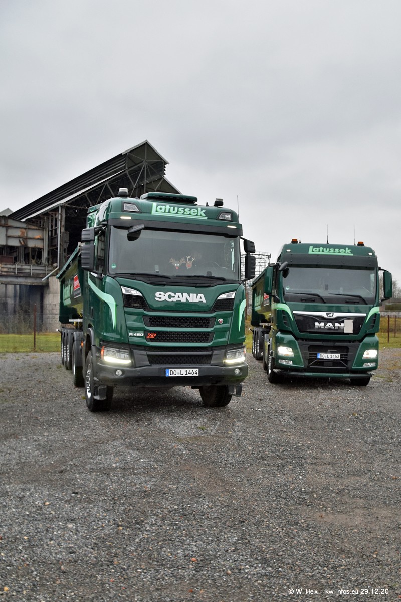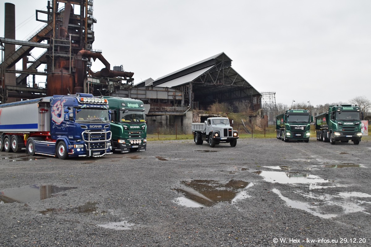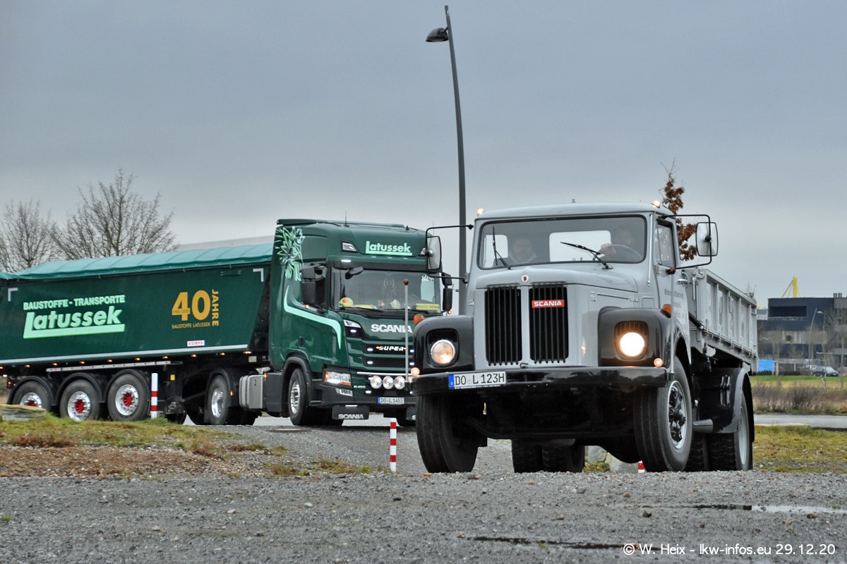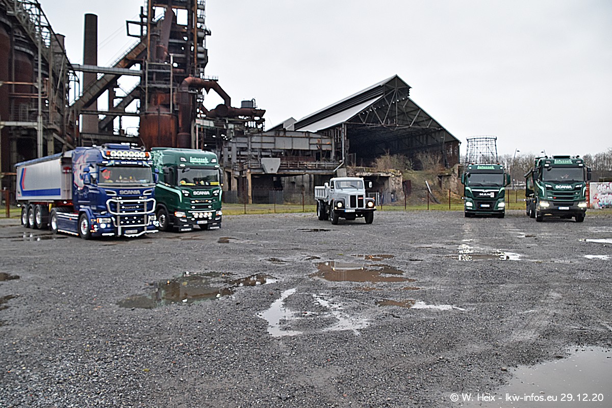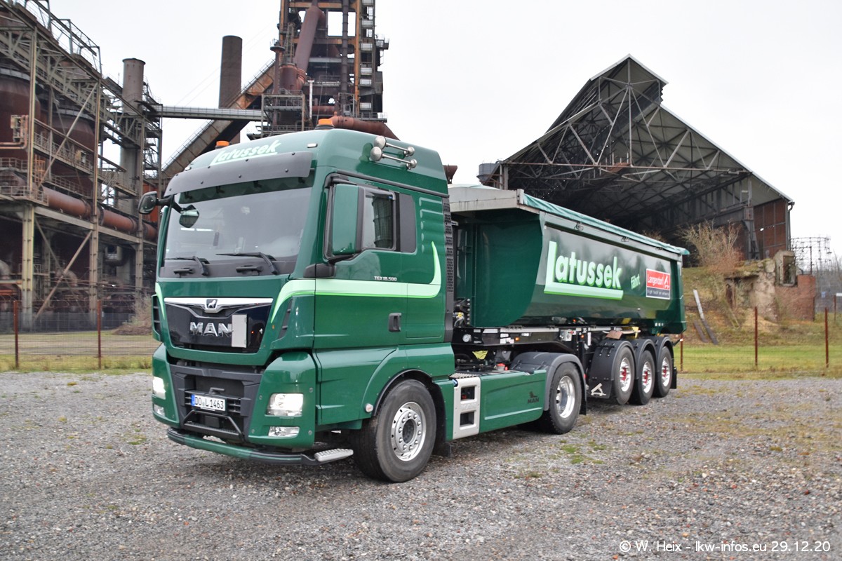 Am 29.12.2020 habe ich erstmals die Firma Latussek in Dortmund besucht. Während des Besuchs ergab sich dann spontan die Idee, im Anschluss an meinen Fotobesuch ein kleines Fotoshooting zu machen. Wir sind dann mit 5 LKW zum ehemaligen Hoesch-Gelände in Dortmund gefahren, das in der Nähe der B54 liegt. Die alte "Industrie-Ruine" ist ein toller Platz für Fotos. Mit dabei waren der graue SCANIA L 110 Kipper (Baujahr 1973, 305 PS), der MAN TGX Euro 6, der blaue SCANIA R 520 V8 Streamline, ein SCANIA R 450 XT NextGen 4x4 und ein SCANIA R 450 NextGen 4x2. Leider begann es während meiner Fotoarbeiten zu regnen sonst wären noch schönere Fotos möglich gewesen. Aber für Anfang 2021 ist schon ein weiteres Fotoshooting geplant, dann mit weiteren neuen LKW aus dem sehenswerten Fuhrpark.