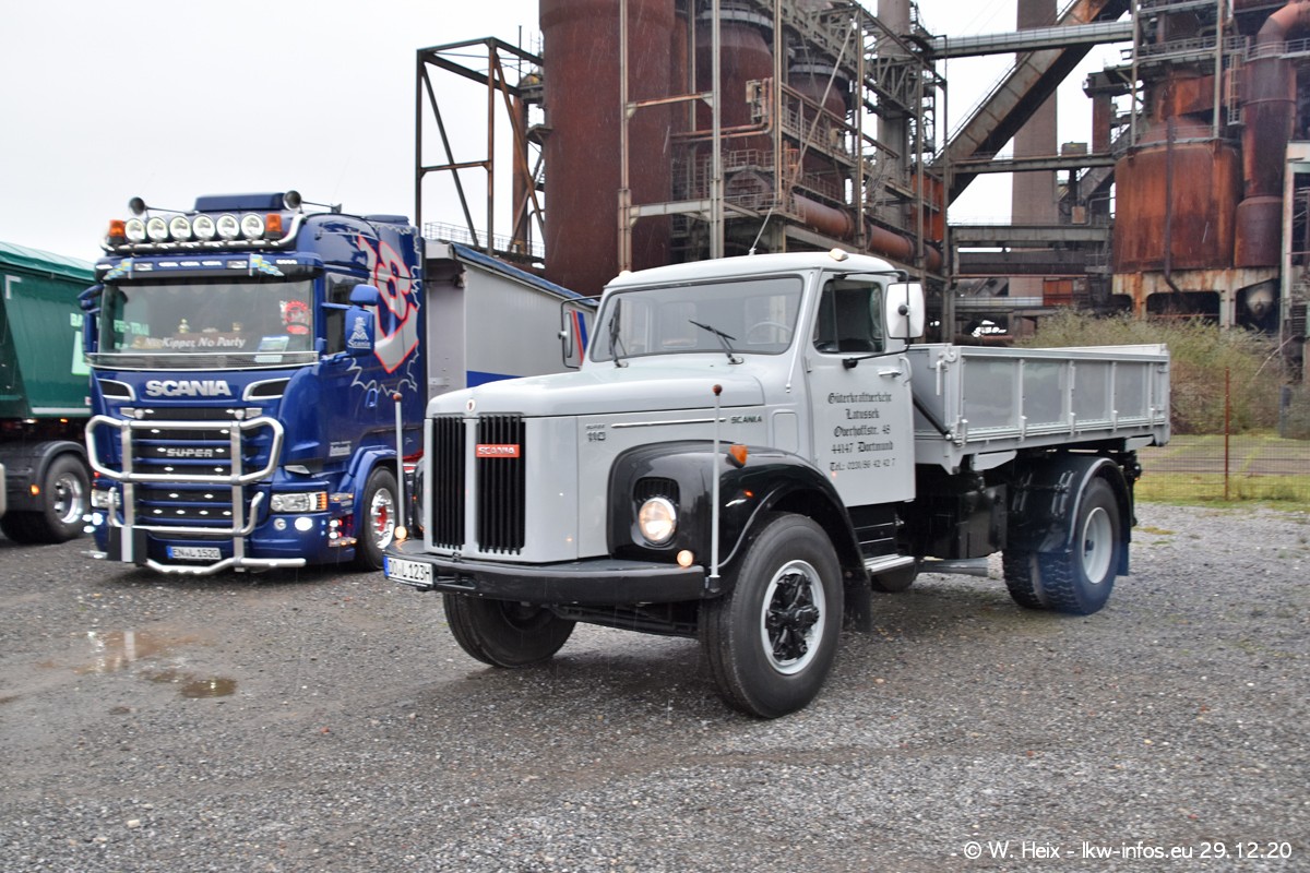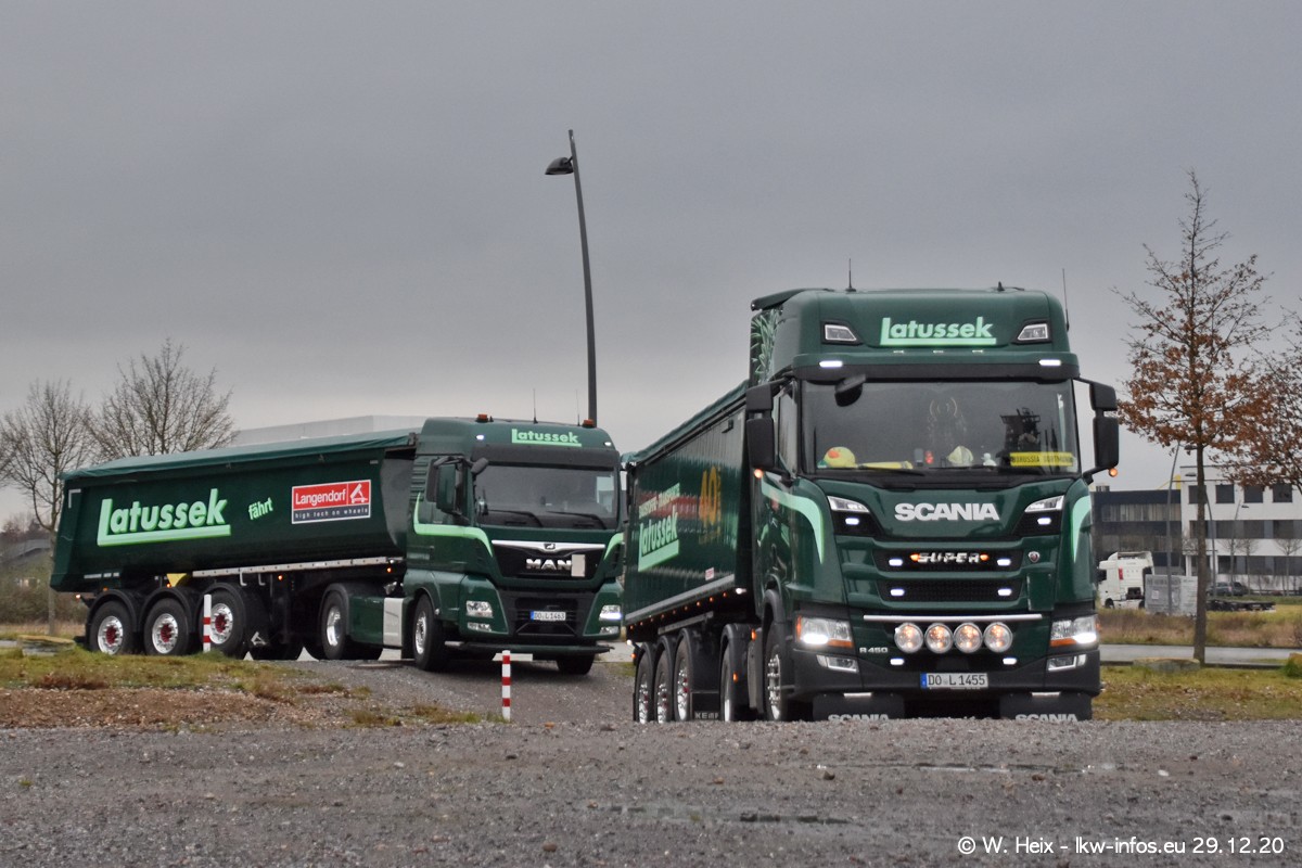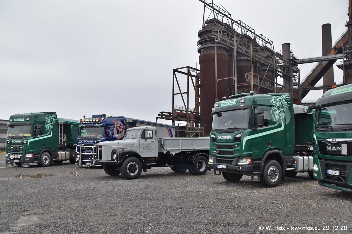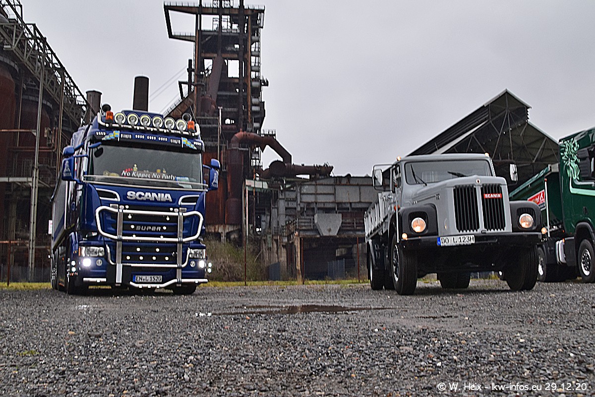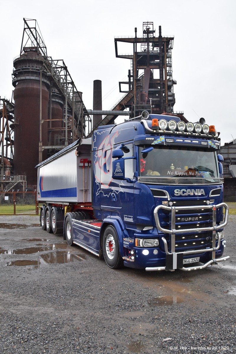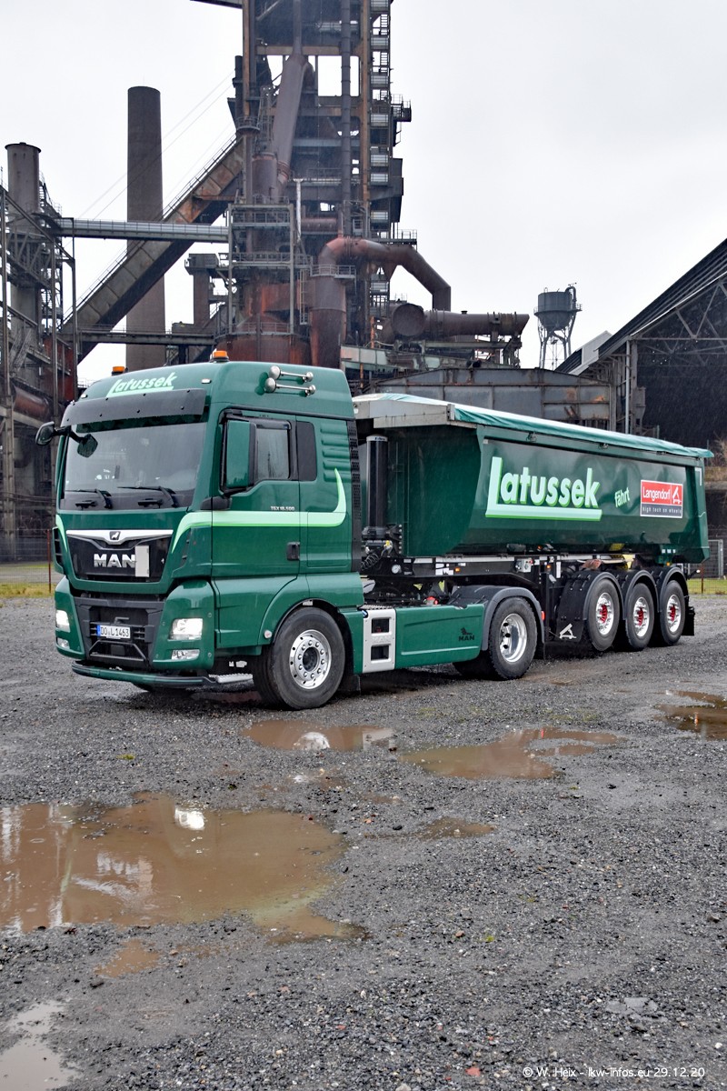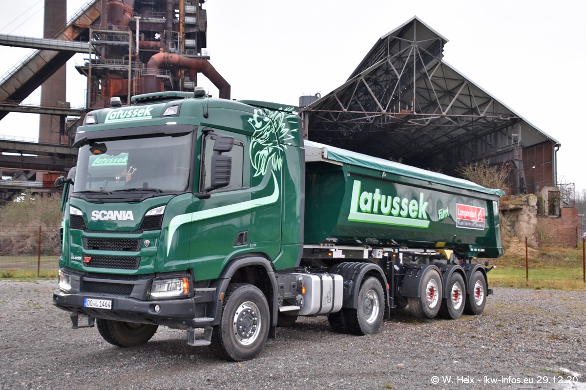 Am 29.12.2020 habe ich erstmals die Firma Latussek in Dortmund besucht. Während des Besuchs ergab sich dann spontan die Idee, im Anschluss an meinen Fotobesuch ein kleines Fotoshooting zu machen. Wir sind dann mit 5 LKW zum ehemaligen Hoesch-Gelände in Dortmund gefahren, das in der Nähe der B54 liegt. Die alte "Industrie-Ruine" ist ein toller Platz für Fotos. Mit dabei waren der graue SCANIA L 110 Kipper (Baujahr 1973, 305 PS), der MAN TGX Euro 6, der blaue SCANIA R 520 V8 Streamline, ein SCANIA R 450 XT NextGen 4x4 und ein SCANIA R 450 NextGen 4x2. Leider begann es während meiner Fotoarbeiten zu regnen sonst wären noch schönere Fotos möglich gewesen. Aber für Anfang 2021 ist schon ein weiteres Fotoshooting geplant, dann mit weiteren neuen LKW aus dem sehenswerten Fuhrpark.