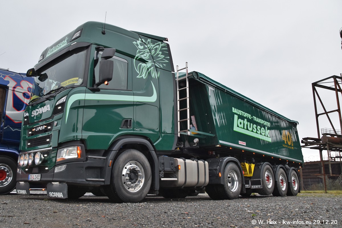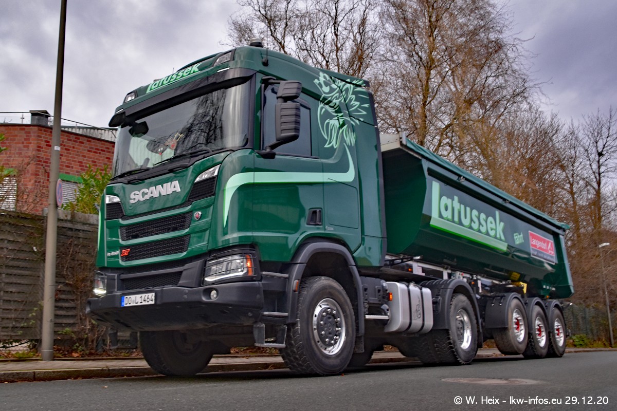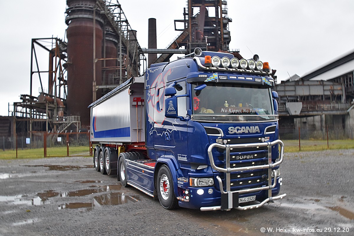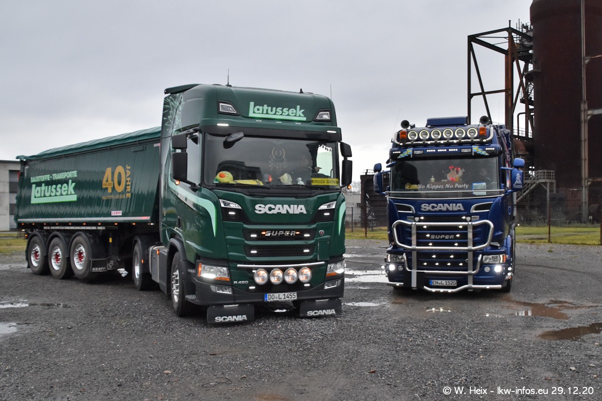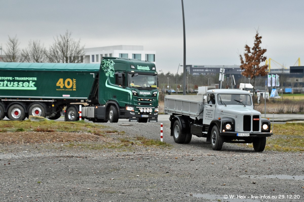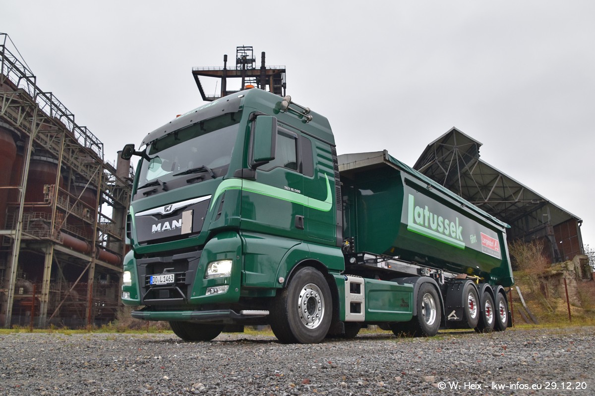 Am 29.12.2020 habe ich erstmals die Firma Latussek in Dortmund besucht. Während des Besuchs ergab sich dann spontan die Idee, im Anschluss an meinen Fotobesuch ein kleines Fotoshooting zu machen. Wir sind dann mit 5 LKW zum ehemaligen Hoesch-Gelände in Dortmund gefahren, das in der Nähe der B54 liegt. Die alte "Industrie-Ruine" ist ein toller Platz für Fotos. Mit dabei waren der graue SCANIA L 110 Kipper (Baujahr 1973, 305 PS), der MAN TGX Euro 6, der blaue SCANIA R 520 V8 Streamline, ein SCANIA R 450 XT NextGen 4x4 und ein SCANIA R 450 NextGen 4x2. Leider begann es während meiner Fotoarbeiten zu regnen sonst wären noch schönere Fotos möglich gewesen. Aber für Anfang 2021 ist schon ein weiteres Fotoshooting geplant, dann mit weiteren neuen LKW aus dem sehenswerten Fuhrpark.