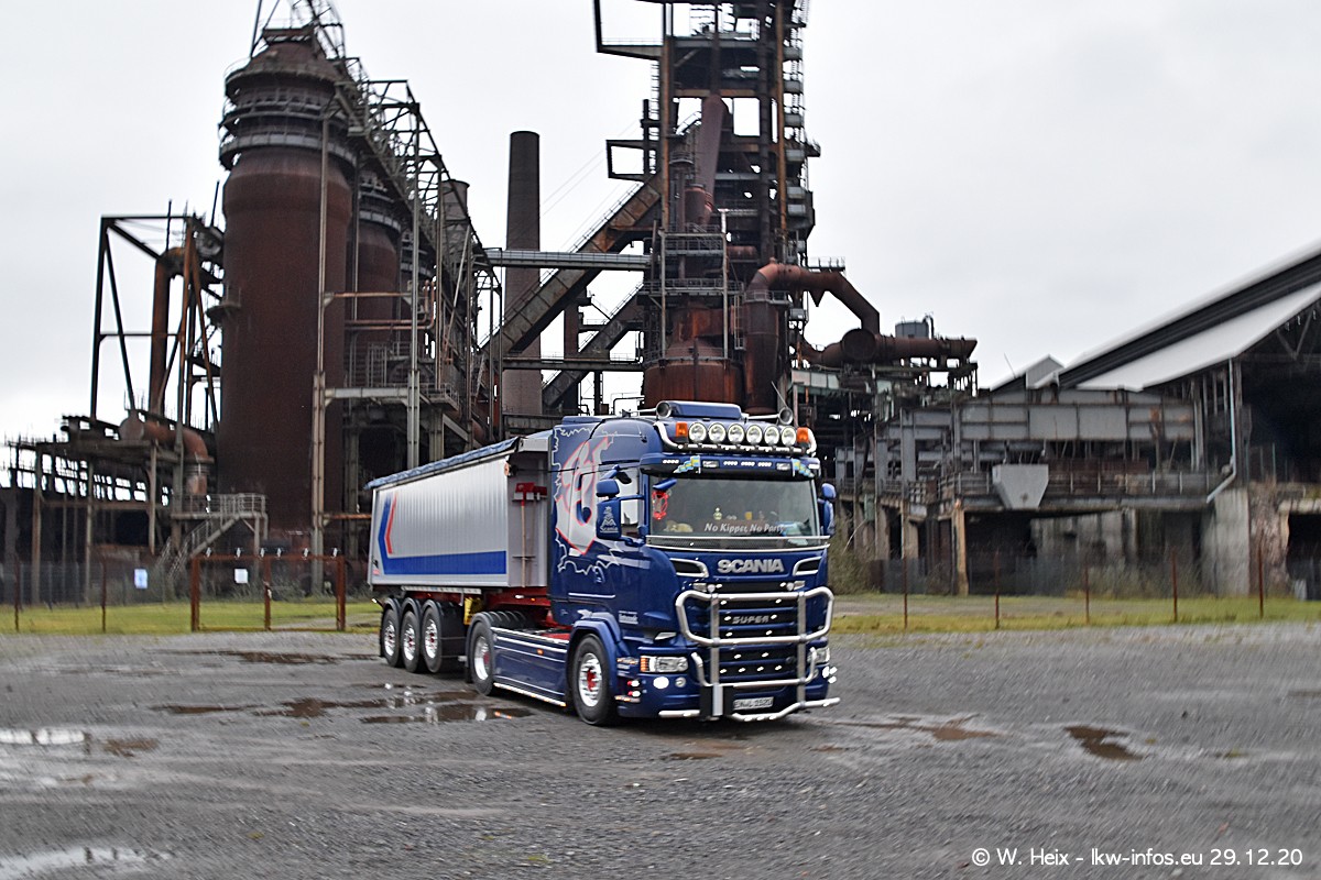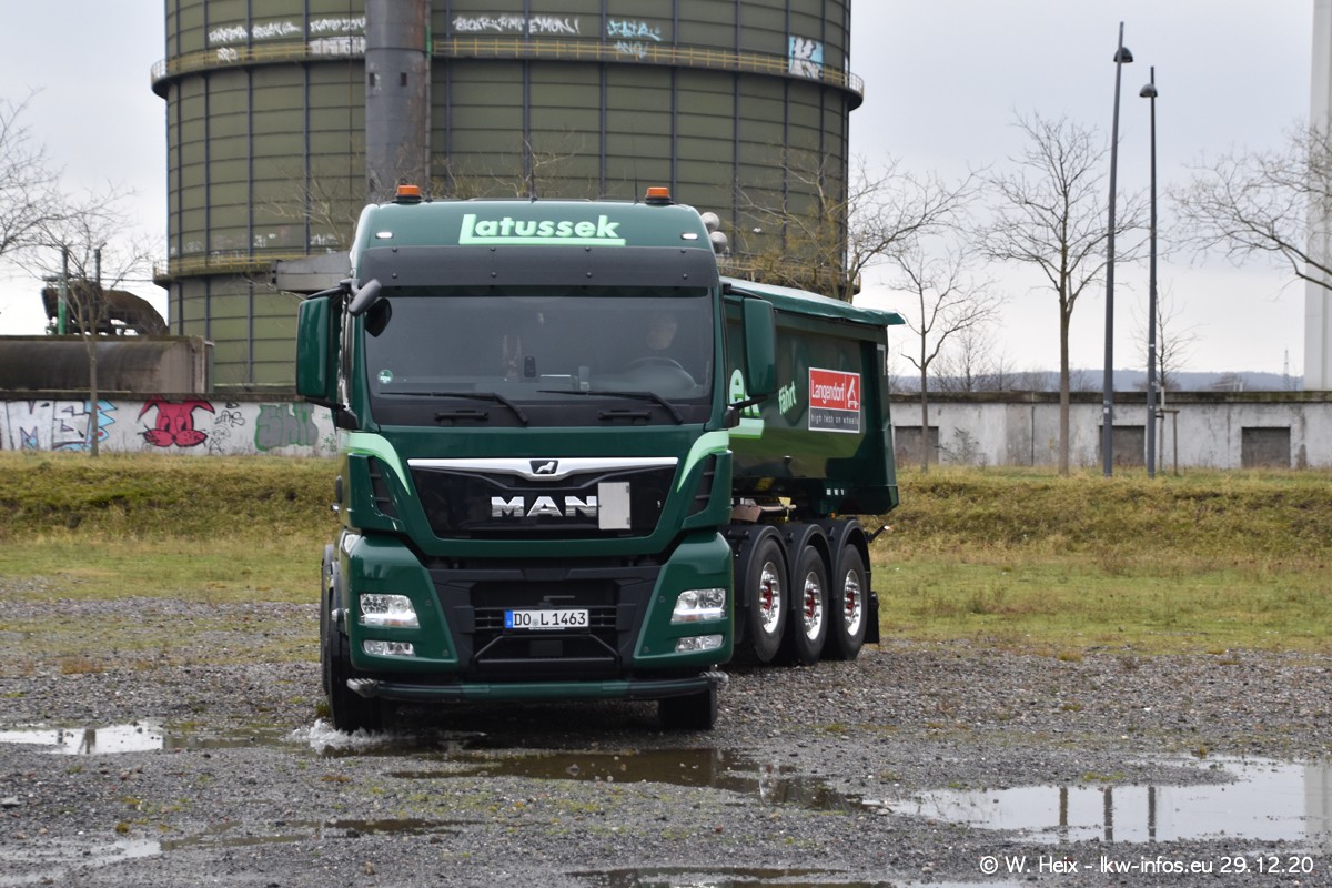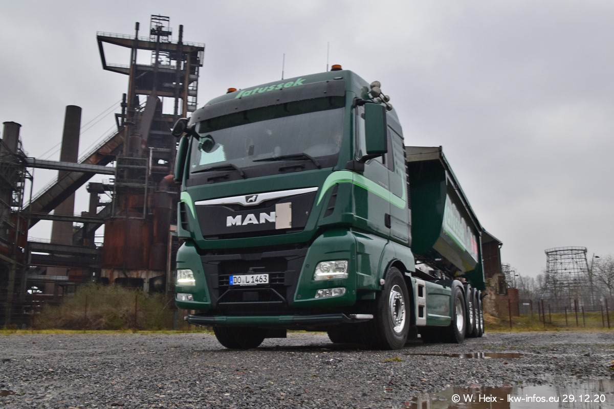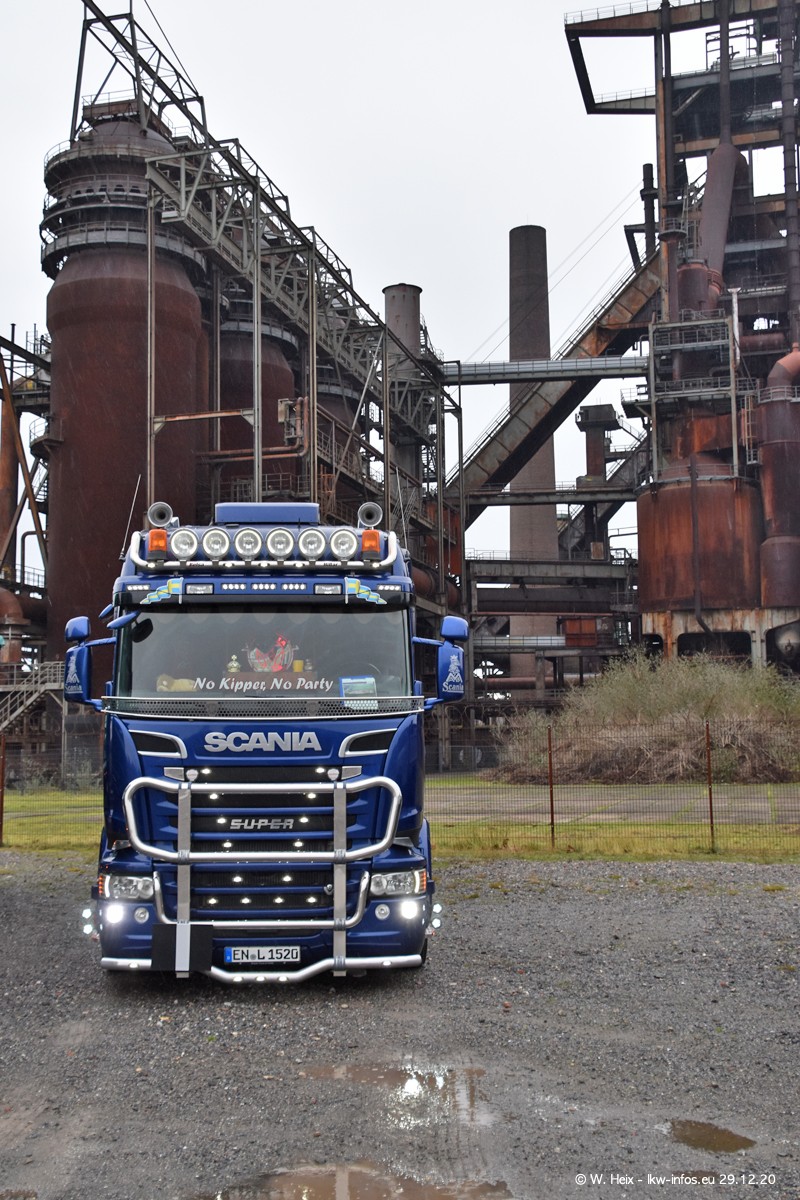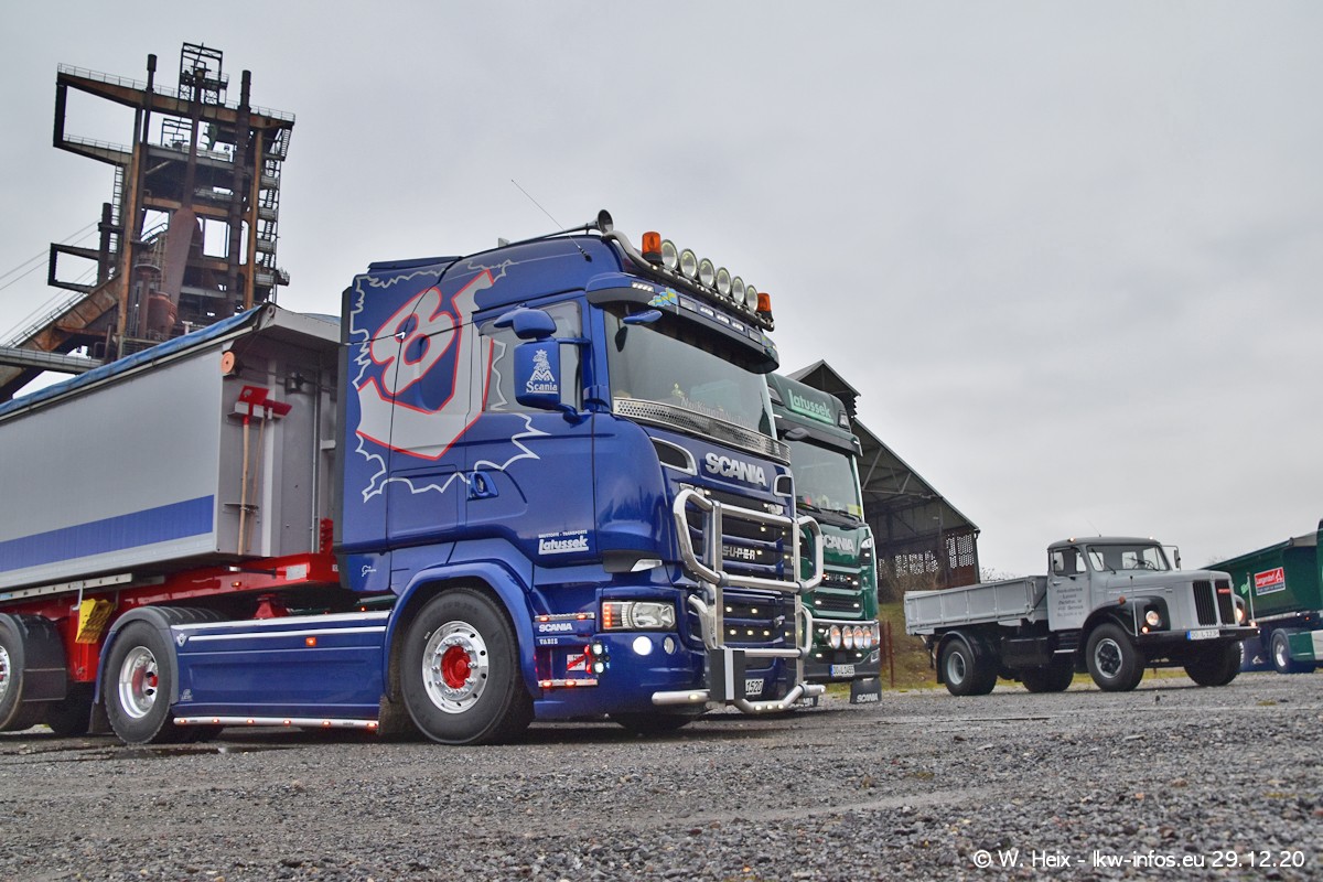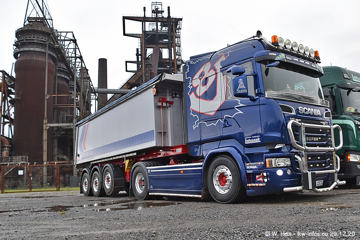 Am 29.12.2020 habe ich erstmals die Firma Latussek in Dortmund besucht. Während des Besuchs ergab sich dann spontan die Idee, im Anschluss an meinen Fotobesuch ein kleines Fotoshooting zu machen. Wir sind dann mit 5 LKW zum ehemaligen Hoesch-Gelände in Dortmund gefahren, das in der Nähe der B54 liegt. Die alte "Industrie-Ruine" ist ein toller Platz für Fotos. Mit dabei waren der graue SCANIA L 110 Kipper (Baujahr 1973, 305 PS), der MAN TGX Euro 6, der blaue SCANIA R 520 V8 Streamline, ein SCANIA R 450 XT NextGen 4x4 und ein SCANIA R 450 NextGen 4x2. Leider begann es während meiner Fotoarbeiten zu regnen sonst wären noch schönere Fotos möglich gewesen. Aber für Anfang 2021 ist schon ein weiteres Fotoshooting geplant, dann mit weiteren neuen LKW aus dem sehenswerten Fuhrpark.