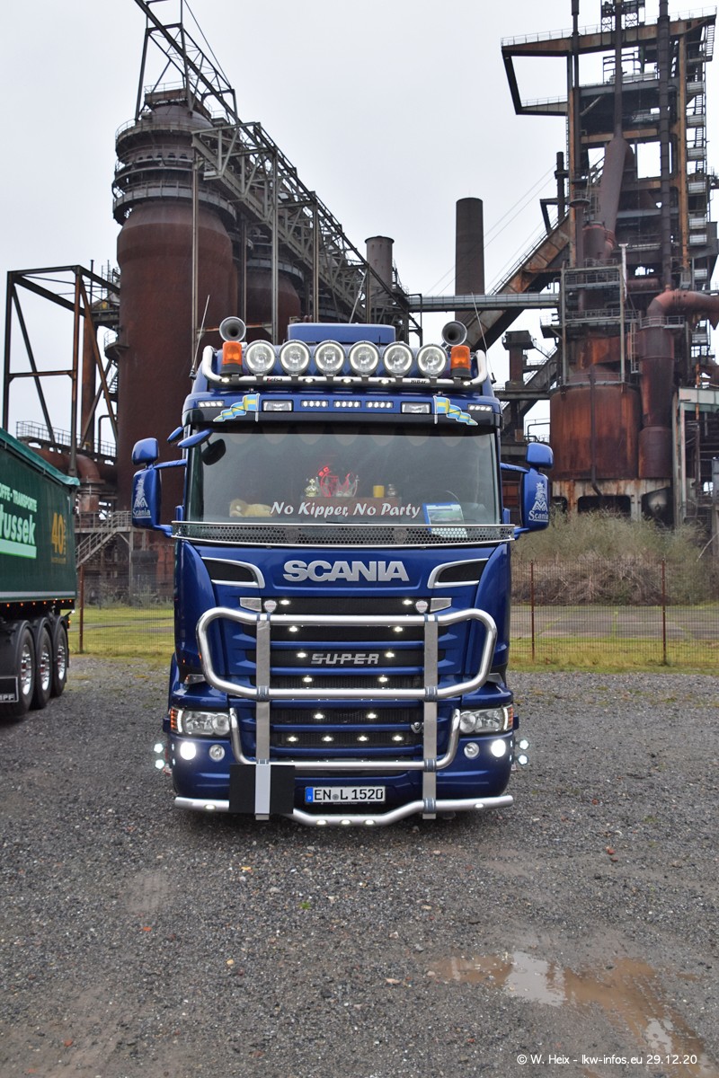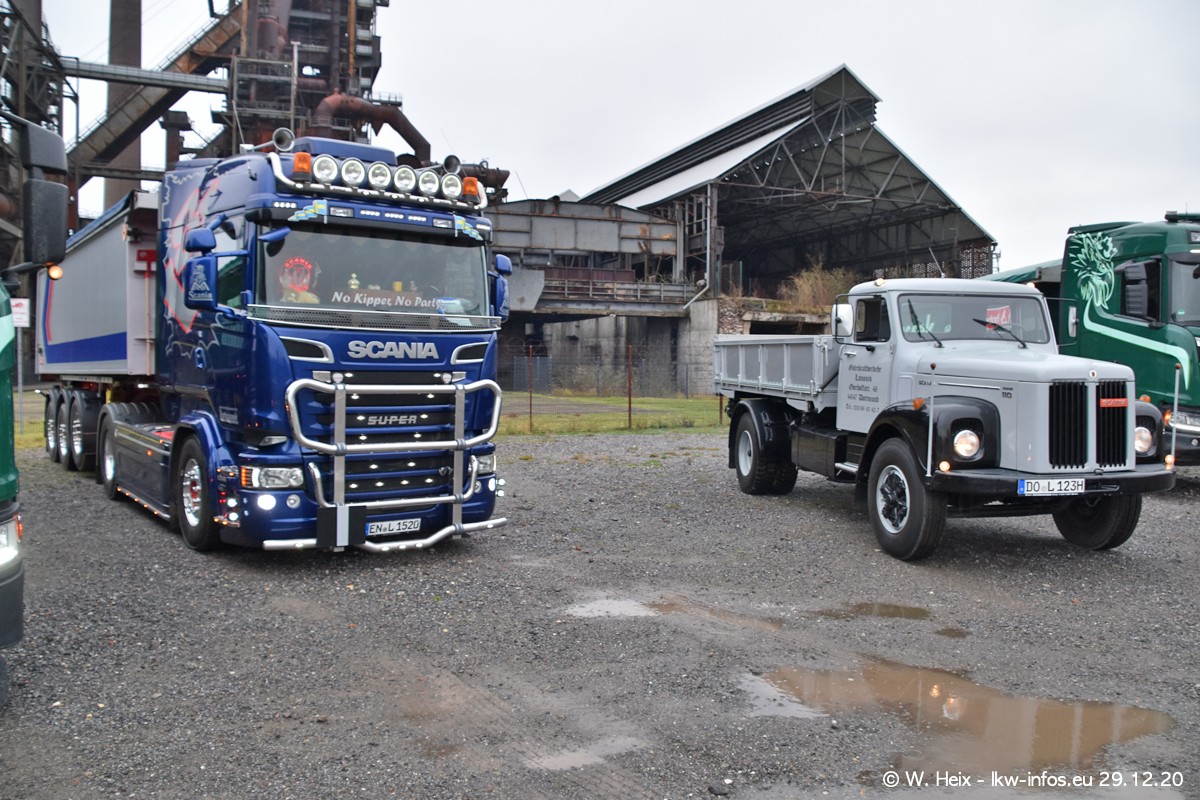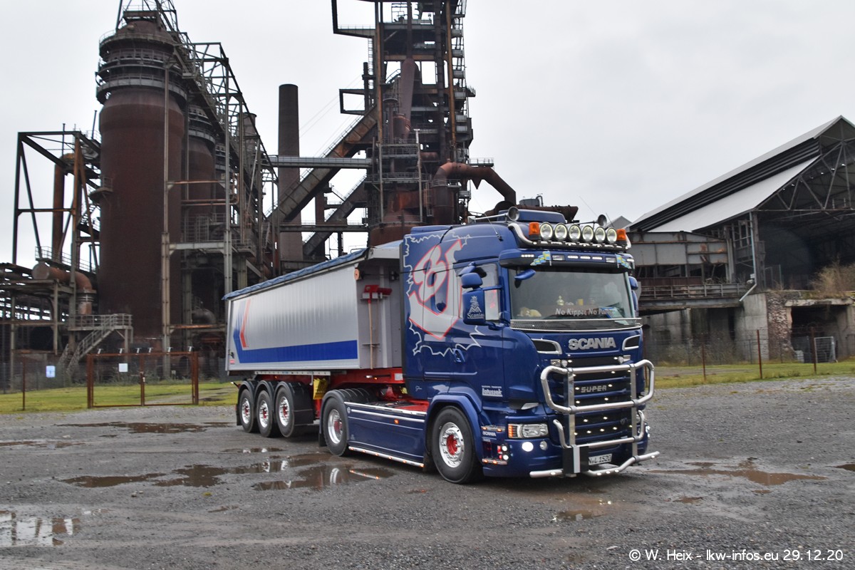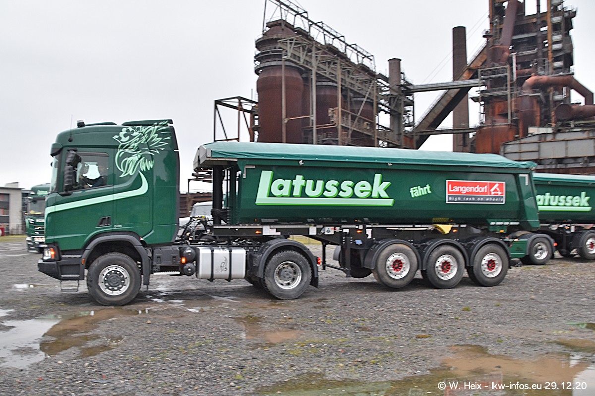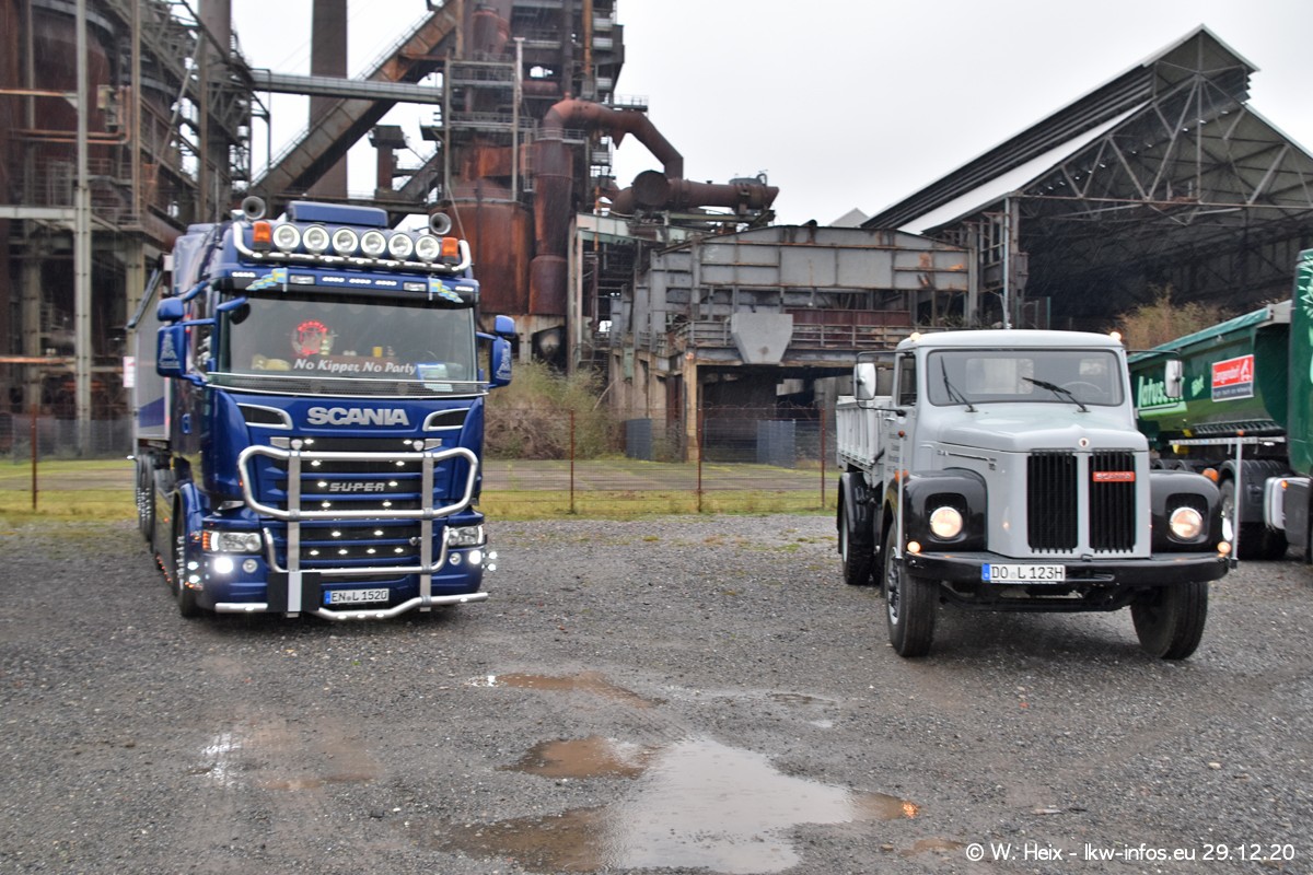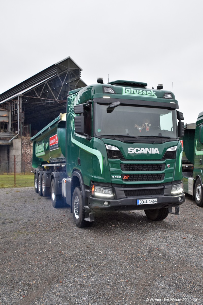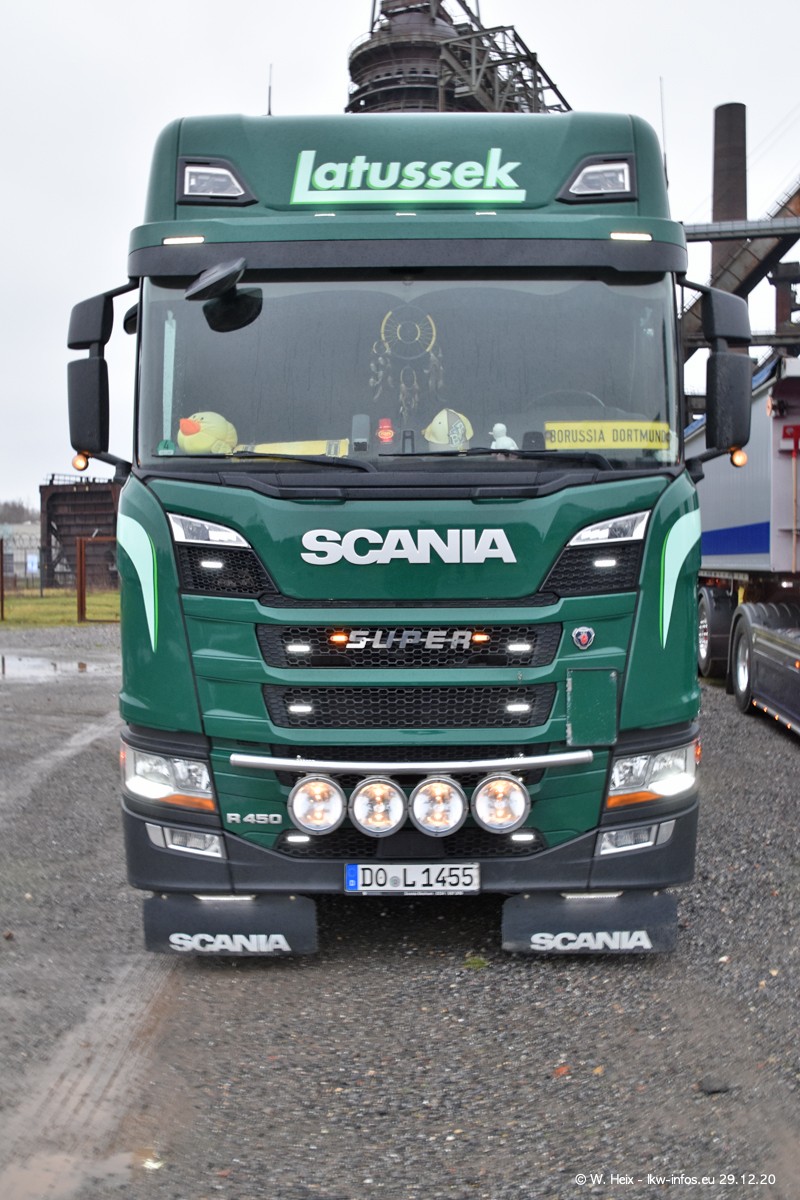 Am 29.12.2020 habe ich erstmals die Firma Latussek in Dortmund besucht. Während des Besuchs ergab sich dann spontan die Idee, im Anschluss an meinen Fotobesuch ein kleines Fotoshooting zu machen. Wir sind dann mit 5 LKW zum ehemaligen Hoesch-Gelände in Dortmund gefahren, das in der Nähe der B54 liegt. Die alte "Industrie-Ruine" ist ein toller Platz für Fotos. Mit dabei waren der graue SCANIA L 110 Kipper (Baujahr 1973, 305 PS), der MAN TGX Euro 6, der blaue SCANIA R 520 V8 Streamline, ein SCANIA R 450 XT NextGen 4x4 und ein SCANIA R 450 NextGen 4x2. Leider begann es während meiner Fotoarbeiten zu regnen sonst wären noch schönere Fotos möglich gewesen. Aber für Anfang 2021 ist schon ein weiteres Fotoshooting geplant, dann mit weiteren neuen LKW aus dem sehenswerten Fuhrpark.