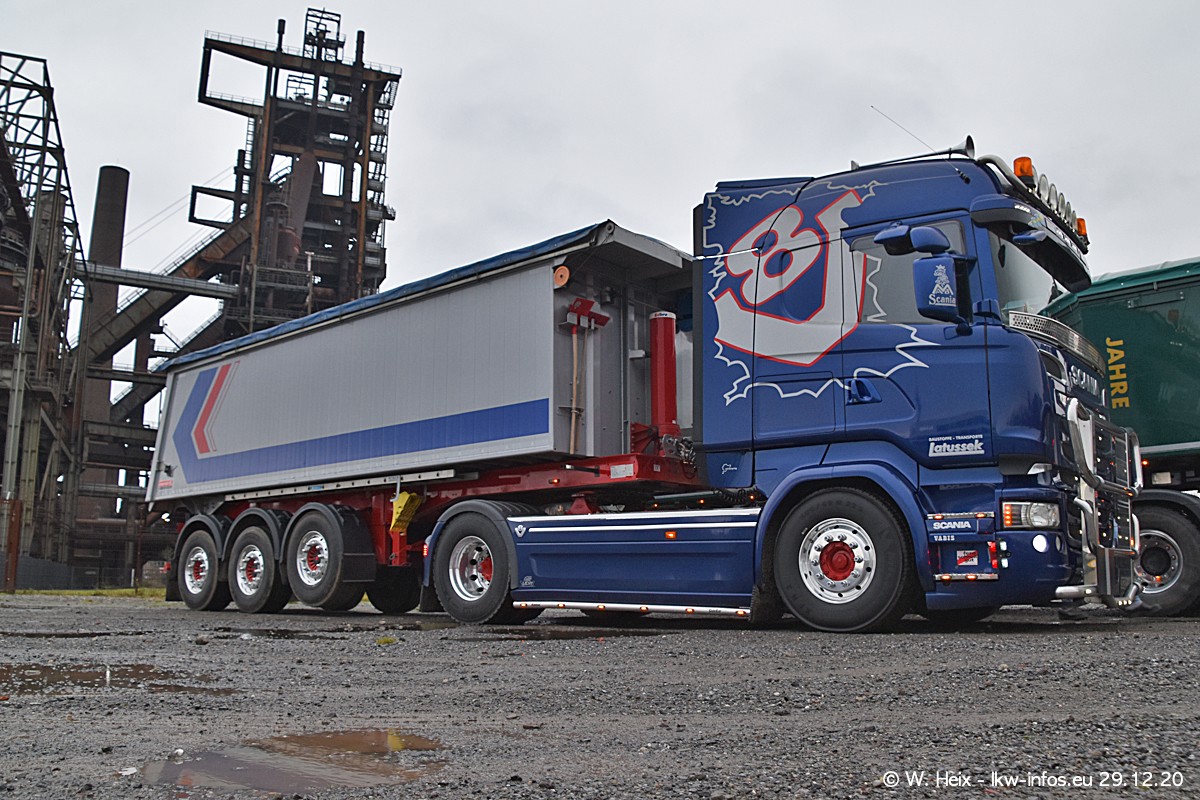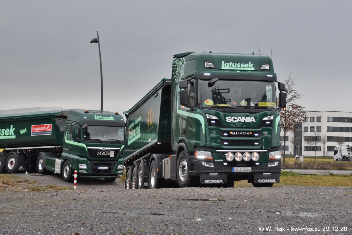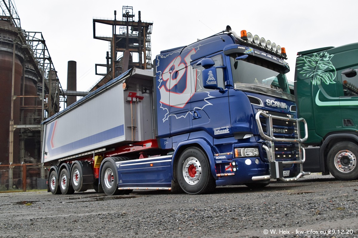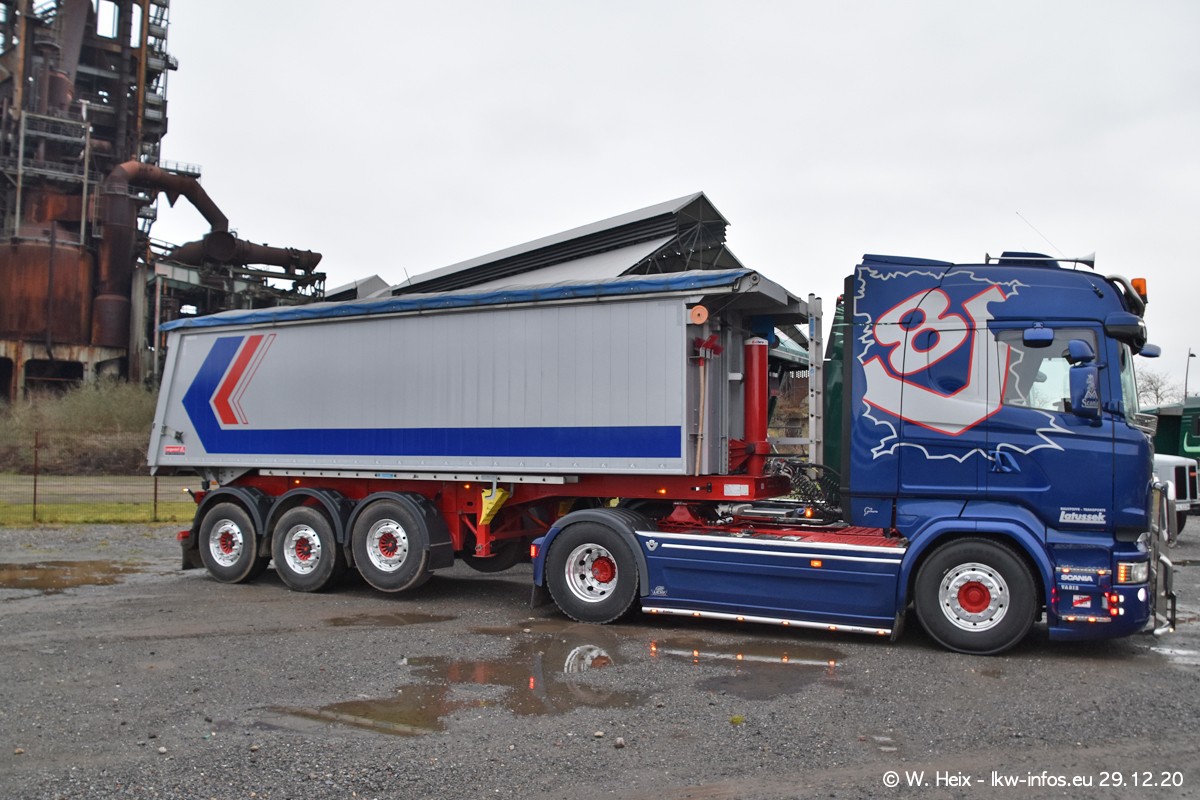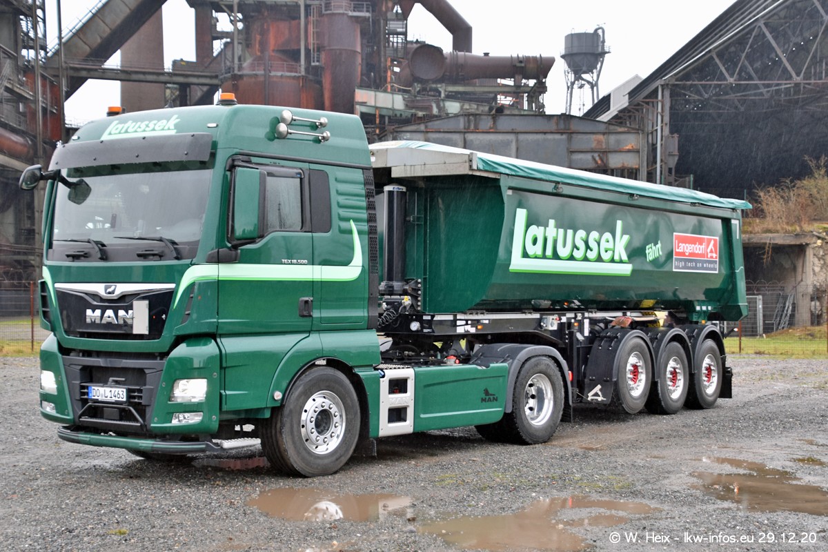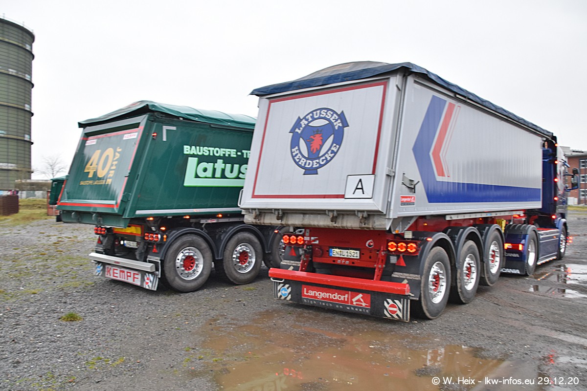 Am 29.12.2020 habe ich erstmals die Firma Latussek in Dortmund besucht. Während des Besuchs ergab sich dann spontan die Idee, im Anschluss an meinen Fotobesuch ein kleines Fotoshooting zu machen. Wir sind dann mit 5 LKW zum ehemaligen Hoesch-Gelände in Dortmund gefahren, das in der Nähe der B54 liegt. Die alte "Industrie-Ruine" ist ein toller Platz für Fotos. Mit dabei waren der graue SCANIA L 110 Kipper (Baujahr 1973, 305 PS), der MAN TGX Euro 6, der blaue SCANIA R 520 V8 Streamline, ein SCANIA R 450 XT NextGen 4x4 und ein SCANIA R 450 NextGen 4x2. Leider begann es während meiner Fotoarbeiten zu regnen sonst wären noch schönere Fotos möglich gewesen. Aber für Anfang 2021 ist schon ein weiteres Fotoshooting geplant, dann mit weiteren neuen LKW aus dem sehenswerten Fuhrpark.