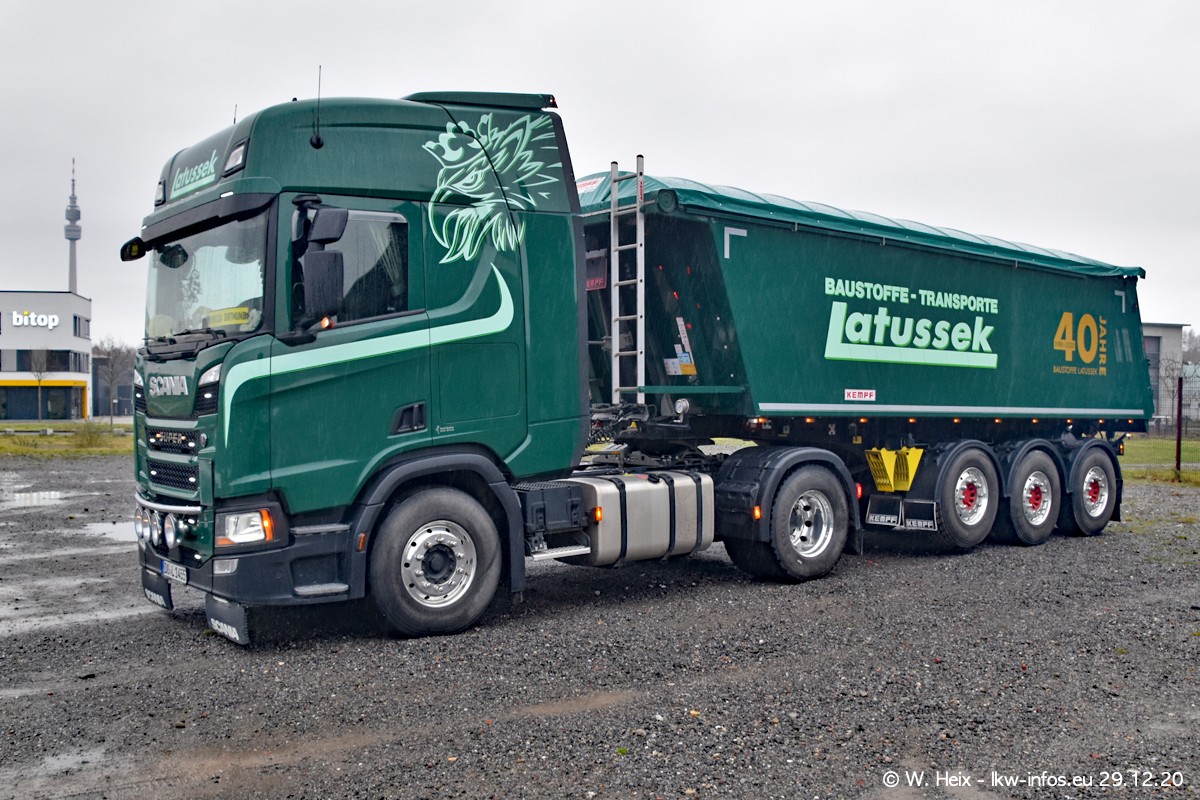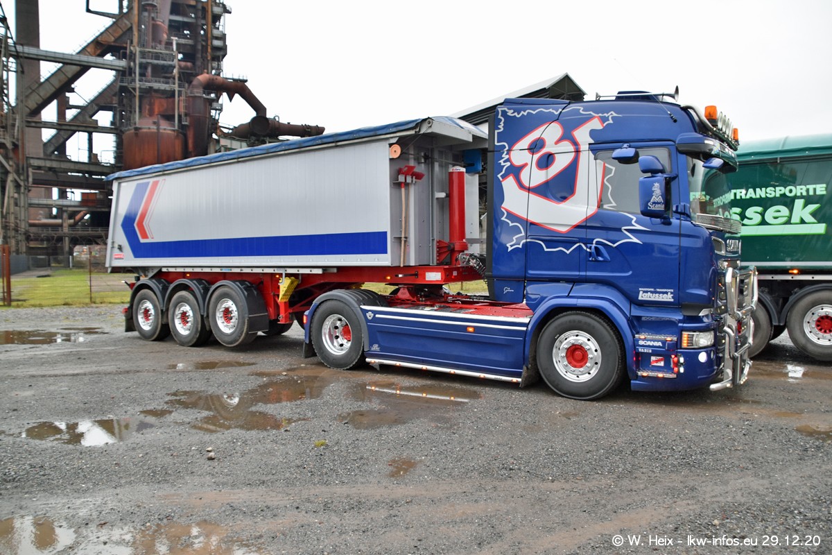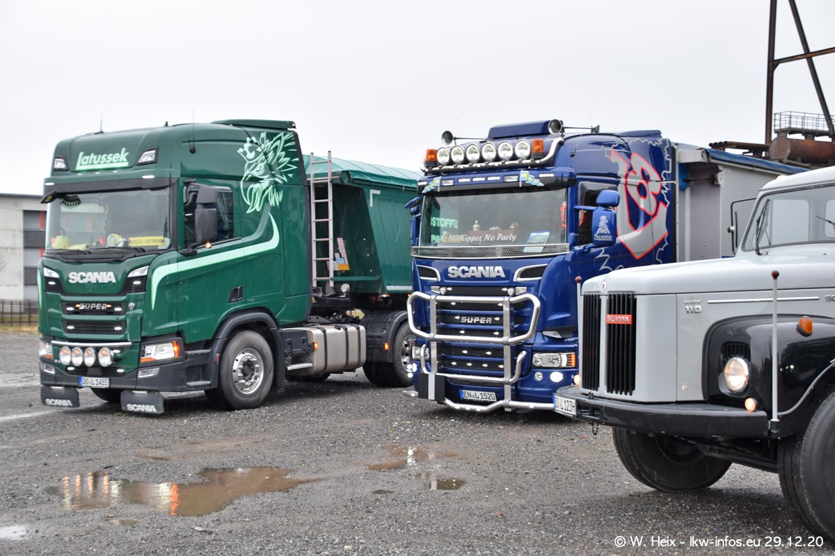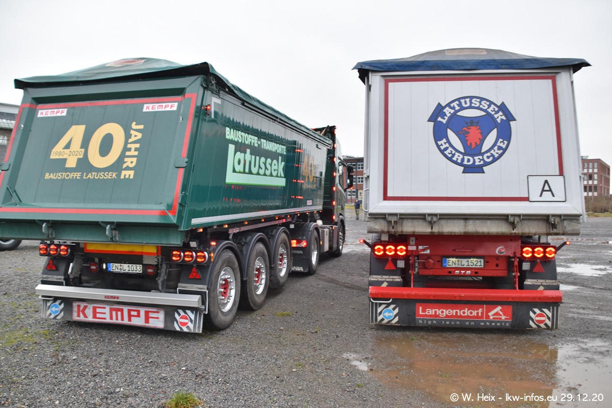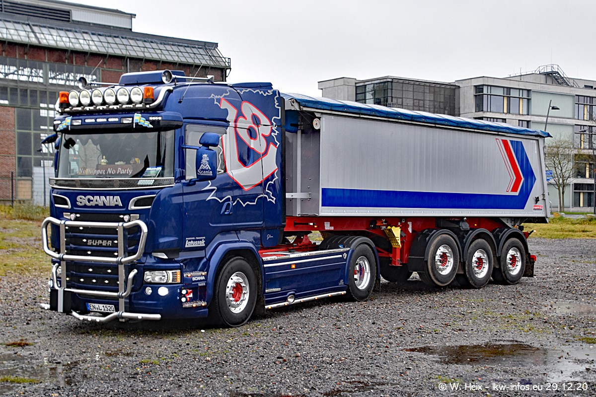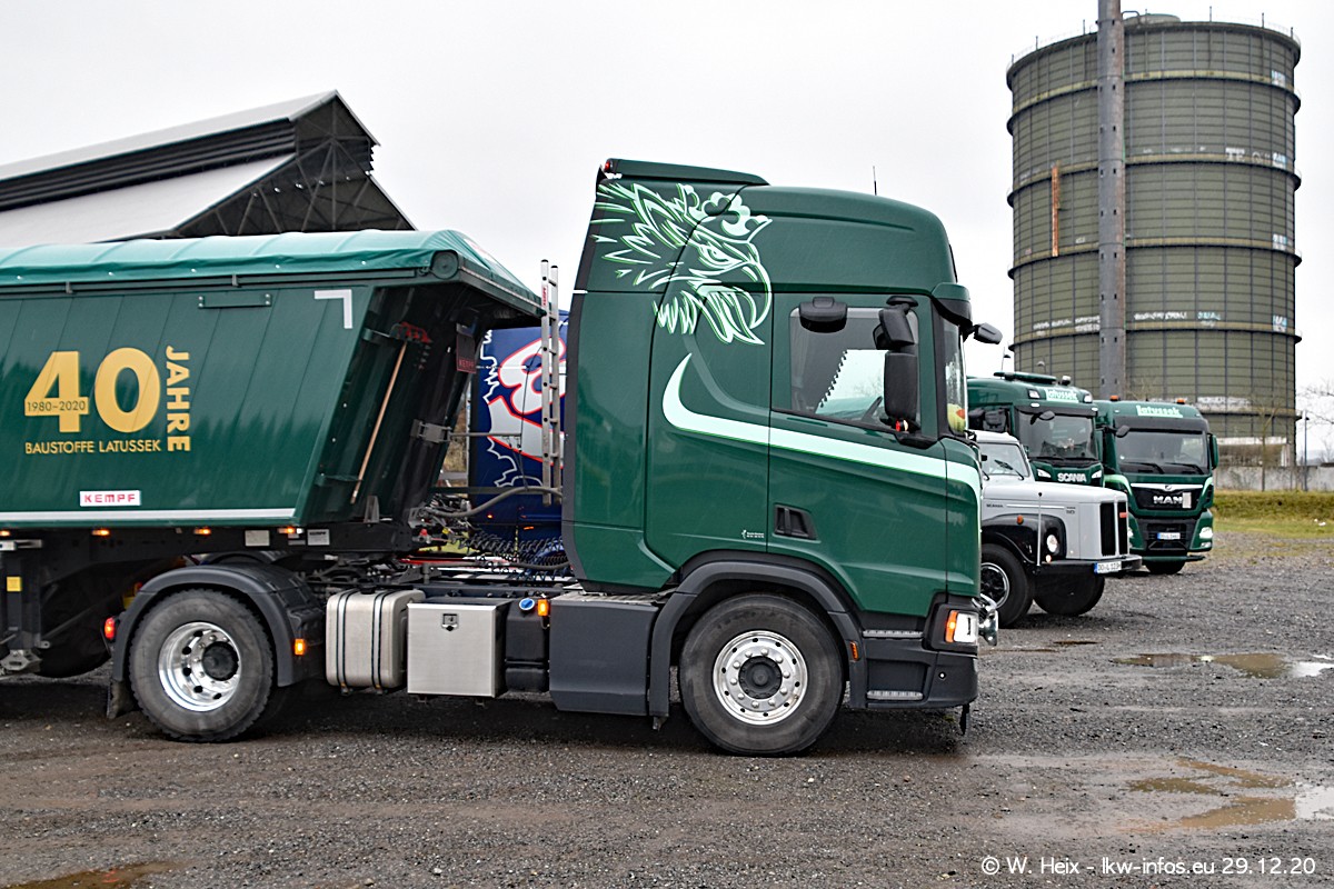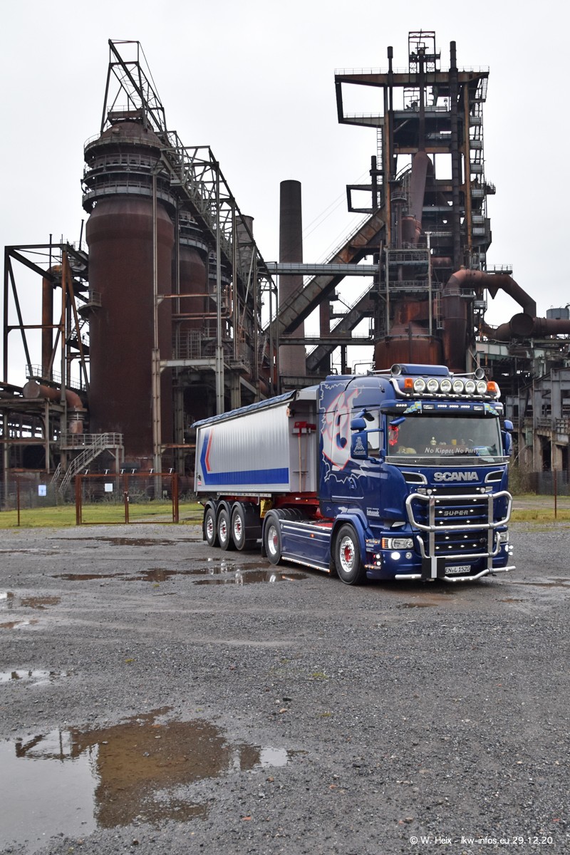 Am 29.12.2020 habe ich erstmals die Firma Latussek in Dortmund besucht. Während des Besuchs ergab sich dann spontan die Idee, im Anschluss an meinen Fotobesuch ein kleines Fotoshooting zu machen. Wir sind dann mit 5 LKW zum ehemaligen Hoesch-Gelände in Dortmund gefahren, das in der Nähe der B54 liegt. Die alte "Industrie-Ruine" ist ein toller Platz für Fotos. Mit dabei waren der graue SCANIA L 110 Kipper (Baujahr 1973, 305 PS), der MAN TGX Euro 6, der blaue SCANIA R 520 V8 Streamline, ein SCANIA R 450 XT NextGen 4x4 und ein SCANIA R 450 NextGen 4x2. Leider begann es während meiner Fotoarbeiten zu regnen sonst wären noch schönere Fotos möglich gewesen. Aber für Anfang 2021 ist schon ein weiteres Fotoshooting geplant, dann mit weiteren neuen LKW aus dem sehenswerten Fuhrpark.