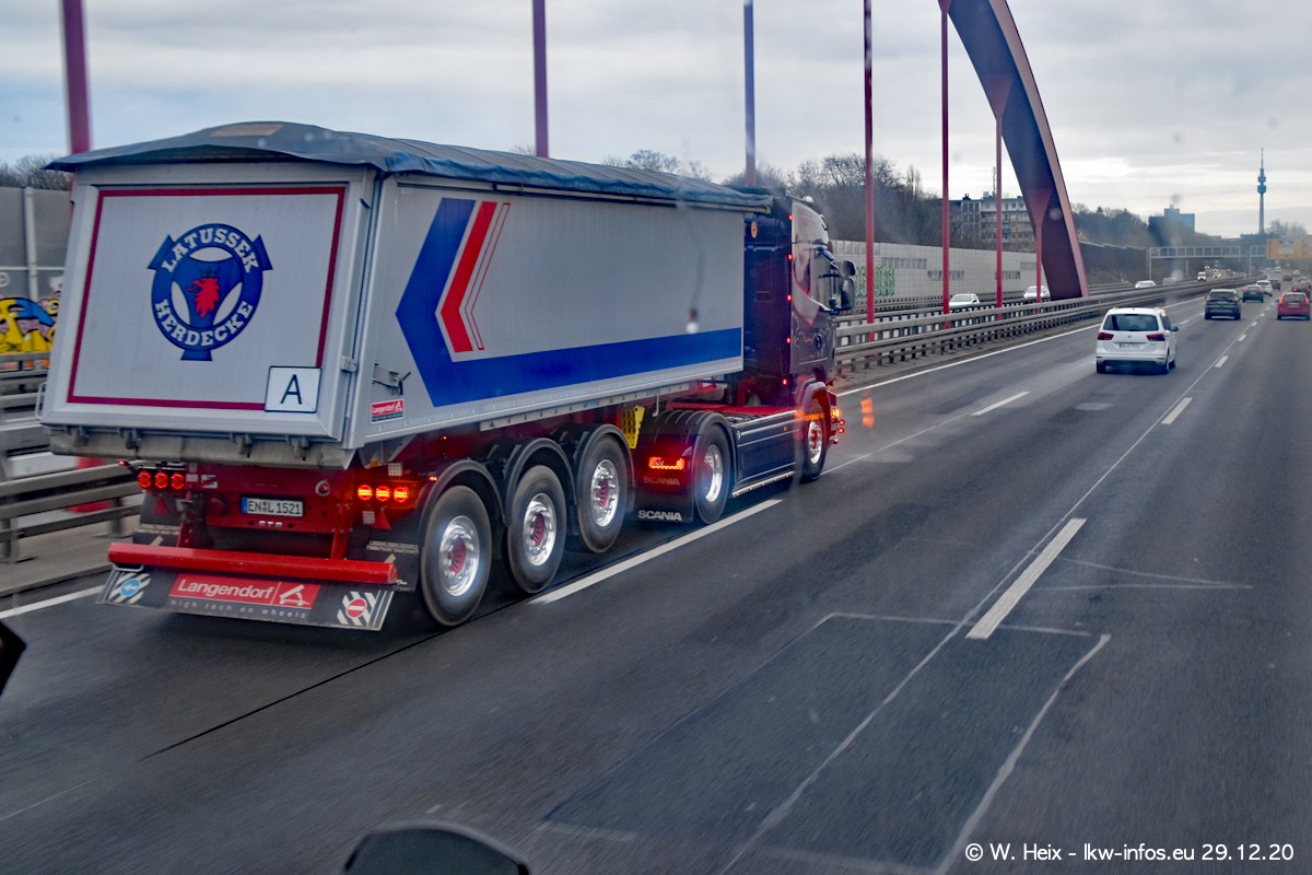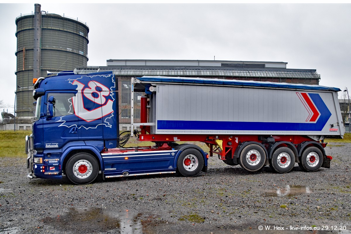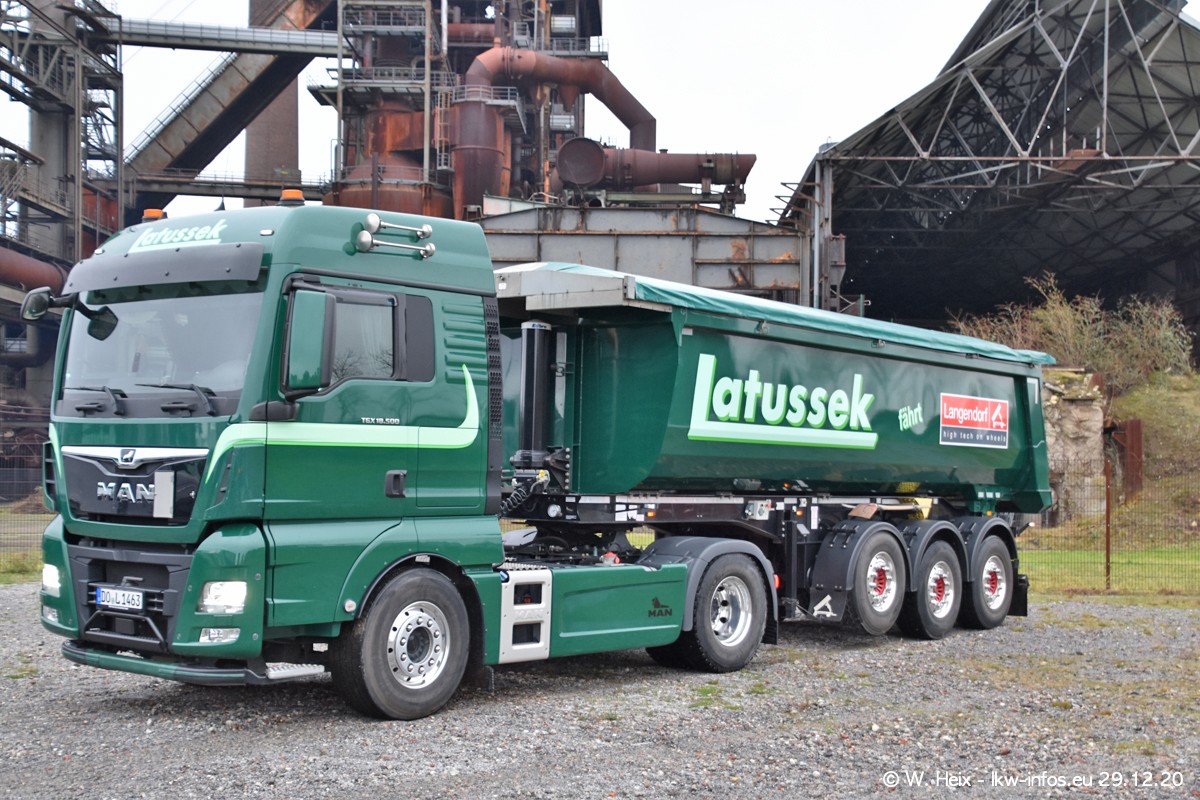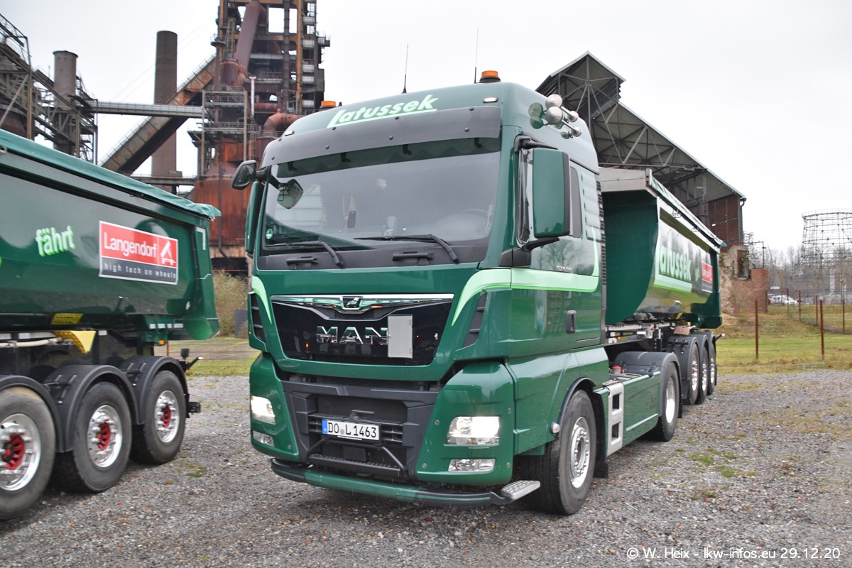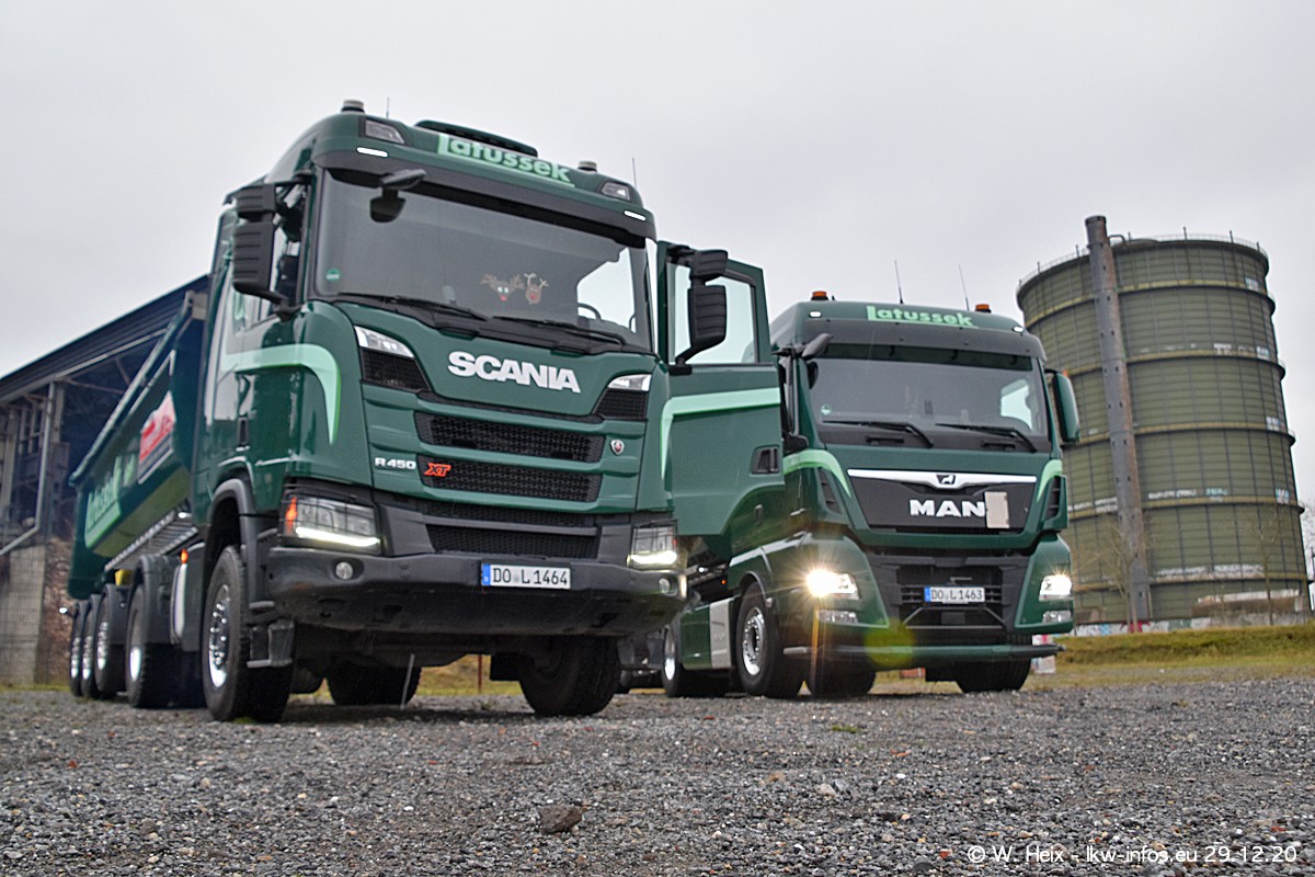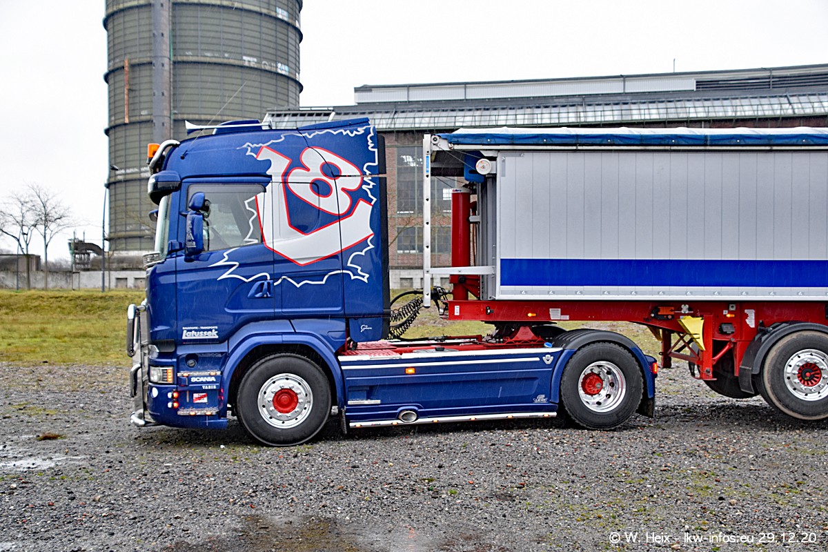 Am 29.12.2020 habe ich erstmals die Firma Latussek in Dortmund besucht. Während des Besuchs ergab sich dann spontan die Idee, im Anschluss an meinen Fotobesuch ein kleines Fotoshooting zu machen. Wir sind dann mit 5 LKW zum ehemaligen Hoesch-Gelände in Dortmund gefahren, das in der Nähe der B54 liegt. Die alte "Industrie-Ruine" ist ein toller Platz für Fotos. Mit dabei waren der graue SCANIA L 110 Kipper (Baujahr 1973, 305 PS), der MAN TGX Euro 6, der blaue SCANIA R 520 V8 Streamline, ein SCANIA R 450 XT NextGen 4x4 und ein SCANIA R 450 NextGen 4x2. Leider begann es während meiner Fotoarbeiten zu regnen sonst wären noch schönere Fotos möglich gewesen. Aber für Anfang 2021 ist schon ein weiteres Fotoshooting geplant, dann mit weiteren neuen LKW aus dem sehenswerten Fuhrpark.