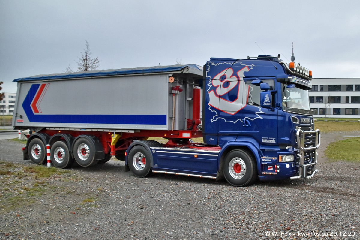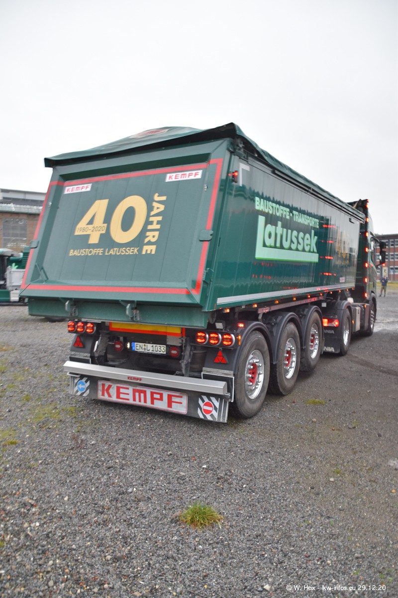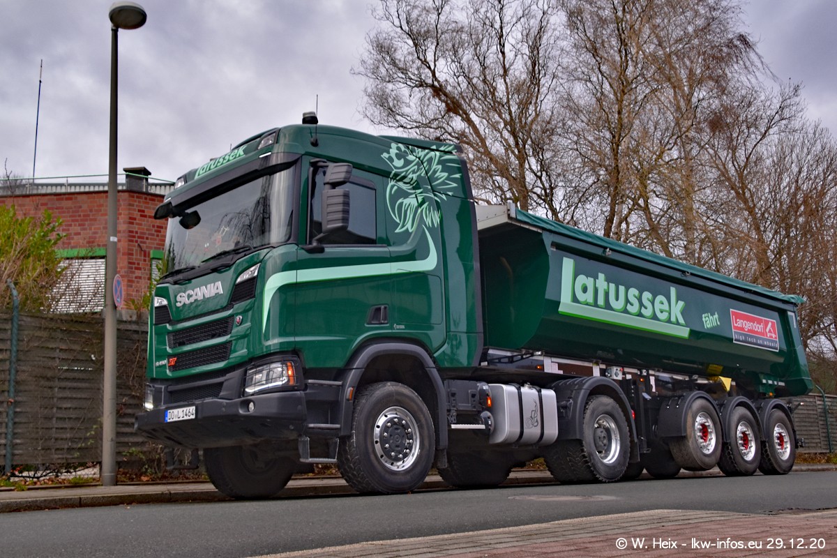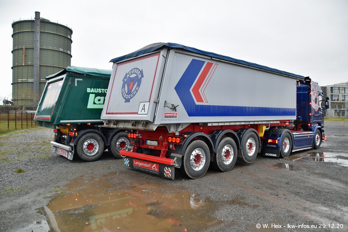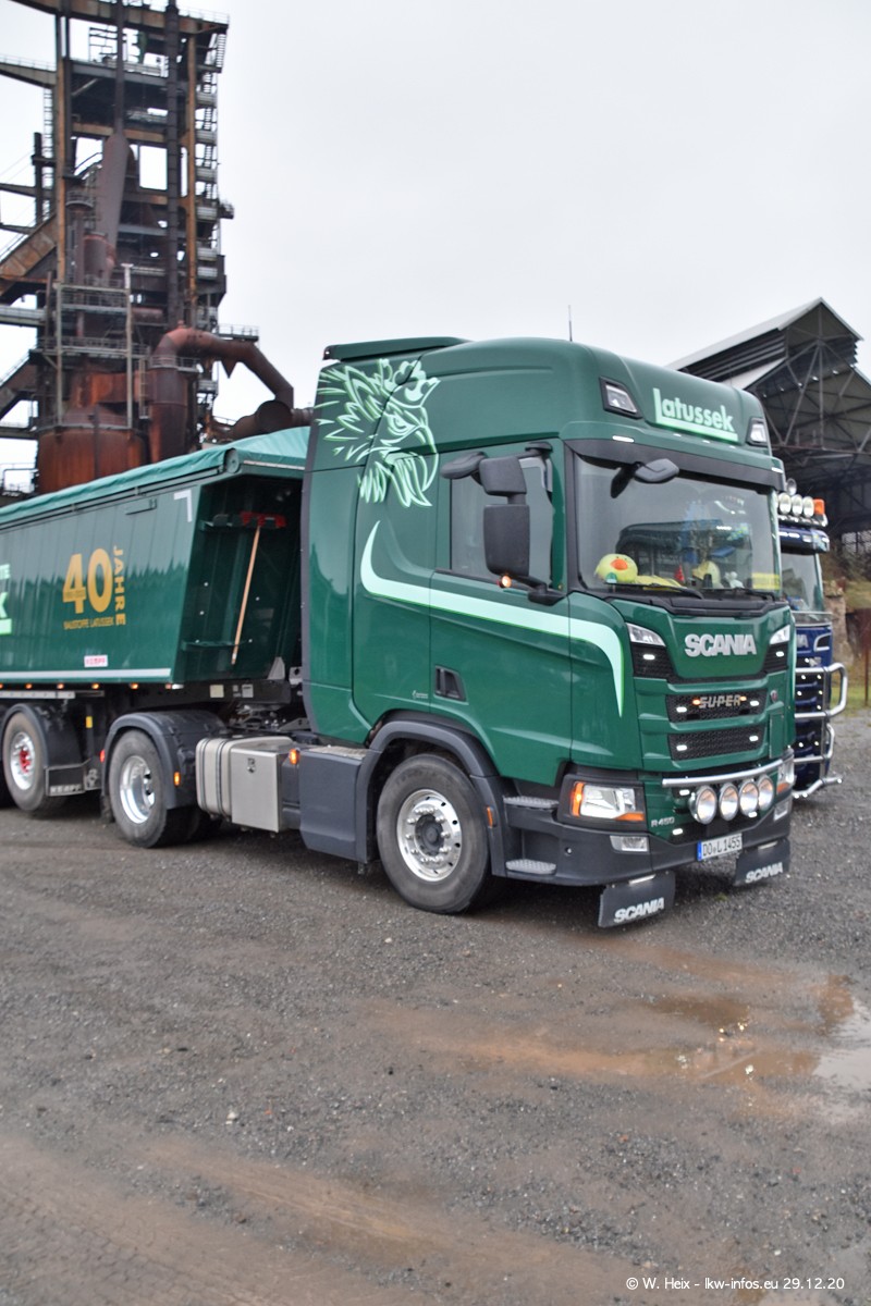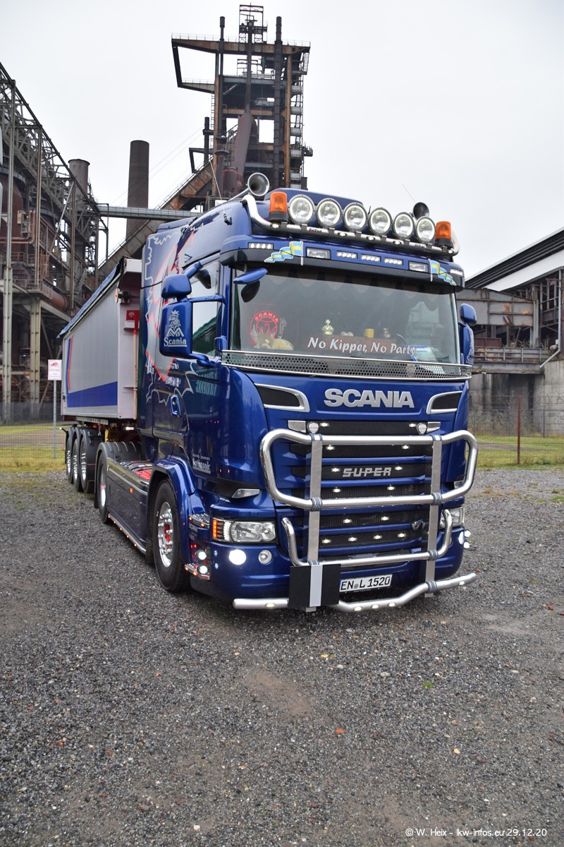 Am 29.12.2020 habe ich erstmals die Firma Latussek in Dortmund besucht. Während des Besuchs ergab sich dann spontan die Idee, im Anschluss an meinen Fotobesuch ein kleines Fotoshooting zu machen. Wir sind dann mit 5 LKW zum ehemaligen Hoesch-Gelände in Dortmund gefahren, das in der Nähe der B54 liegt. Die alte "Industrie-Ruine" ist ein toller Platz für Fotos. Mit dabei waren der graue SCANIA L 110 Kipper (Baujahr 1973, 305 PS), der MAN TGX Euro 6, der blaue SCANIA R 520 V8 Streamline, ein SCANIA R 450 XT NextGen 4x4 und ein SCANIA R 450 NextGen 4x2. Leider begann es während meiner Fotoarbeiten zu regnen sonst wären noch schönere Fotos möglich gewesen. Aber für Anfang 2021 ist schon ein weiteres Fotoshooting geplant, dann mit weiteren neuen LKW aus dem sehenswerten Fuhrpark.
