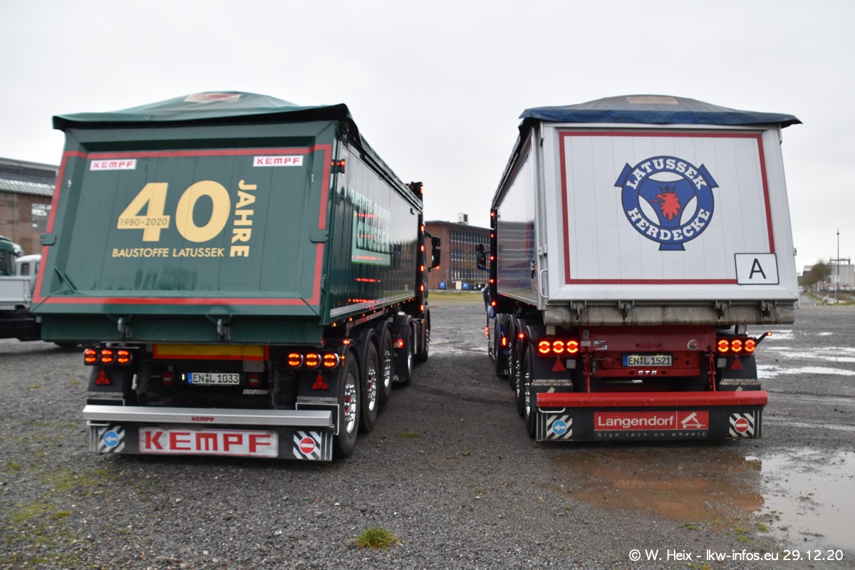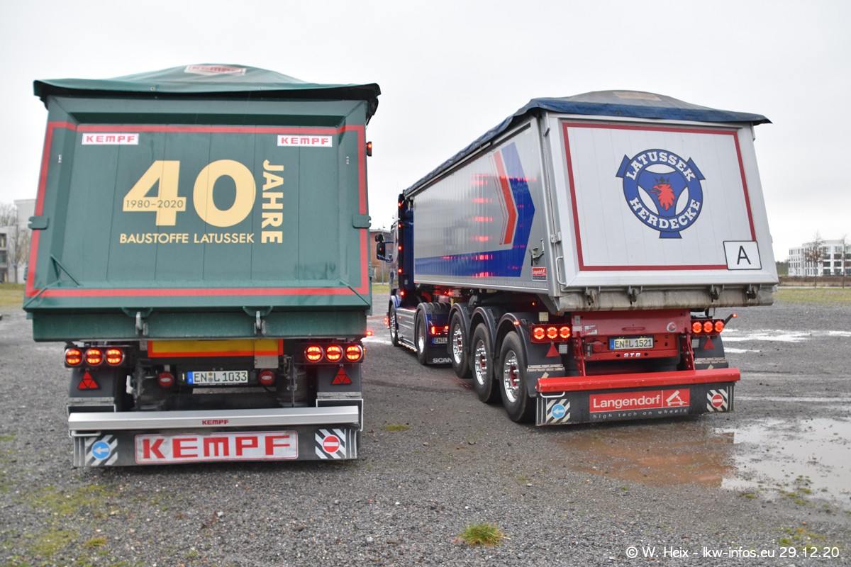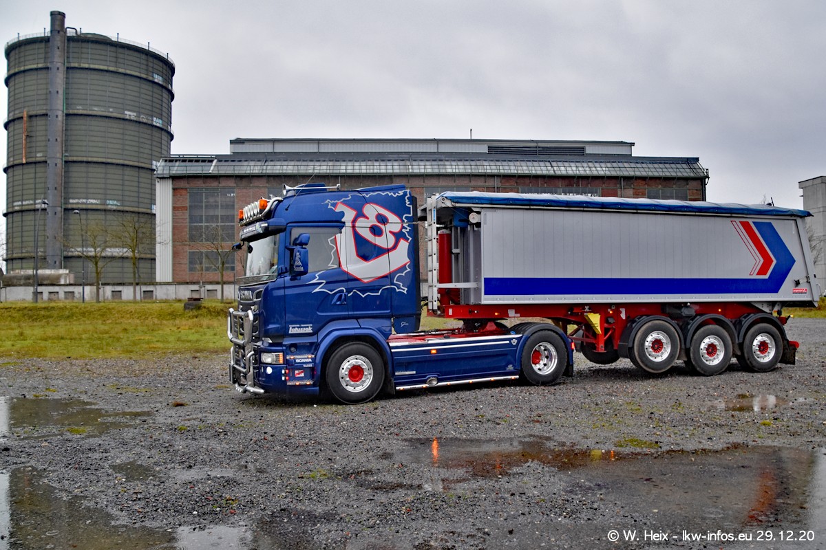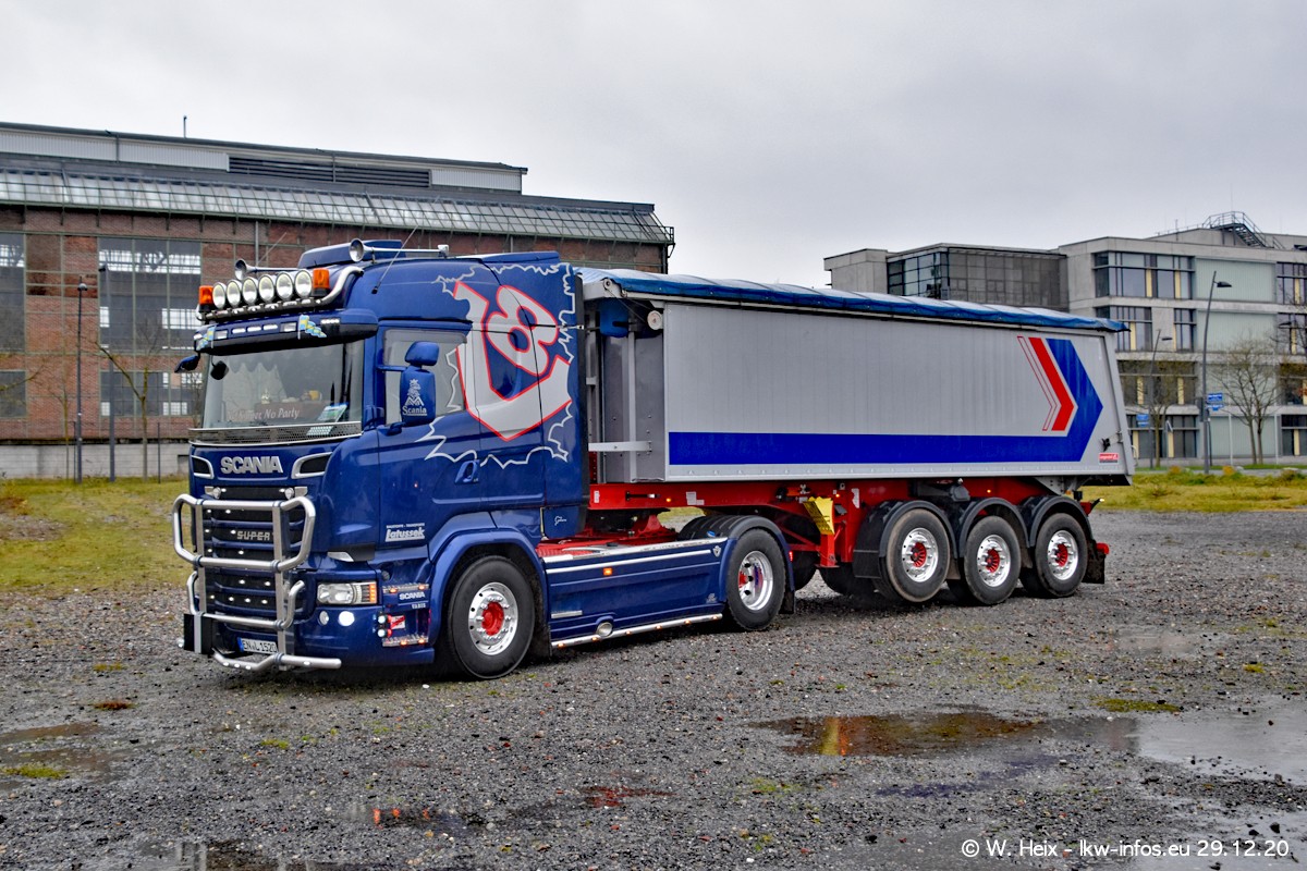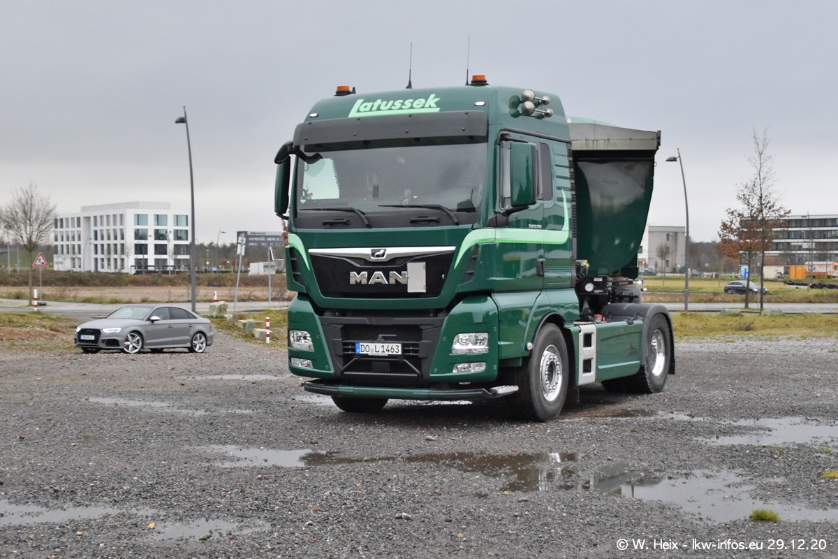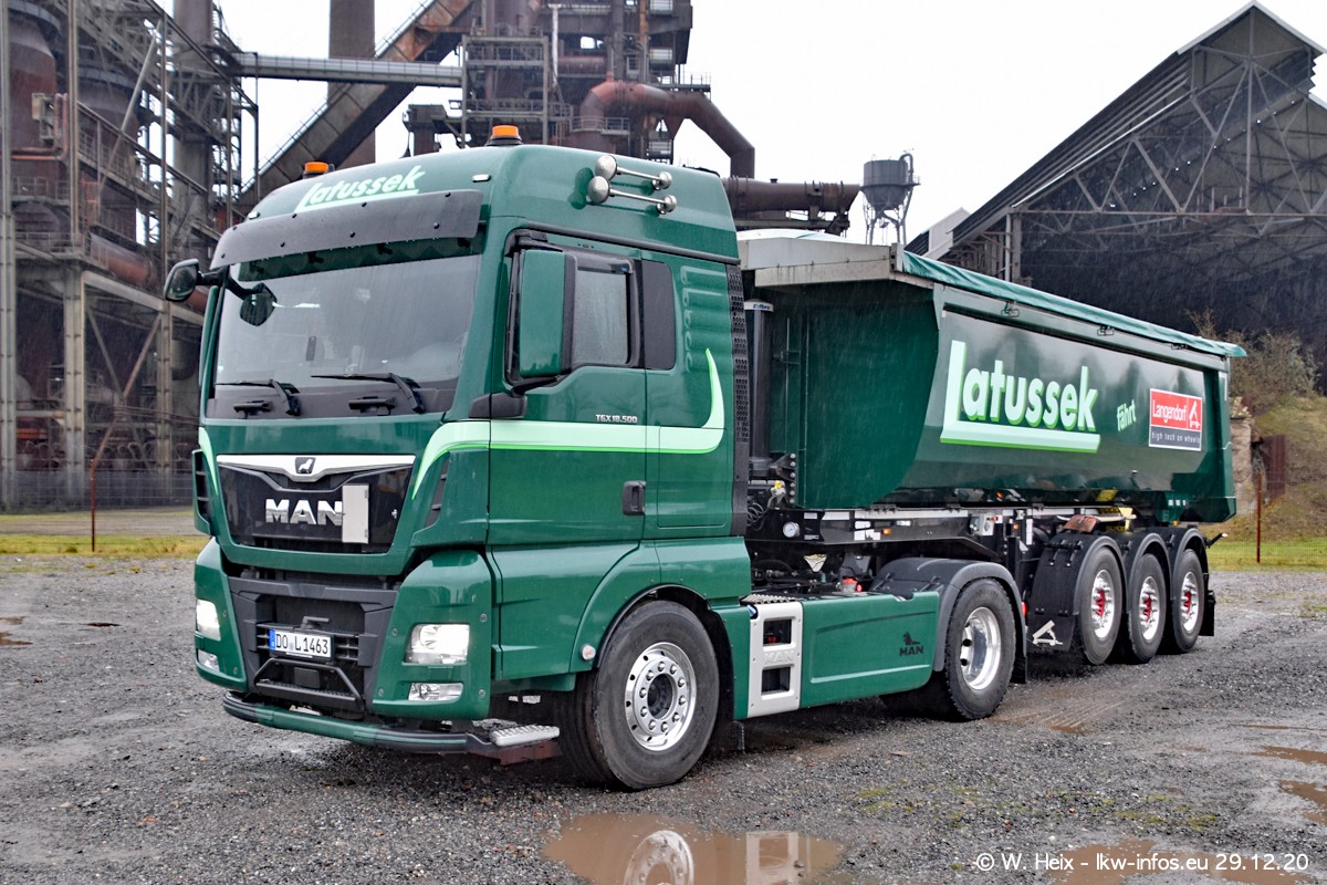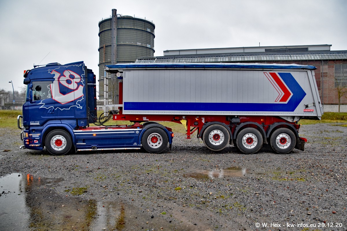 Am 29.12.2020 habe ich erstmals die Firma Latussek in Dortmund besucht. Während des Besuchs ergab sich dann spontan die Idee, im Anschluss an meinen Fotobesuch ein kleines Fotoshooting zu machen. Wir sind dann mit 5 LKW zum ehemaligen Hoesch-Gelände in Dortmund gefahren, das in der Nähe der B54 liegt. Die alte "Industrie-Ruine" ist ein toller Platz für Fotos. Mit dabei waren der graue SCANIA L 110 Kipper (Baujahr 1973, 305 PS), der MAN TGX Euro 6, der blaue SCANIA R 520 V8 Streamline, ein SCANIA R 450 XT NextGen 4x4 und ein SCANIA R 450 NextGen 4x2. Leider begann es während meiner Fotoarbeiten zu regnen sonst wären noch schönere Fotos möglich gewesen. Aber für Anfang 2021 ist schon ein weiteres Fotoshooting geplant, dann mit weiteren neuen LKW aus dem sehenswerten Fuhrpark.