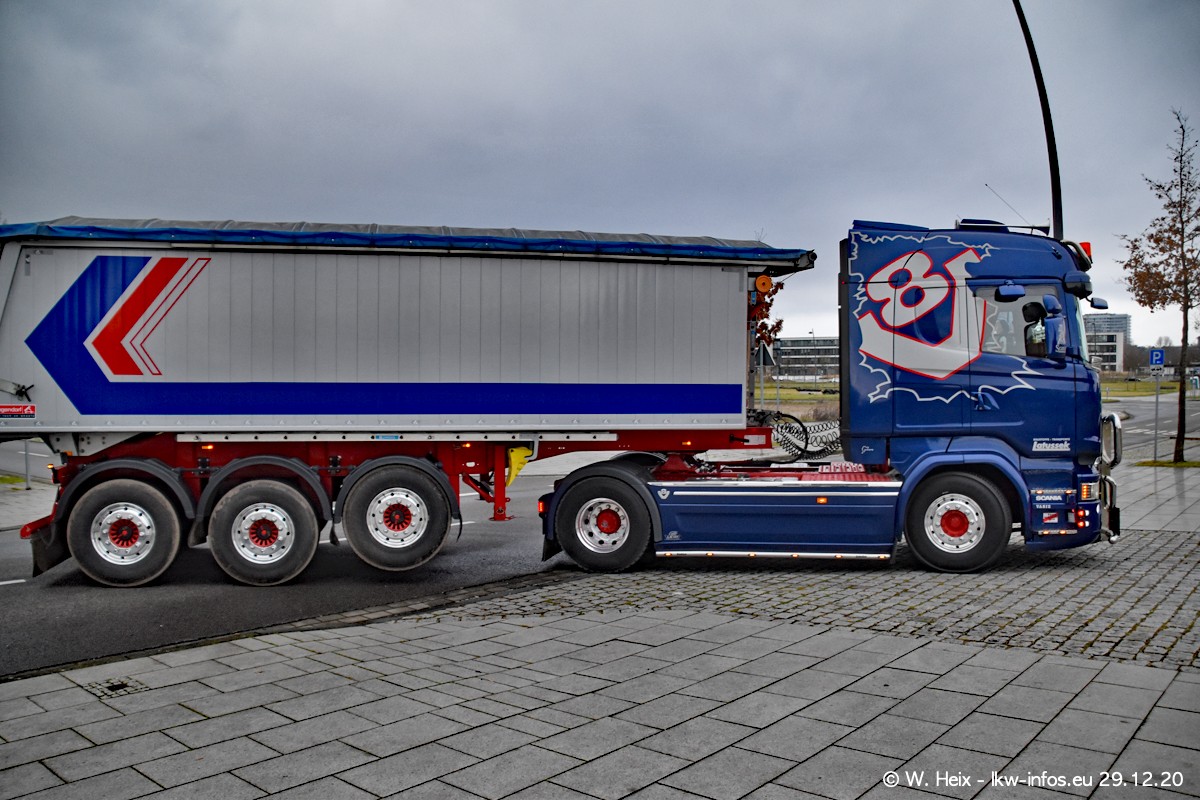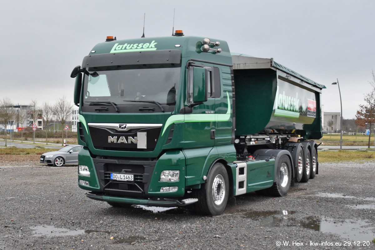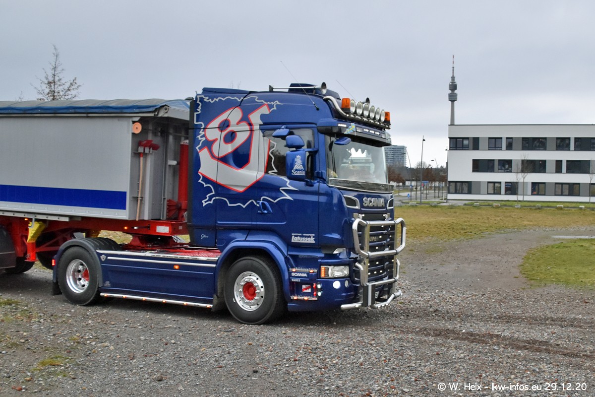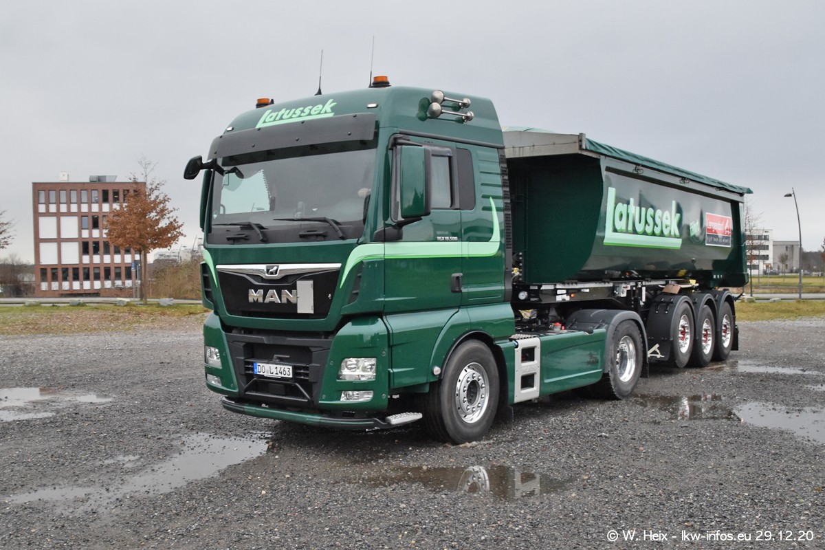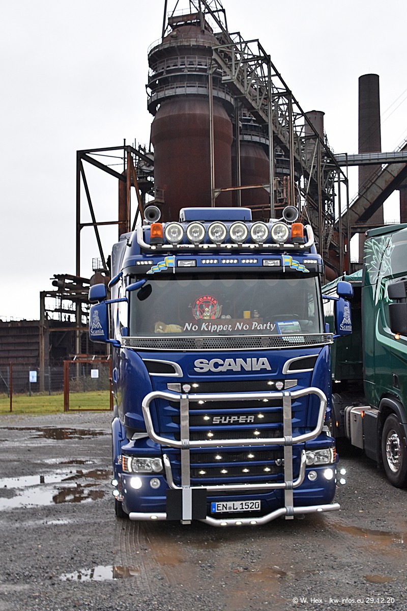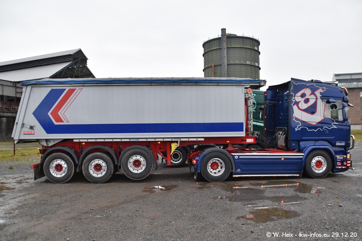 Am 29.12.2020 habe ich erstmals die Firma Latussek in Dortmund besucht. Während des Besuchs ergab sich dann spontan die Idee, im Anschluss an meinen Fotobesuch ein kleines Fotoshooting zu machen. Wir sind dann mit 5 LKW zum ehemaligen Hoesch-Gelände in Dortmund gefahren, das in der Nähe der B54 liegt. Die alte "Industrie-Ruine" ist ein toller Platz für Fotos. Mit dabei waren der graue SCANIA L 110 Kipper (Baujahr 1973, 305 PS), der MAN TGX Euro 6, der blaue SCANIA R 520 V8 Streamline, ein SCANIA R 450 XT NextGen 4x4 und ein SCANIA R 450 NextGen 4x2. Leider begann es während meiner Fotoarbeiten zu regnen sonst wären noch schönere Fotos möglich gewesen. Aber für Anfang 2021 ist schon ein weiteres Fotoshooting geplant, dann mit weiteren neuen LKW aus dem sehenswerten Fuhrpark.