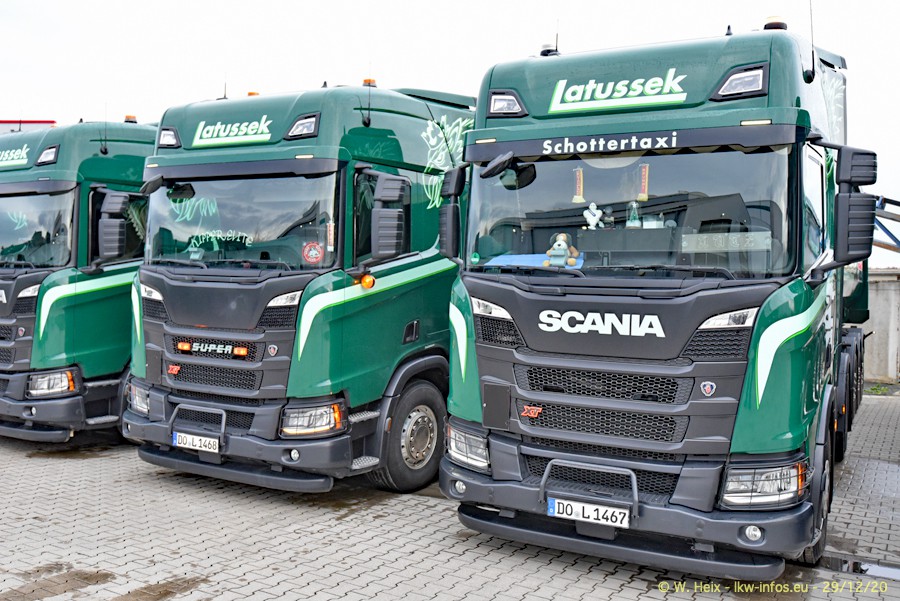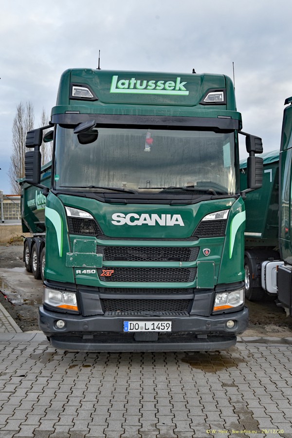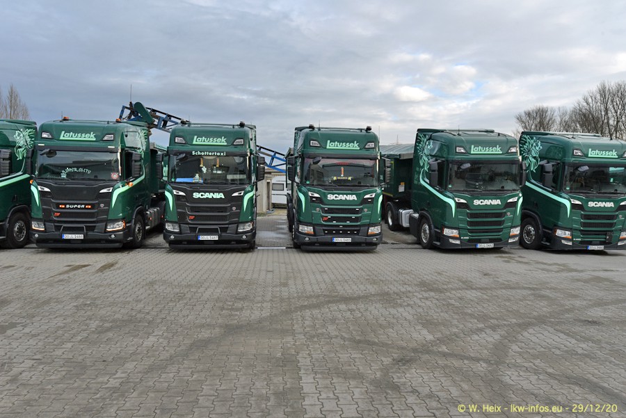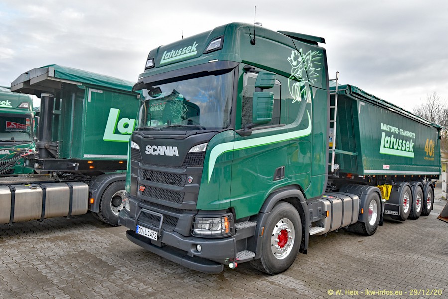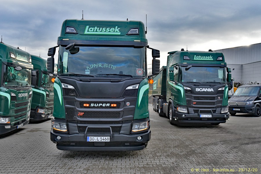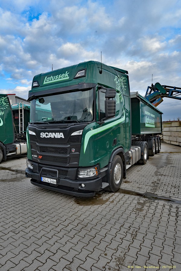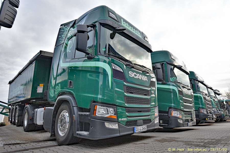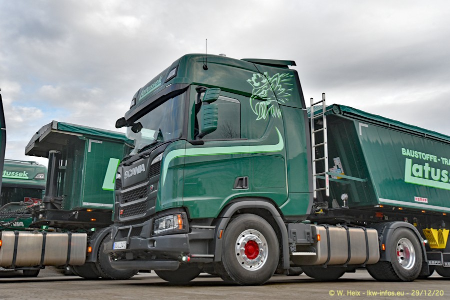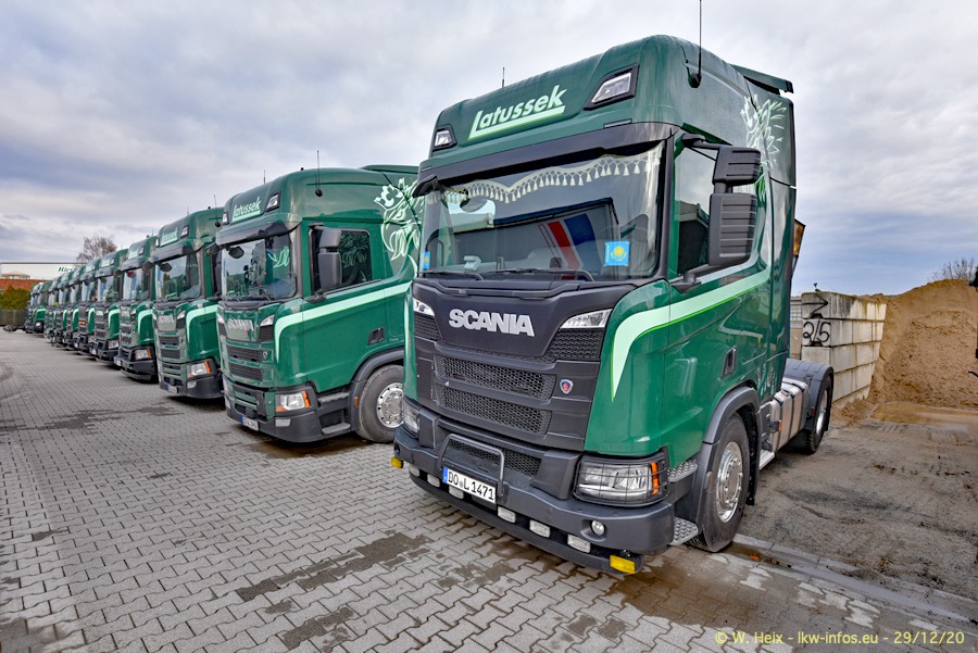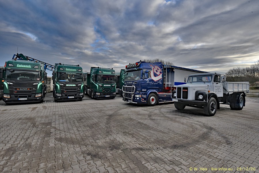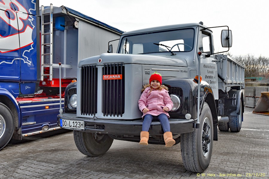 Dies war mein erster Besuch bei der Firma Latussek in Dortmund. Der Fuhrpark besteht aus ca. 30 LKW. Das sind IVECO, MAN, SCANIA und VOLVO, wobei der größte Teil Fahrzeuge von SCANIA ist. Der blaue SCANIA R 520 V8 Streamline gehört auch zum Fuhrpark und es gibt noch den schönen SCANIA L 110 Oldtimer, der für den Fotobesuch extra aus der Garage geholt wurde. Der LKW ist von 1973, hat 305 PS und ist in einem guten Zustand, die Restaurierung ist schon über 15 Jahre her. Bei Latussek ist es wie bei vielen Firmen: Nur Weihnachten bzw. zwischen den Feiertagen sind so gut wie alle LKW zuhause. Zwei fehlten, weil diese im Einsatz waren.