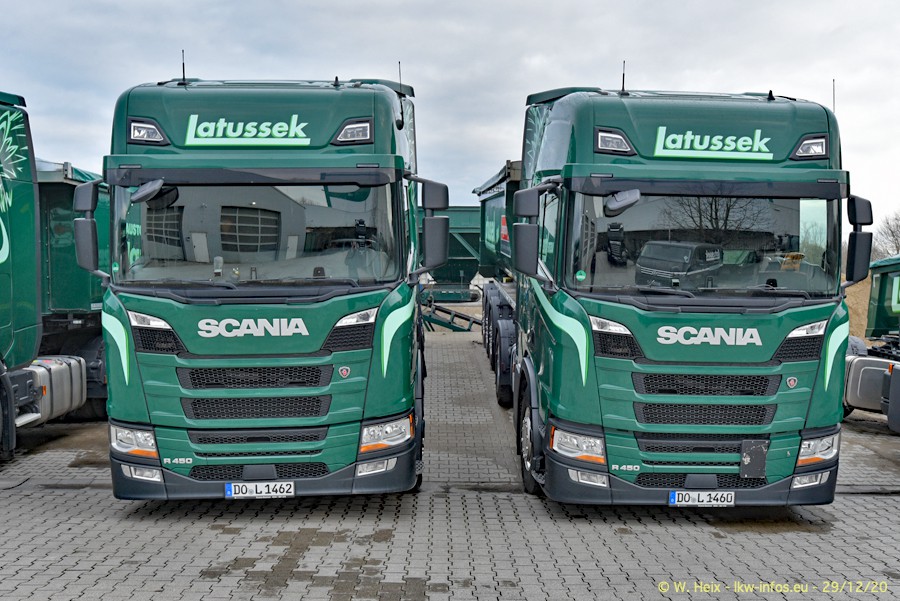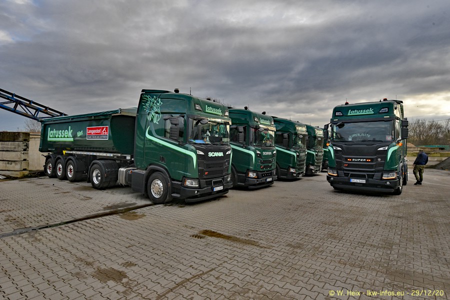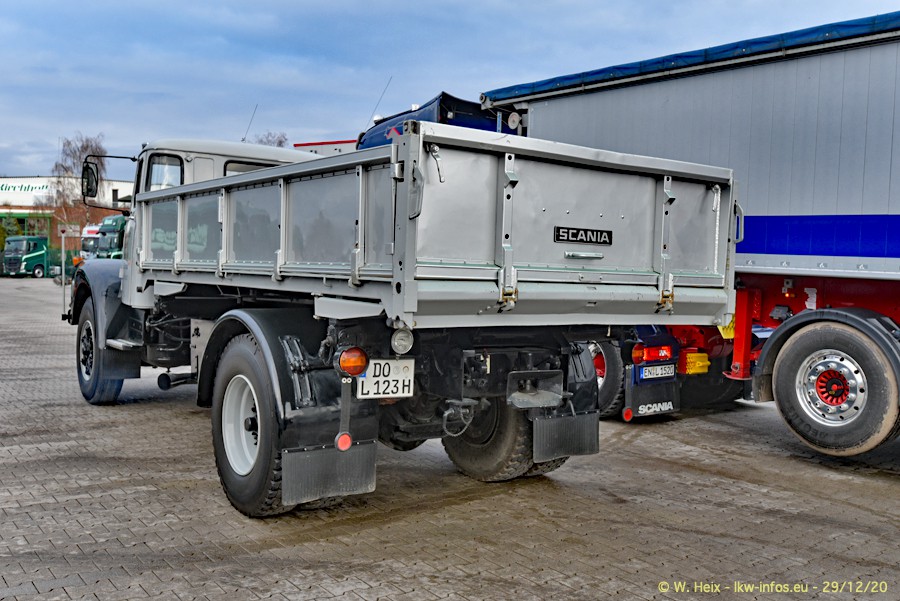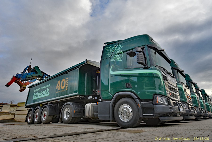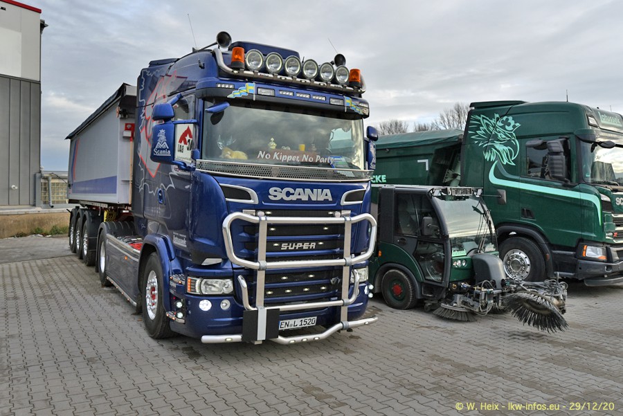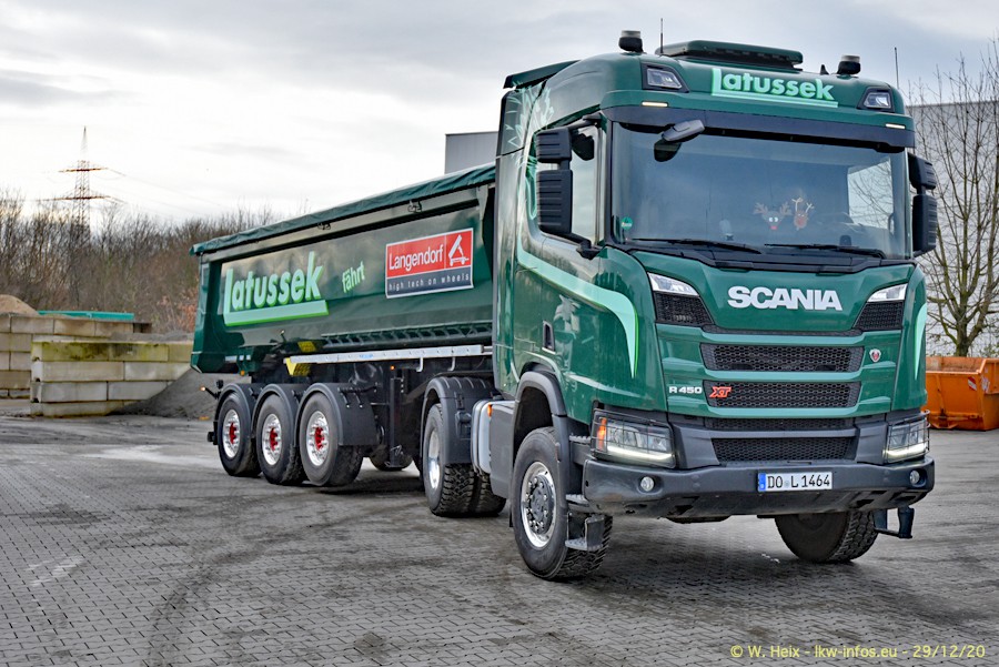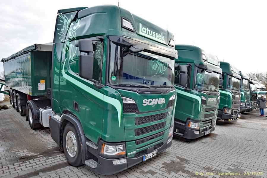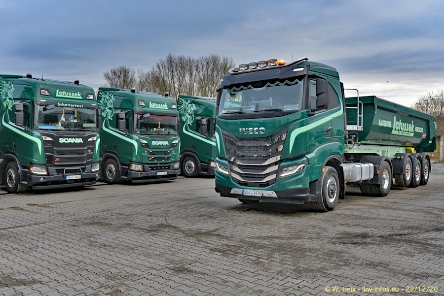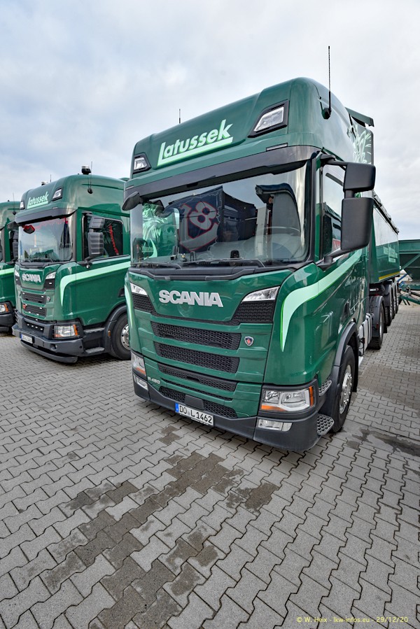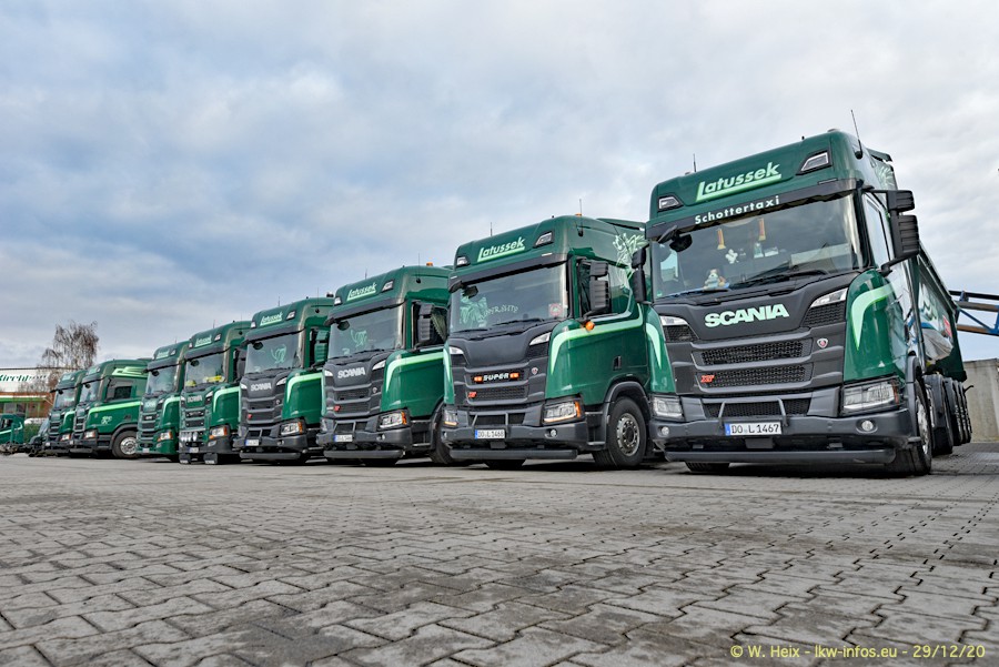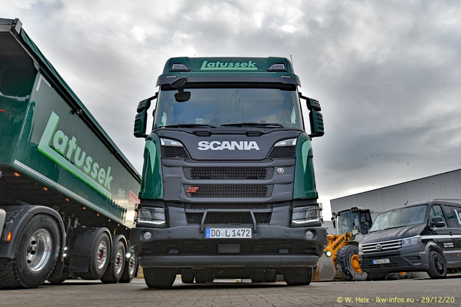 Dies war mein erster Besuch bei der Firma Latussek in Dortmund. Der Fuhrpark besteht aus ca. 30 LKW. Das sind IVECO, MAN, SCANIA und VOLVO, wobei der größte Teil Fahrzeuge von SCANIA ist. Der blaue SCANIA R 520 V8 Streamline gehört auch zum Fuhrpark und es gibt noch den schönen SCANIA L 110 Oldtimer, der für den Fotobesuch extra aus der Garage geholt wurde. Der LKW ist von 1973, hat 305 PS und ist in einem guten Zustand, die Restaurierung ist schon über 15 Jahre her. Bei Latussek ist es wie bei vielen Firmen: Nur Weihnachten bzw. zwischen den Feiertagen sind so gut wie alle LKW zuhause. Zwei fehlten, weil diese im Einsatz waren.