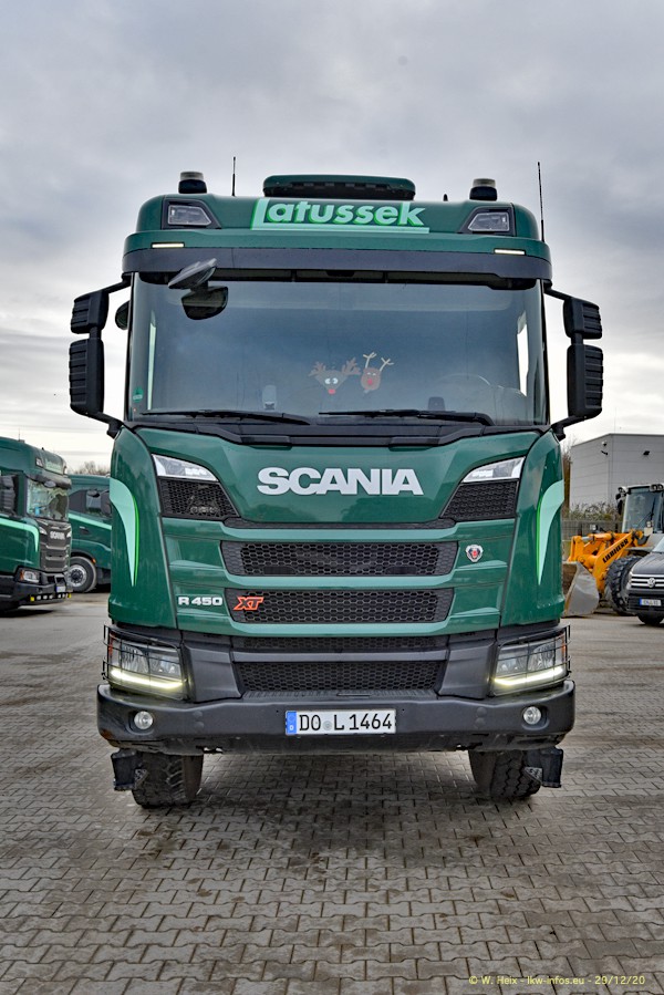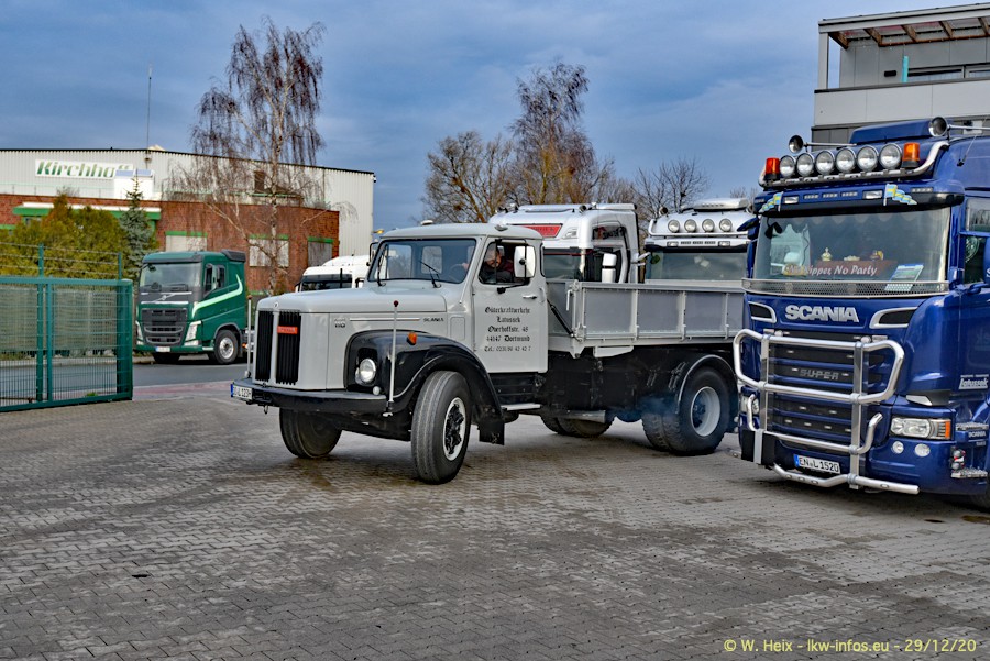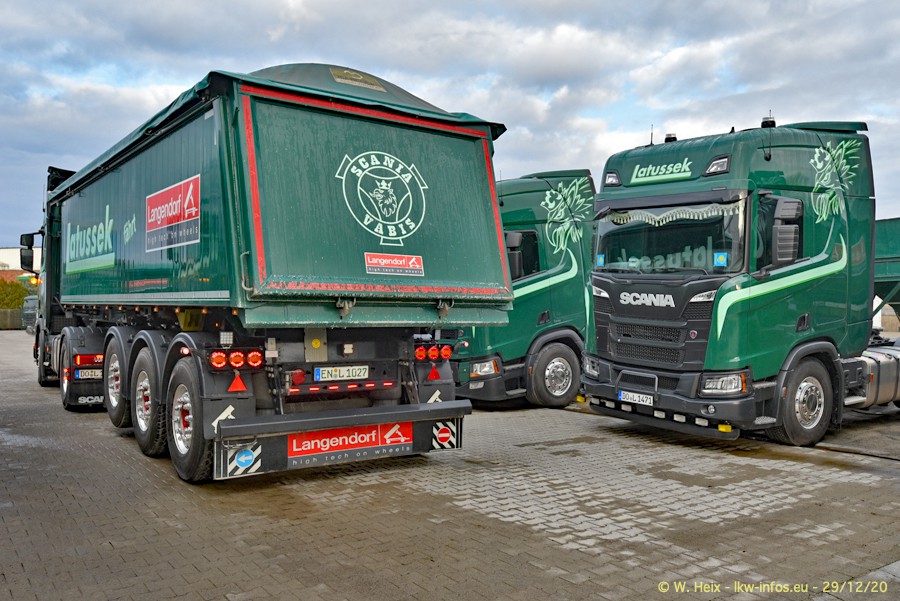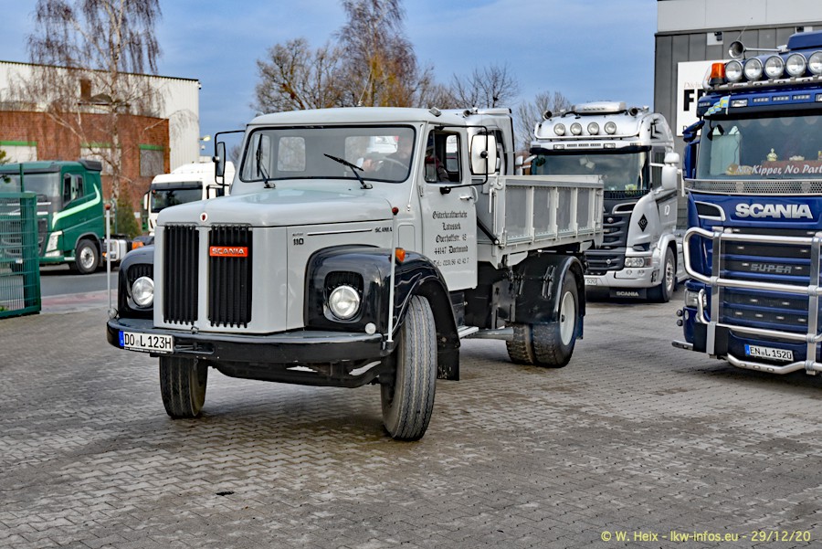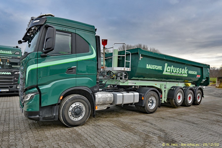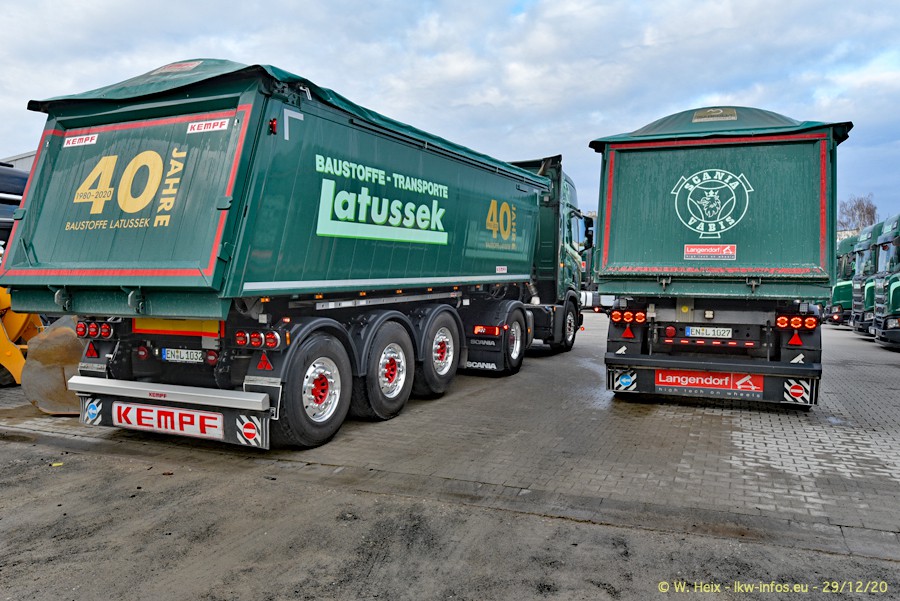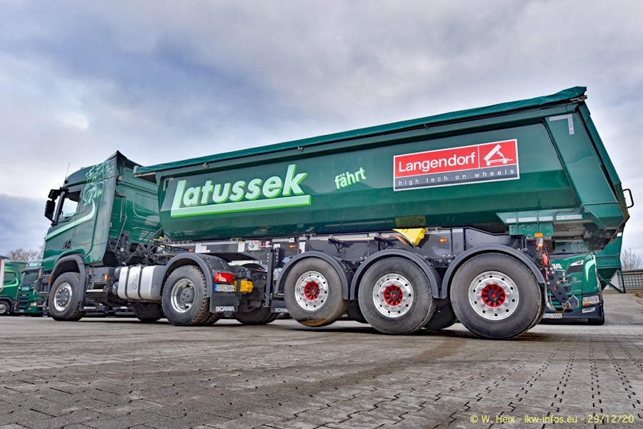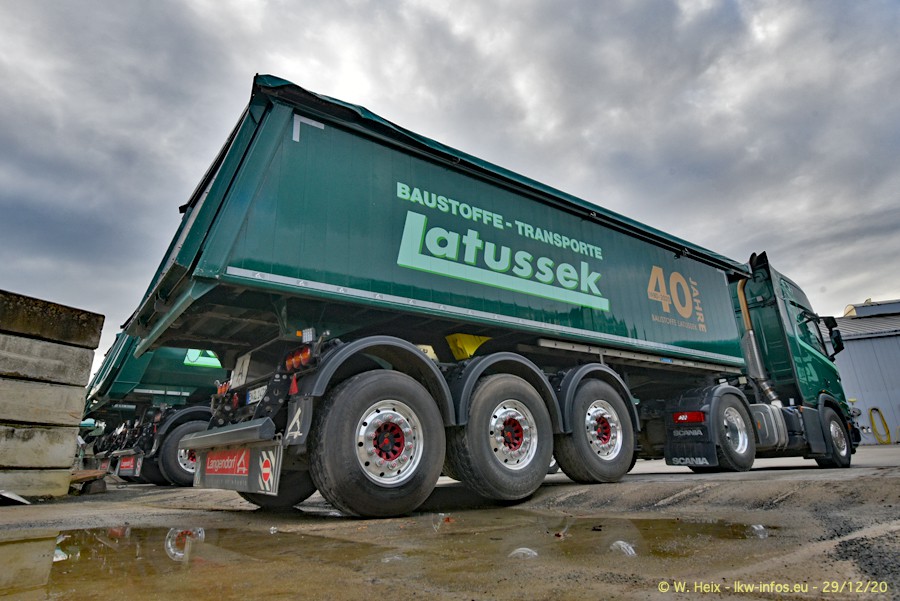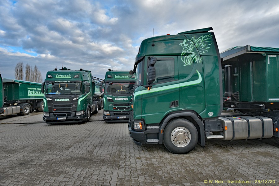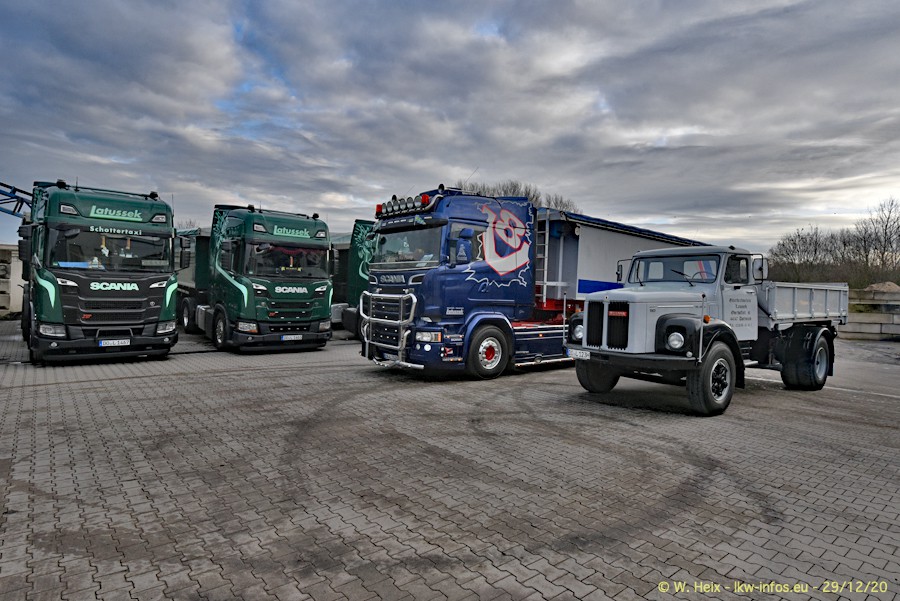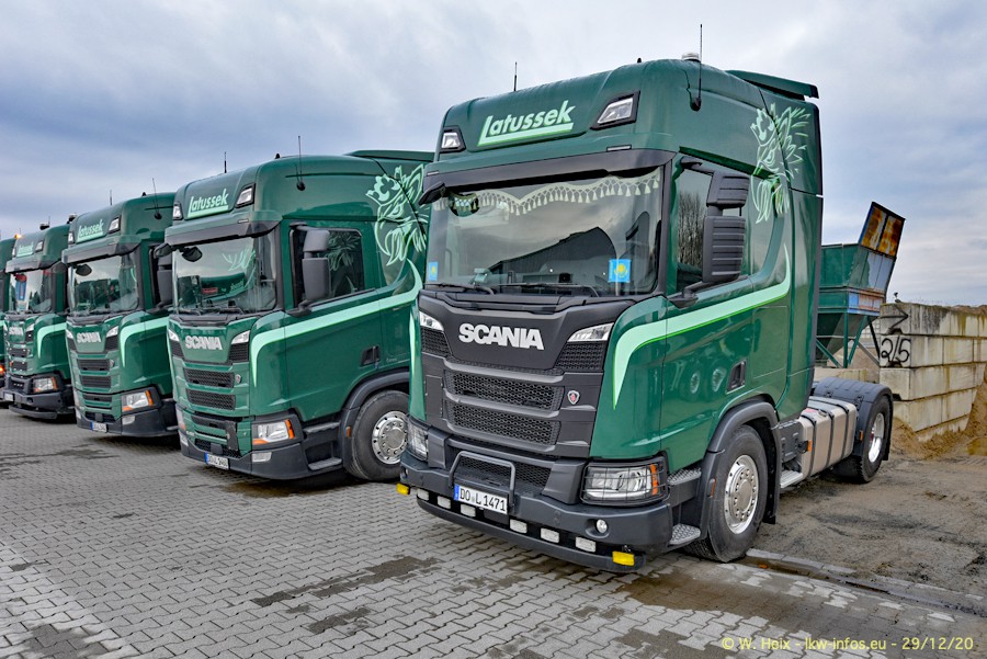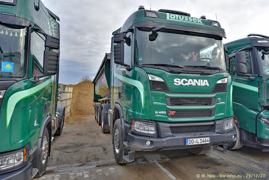 Dies war mein erster Besuch bei der Firma Latussek in Dortmund. Der Fuhrpark besteht aus ca. 30 LKW. Das sind IVECO, MAN, SCANIA und VOLVO, wobei der größte Teil Fahrzeuge von SCANIA ist. Der blaue SCANIA R 520 V8 Streamline gehört auch zum Fuhrpark und es gibt noch den schönen SCANIA L 110 Oldtimer, der für den Fotobesuch extra aus der Garage geholt wurde. Der LKW ist von 1973, hat 305 PS und ist in einem guten Zustand, die Restaurierung ist schon über 15 Jahre her. Bei Latussek ist es wie bei vielen Firmen: Nur Weihnachten bzw. zwischen den Feiertagen sind so gut wie alle LKW zuhause. Zwei fehlten, weil diese im Einsatz waren.
