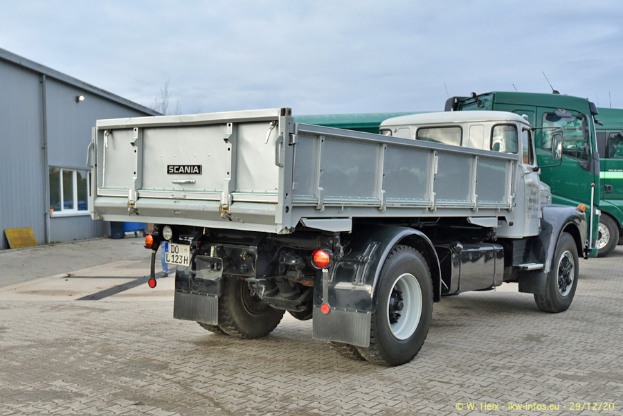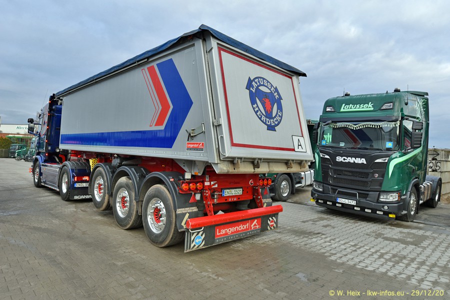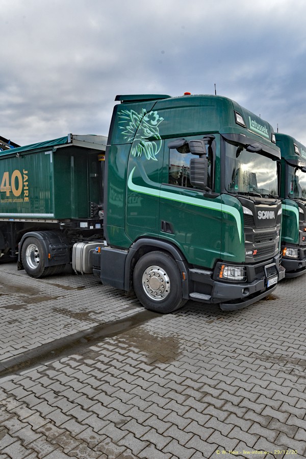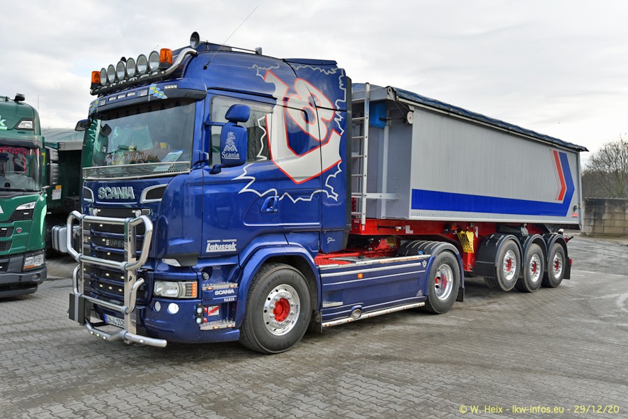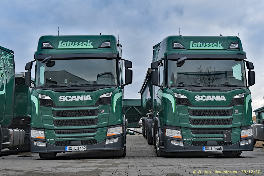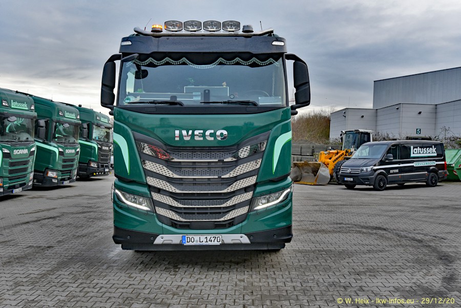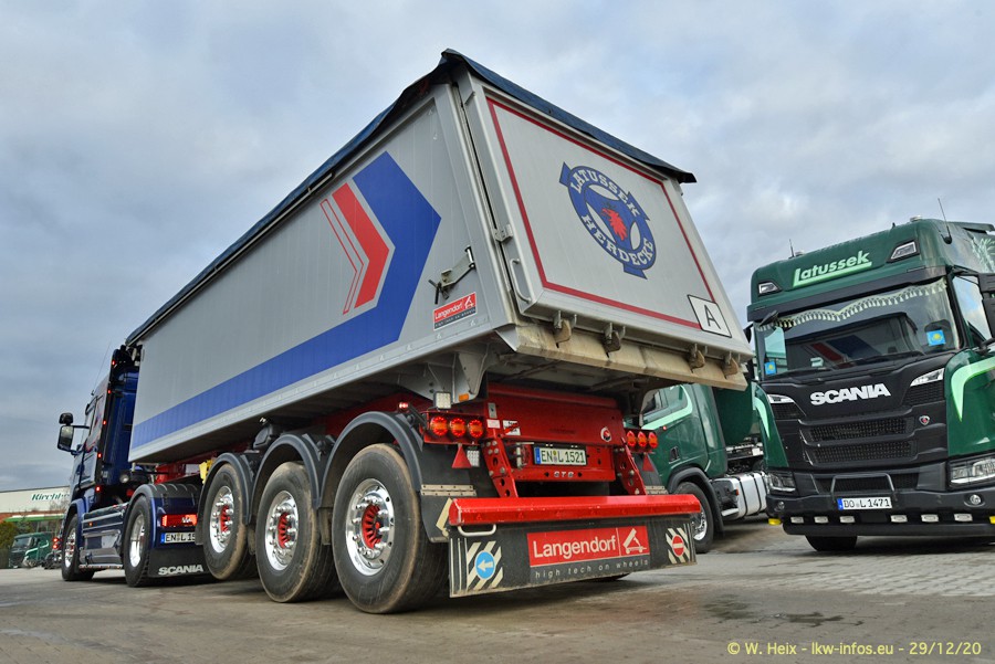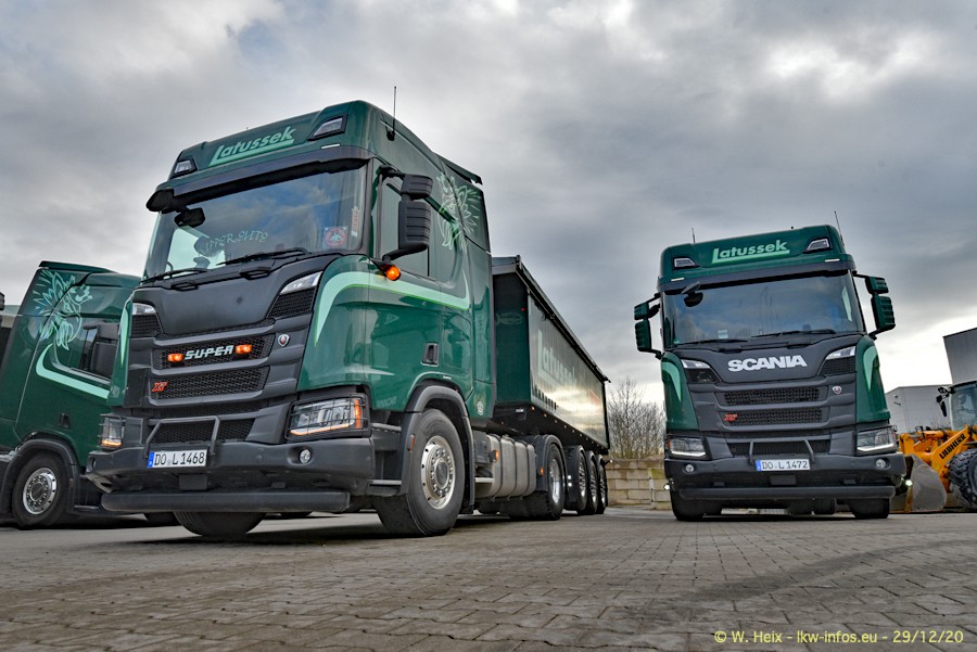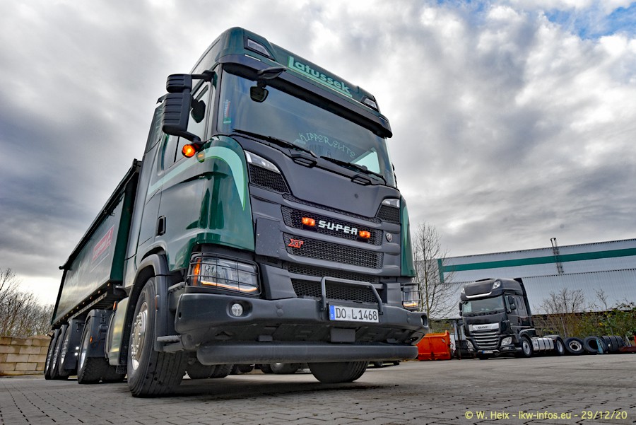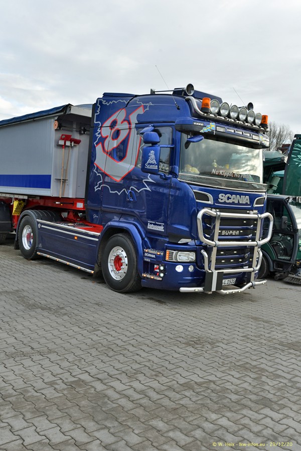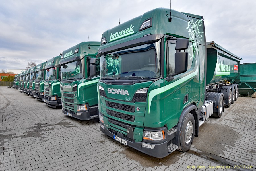 Dies war mein erster Besuch bei der Firma Latussek in Dortmund. Der Fuhrpark besteht aus ca. 30 LKW. Das sind IVECO, MAN, SCANIA und VOLVO, wobei der größte Teil Fahrzeuge von SCANIA ist. Der blaue SCANIA R 520 V8 Streamline gehört auch zum Fuhrpark und es gibt noch den schönen SCANIA L 110 Oldtimer, der für den Fotobesuch extra aus der Garage geholt wurde. Der LKW ist von 1973, hat 305 PS und ist in einem guten Zustand, die Restaurierung ist schon über 15 Jahre her. Bei Latussek ist es wie bei vielen Firmen: Nur Weihnachten bzw. zwischen den Feiertagen sind so gut wie alle LKW zuhause. Zwei fehlten, weil diese im Einsatz waren.