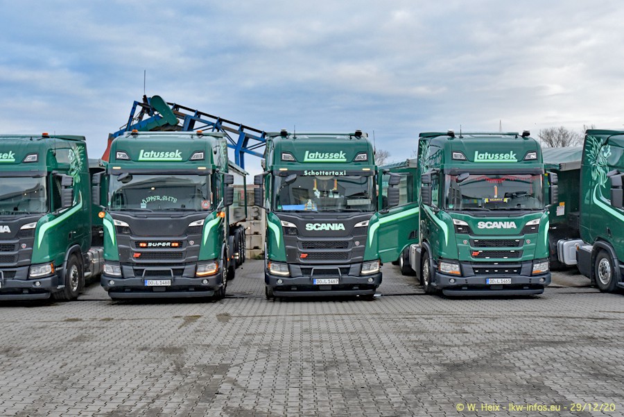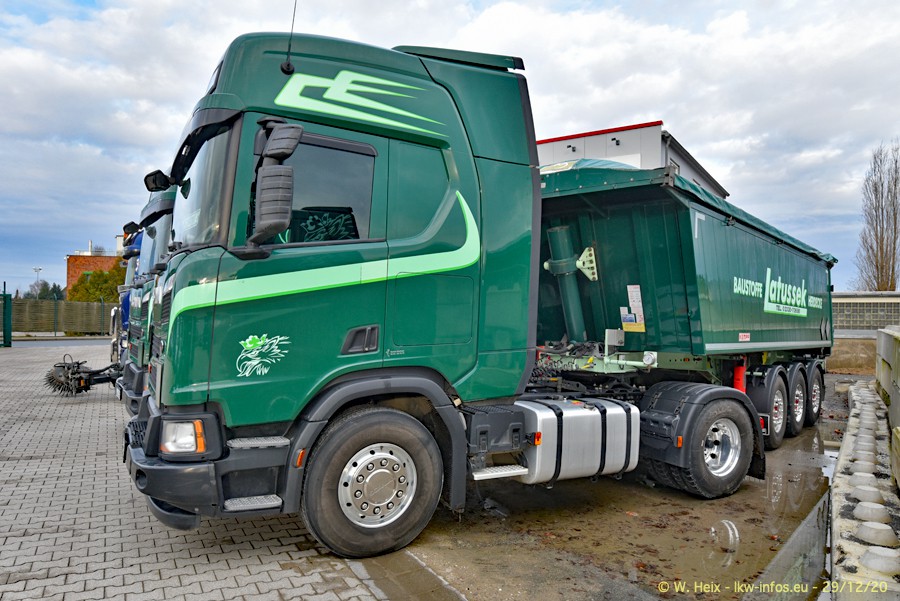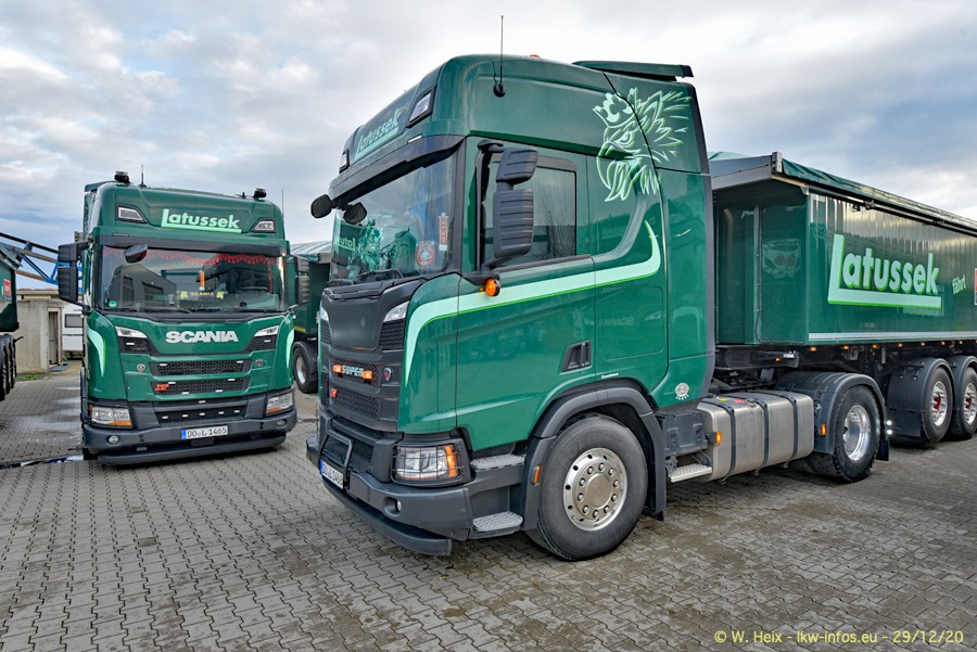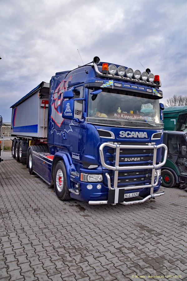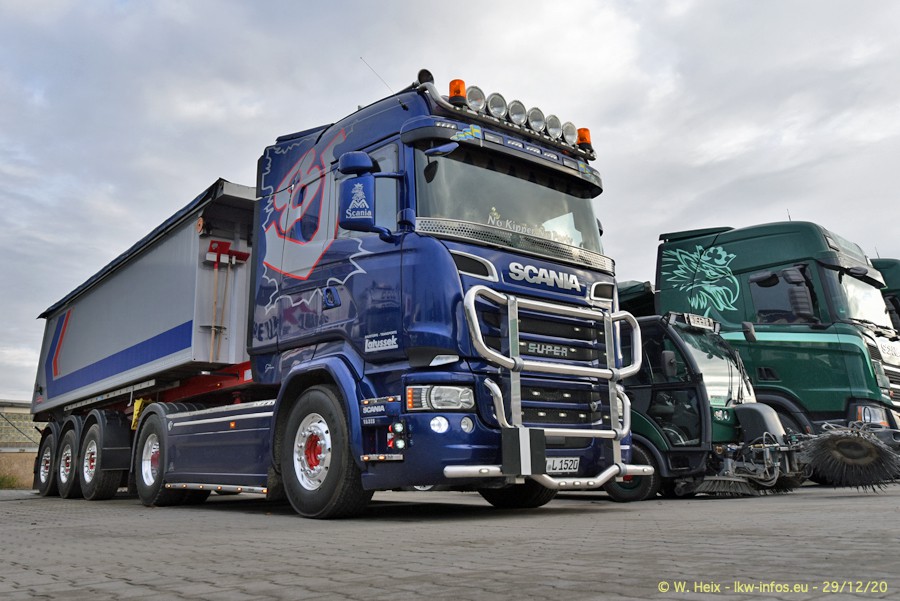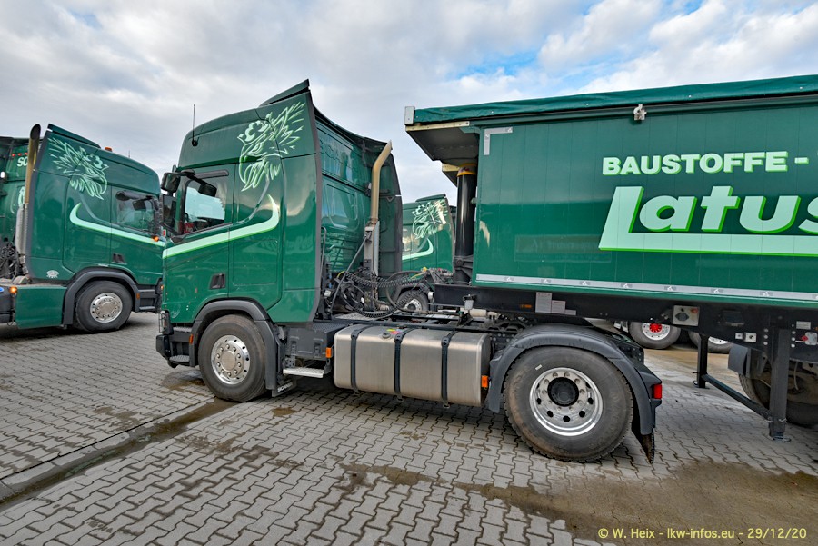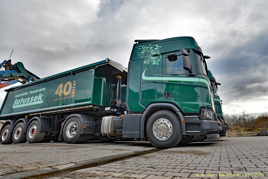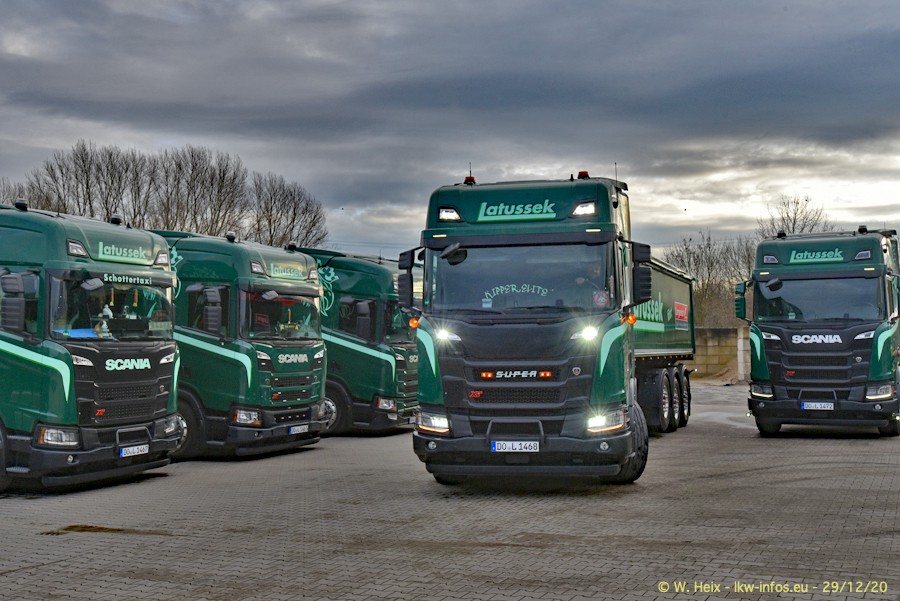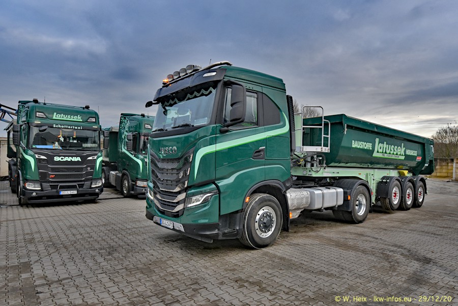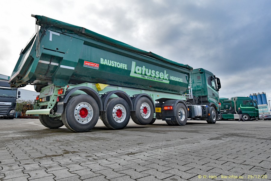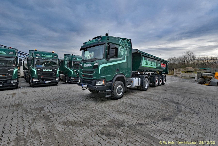 Dies war mein erster Besuch bei der Firma Latussek in Dortmund. Der Fuhrpark besteht aus ca. 30 LKW. Das sind IVECO, MAN, SCANIA und VOLVO, wobei der größte Teil Fahrzeuge von SCANIA ist. Der blaue SCANIA R 520 V8 Streamline gehört auch zum Fuhrpark und es gibt noch den schönen SCANIA L 110 Oldtimer, der für den Fotobesuch extra aus der Garage geholt wurde. Der LKW ist von 1973, hat 305 PS und ist in einem guten Zustand, die Restaurierung ist schon über 15 Jahre her. Bei Latussek ist es wie bei vielen Firmen: Nur Weihnachten bzw. zwischen den Feiertagen sind so gut wie alle LKW zuhause. Zwei fehlten, weil diese im Einsatz waren.