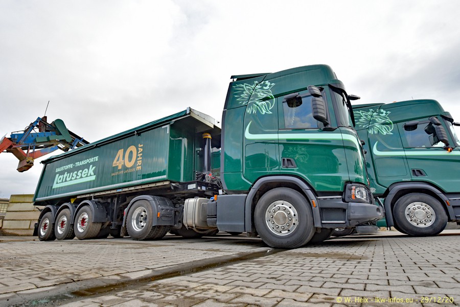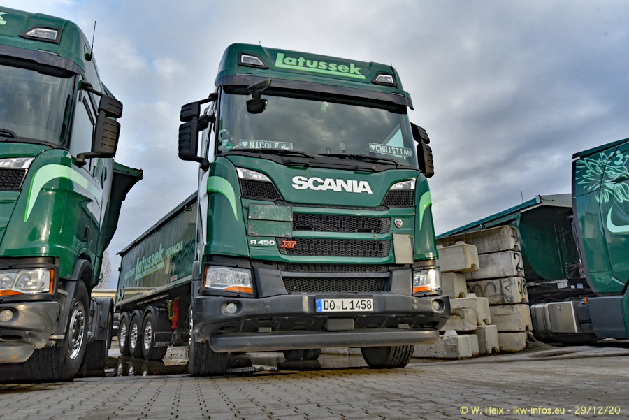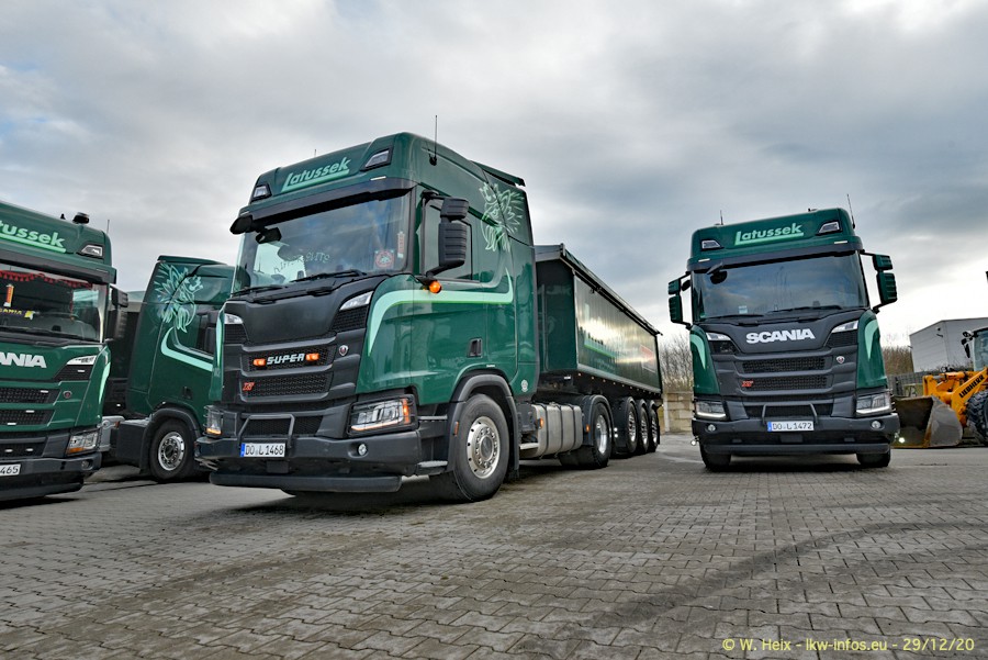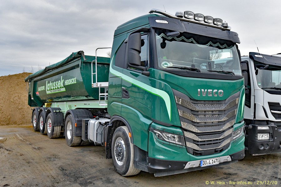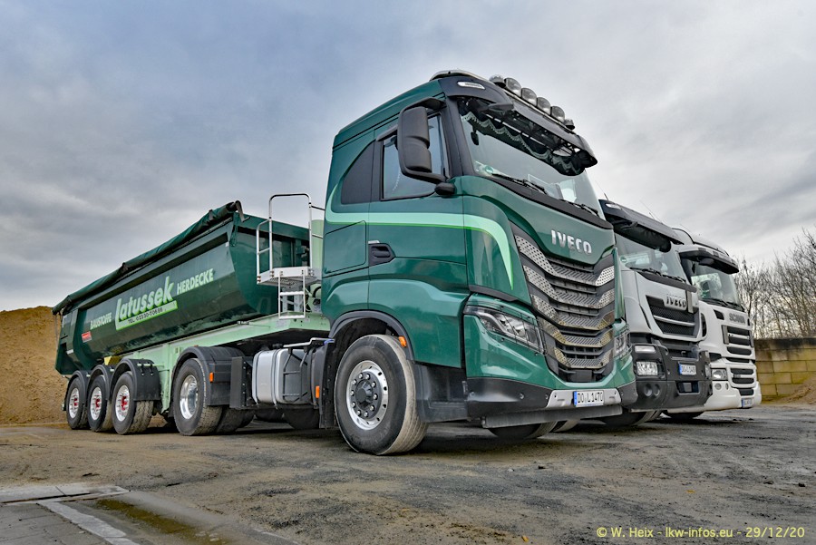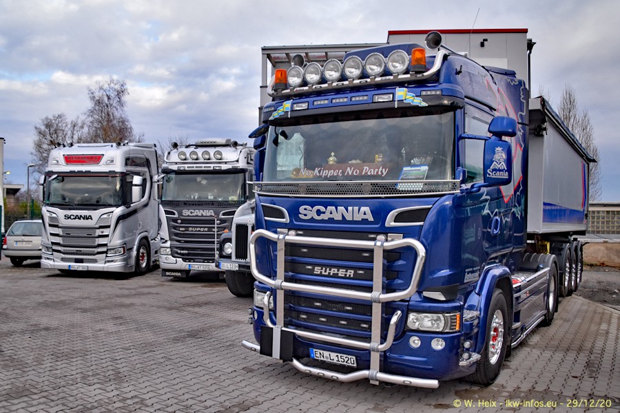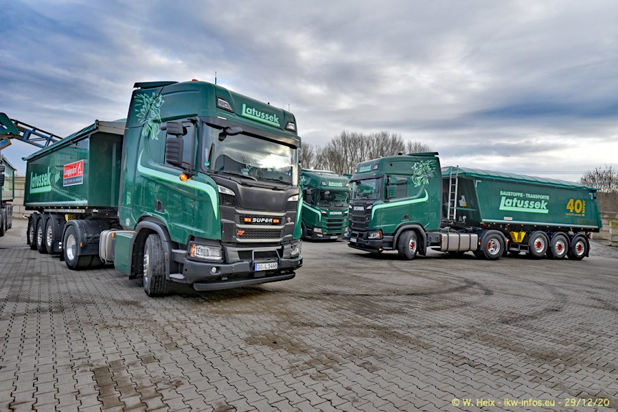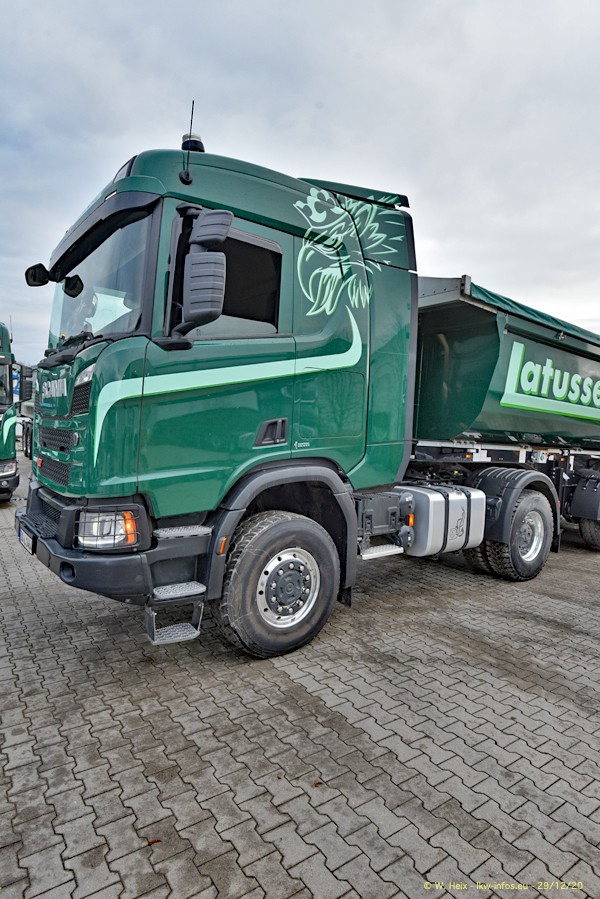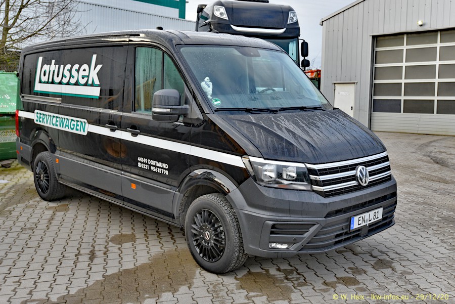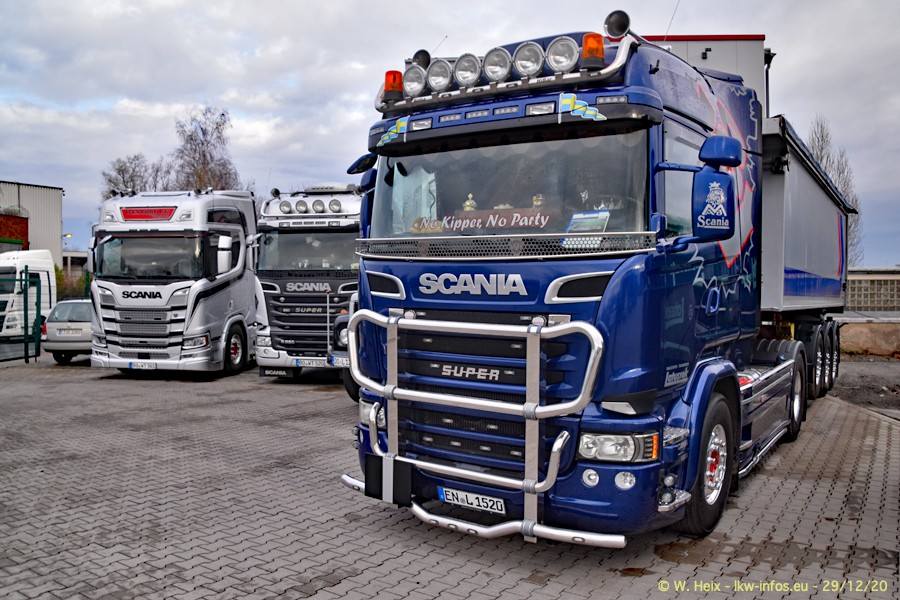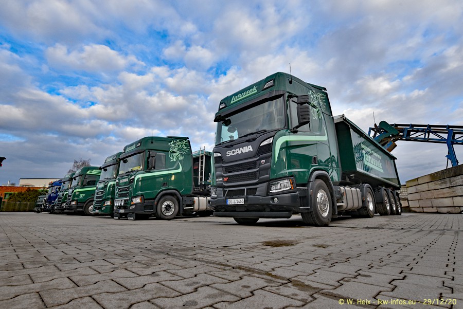 Dies war mein erster Besuch bei der Firma Latussek in Dortmund. Der Fuhrpark besteht aus ca. 30 LKW. Das sind IVECO, MAN, SCANIA und VOLVO, wobei der größte Teil Fahrzeuge von SCANIA ist. Der blaue SCANIA R 520 V8 Streamline gehört auch zum Fuhrpark und es gibt noch den schönen SCANIA L 110 Oldtimer, der für den Fotobesuch extra aus der Garage geholt wurde. Der LKW ist von 1973, hat 305 PS und ist in einem guten Zustand, die Restaurierung ist schon über 15 Jahre her. Bei Latussek ist es wie bei vielen Firmen: Nur Weihnachten bzw. zwischen den Feiertagen sind so gut wie alle LKW zuhause. Zwei fehlten, weil diese im Einsatz waren.